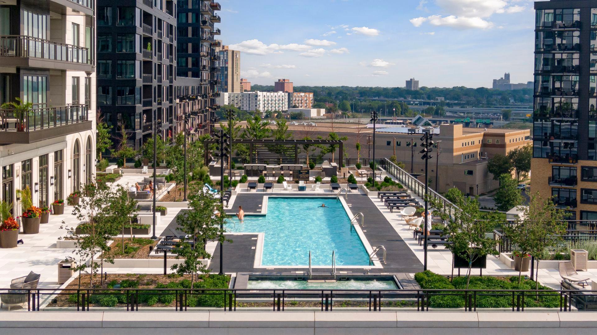 Experience luxury at Eleven on the River, Minneapolis’ premier residential address. Designed by Robert A.M. Stern Architects, this stunning three bedroom, three bath home offers 2,623 square feet of elegant living with panoramic views of the Mississippi River, Gold Medal Park, Stone Arch Bridge, and the downtown skyline. The open layout features a chef’s kitchen with Wolf and Sub-Zero appliances, custom cabinetry, and a large center island. A formal dining room is perfect for special meals, while the living area, anchored by a gas fireplace with custom stone surround, benefits from eleven-foot ceilings and floor-to-ceiling windows. A private, covered, heated loggia extends the living space outdoors, enhancing its scenic surroundings. The primary suite includes a spa-style bath and custom walk-in closet. Two additional bedrooms offer flexible space for guests, office or den. Hardwood floors, premium finishes, motorized shades, high-performance window glazing, and two heated garage parking spaces with EV charger complete the top-of-the-line touches. Residents enjoy world-class amenities: 24-hour concierge, gym, yoga studio, pool, hot tub, sauna, billiard room with wet bar, club and dining rooms, golf simulator, sport court, boardroom, and library. Direct access to riverfront trails and parks complements this exceptional urban living experience.