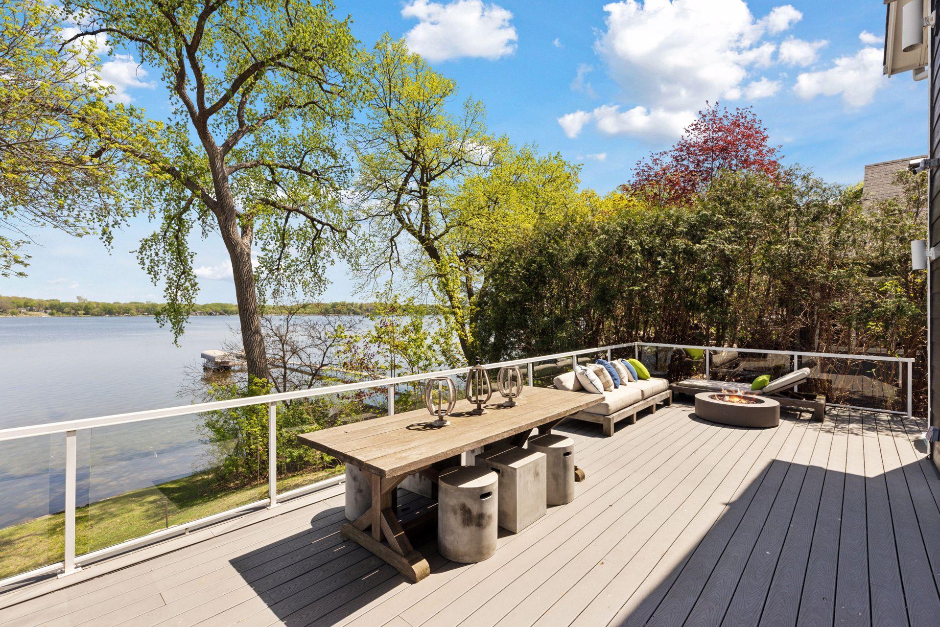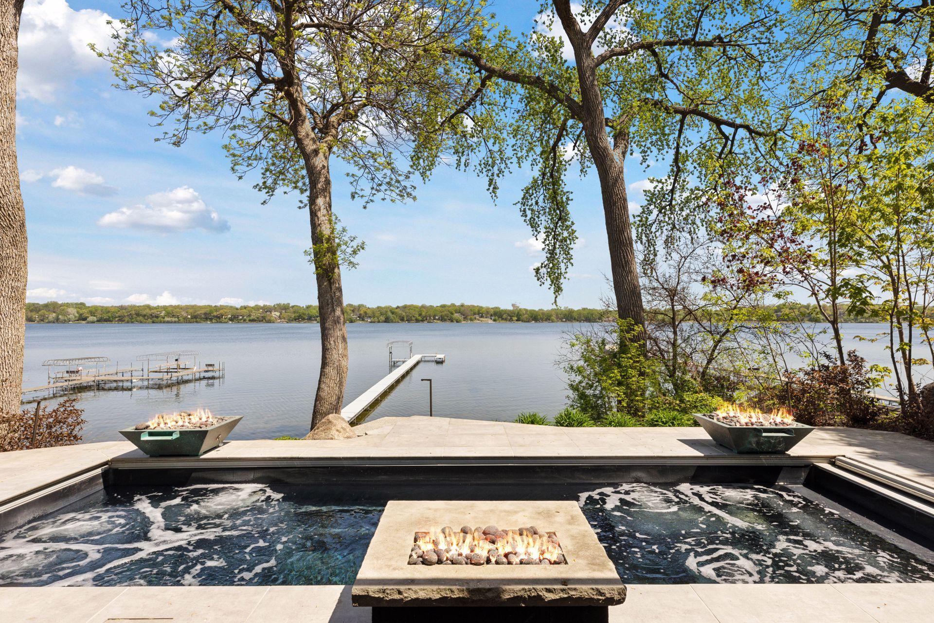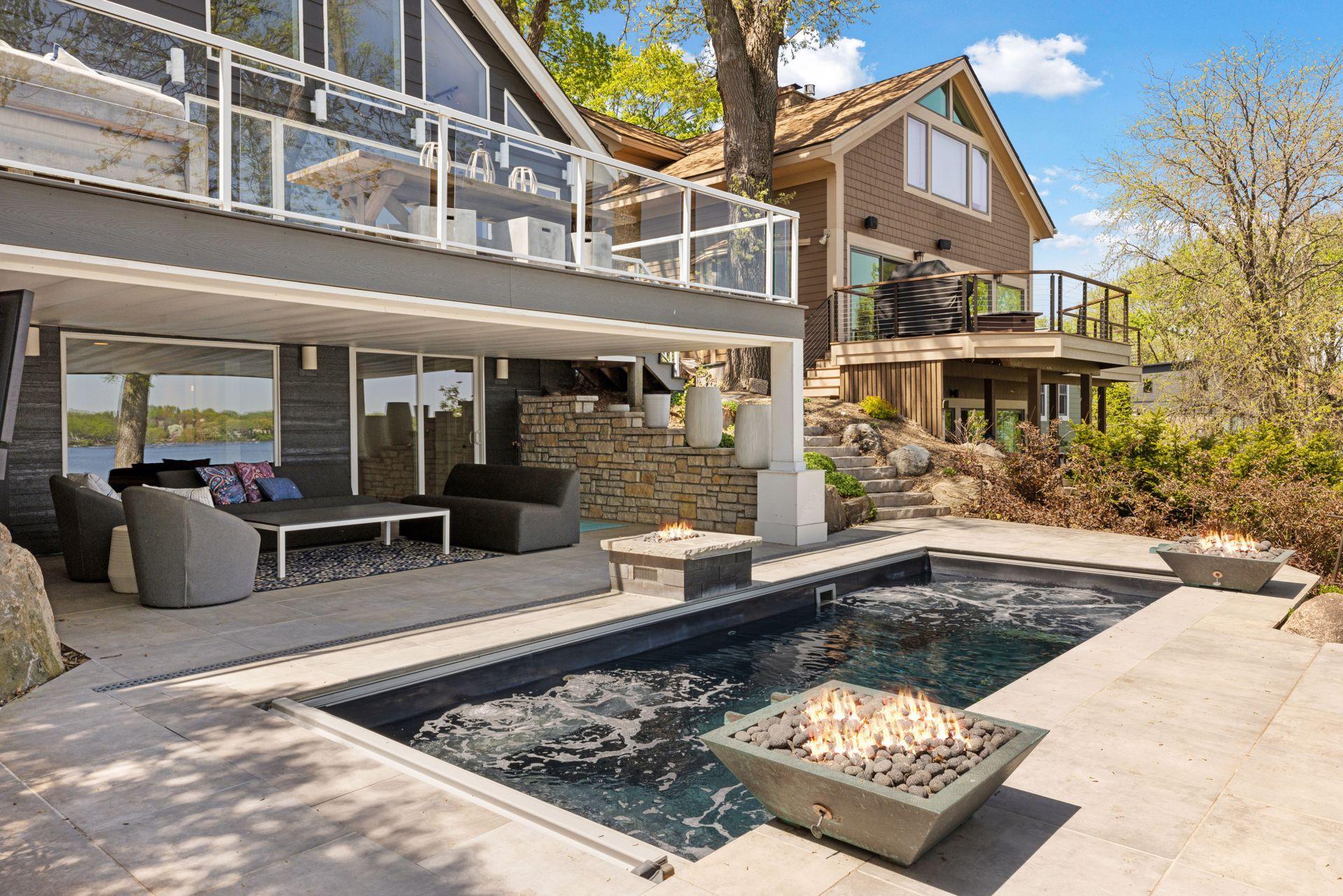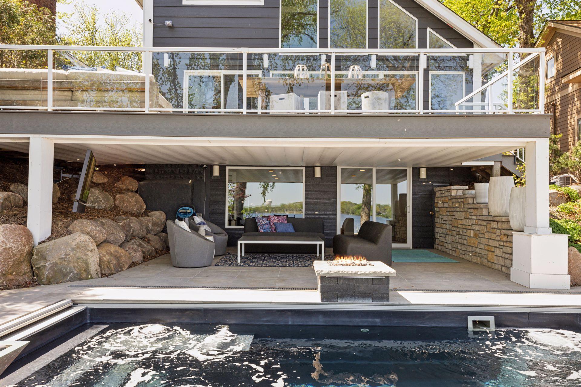 Experience luxury lakefront living in this beautifully updated 4-bedroom, 3-bath executive home on the sought-after Peninsula of Medicine Lake. Designed for comfort, entertainment, and relaxation, this thoughtfully enhanced property offers exceptional amenities and high-end finishes throughout. Interior highlights include: a Chef’s kitchen fully remodeled in 2018 featuring Sub-Zero and Wolf appliances, custom quartz waterfall countertops, and rich walnut cabinetry. Expanded in 2015 to include a welcoming new front entrance, spacious foyer, additional bedroom, and a large walk-in primary closet. Recently completed updated main-floor bath with classic subway tile, a new vanity, and custom glass shower door. The spacious primary bedroom has gorgeous hardwood floors and incredible lake views. The walkout lower level has a 20x40 sport court added in 2018 complete with dual basketball hoops and a batting cage. Plus a family room, 3/4 bathroom and theater room. Outside, it’s your own private escape. Enjoy the Paladium Plunge Pool (installed in 2021) with an integrated poolside TV and professionally landscaped surroundings. A composite deck and solar panels (installed in 2016) add to the home’s function and efficiency, along with an EV charger conveniently located in the garage. the wired 4-camera security system (2022) gives added peace of mind. All of this, just steps from the Luce Line Trail, groomed ski trails, and located in the award-winning Wayzata school district. This rare Medicine Lake gem has it all, high-end upgrades, outdoor adventure, and year-round comfort.
