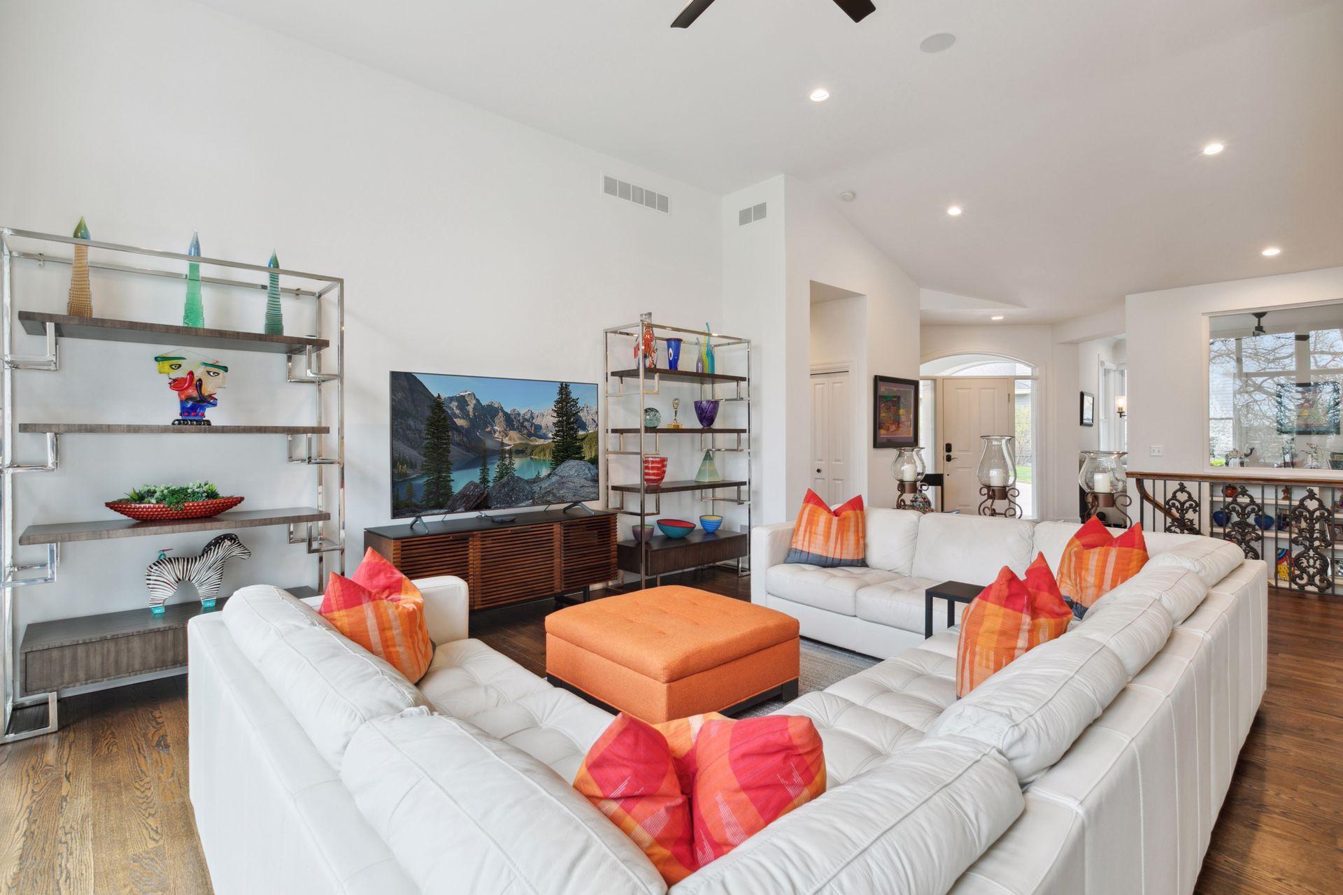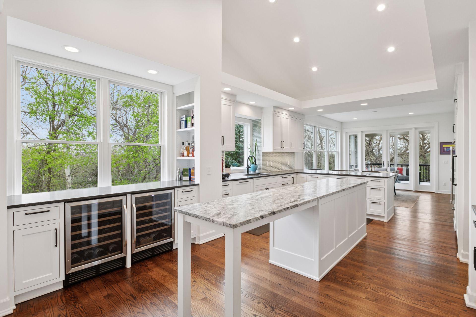 Tucked at the end of a quiet cul-de-sac on a wooded ridge in Golden Valley’s prestigious Hidden Lakes neighborhood, this stunning Charles Cudd-built villa offers refined main-level living with luxurious updates throughout. The newly remodeled center island kitchen is a showstopper, featuring dramatic Quartzite countertops and a premium Thermador appliance suite. Enjoy the serene surroundings from the screened-in porch just off the dining area. Soaring vaulted ceilings and walls of glass fill the open-concept layout with natural light and picturesque views of the surrounding woods. The main level also includes a redesigned laundry and mudroom, a dedicated home office, and a spacious primary suite with an accessible bath. The walk-out lower level includes two additional bedrooms, a full guest bath, an inviting family/entertaining room, and an expansive storage area—offering comfort, function, and flexibility in an unbeatable location.