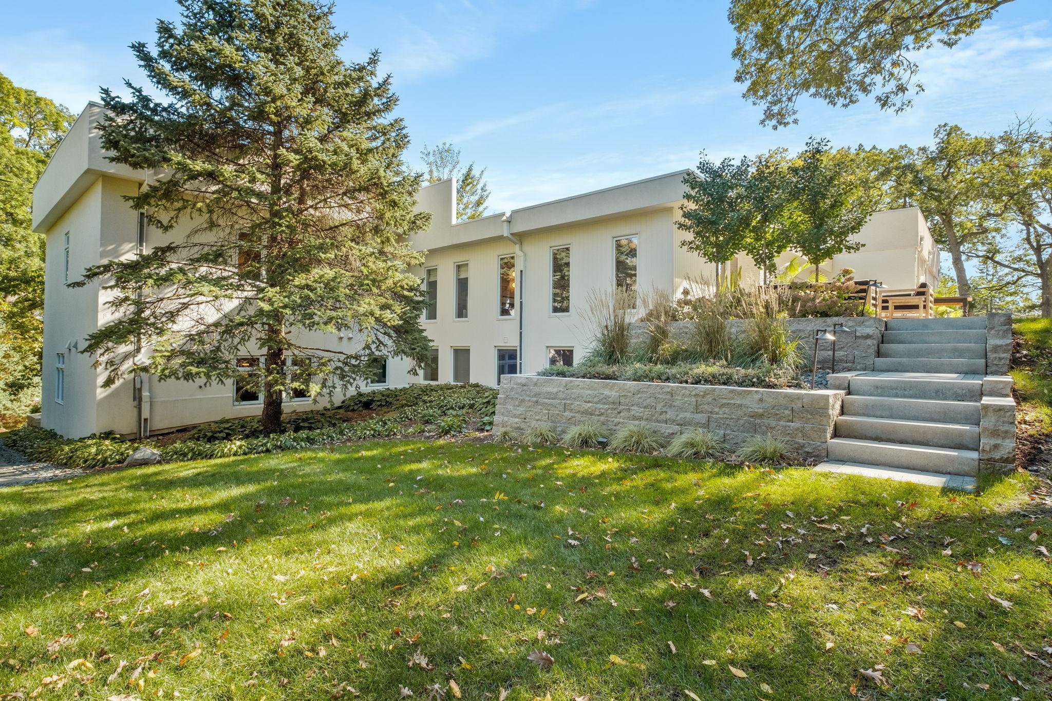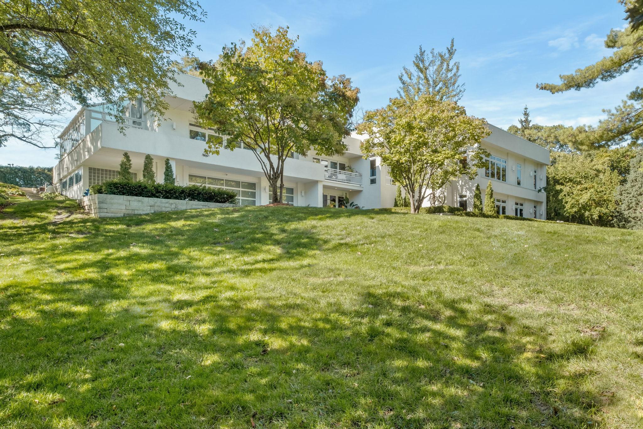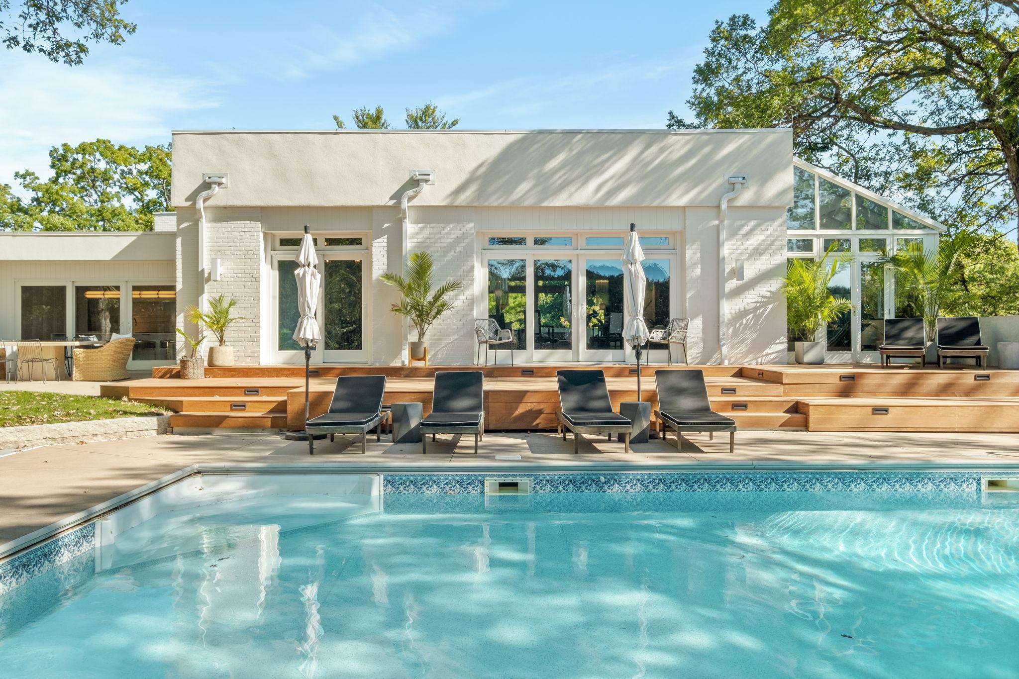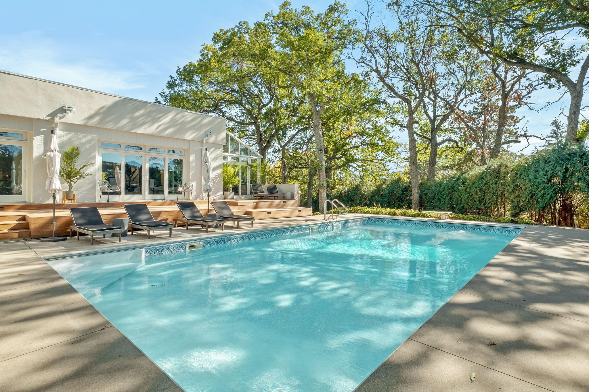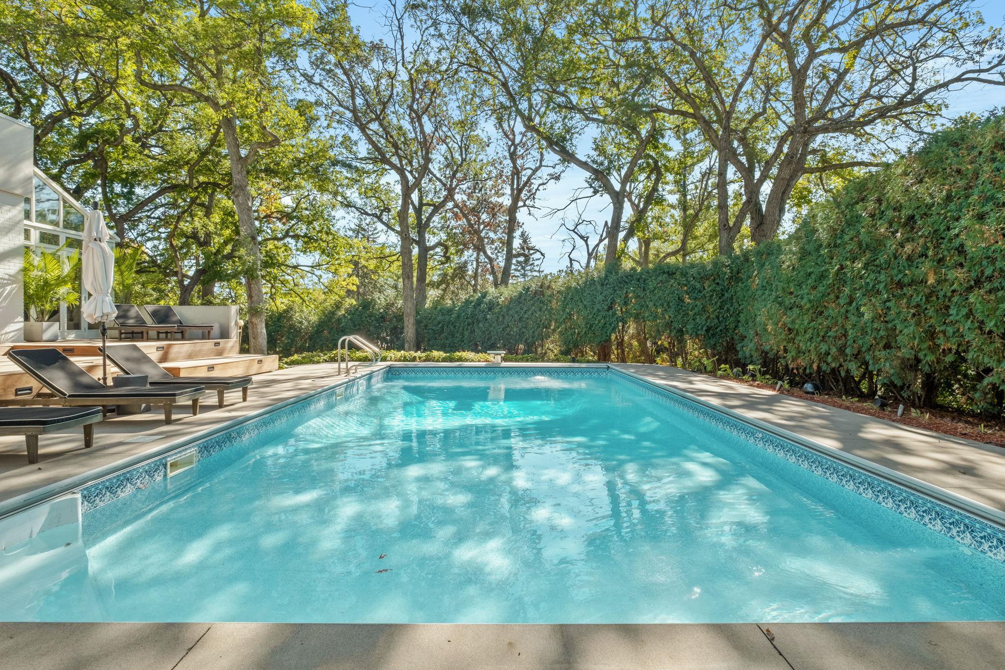 A modernist aerie nestled in the treetops of Edina’s prestigious Indian Hills, this extraordinary contemporary estate has been thoughtfully reimagined with a striking blend of architecture, artistry, and luxury. Set on lushly landscaped acreage behind automatic gates, the home is introduced by a circular auto court and dramatic entry that signals the elegance within. From the moment of arrival, a sense of discovery unfolds — each space revealing itself in a curated progression of light, material, and form. Natural textures like unfilled travertine climb the kitchen walls, while sleek marble and dolomite surfaces define an icy-blue butler’s pantry that opens seamlessly to a heated saltwater pool and multiple outdoor entertaining areas. A newly constructed Ipe Brazilian Walnut deck surrounds the pool, offering a warm, sophisticated setting for relaxation or al fresco gatherings. Inside, light and surface interact in striking ways — with stunning and rare designer light fixtures punctuating key moments throughout the home. Crisp lines, curated materials, and herringbone-patterned white oak floors add warmth and movement to the sleek, modern aesthetic. A full glass solarium brings the outdoors in — a year-round sanctuary for plant life and peaceful reflection. Grand public rooms flow effortlessly, framed by expansive Marvin windows and doors that connect the interior to terraces and patios. A whole-home Sonos audio system, featuring Sonance Invisible Series speakers throughout the upper-level living spaces, fills both indoor and outdoor environments with seamless, ambient sound. The luxurious primary suite is a private retreat, complete with a fireplace, large dressing room, dual walk-in closets, and an expansive marble bath. Two bedrooms on the main level share a playful and inspired designer bathroom, while the two lower-level bedrooms each feature ensuite full marble baths — perfect for guests or multigenerational living. A separate home office adds flexibility, and a second full kitchen in the family room expands entertaining possibilities. With a six-car heated garage, extensive landscape lighting, and exquisite attention to detail throughout, this meticulously maintained estate offers the perfect balance of privacy, sophistication, and modern design in one of Edina’s most coveted neighborhoods.