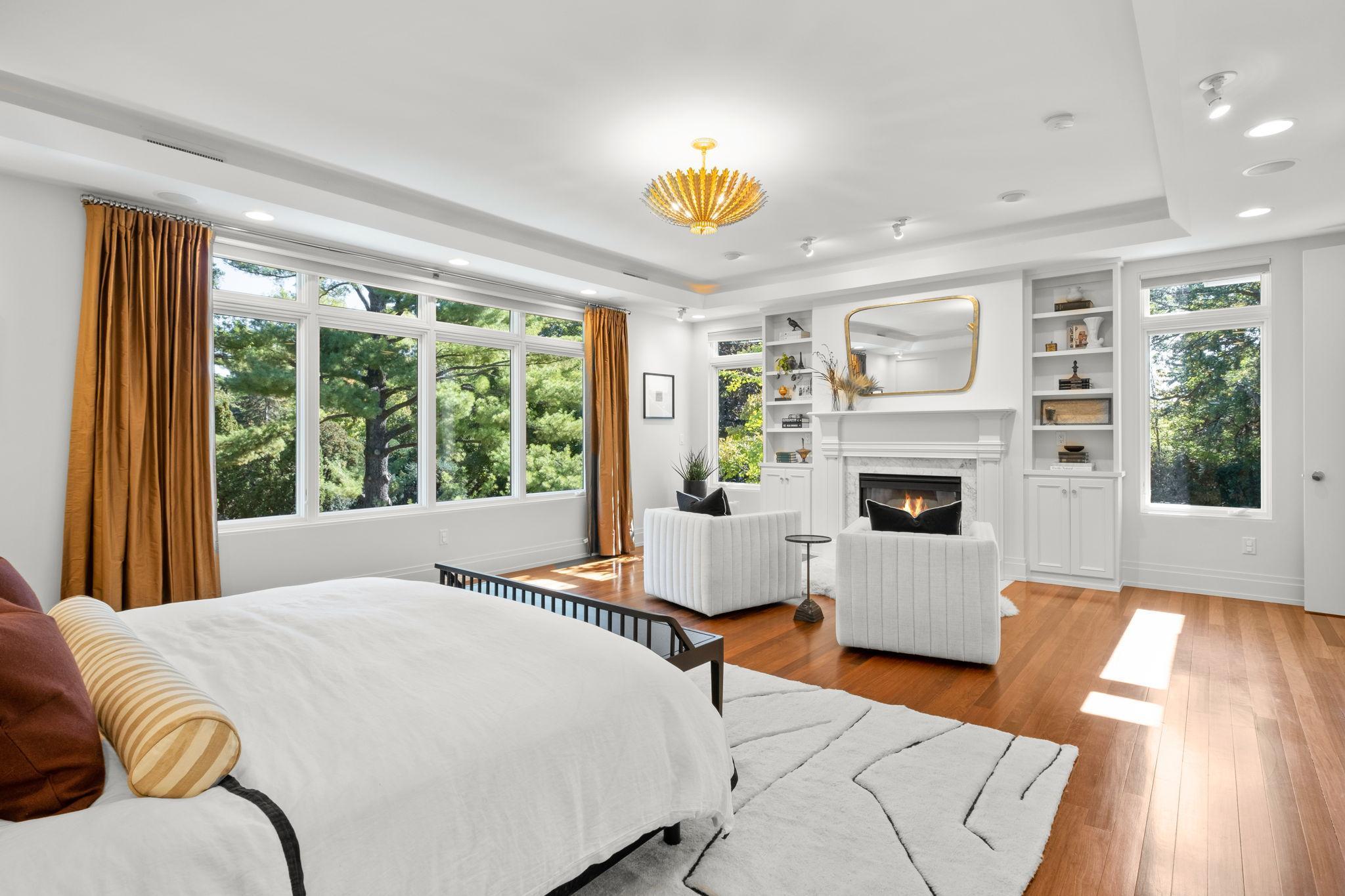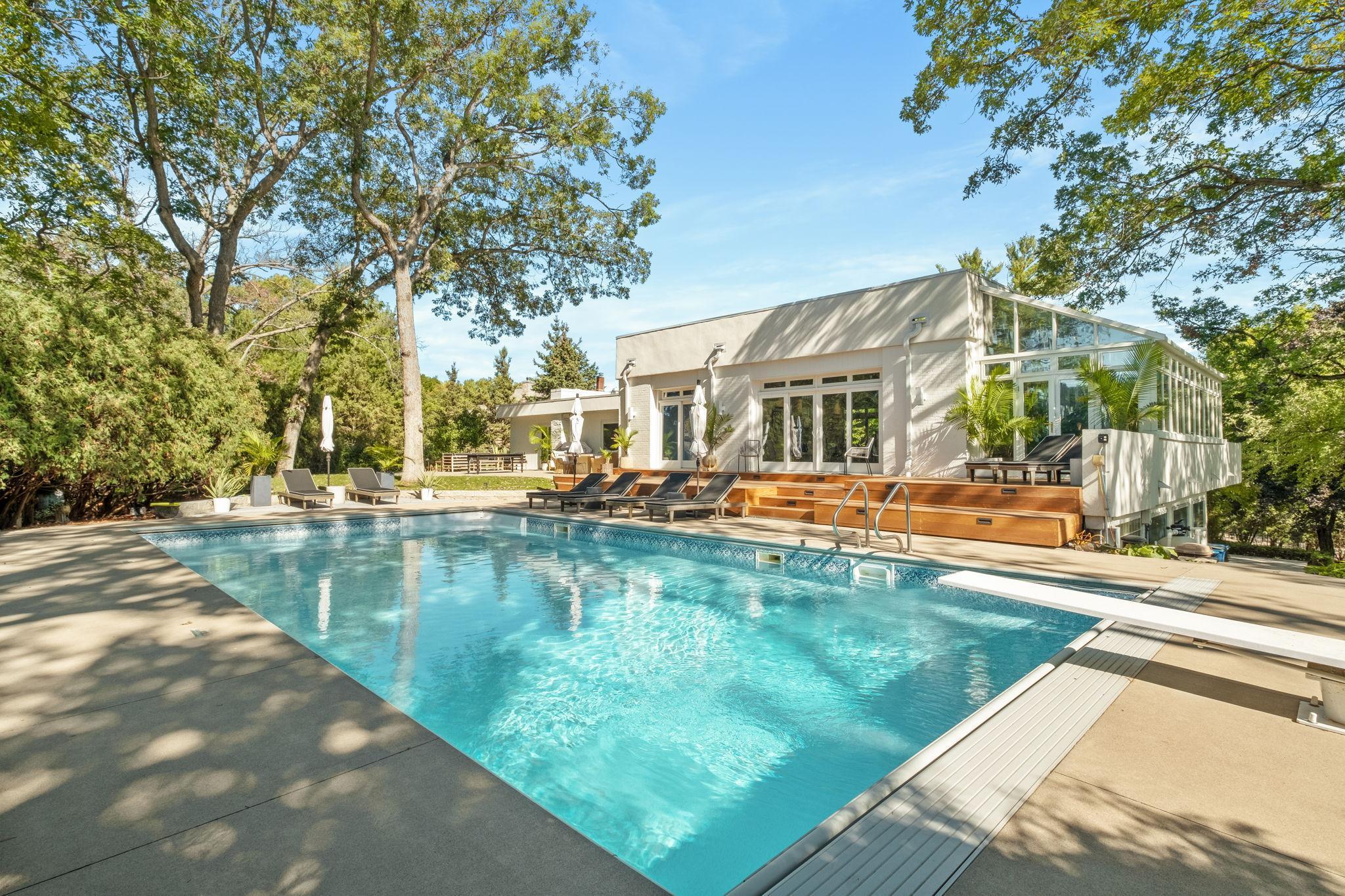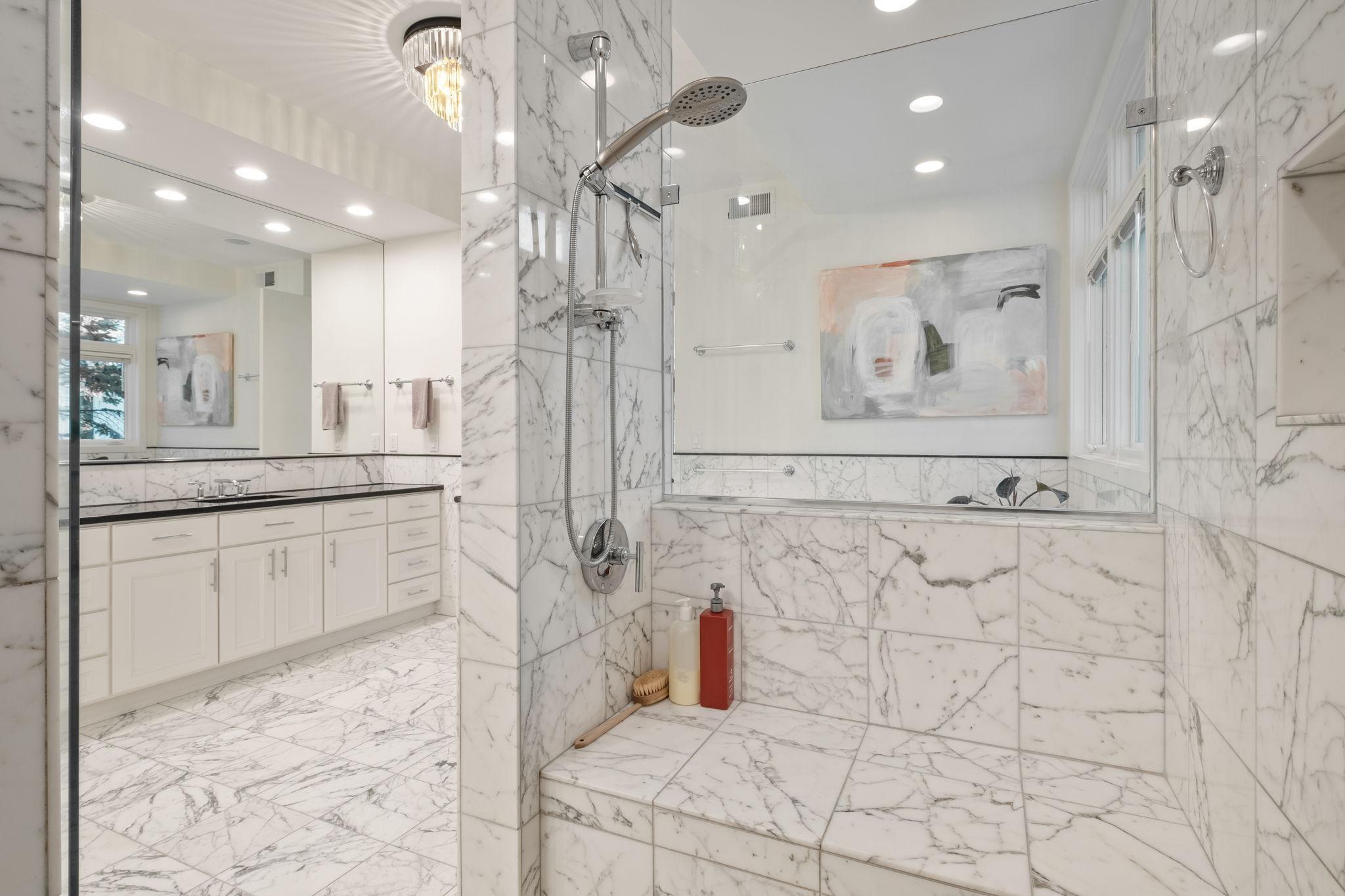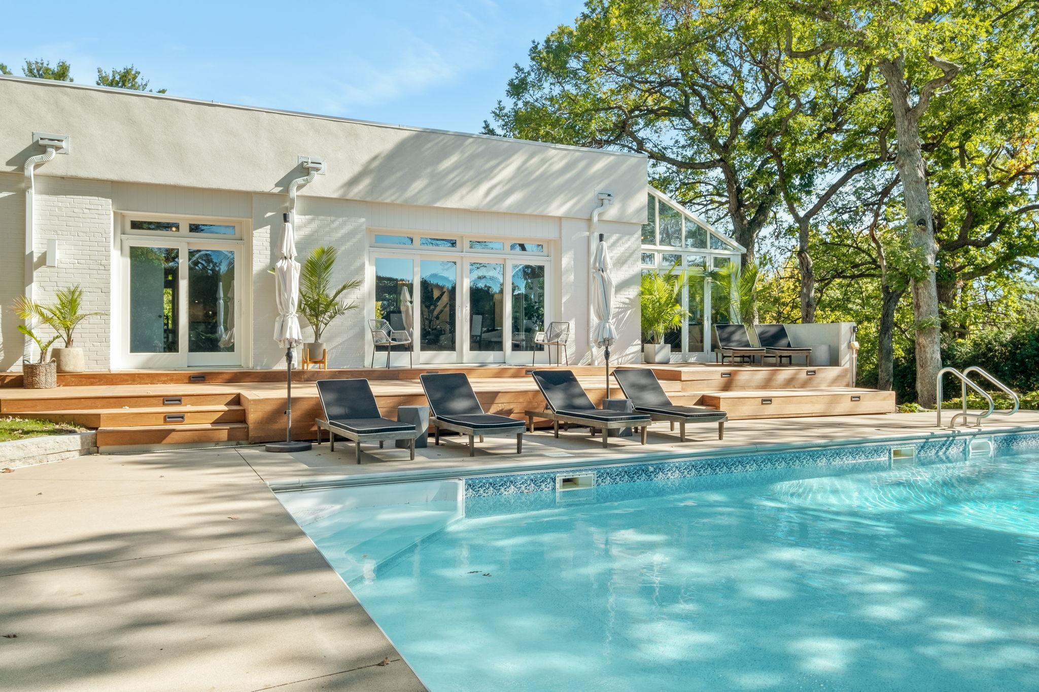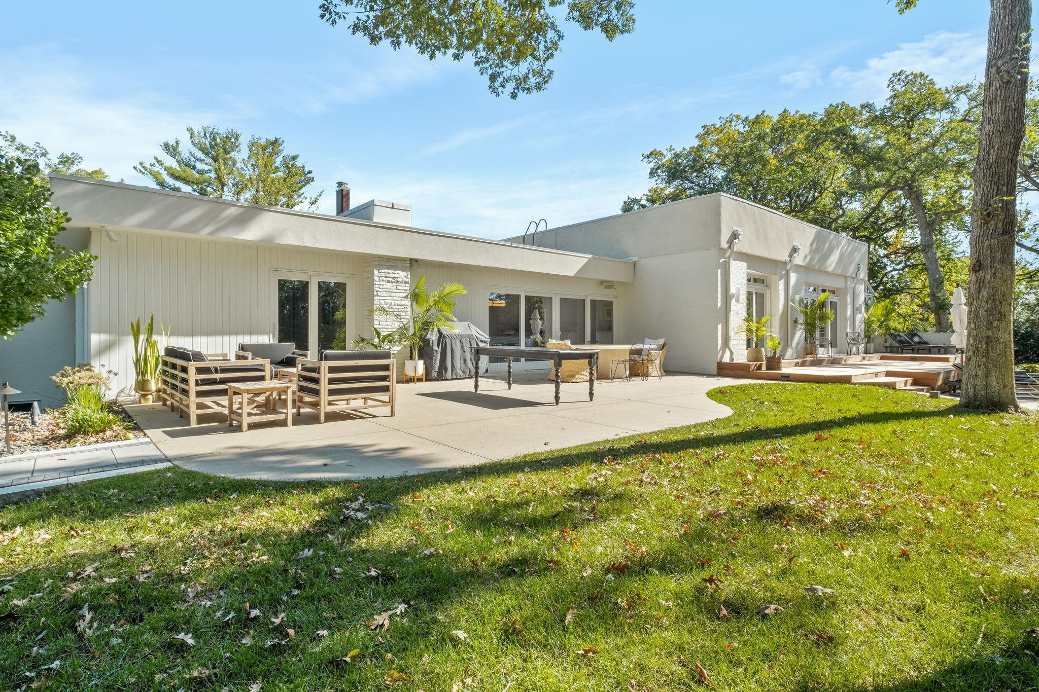 A modernist aerie nestled in the treetops of Edina’s prestigious Indian Hills, this extraordinary contemporary estate has been thoughtfully reimagined with a striking blend of architecture, artistry, and luxury. Set on lushly landscaped acreage behind automatic gates, the home is introduced by a circular auto court and dramatic entry that signals the elegance within. From the moment of arrival, a sense of discovery unfolds — each space revealing itself in a curated progression of light, material, and form. Natural textures like unfilled travertine climb the kitchen walls, while sleek marble and dolomite surfaces define an icy-blue butler’s pantry that opens seamlessly to a heated saltwater pool and multiple outdoor entertaining areas. A newly constructed Ipe Brazilian Walnut deck surrounds the pool, offering a warm, sophisticated setting for relaxation or al fresco gatherings. Inside, light and surface interact in striking ways — with stunning and rare designer light fixtures punctuating key moments throughout the home. Crisp lines, curated materials, and herringbone-patterned white oak floors add warmth and movement to the sleek, modern aesthetic. A full glass solarium brings the outdoors in — a year-round sanctuary for plant life and peaceful reflection. Grand public rooms flow effortlessly, framed by expansive Marvin windows and doors that connect the interior to terraces and patios. A whole-home Sonos audio system, featuring Sonance Invisible Series speakers throughout the upper-level living spaces, fills both indoor and outdoor environments with seamless, ambient sound. The luxurious primary suite is a private retreat, complete with a fireplace, large dressing room, dual walk-in closets, and an expansive marble bath. Two bedrooms on the main level share a playful and inspired designer bathroom, while the two lower-level bedrooms each feature ensuite full marble baths — perfect for guests or multigenerational living. A separate home office adds flexibility, and a second full kitchen in the family room expands entertaining possibilities. With a six-car heated garage, extensive landscape lighting, and exquisite attention to detail throughout, this meticulously maintained estate offers the perfect balance of privacy, sophistication, and modern design in one of Edina’s most coveted neighborhoods.
