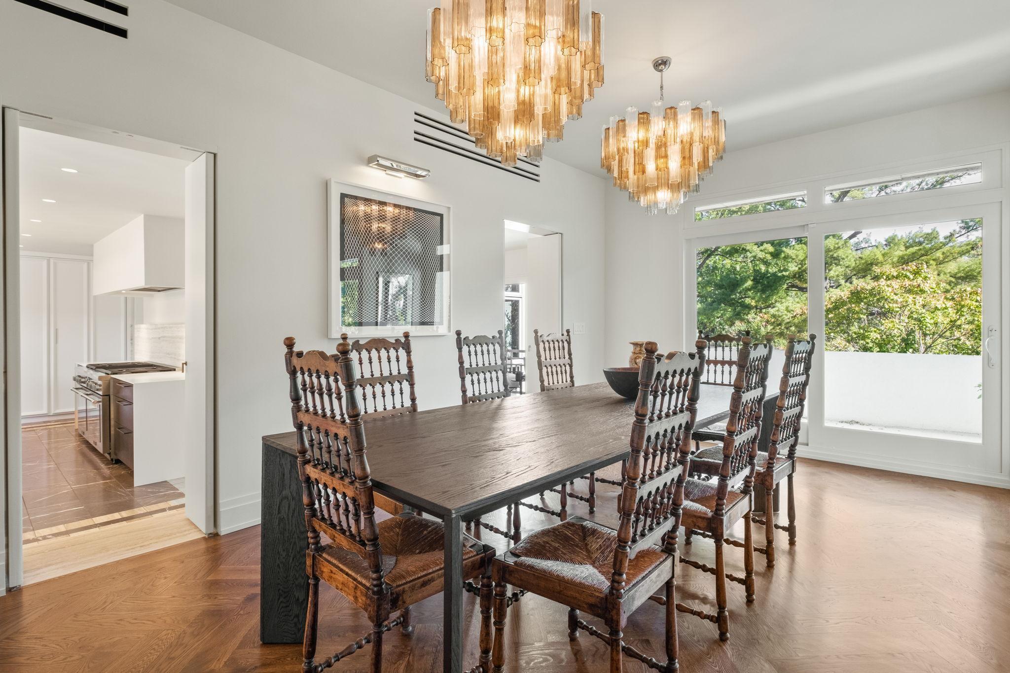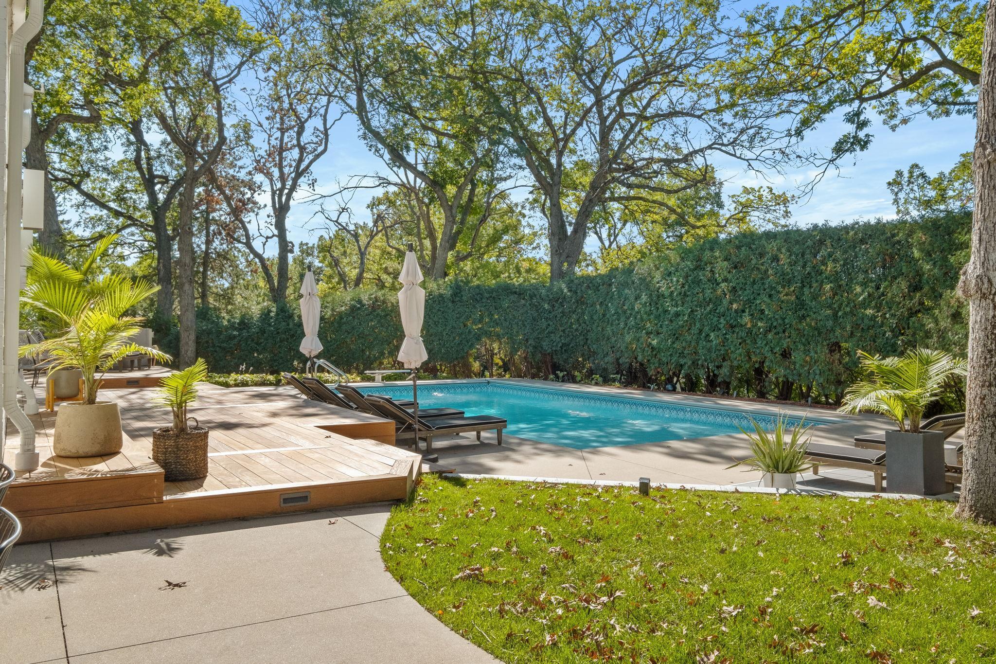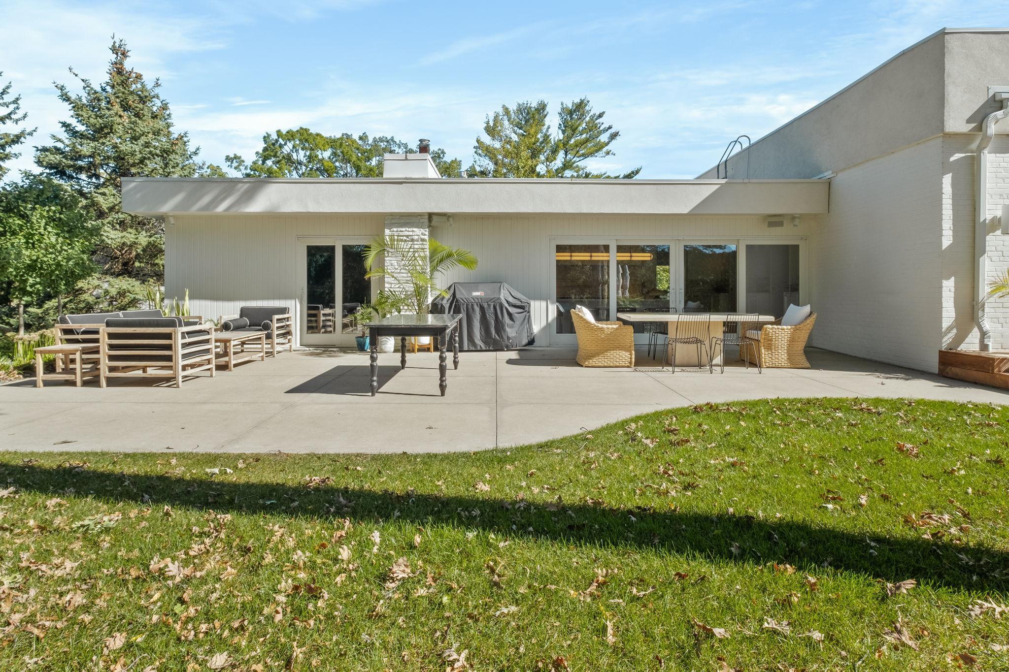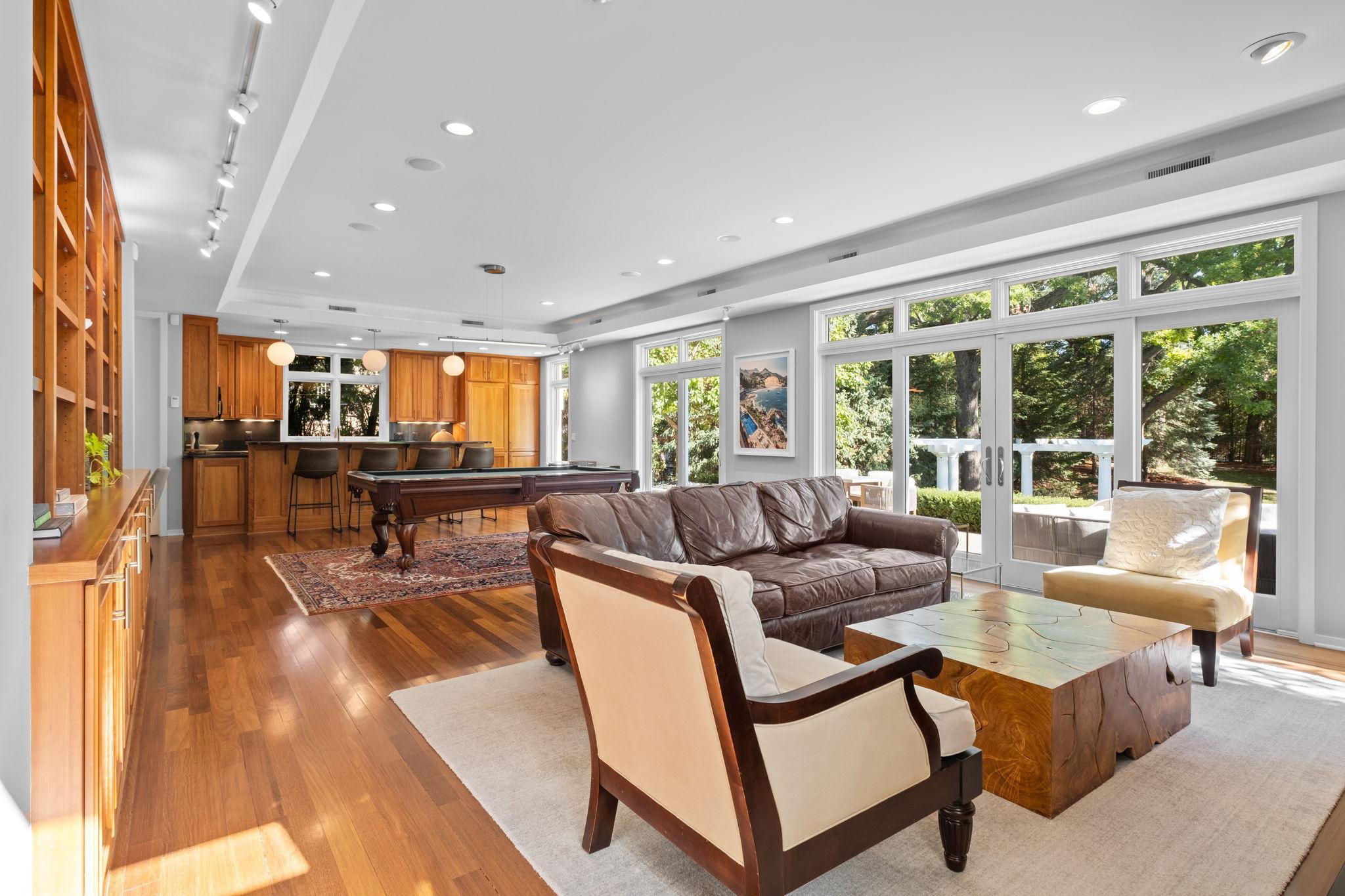 A modernist aerie nestled in the treetops of Edina’s prestigious Indian Hills, this extraordinary contemporary estate has been thoughtfully reimagined with a striking blend of architecture, artistry, and luxury. Set on lushly landscaped acreage behind automatic gates, the home is introduced by a circular auto court and dramatic entry that signals the elegance within. From the moment of arrival, a sense of discovery unfolds — each space revealing itself in a curated progression of light, material, and form. Natural textures like unfilled travertine climb the kitchen walls, while sleek marble and dolomite surfaces define an icy-blue butler’s pantry that opens seamlessly to a heated saltwater pool and multiple outdoor entertaining areas. A newly constructed Ipe Brazilian Walnut deck surrounds the pool, offering a warm, sophisticated setting for relaxation or al fresco gatherings. Inside, light and surface interact in striking ways — with stunning and rare designer light fixtures punctuating key moments throughout the home. Crisp lines, curated materials, and herringbone-patterned white oak floors add warmth and movement to the sleek, modern aesthetic. A full glass solarium brings the outdoors in — a year-round sanctuary for plant life and peaceful reflection. Grand public rooms flow effortlessly, framed by expansive Marvin windows and doors that connect the interior to terraces and patios. A whole-home Sonos audio system, featuring Sonance Invisible Series speakers throughout the upper-level living spaces, fills both indoor and outdoor environments with seamless, ambient sound. The luxurious primary suite is a private retreat, complete with a fireplace, large dressing room, dual walk-in closets, and an expansive marble bath. Two bedrooms on the main level share a playful and inspired designer bathroom, while the two lower-level bedrooms each feature ensuite full marble baths — perfect for guests or multigenerational living. A separate home office adds flexibility, and a second full kitchen in the family room expands entertaining possibilities. With a six-car heated garage, extensive landscape lighting, and exquisite attention to detail throughout, this meticulously maintained estate offers the perfect balance of privacy, sophistication, and modern design in one of Edina’s most coveted neighborhoods.