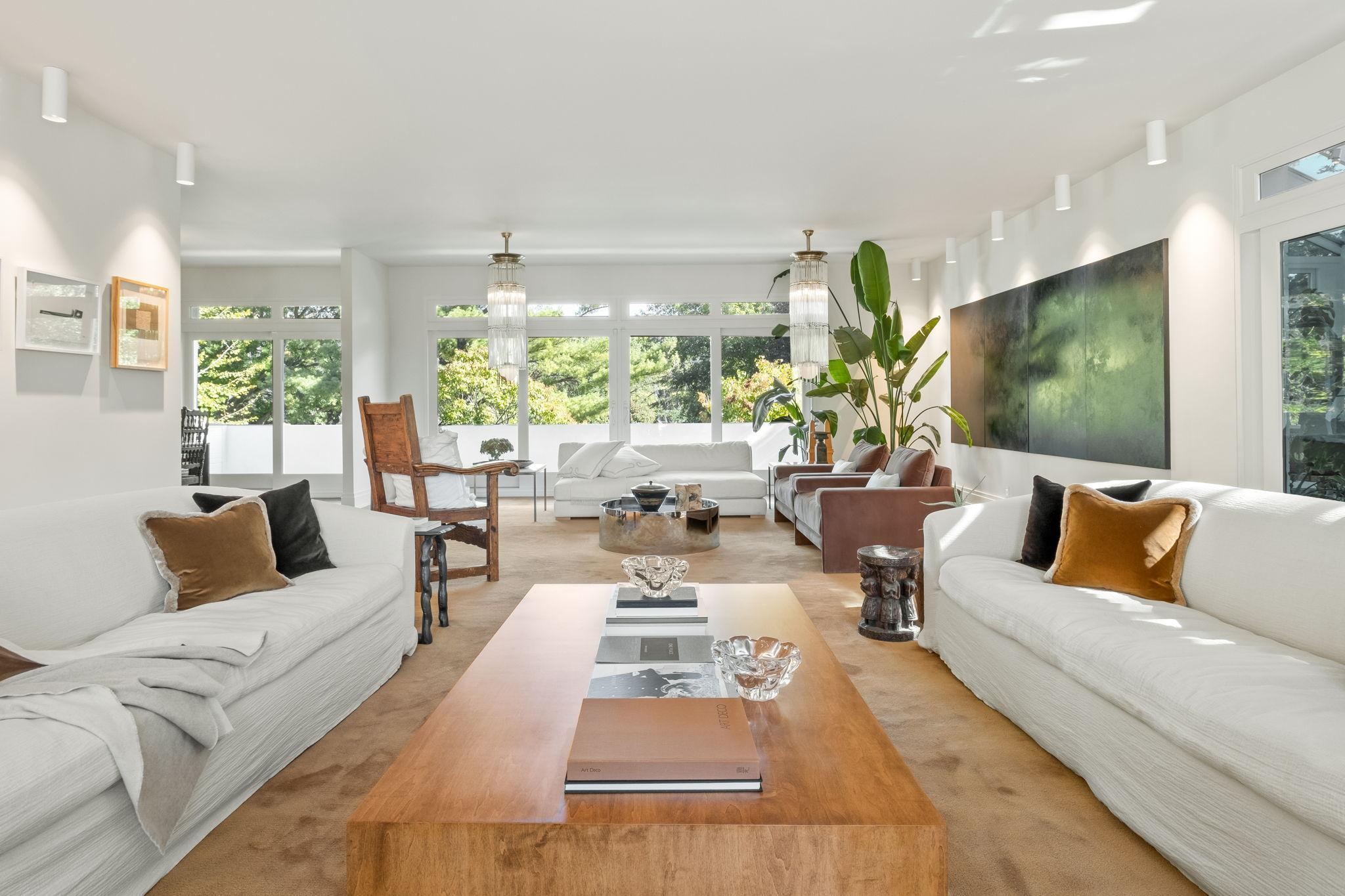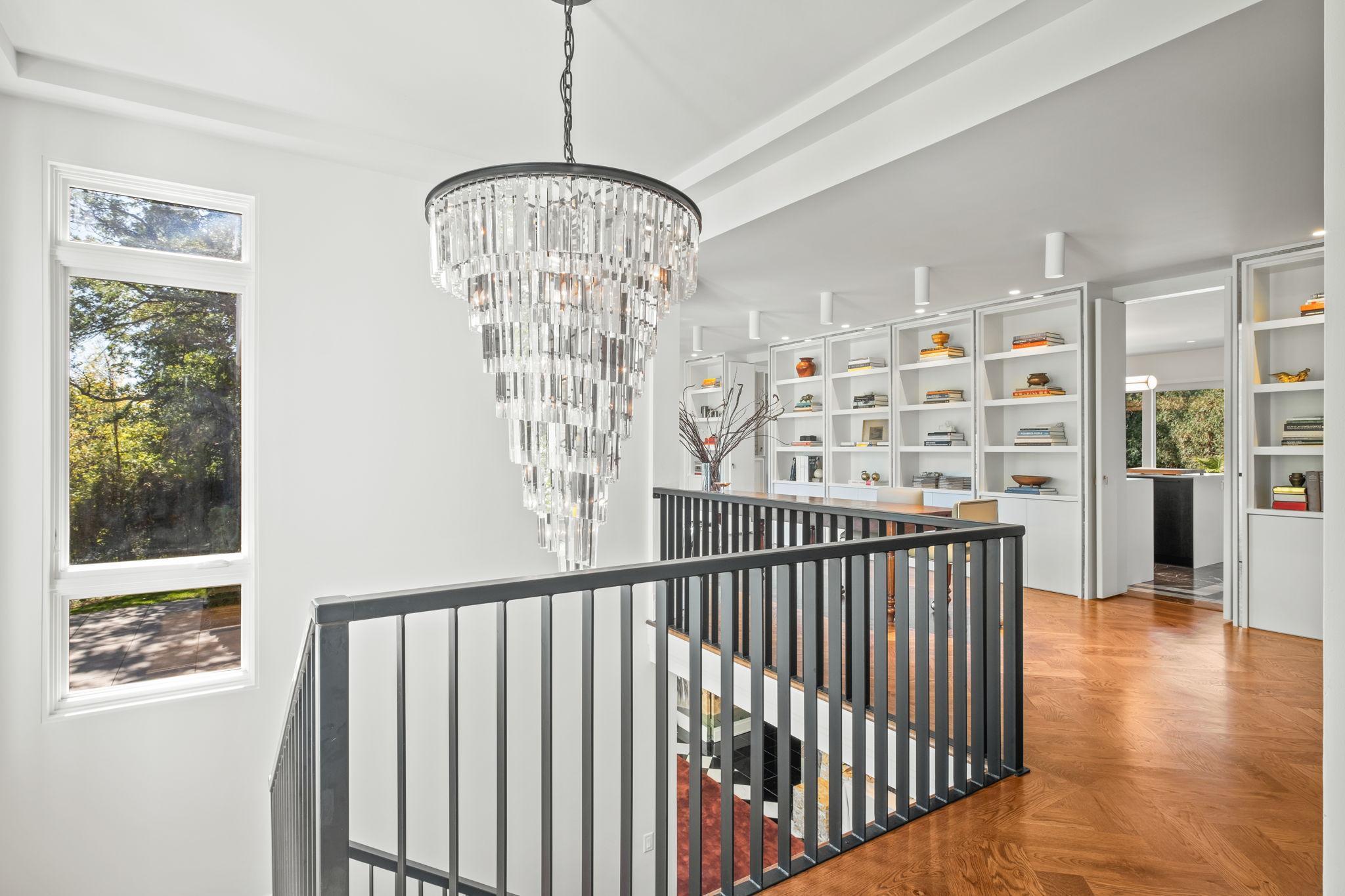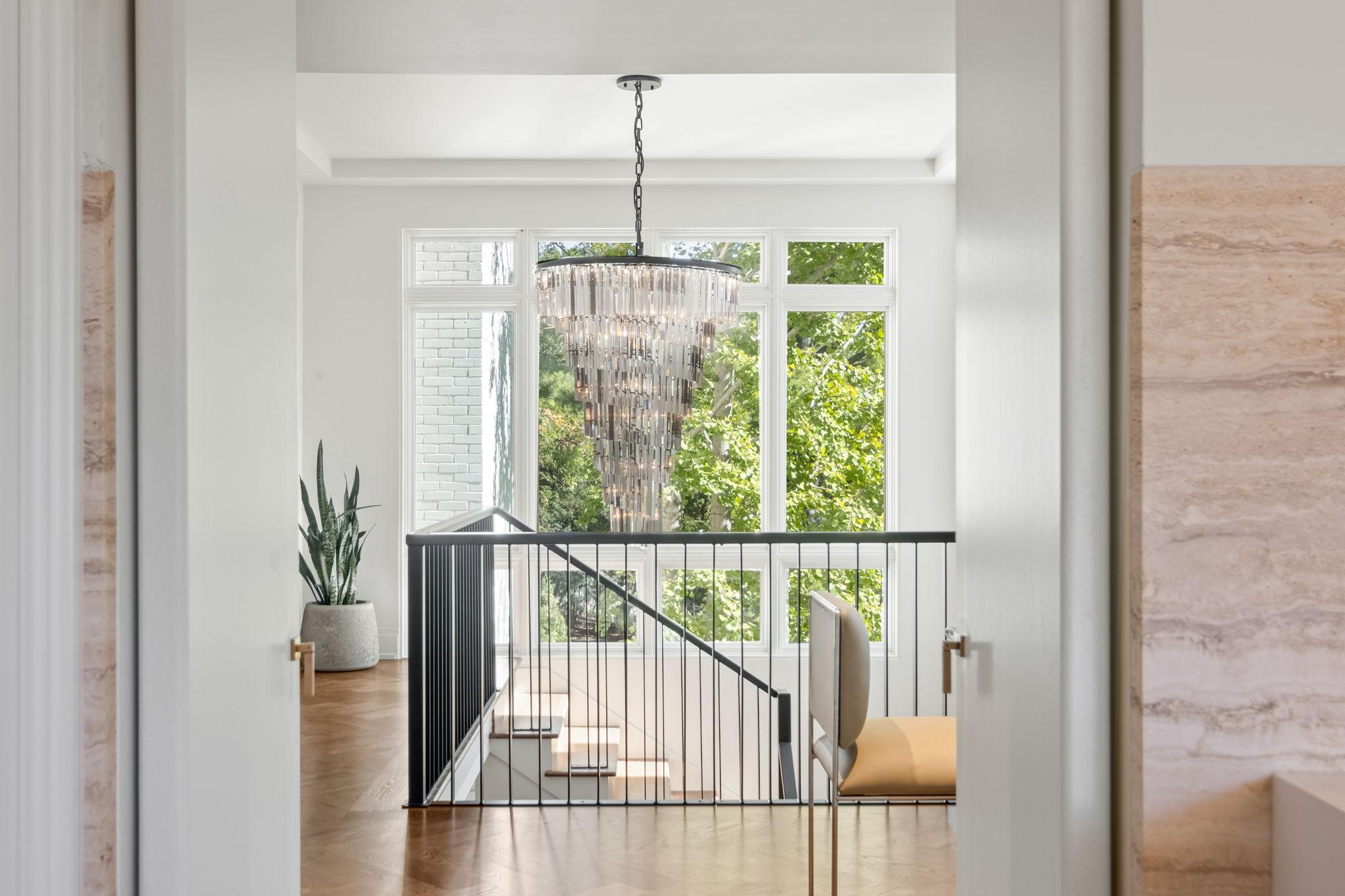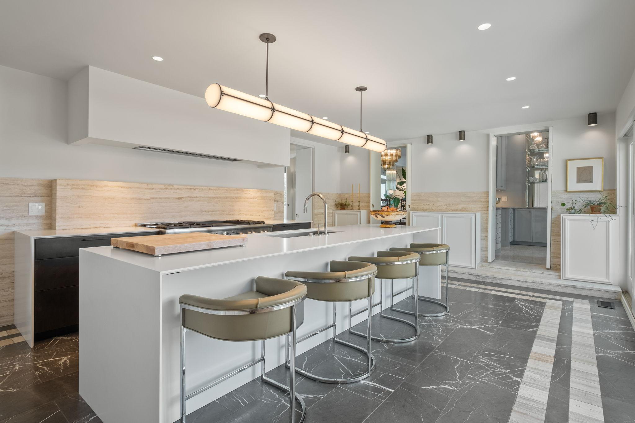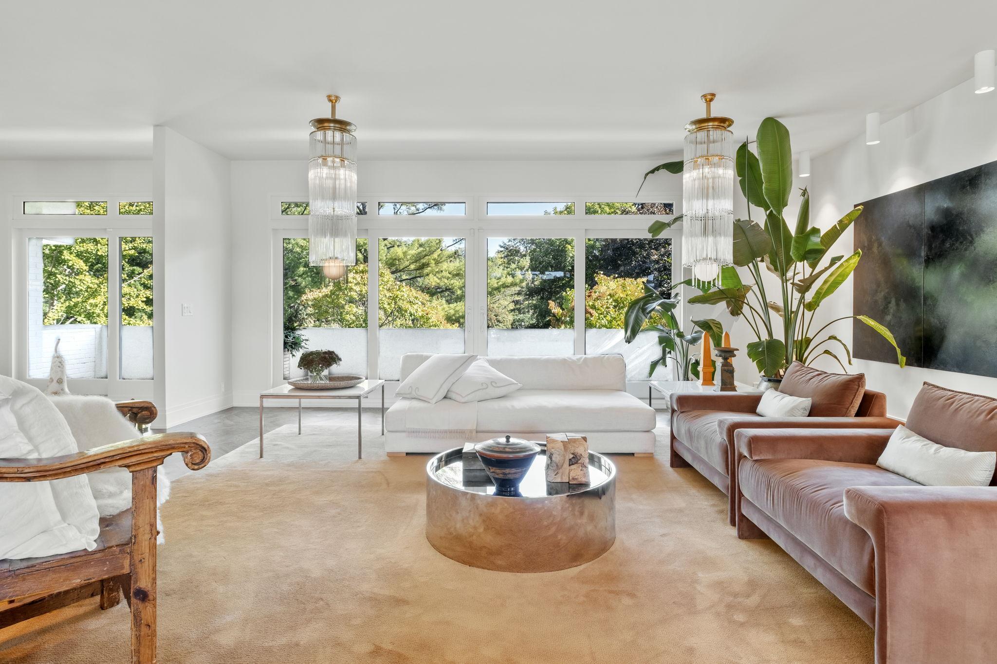 A modernist aerie nestled in the treetops of Edina’s prestigious Indian Hills, this extraordinary contemporary estate has been thoughtfully reimagined with a striking blend of architecture, artistry, and luxury. Set on lushly landscaped acreage behind automatic gates, the home is introduced by a circular auto court and dramatic entry that signals the elegance within. From the moment of arrival, a sense of discovery unfolds — each space revealing itself in a curated progression of light, material, and form. Natural textures like unfilled travertine climb the kitchen walls, while sleek marble and dolomite surfaces define an icy-blue butler’s pantry that opens seamlessly to a heated saltwater pool and multiple outdoor entertaining areas. A newly constructed Ipe Brazilian Walnut deck surrounds the pool, offering a warm, sophisticated setting for relaxation or al fresco gatherings. Inside, light and surface interact in striking ways — with stunning and rare designer light fixtures punctuating key moments throughout the home. Crisp lines, curated materials, and herringbone-patterned white oak floors add warmth and movement to the sleek, modern aesthetic. A full glass solarium brings the outdoors in — a year-round sanctuary for plant life and peaceful reflection. Grand public rooms flow effortlessly, framed by expansive Marvin windows and doors that connect the interior to terraces and patios. A whole-home Sonos audio system, featuring Sonance Invisible Series speakers throughout the upper-level living spaces, fills both indoor and outdoor environments with seamless, ambient sound. The luxurious primary suite is a private retreat, complete with a fireplace, large dressing room, dual walk-in closets, and an expansive marble bath. Two bedrooms on the main level share a playful and inspired designer bathroom, while the two lower-level bedrooms each feature ensuite full marble baths — perfect for guests or multigenerational living. A separate home office adds flexibility, and a second full kitchen in the family room expands entertaining possibilities. With a six-car heated garage, extensive landscape lighting, and exquisite attention to detail throughout, this meticulously maintained estate offers the perfect balance of privacy, sophistication, and modern design in one of Edina’s most coveted neighborhoods.