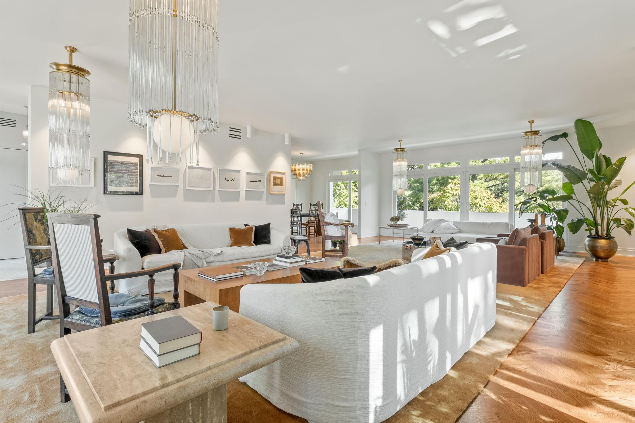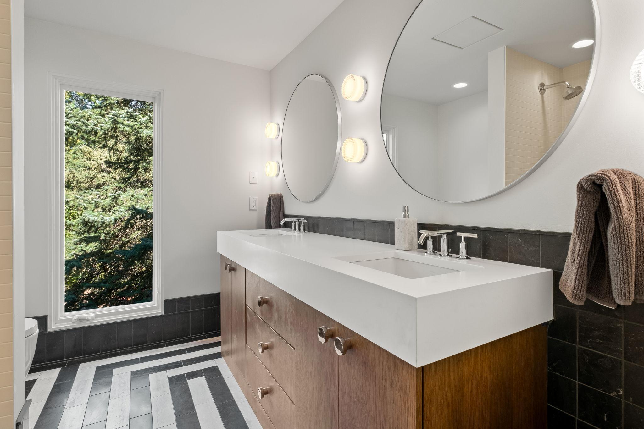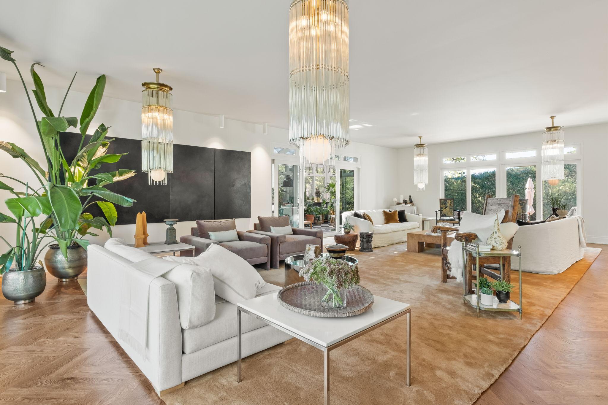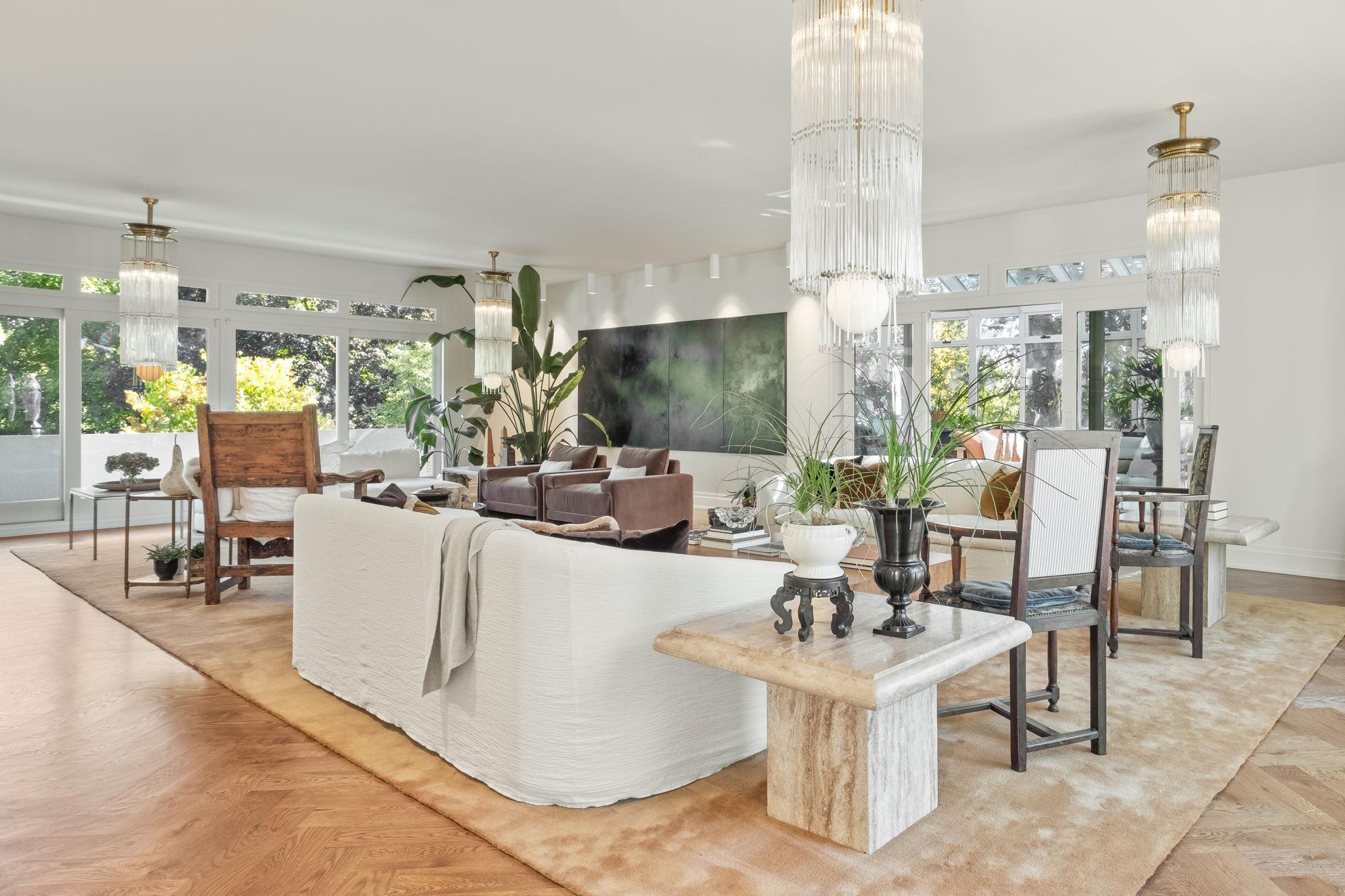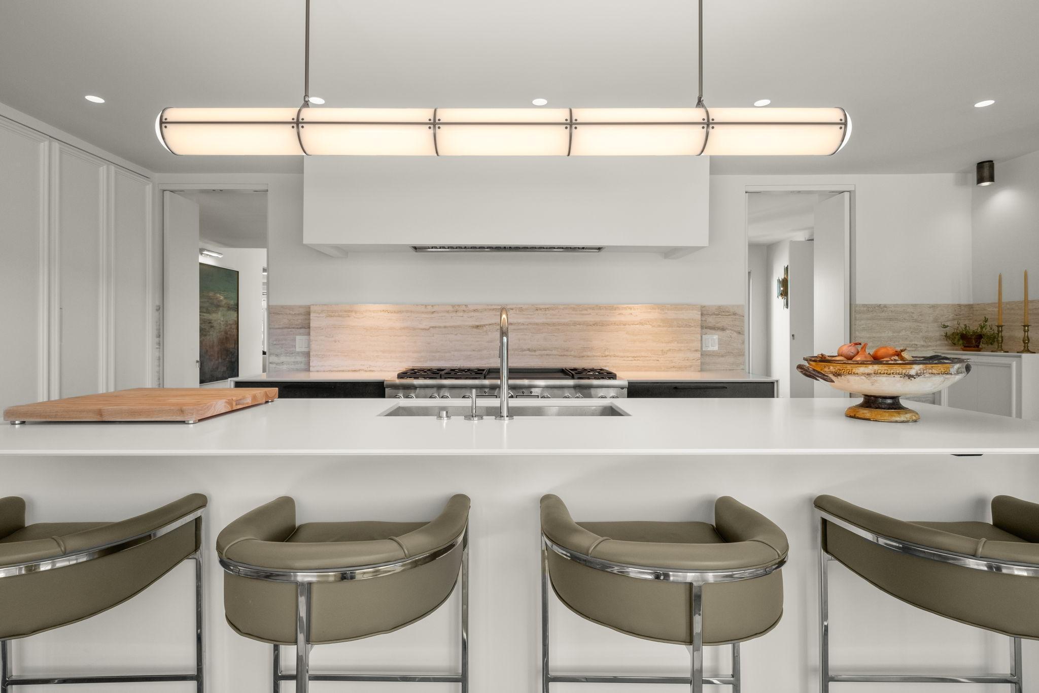 A modernist aerie nestled in the treetops of Edina’s prestigious Indian Hills, this extraordinary contemporary estate has been thoughtfully reimagined with a striking blend of architecture, artistry, and luxury. Set on lushly landscaped acreage behind automatic gates, the home is introduced by a circular auto court and dramatic entry that signals the elegance within. From the moment of arrival, a sense of discovery unfolds — each space revealing itself in a curated progression of light, material, and form. Natural textures like unfilled travertine climb the kitchen walls, while sleek marble and dolomite surfaces define an icy-blue butler’s pantry that opens seamlessly to a heated saltwater pool and multiple outdoor entertaining areas. A newly constructed Ipe Brazilian Walnut deck surrounds the pool, offering a warm, sophisticated setting for relaxation or al fresco gatherings. Inside, light and surface interact in striking ways — with stunning and rare designer light fixtures punctuating key moments throughout the home. Crisp lines, curated materials, and herringbone-patterned white oak floors add warmth and movement to the sleek, modern aesthetic. A full glass solarium brings the outdoors in — a year-round sanctuary for plant life and peaceful reflection. Grand public rooms flow effortlessly, framed by expansive Marvin windows and doors that connect the interior to terraces and patios. A whole-home Sonos audio system, featuring Sonance Invisible Series speakers throughout the upper-level living spaces, fills both indoor and outdoor environments with seamless, ambient sound. The luxurious primary suite is a private retreat, complete with a fireplace, large dressing room, dual walk-in closets, and an expansive marble bath. Two bedrooms on the main level share a playful and inspired designer bathroom, while the two lower-level bedrooms each feature ensuite full marble baths — perfect for guests or multigenerational living. A separate home office adds flexibility, and a second full kitchen in the family room expands entertaining possibilities. With a six-car heated garage, extensive landscape lighting, and exquisite attention to detail throughout, this meticulously maintained estate offers the perfect balance of privacy, sophistication, and modern design in one of Edina’s most coveted neighborhoods.