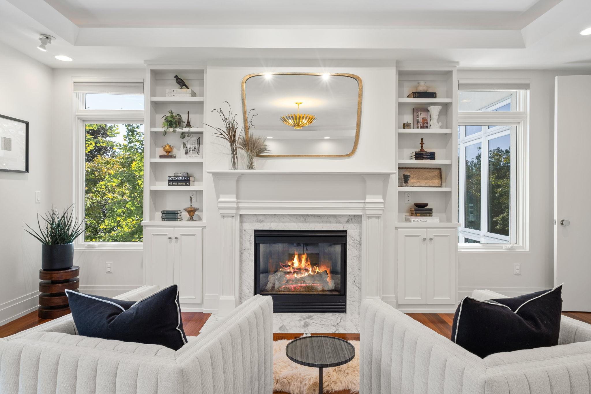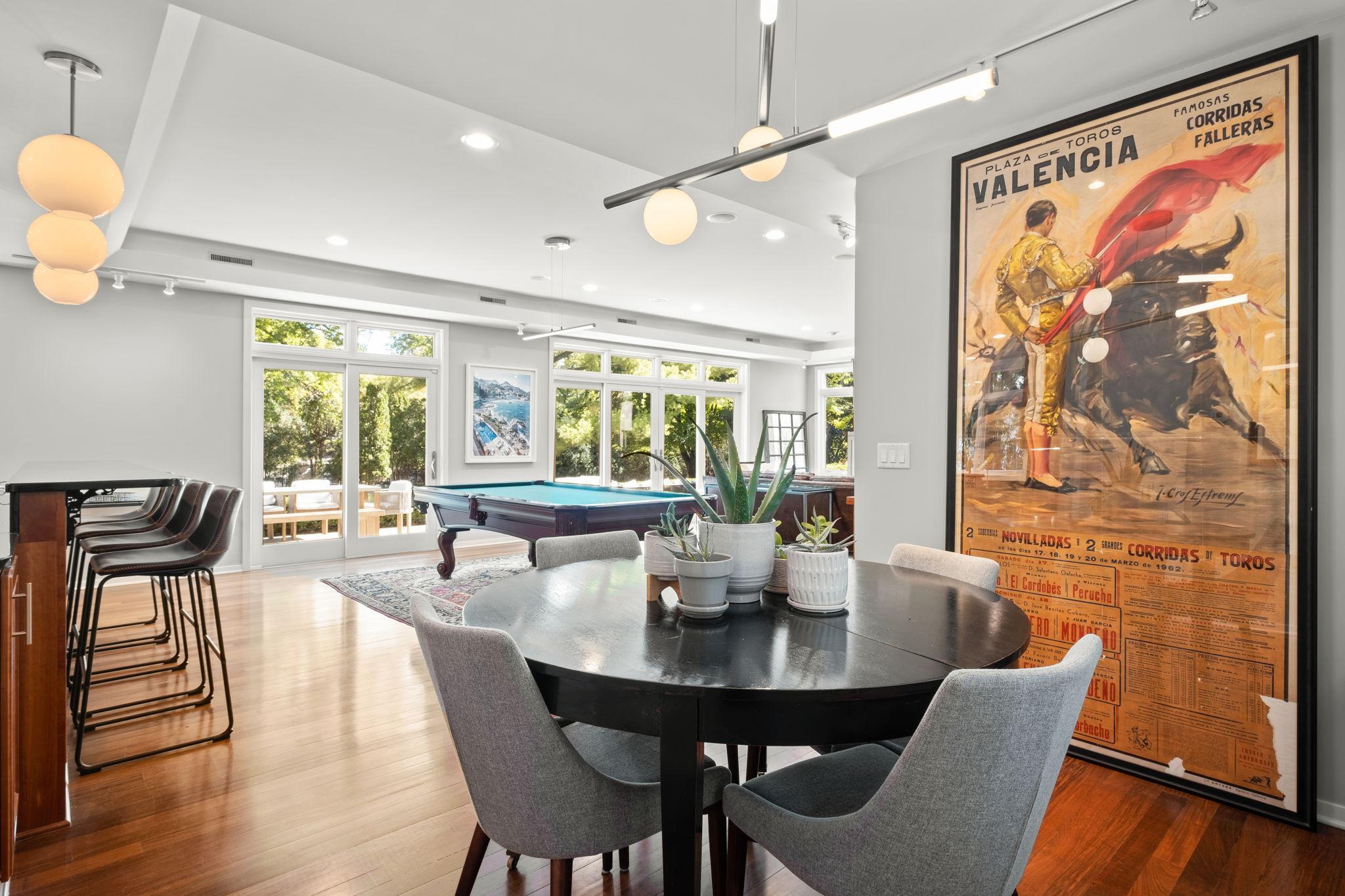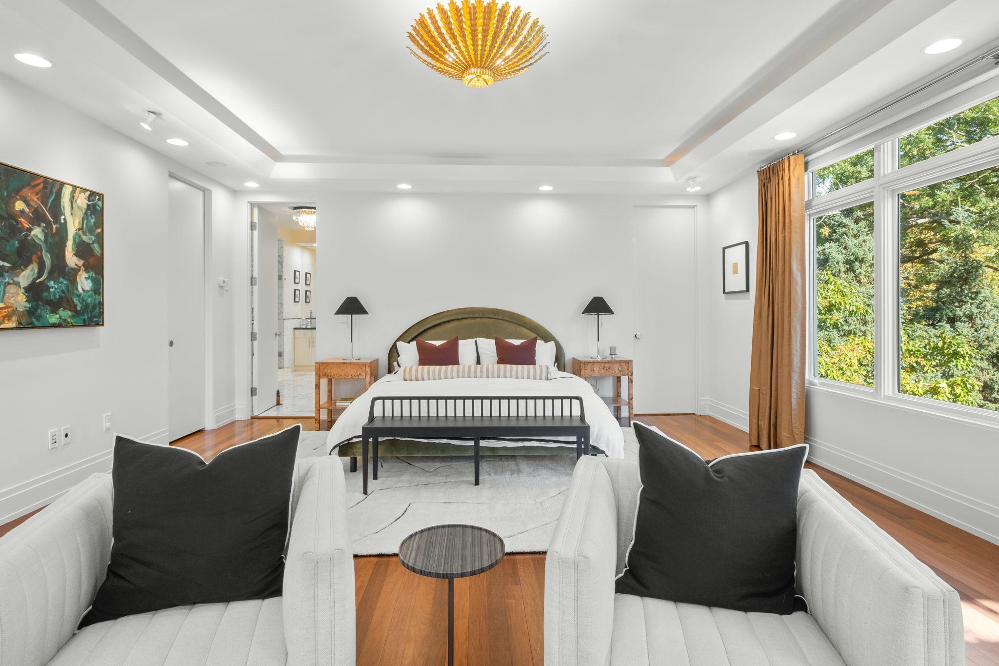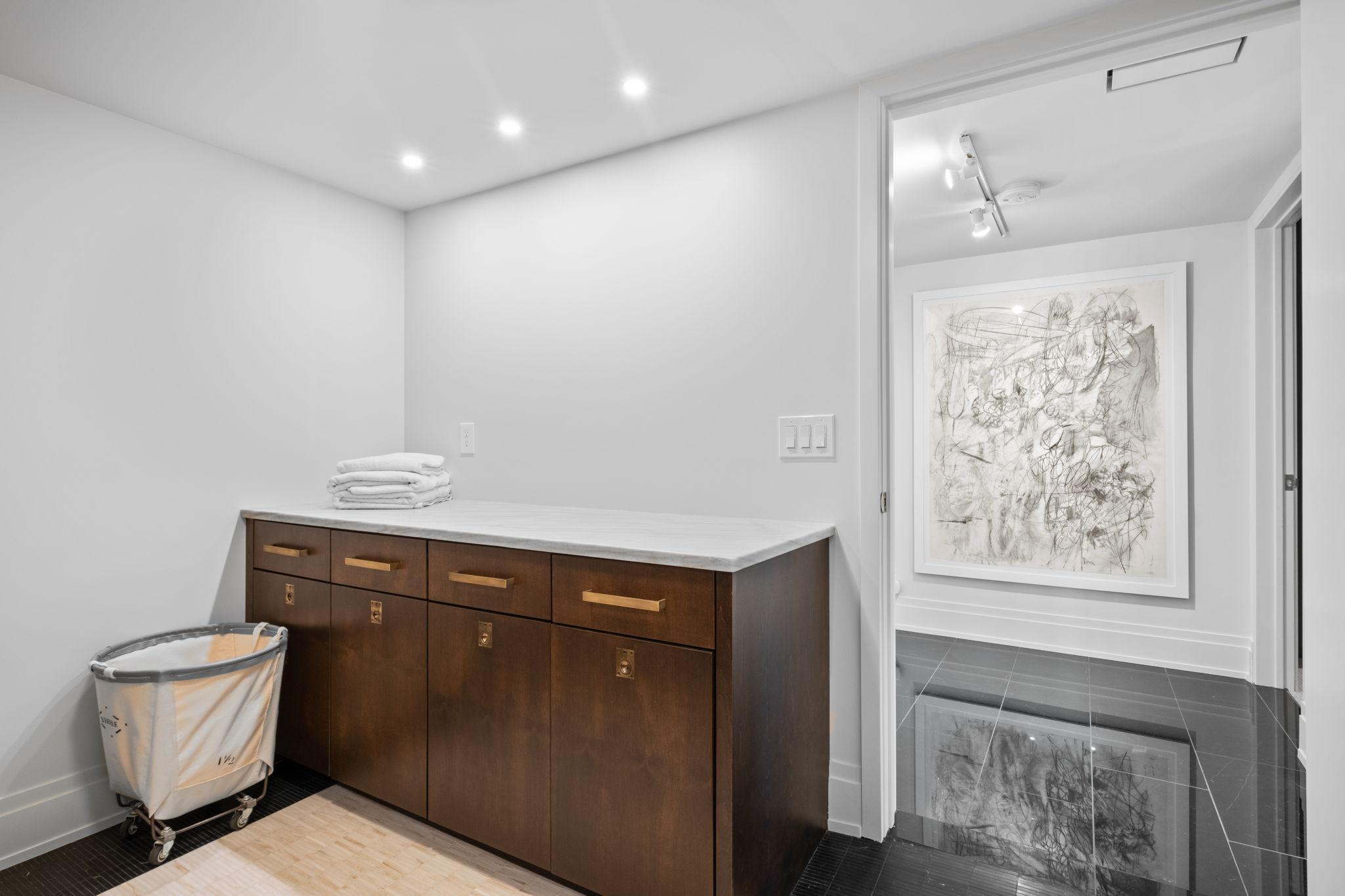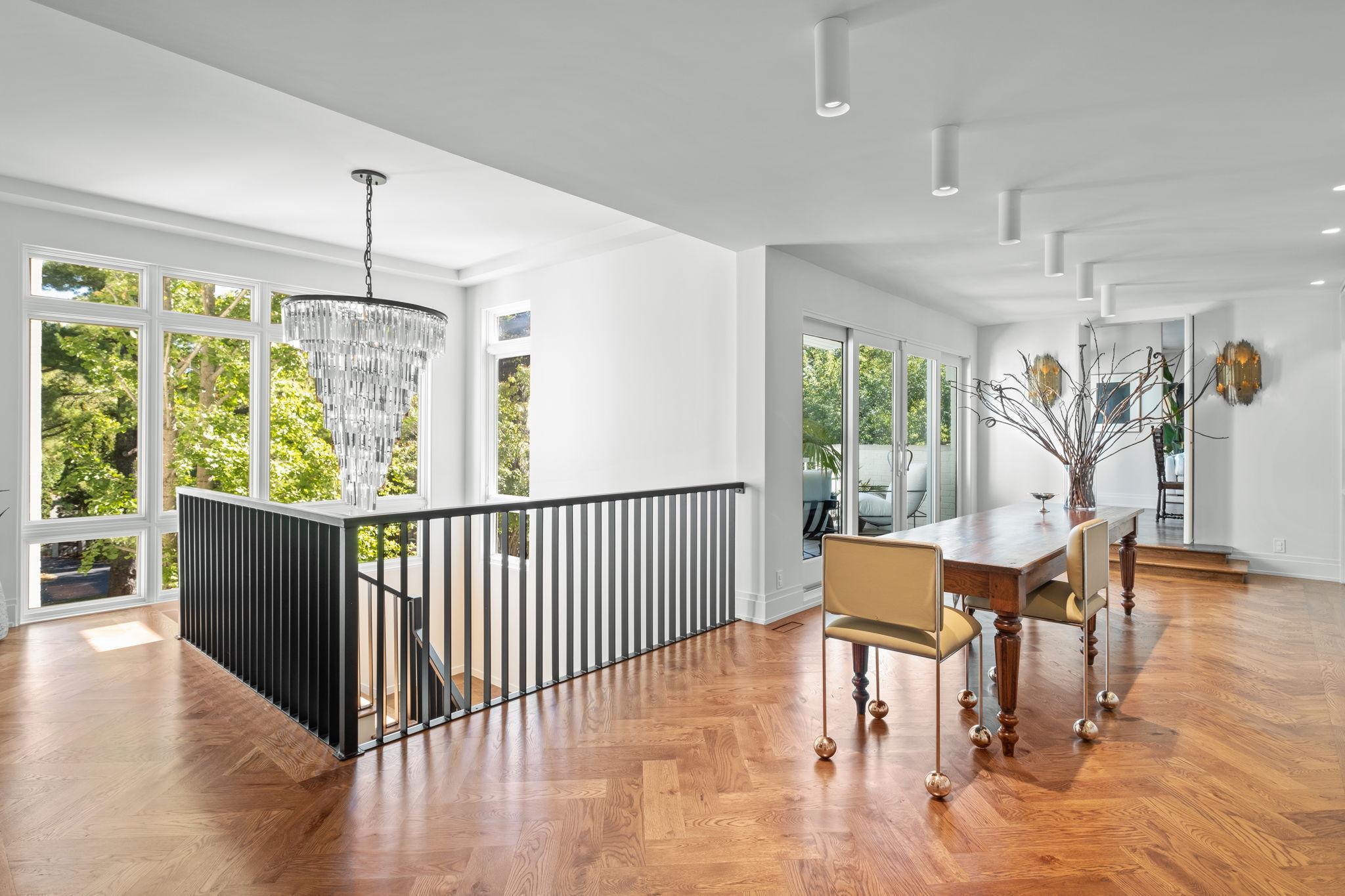 A modernist aerie nestled in the treetops of Edina’s prestigious Indian Hills, this extraordinary contemporary estate has been thoughtfully reimagined with a striking blend of architecture, artistry, and luxury. Set on lushly landscaped acreage behind automatic gates, the home is introduced by a circular auto court and dramatic entry that signals the elegance within. From the moment of arrival, a sense of discovery unfolds — each space revealing itself in a curated progression of light, material, and form. Natural textures like unfilled travertine climb the kitchen walls, while sleek marble and dolomite surfaces define an icy-blue butler’s pantry that opens seamlessly to a heated saltwater pool and multiple outdoor entertaining areas. A newly constructed Ipe Brazilian Walnut deck surrounds the pool, offering a warm, sophisticated setting for relaxation or al fresco gatherings. Inside, light and surface interact in striking ways — with stunning and rare designer light fixtures punctuating key moments throughout the home. Crisp lines, curated materials, and herringbone-patterned white oak floors add warmth and movement to the sleek, modern aesthetic. A full glass solarium brings the outdoors in — a year-round sanctuary for plant life and peaceful reflection. Grand public rooms flow effortlessly, framed by expansive Marvin windows and doors that connect the interior to terraces and patios. A whole-home Sonos audio system, featuring Sonance Invisible Series speakers throughout the upper-level living spaces, fills both indoor and outdoor environments with seamless, ambient sound. The luxurious primary suite is a private retreat, complete with a fireplace, large dressing room, dual walk-in closets, and an expansive marble bath. Two bedrooms on the main level share a playful and inspired designer bathroom, while the two lower-level bedrooms each feature ensuite full marble baths — perfect for guests or multigenerational living. A separate home office adds flexibility, and a second full kitchen in the family room expands entertaining possibilities. With a six-car heated garage, extensive landscape lighting, and exquisite attention to detail throughout, this meticulously maintained estate offers the perfect balance of privacy, sophistication, and modern design in one of Edina’s most coveted neighborhoods.