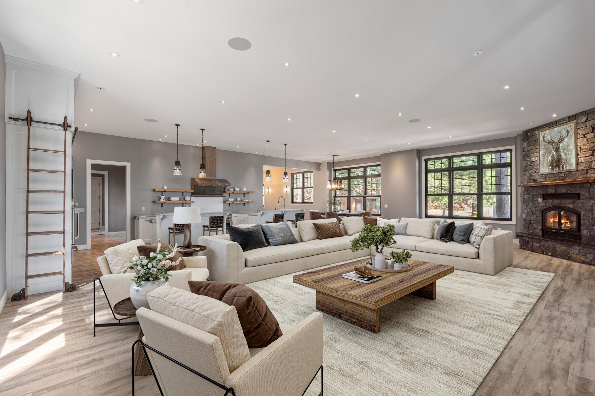 Discover an extraordinary Whitefish Lake retreat, where luxury meets nature in this stunning grand residence. This newer, custom-built home captivates with its grand front entry, featuring bespoke double doors that open to an expansive, open-concept floor plan. Soaring ceilings and abundant natural light create an inviting ambiance, seamlessly connecting the living spaces to the serene surroundings. Nestled among towering pines, the home boasts a breathtaking four-season porch, perfect for year-round relaxation with panoramic views of Lower Whitefish Lake. Below, a charming beach house fronts a pristine, sandy beach, offering an idyllic lakeside escape. Whether savoring morning coffee in the main residence or soaking up the sun by the water, you’ll find it hard to choose where to spend your day. The primary suite is a private sanctuary, complete with cozy sitting areas and a secluded covered deck overlooking the lake—ideal for quiet evenings or morning retreats. Spacious guest rooms feature custom built-in, full-size bunk beds, delighting kids and adults alike with their charm and comfort. The lower level offers a versatile entertainment space, perfect for hosting gatherings or unwinding after a day on the lake. This Whitefish Lake gem blends modern elegance with timeless lakefront living, creating a haven where every day feels like a vacation. Don’t miss the chance to own this remarkable property, where memories are made in both the sophisticated main home and the inviting beach house.
