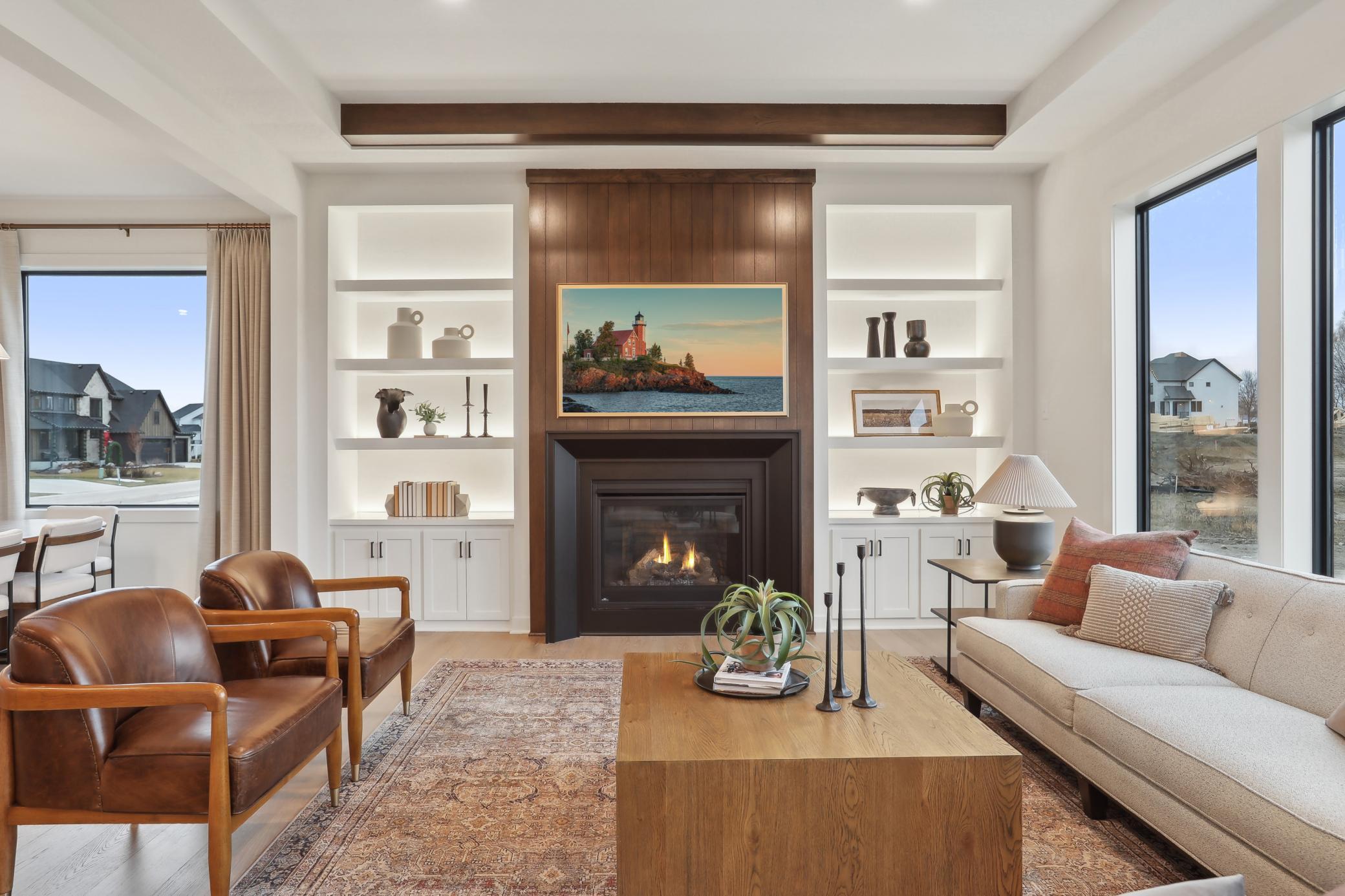 Discover the SUTTON SPORT in Evanswood! The main level impresses with 10’ ceilings, a raised ceiling adorned with wood beams, a sink on the exterior wall, dual kitchen islands, a unified dining area, and a inviting sunroom with a fireplace and vaulted ceiling. Upstairs, the ‘Great Hall’ leads to a stunning Owner’s Suite with a spa-inspired bathroom, Jack and Jill bedrooms, a Junior Suite, and a flexible bonus room. The fully finished lower level features an indoor Sport Center with a spacious exercise area, wet bar, and game zone. Located in the Evanswood community, enjoy a pool, clubhouse, and proximity to a new elementary school (opening soon) and Maple Grove High School. Hanson Builders offers 31 homesites with picturesque wooded, pond, creek, and walkout lot views. AVAILABLE FOR QUICK MOVE IN!