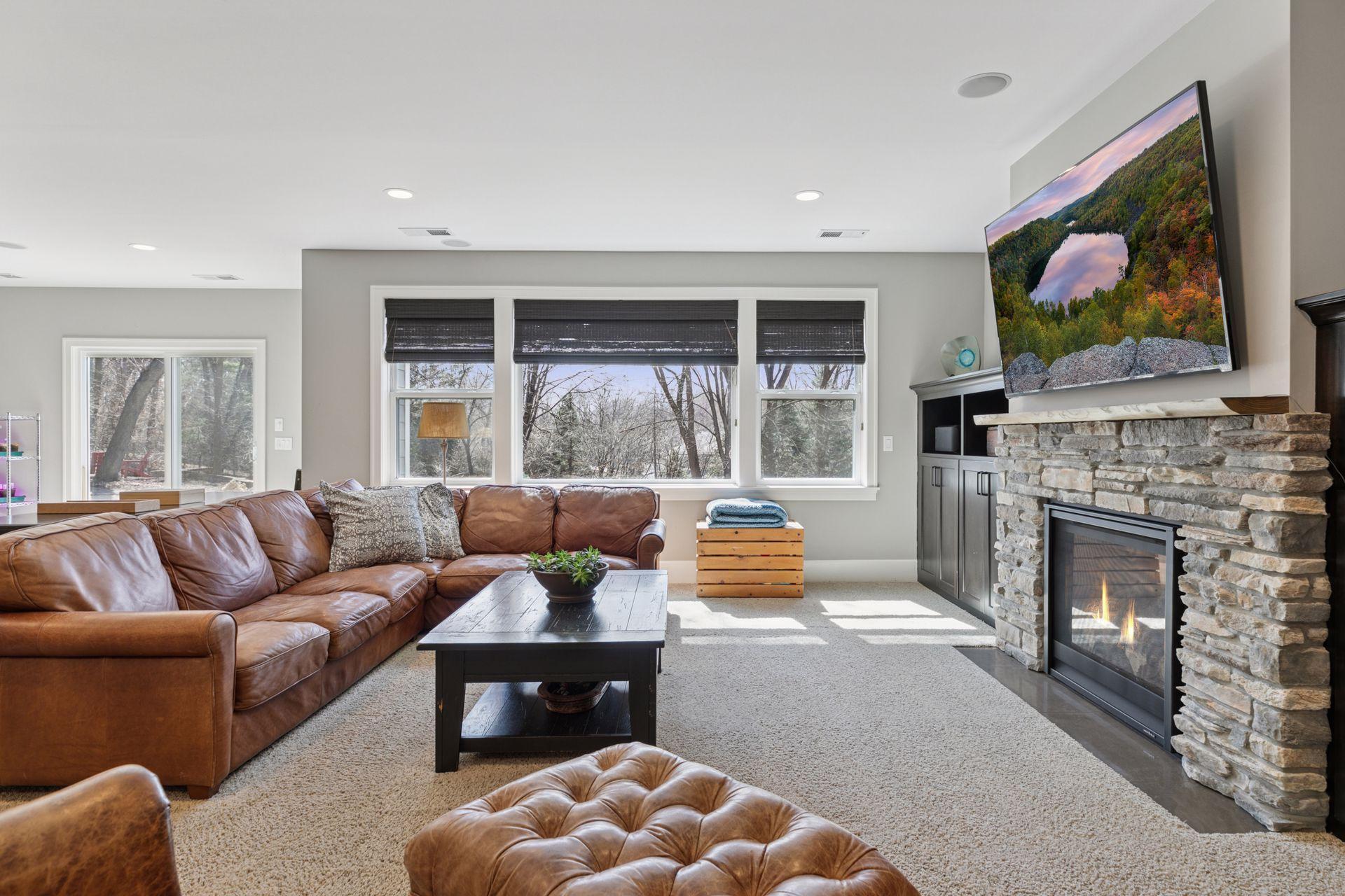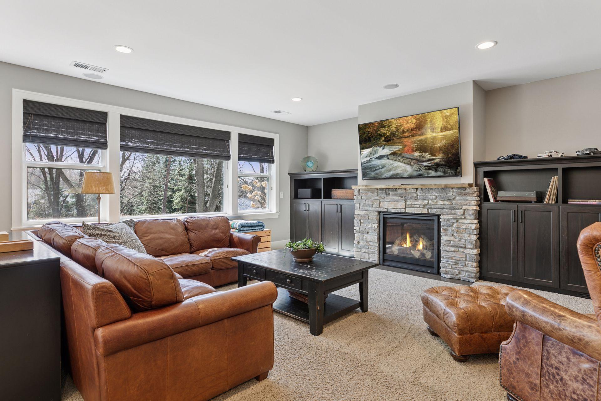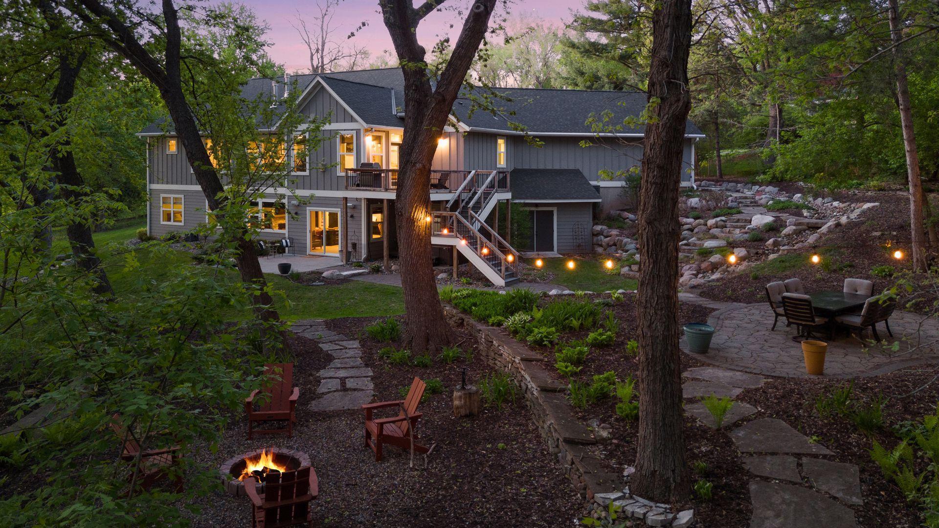 Discover this truly magnificent 4-bedroom, 4-bath estate, built in 2015, offering the perfect blend of sophistication, modern design, and unparalleled luxury. Serenely set on a beautifully landscaped .86 acre private wooded lot in magical Mendota Heights, this home is a rare gem, meticulously crafted to cater to both your lifestyle and entertaining needs. As you step inside, you’ll be greeted by a grand, open-concept layout where no detail has been overlooked. The gourmet kitchen is a chef's dream, featuring granite and quartz countertops, an oversized island designed for seating, separate Sub-Zero refrigerator and freezer, and a Wolf double oven stovetop complete with a pot filler for ultimate convenience. The space is further enhanced by a pantry and a hidden storage cabinet with custom shelves seamlessly tucked between the kitchen and dining room, offering both elegance and functionality. The living areas are bathed in natural light from large windows that frame breathtaking views of the heavily wooded lot. A gas fireplace in the sitting room creates a cozy ambiance, while the formal dining room, adjacent to the front entry, is perfect for hosting elegant gatherings. The large mudroom offers a second entrance to the home and is thoughtfully designed with ample space for coats and shoes, a built-in desk, and a chalkboard for family messages. The private 3-car garage is set up to be heated, ensuring year-round comfort. It’s conveniently located just off the mudroom and offers additional storage space. The oversized laundry room also provides exceptional storage and functionality. For added comfort and convenience, the home features an advanced energy efficient air-exchange ventilation system ensuring optimal air quality throughout the home. The opulent primary suite is a true sanctuary, featuring a private bath with a clawfoot tub, separate walk-in shower, and a dedicated toilet area. The bathroom is completed with stunning quartz countertops, while a large walk-in closet offers ample space for your wardrobe. Just outside the private Owner’s Suite, you’ll find a dedicated home office featuring custom built-ins and a large window that overlooks the front of the property. It’s the perfect spot for focused work or quiet reading, blending functionality with a pleasant view and natural light The expansive walkout lower level is a true entertainer's paradise, offering a versatile layout that includes 3 generously sized bedrooms. One of these is a luxurious guest suite with an en-suite 3/4 bath, while two additional bedrooms each feature walk-in closets and ample space. A dedicated workout room provides a private space for fitness (and could be used as a second office, or additional bedroom). The oversized family room, complete with a gas fireplace and kitchenette, is perfect for hosting gatherings or enjoying quiet evenings. Step outside to your private outdoor paradise, where a hot tub and additional areas for dining or bonfire gatherings await, all surrounded by the tranquil beauty of your wooded lot. Every aspect of this home has been thoughtfully designed with entertaining and luxury in mind. From the high-end finishes to the seamless flow of the living spaces, this residence offers an unparalleled living experience. This is a once-in-a-lifetime opportunity to own a piece of luxury in a truly unique setting.