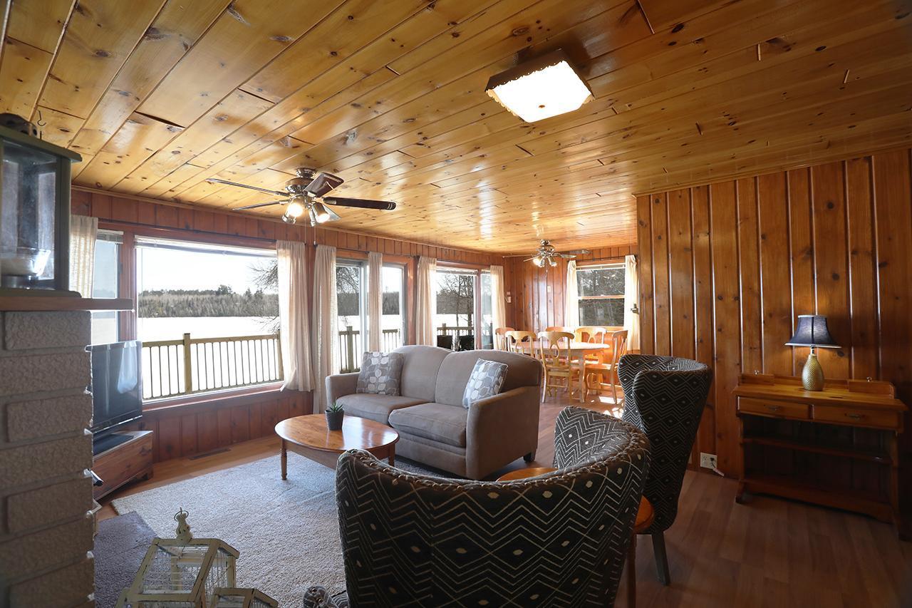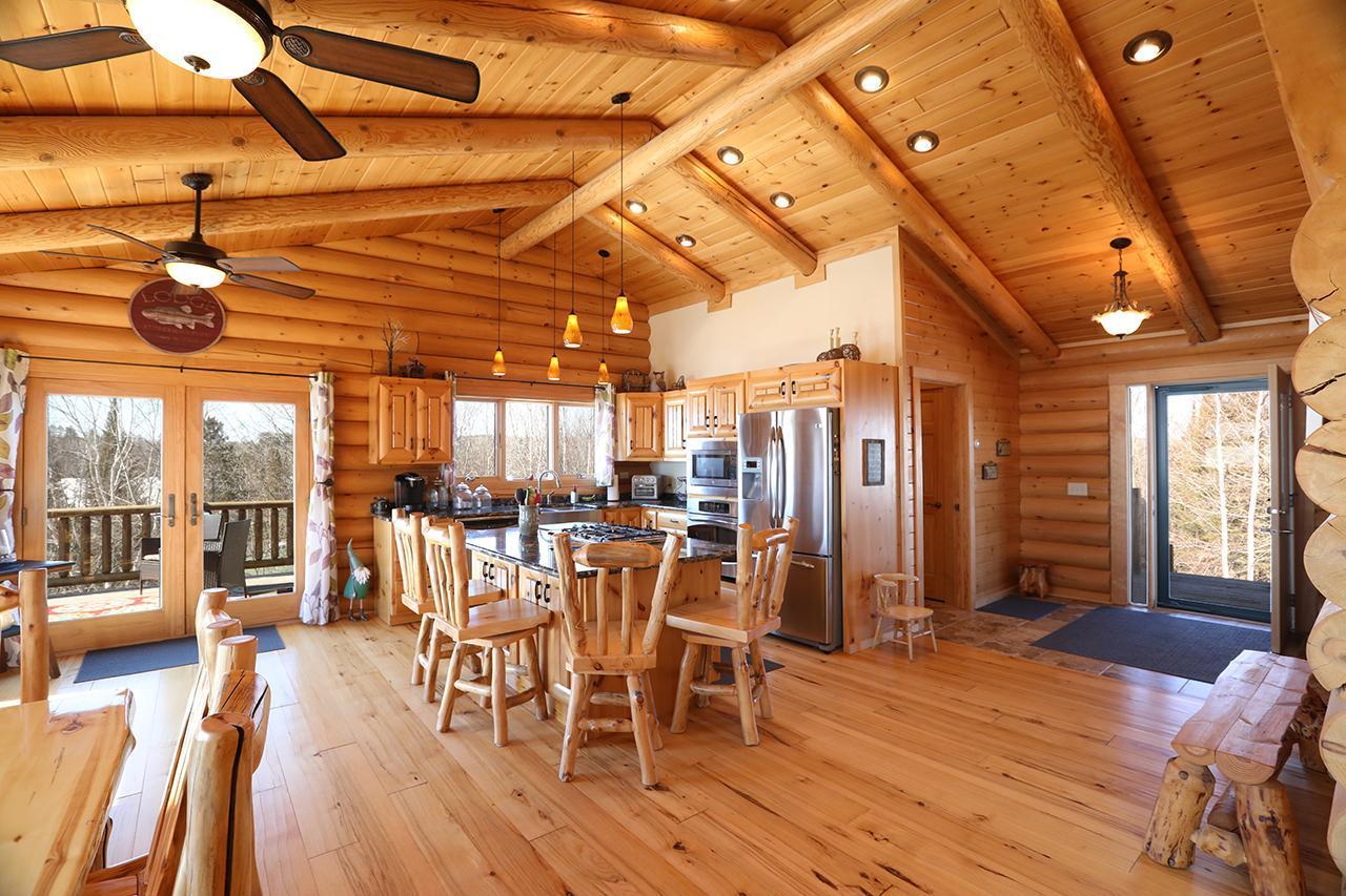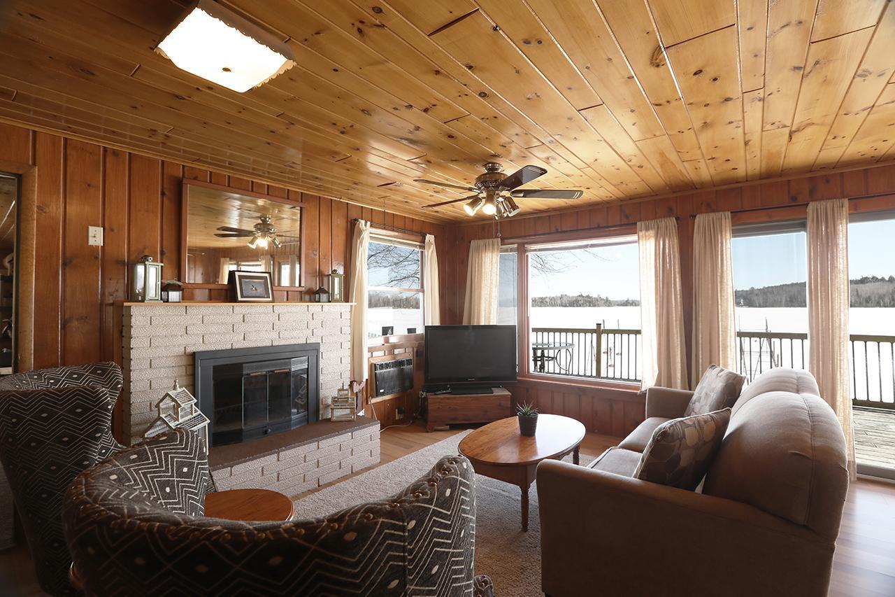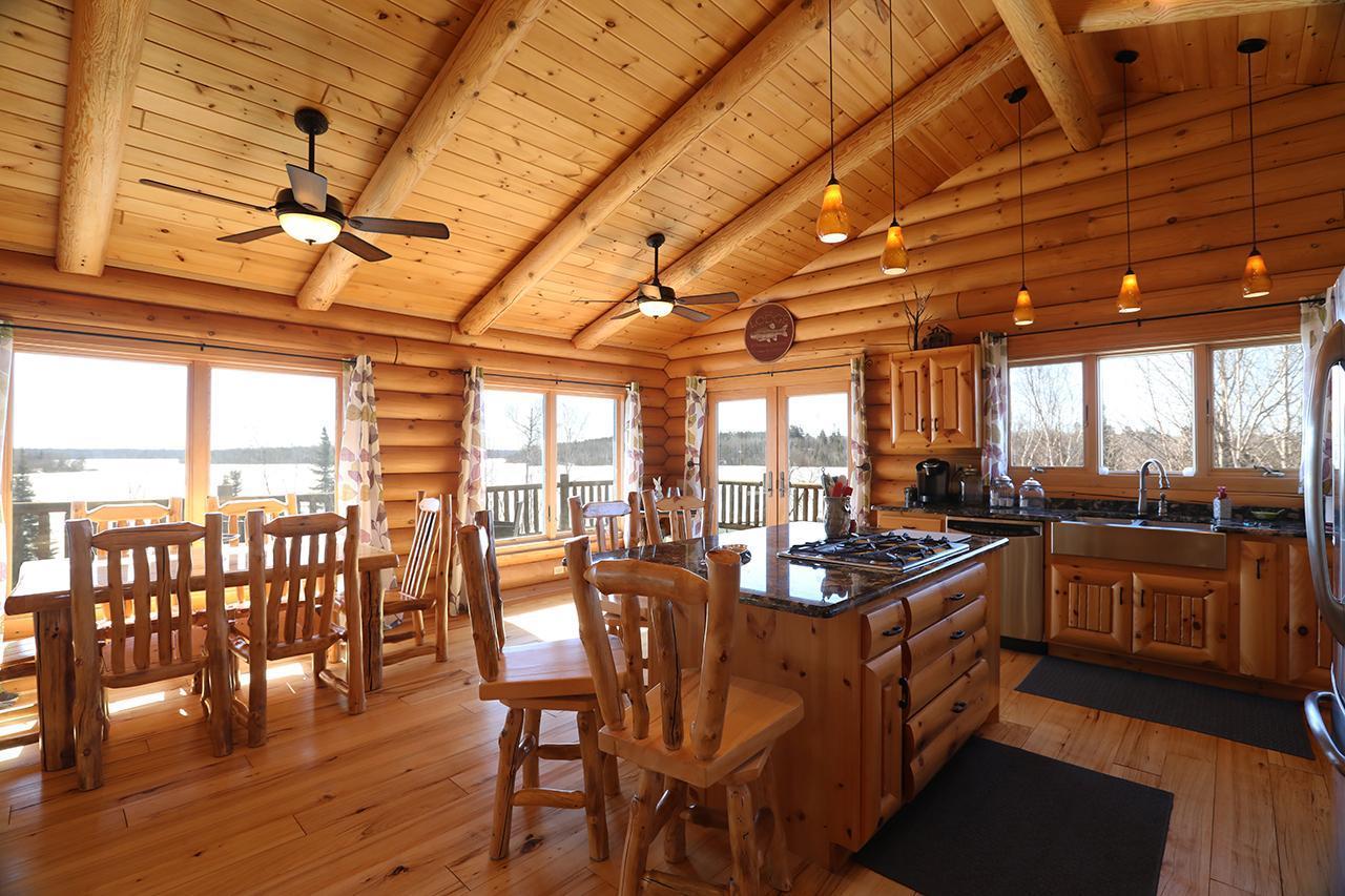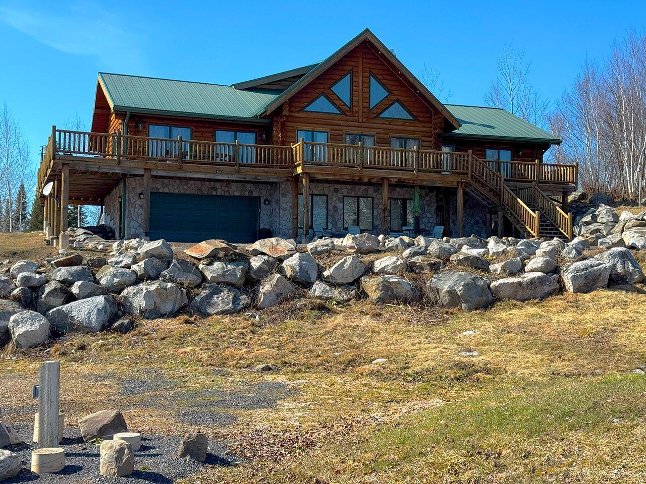 Lake Vermilion Log Home: Rare South Facing 3+BR, 3 BA, Like New 3287 SF Voyageur Log Home, Yr Rnd 2+BR Guest Cab W/Own Well & Septic, Att & Det Gar, Boathouse, 2.5 Acres & 362 Ft Shore W/Island Studded Views of Wolf Bay! Granite/stainless lakeside kitch w/island open to glassed dining & two story great rm w/flr to ceiling Anderson windows, stone gas firepl, Hickory flr, glass drs open to wrap deck. Main flr: Luxurious primary suite, guest BR & BA, sunroom. laundry. Log loft. Walkout LL offers tuck under garage, guest BR & sauna BA, rec rm w/stone gas firepl open to lakefront patio. In flr heat, drilled well, backup generator. Metal roof. Access Broadband internet. 3 docks. Please review features sheet & click links for 3D Tours!
