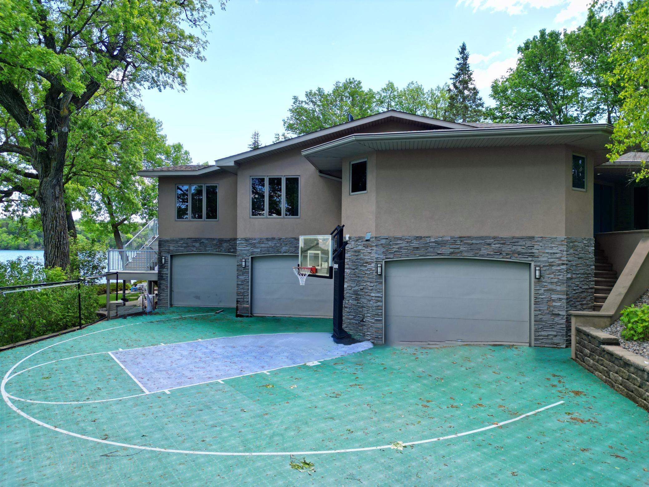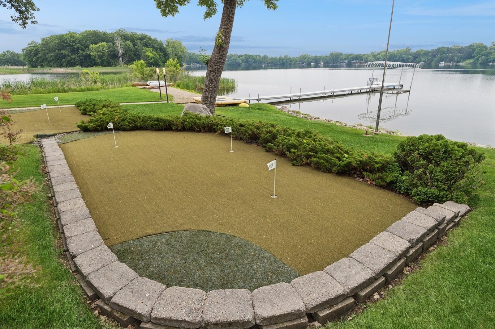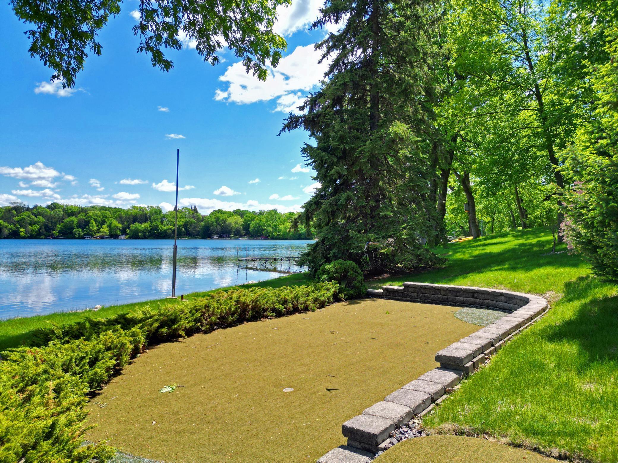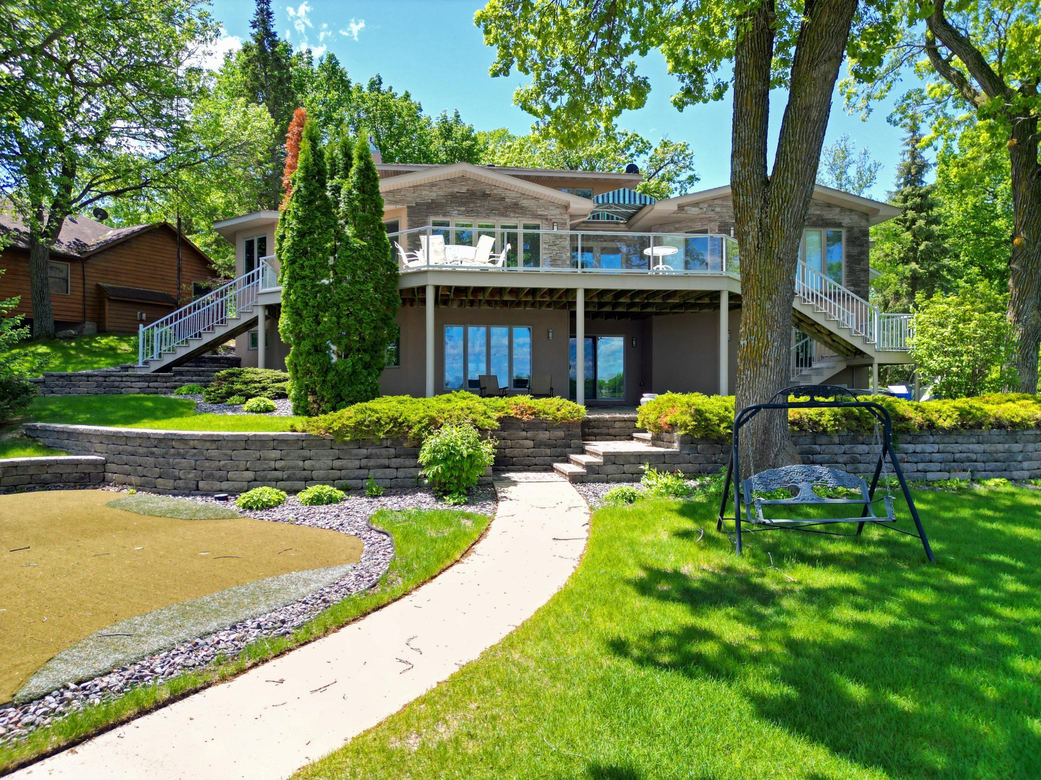 Every detail has been carefully curated at this exceptional lakeside estate—where over 2 acres of manicured grounds, wetlands, and outdoor amenities come together to offer an unmatched living experience. From the moment you arrive, the landscape sets the tone. Impeccably maintained and thoughtfully planned, the exterior features lush lawns, stone-lined garden beds, and mature trees that create a private, park-like setting. A custom lakeside putting green is ideal for golf enthusiasts, while a basketball sport court offers seasonal recreation. The sandy beach shoreline is perfect for swimming, paddleboarding, or launching a boat for watersports or a sunset cruise. Multiple composite decks and patios provide expansive outdoor space for dining, relaxing, or entertaining. Inside, the home features three bedrooms on the upper level adjacent to a bathroom. The main level features a spacious primary suite with a lakeside sitting area, double walk-in closets, private laundry, and a full ensuite bath with jetted tub, dual sinks, and a private water closet. In addition there is a private office with separate entrance. The main level great room includes vaulted ceilings, panoramic lake views, a gas fireplace, and an adjoining dining space with a built-in hutch, plus a flexible area for a game table or reading nook. A dumb waiter adds functionality by transporting groceries from the garage level to the hallway adjacent to the kitchen. The lower level includes a recreation room with walkout access, as well as an additional room that can function as an office or art studio with lake views. A multi-bay garage provides ample storage for vehicles, boats, and outdoor gear—ideal for seasonal living or year-round use. From its professionally landscaped exterior to its versatile and well-planned interior, this property offers both function and leisure in a peaceful lakeside setting. Whether you're looking for everyday comfort or resort-style recreation, this home delivers on all fronts. Welcome to Henderson Lake!
