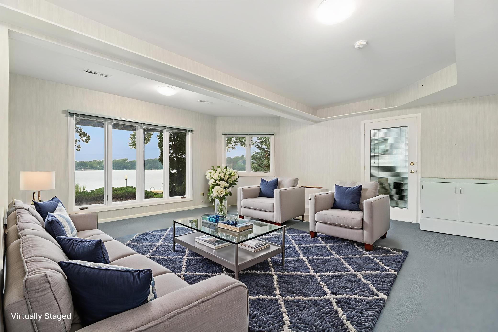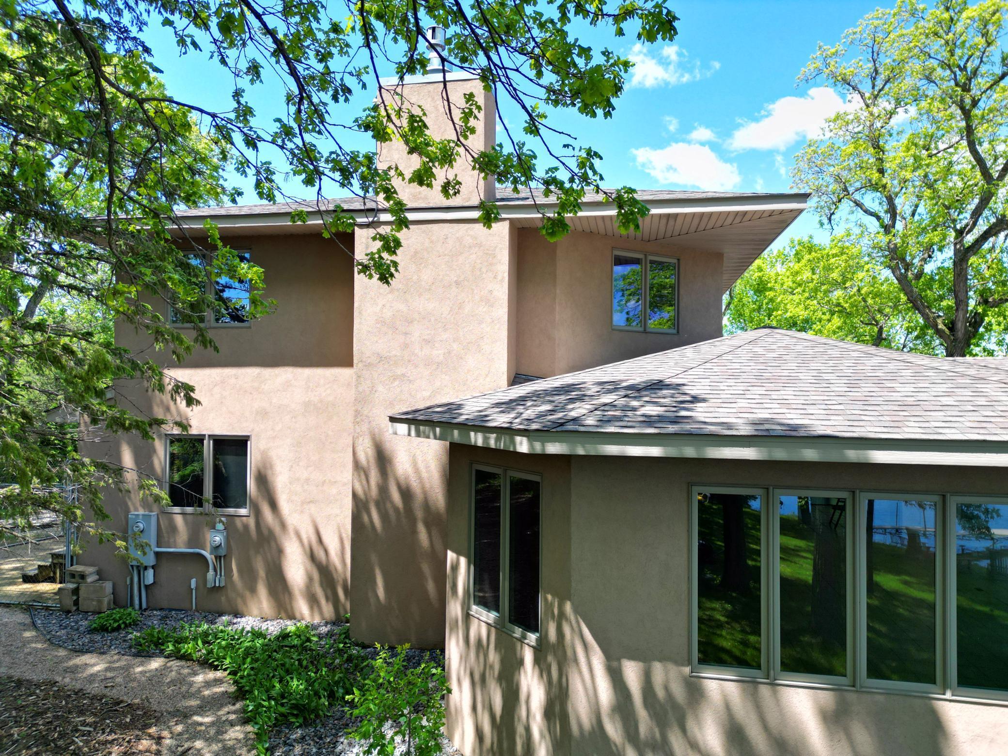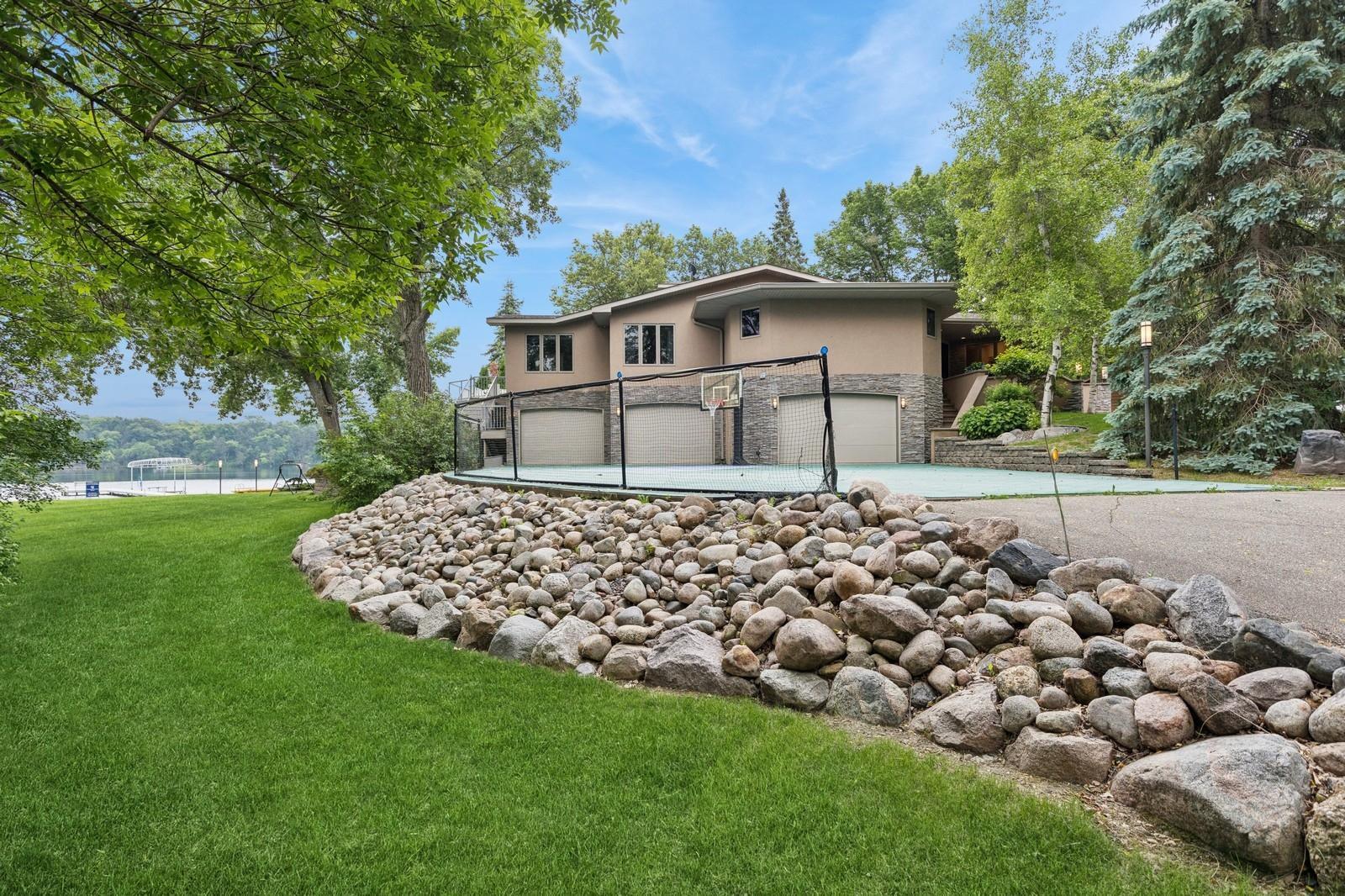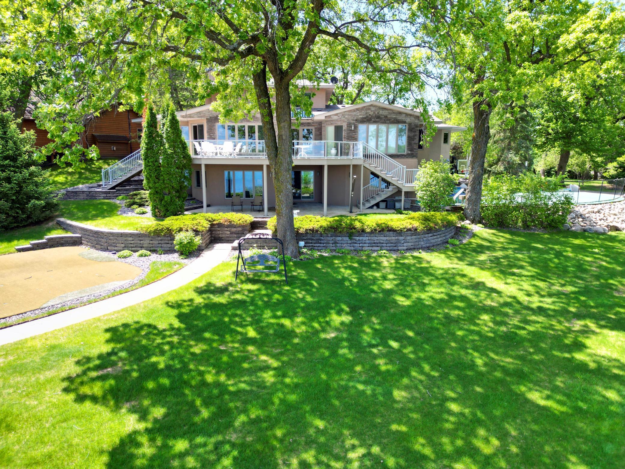 Every detail has been carefully curated at this exceptional lakeside estate—where over 2 acres of manicured grounds, wetlands, and outdoor amenities come together to offer an unmatched living experience. From the moment you arrive, the landscape sets the tone. Impeccably maintained and thoughtfully planned, the exterior features lush lawns, stone-lined garden beds, and mature trees that create a private, park-like setting. A custom lakeside putting green is ideal for golf enthusiasts, while a basketball sport court offers seasonal recreation. The sandy beach shoreline is perfect for swimming, paddleboarding, or launching a boat for watersports or a sunset cruise. Multiple composite decks and patios provide expansive outdoor space for dining, relaxing, or entertaining. Inside, the home features three bedrooms on the upper level adjacent to a bathroom. The main level features a spacious primary suite with a lakeside sitting area, double walk-in closets, private laundry, and a full ensuite bath with jetted tub, dual sinks, and a private water closet. In addition there is a private office with separate entrance. The main level great room includes vaulted ceilings, panoramic lake views, a gas fireplace, and an adjoining dining space with a built-in hutch, plus a flexible area for a game table or reading nook. A dumb waiter adds functionality by transporting groceries from the garage level to the hallway adjacent to the kitchen. The lower level includes a recreation room with walkout access, as well as an additional room that can function as an office or art studio with lake views. A multi-bay garage provides ample storage for vehicles, boats, and outdoor gear—ideal for seasonal living or year-round use. From its professionally landscaped exterior to its versatile and well-planned interior, this property offers both function and leisure in a peaceful lakeside setting. Whether you're looking for everyday comfort or resort-style recreation, this home delivers on all fronts. Welcome to Henderson Lake!
