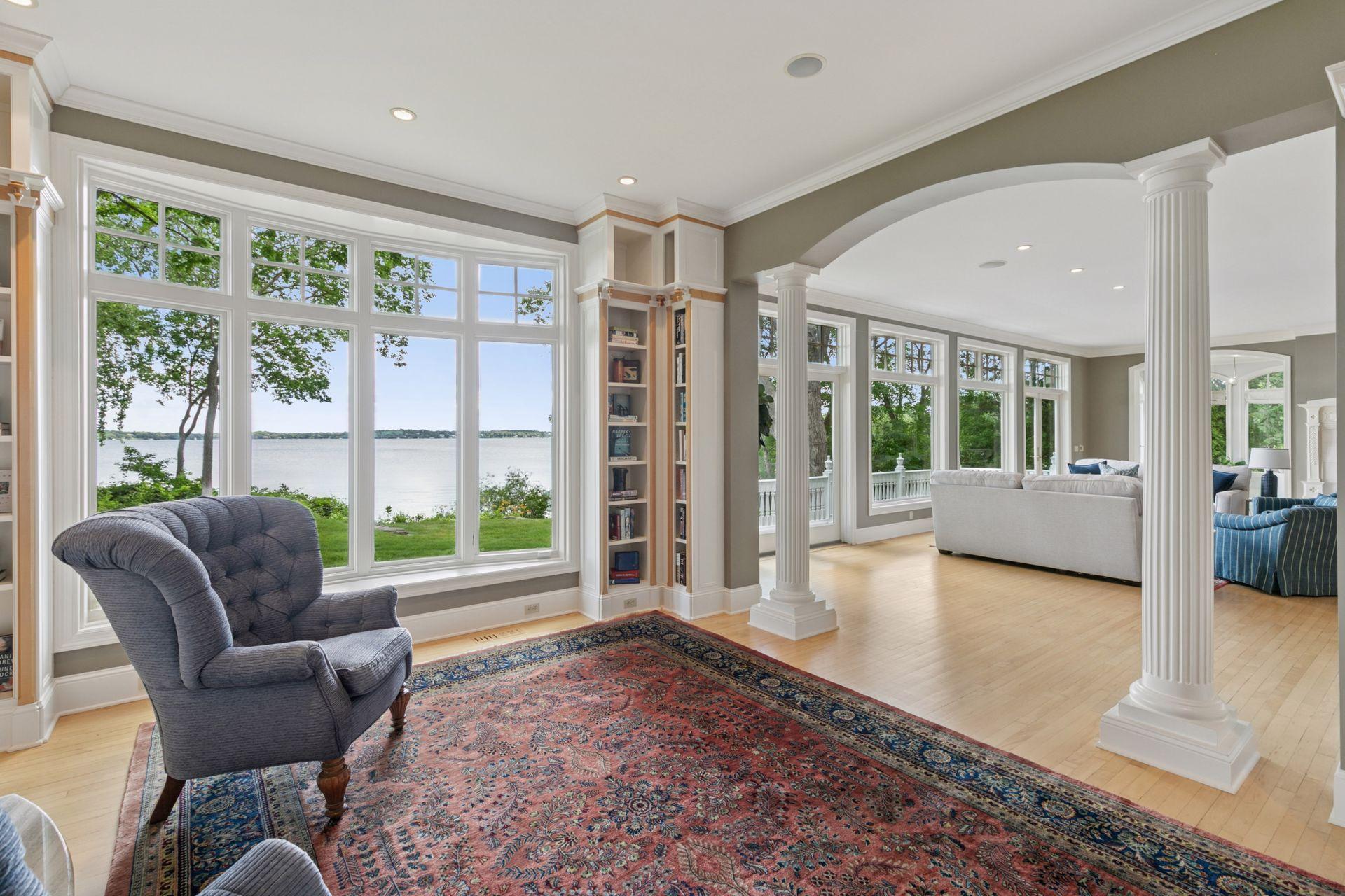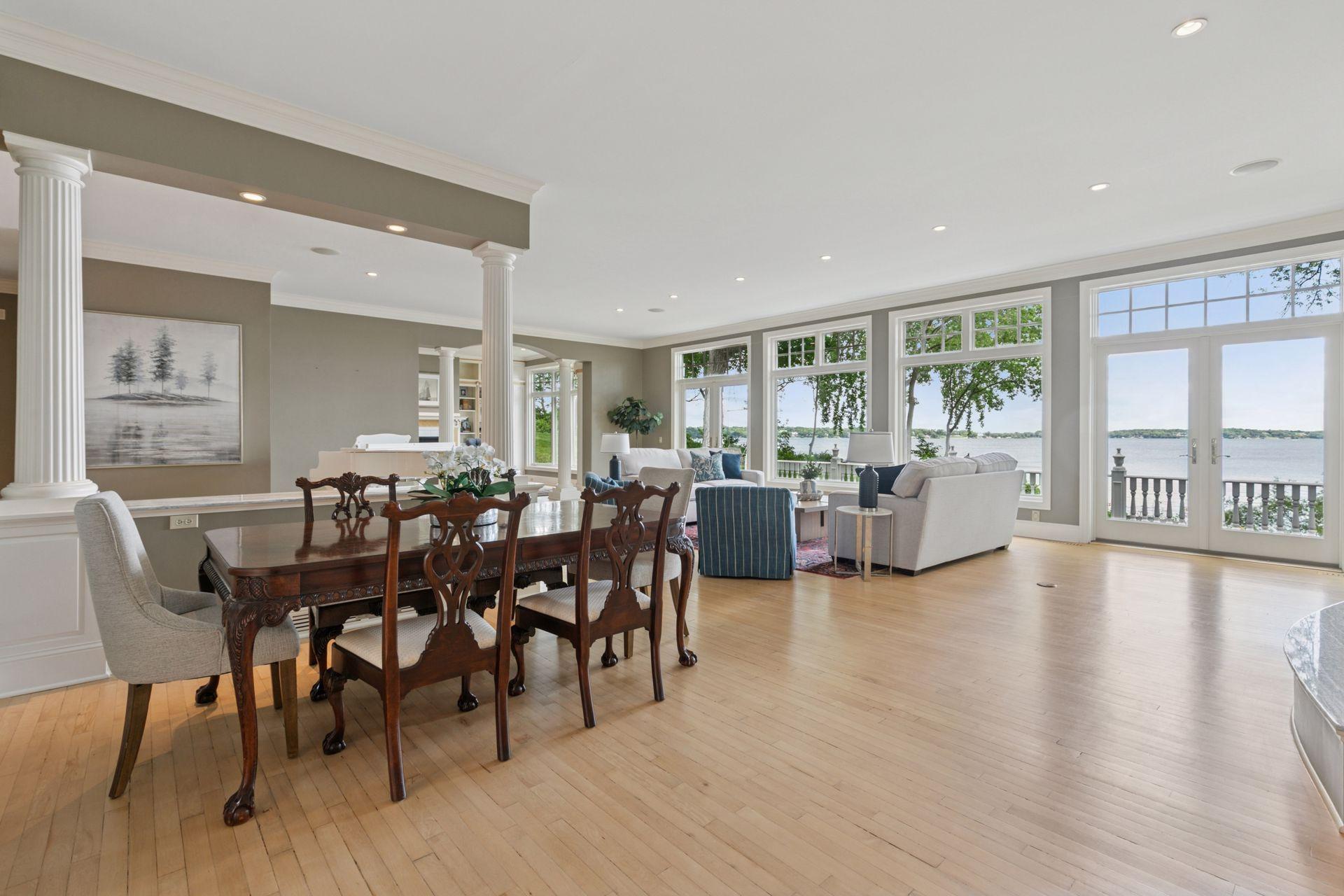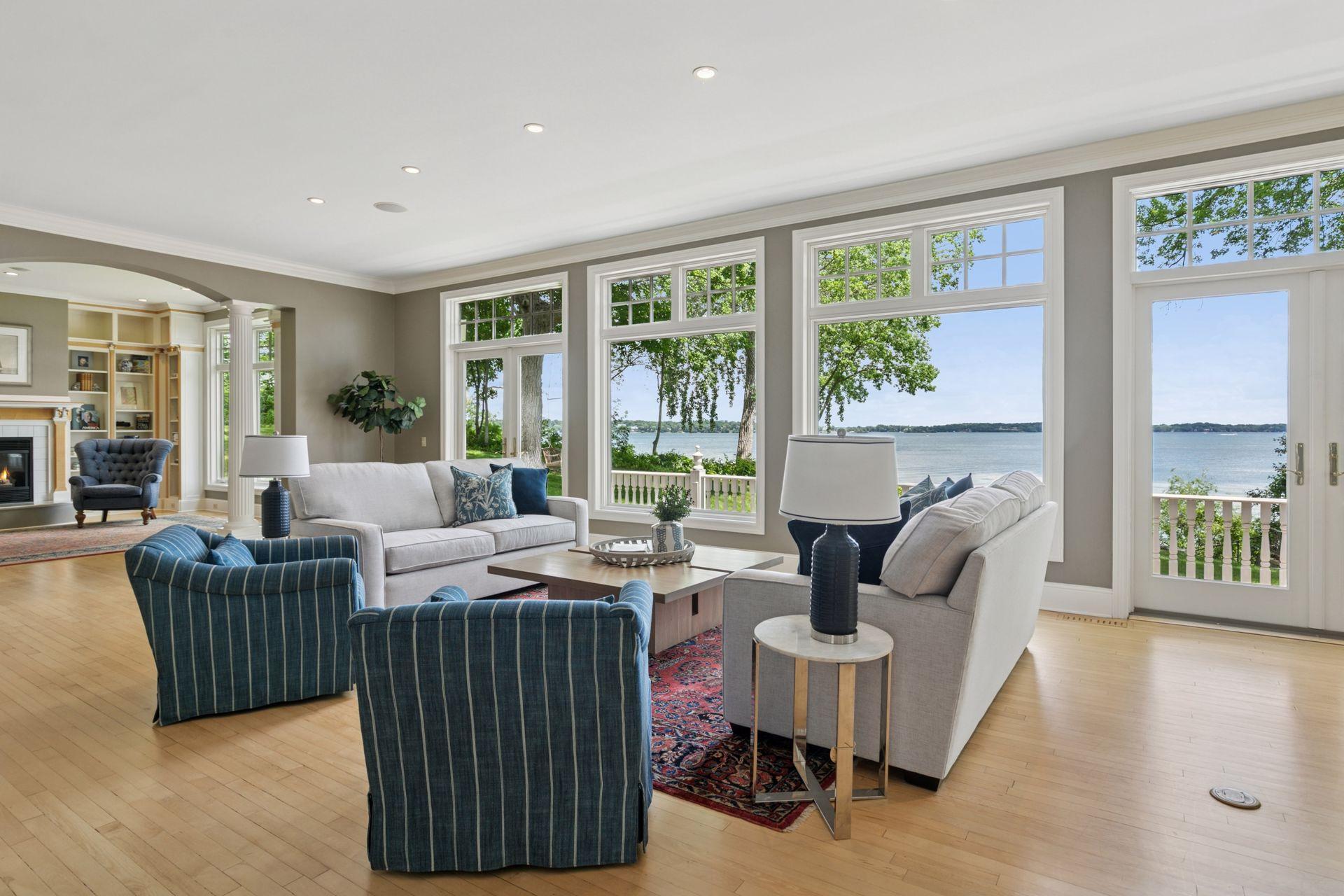 An extraordinary opportunity on beautiful Browns Bay. This stunning property features 192 feet of shoreline with panoramic, east-facing views. The home offers an elegant yet comfortable design, thoughtfully crafted for both entertaining and everyday living. Expansive windows provide uninterrupted water views throughout. Flexible floor plan with spacious primary suites on both the main and upper levels. Three additional bedrooms upstairs, plus a versatile flex room. The top-level attic is ready to be finished for additional living space. The lower level includes a separate kitchenette, fifth bedroom, and generous unfinished areas for storage or future expansion. Set on a private, beautifully wooded lot, this home offers exceptional privacy just minutes from Orono amenities and all that Lake Minnetonka has to offer.