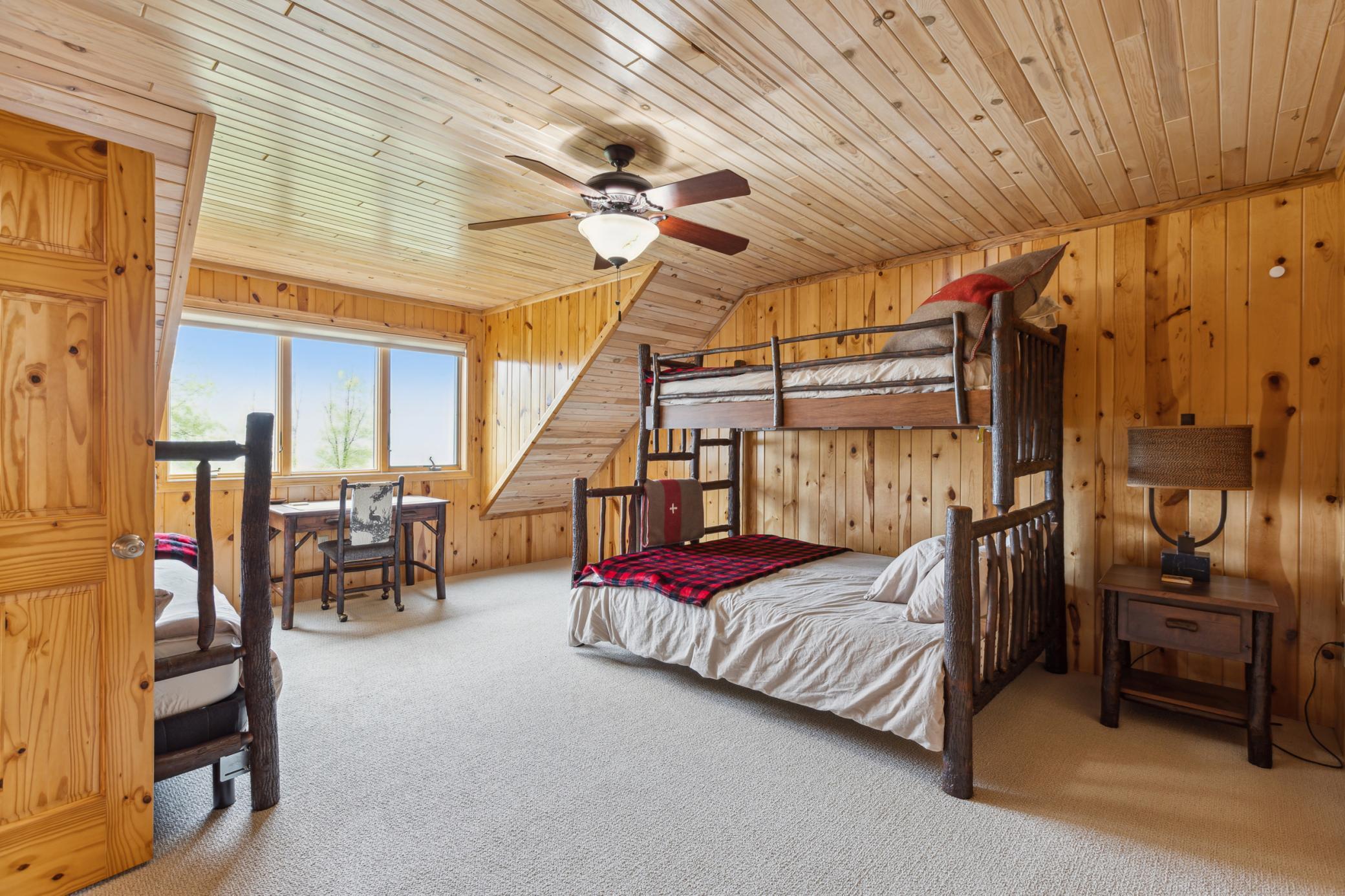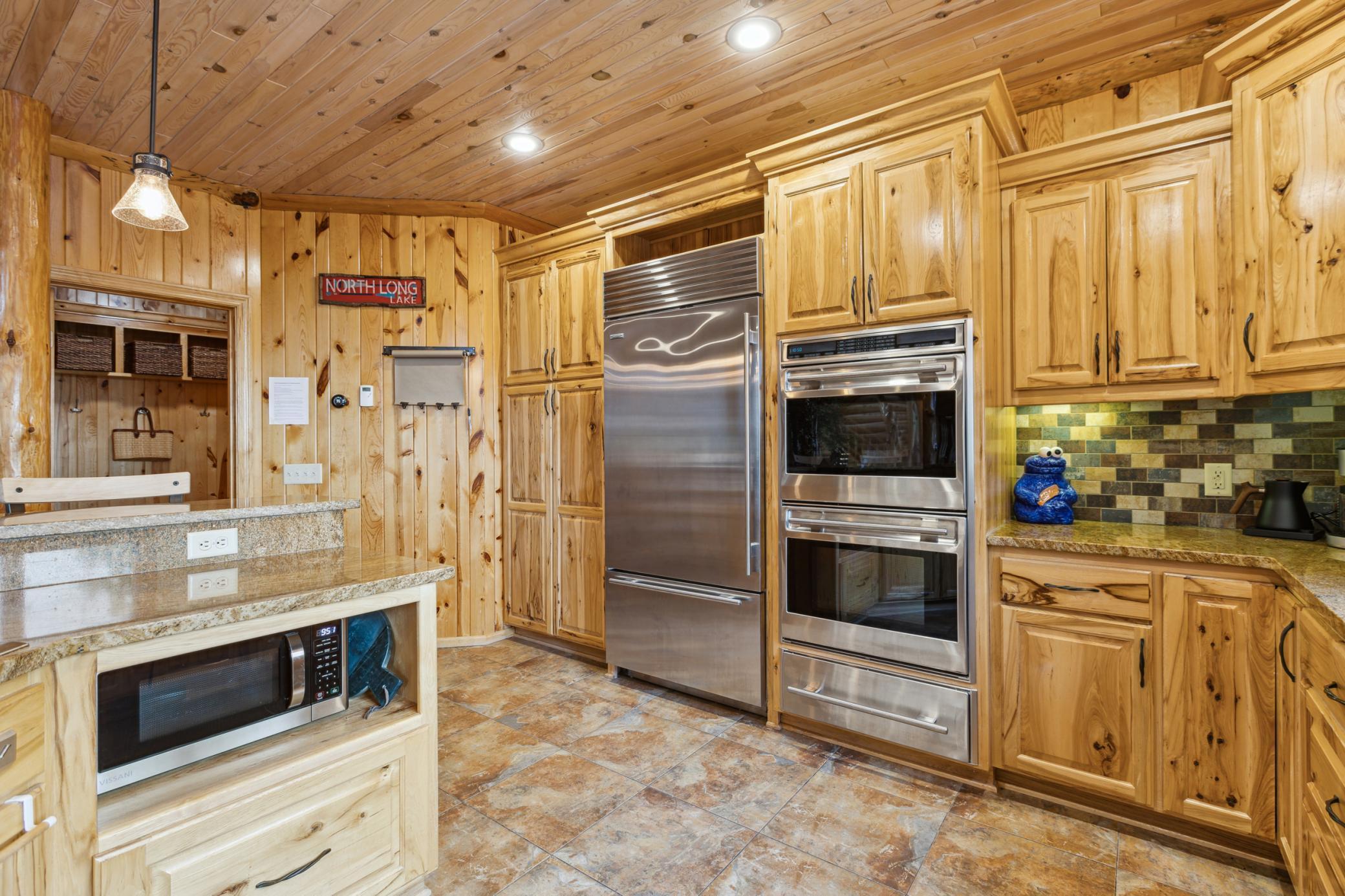 Get ready to be captured by this lake home from the moment you walk in! Situated on over 100’ of level sandy lake frontage on North Long Lake, this custom-built lake home will leave you in awe. When you walk into the vaulted open living room looking towards the lake, there is a huge stone gas fireplace (you will want this on just for the ambiance). This open space will become your favorite for gatherings. Enjoy making all the things in the professionally designed kitchen - featuring Sub Zero and Wolf appliances, a double oven (you can cook twice as much), built-in wine cooler, and large bar height seating for casual dining or conversation. The main level is so well designed with a primary suite privately located on the opposite end with all amenities – a large walk-in closet, double sinks, steam shower, and a window view towards the lake. Need to do some laundry? A spacious laundry room and storage area are right when you walk in from the garage, and there is a ½ bath if you need a quick ‘break’. The upper level – you will not be disappointed with more views looking towards the lake. If you want separate sleeping spaces there are two huge bedrooms on opposite ends, both with access to the full bath. Wow - if you do have extra family/friends who are visiting, and you need more space, there is a large heated bedroom/bonus room right above the garage (or you could use it as an office - but who wants to work at the lake). Convenience – there is a ¾ bath on the main level right below this bonus room. Now for the garage – it is an oversized 1,181 square foot heated 3-car garage for all your vehicles and lake toys with a lakeside entrance for easy access to the lake. Enjoy the well-groomed yard when walking or riding down to the lake. The private boardwalk leads to a level lakeshore where you can enjoy lake activities and then come back to unwind in the hot tub. Truly a magnificent home on a 1.6-acre lakeshore lot to use as your lake home or as an investment property! Custom-built, level lot, and central location!
