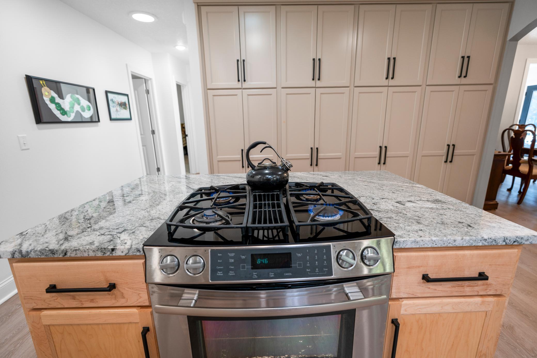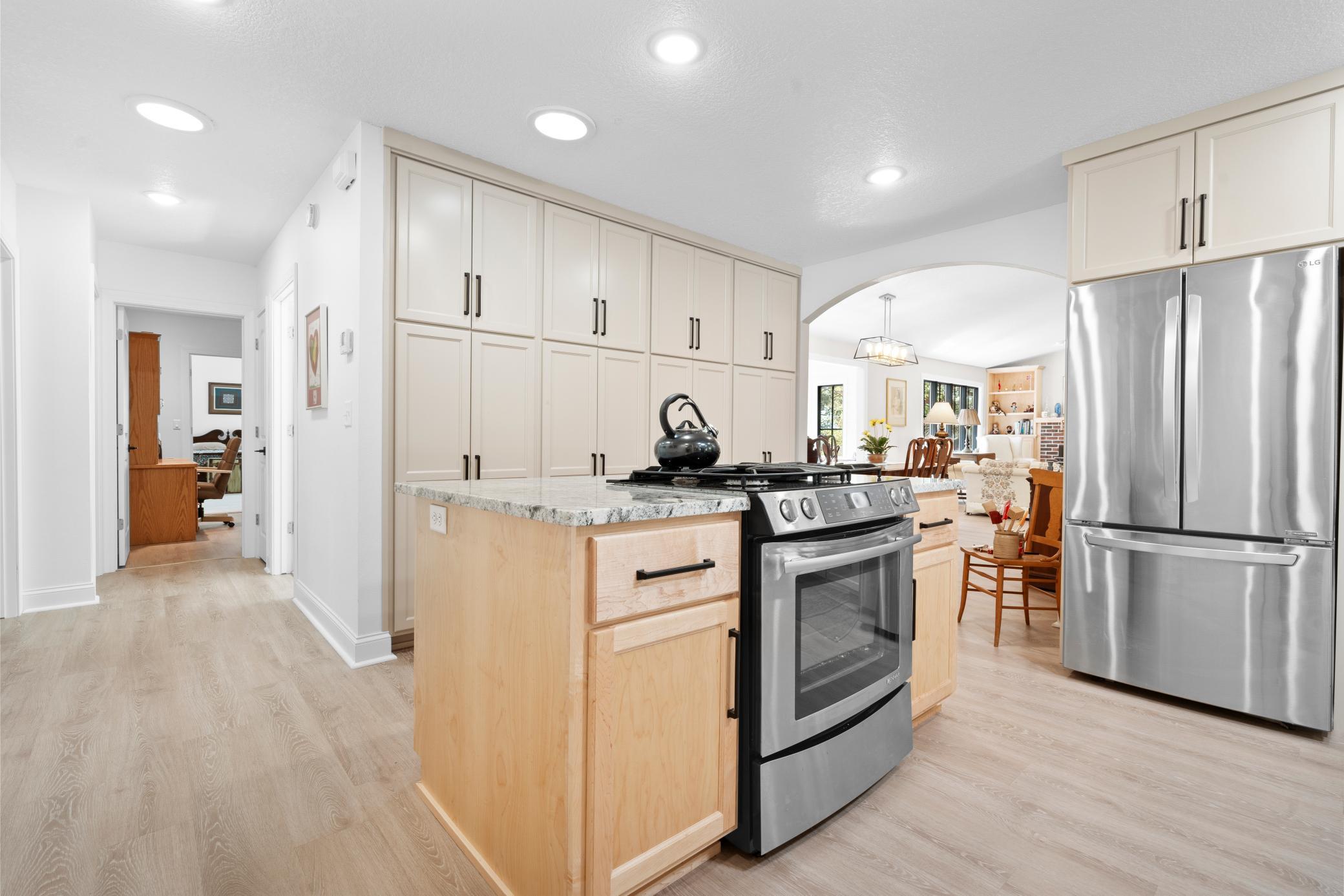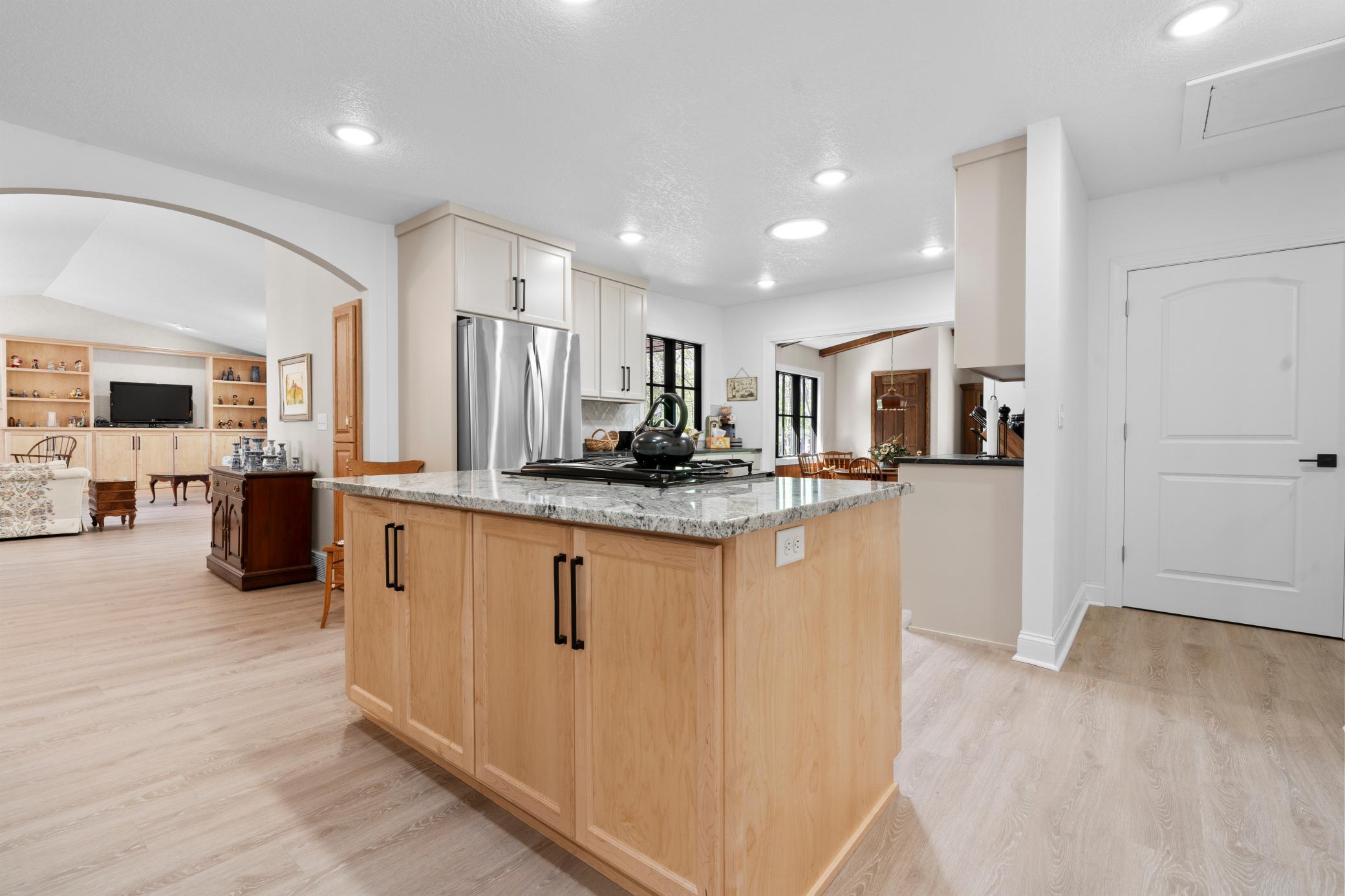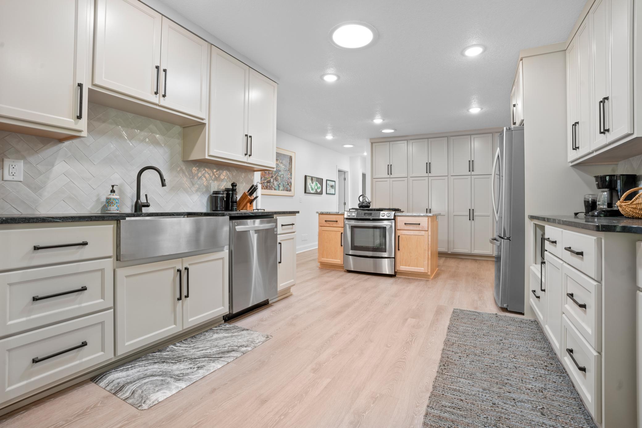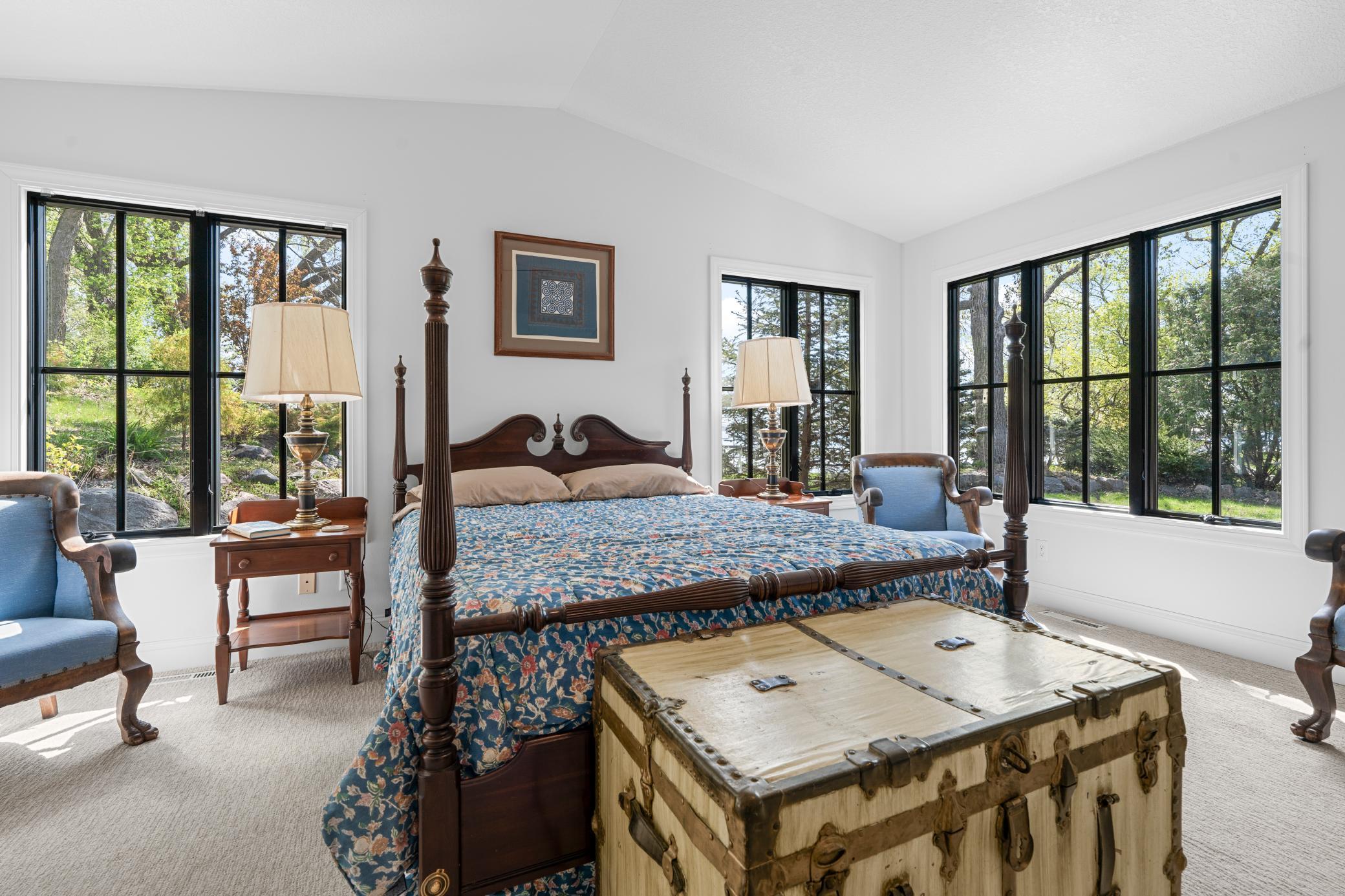 Inside, the home is just as impressive. Recent upgrades include Andersen windows, Bayer exterior doors, stylish laminate flooring, and handcrafted kitchen cabinetry topped with soapstone counters and a granite island. The 4-season lakeside porch, with its charming shipboard walls, offers stunning views and a perfect space for entertaining or relaxing.