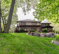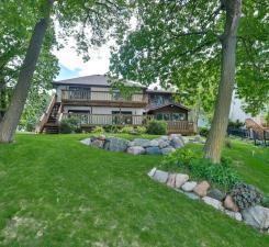Meticulously renovated to perfection! Contract for deed terms available. Incredible 80 feet of lakeshore facing NW with amazing panoramic views, afternoon sun and impressive sunsets! Major work has been done the last several years! New roof, Bathrooms, finished lower level, Knock down ceilings, hardwood floors & in floor heating bathrooms, large trim, paint & enameled woodwork, barn & solid doors, newel posts, attractive light fixtures, stainless steel appliances and granite countertops, tile backsplash, fence and more! Master suite is large and features a master suite, gigantic walk in California closets, separate shower & tub, double vanity and a sliding glass door leads to a deck. Plus 3 additional bedrooms upstairs, solid attractive newel post, hardwood flooring, separate quest bathroom. Finished lower level, extra storage & a extra parking space. Huge decking and new fence, security system. Don't delay on this special offering!