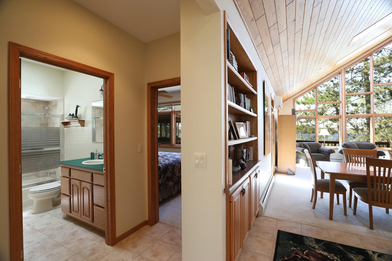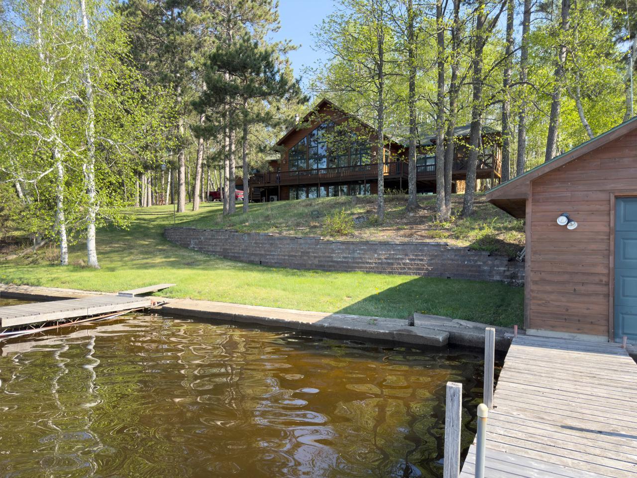 Lake Vermilion Home. South-Facing On Everett Bay Just Off South Shore of Big Bay, Offers 3+ Lakefront BRs, 3 BA, 3 Stall Garage W/Yr Rnd Guest Home Above, Boathouse W/Rail, 2 Docks, 1.3 Acres & 200 ft Excellent Swimming Shore! Great rm w/ two story windows, massive wd burning firepl, two glass drs open to wrap around lakefront deck & gazebo. Stainless kitch w/island open to great rm, dining & blue water vistas. Lakeside main flr primary ste. Lakeside main flr guest BR. Main flr office & laundry. Downstairs lakeview rec rm, lakeside guest BR & sauna, bth. A/C. Drilled well. Backup generator. Good internet. Please review features sheet & click link for 3D Tour!