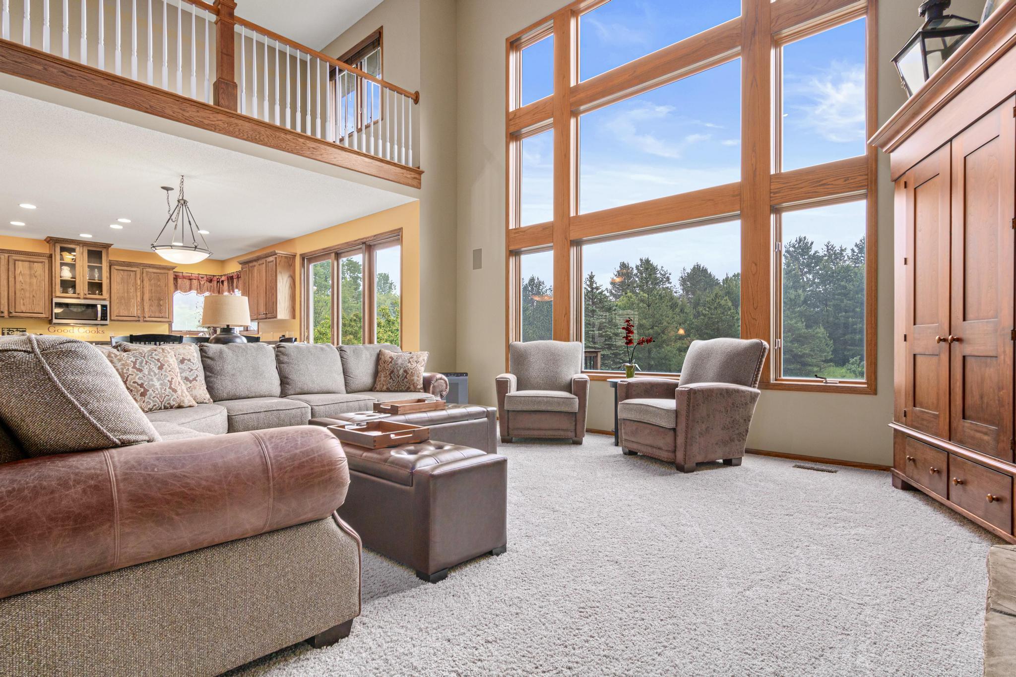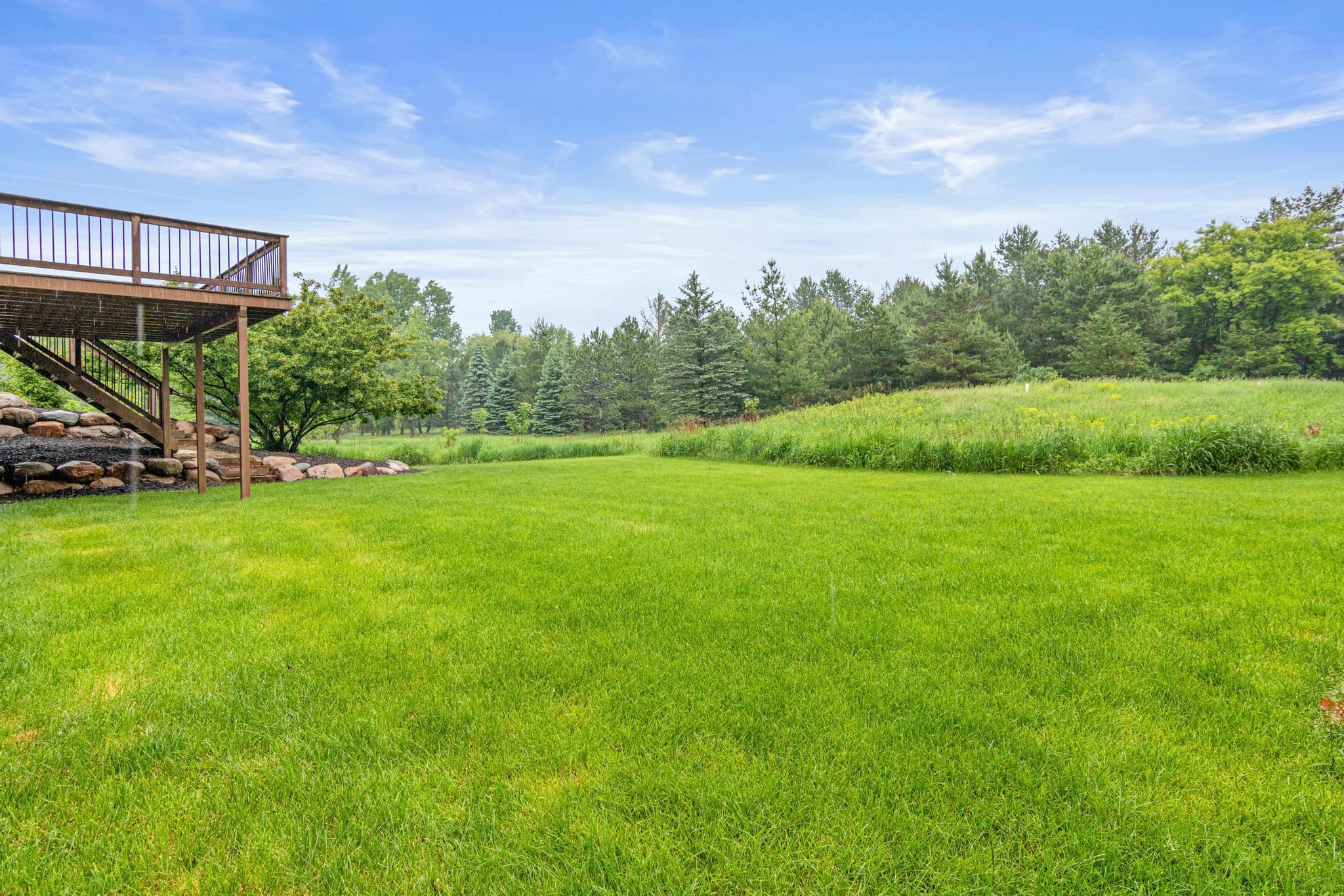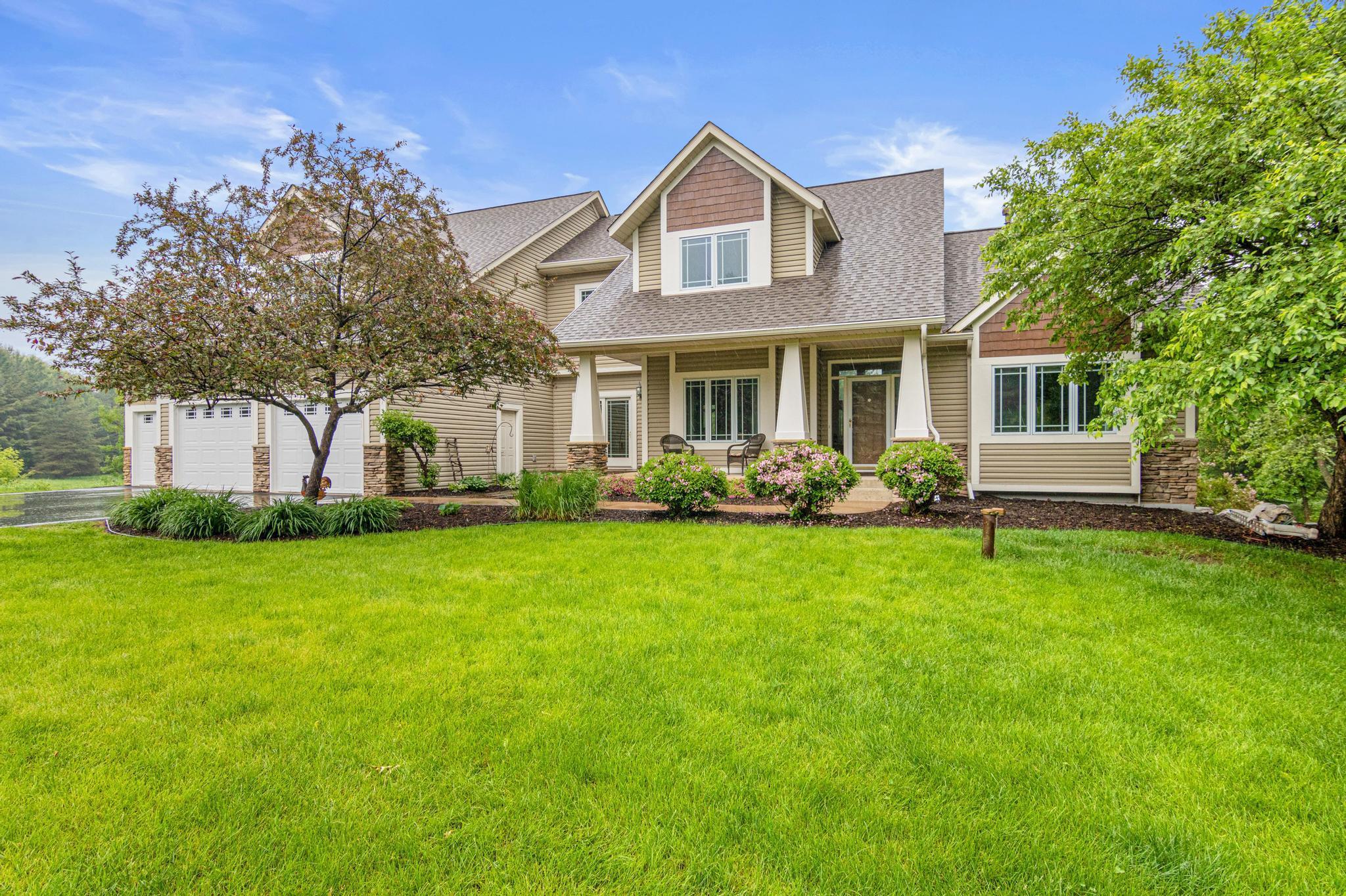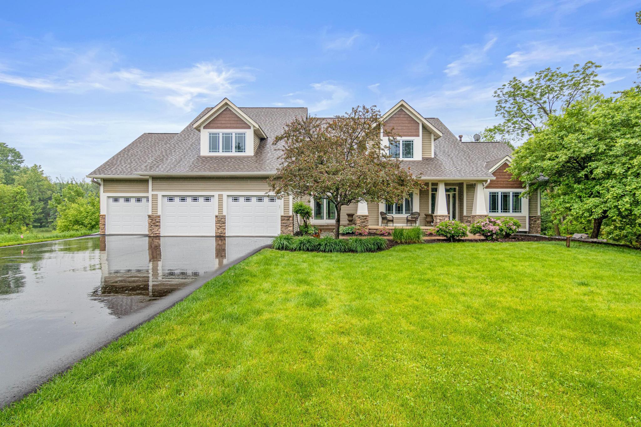 Welcome to 5177 Muir Avenue – A private retreat just minutes from downtown Stillwater! Discover the perfect blend of serene privacy and stylish living with this impressive two-story home, beautifully nestled on a picturesque 3.5 acre lot. From the moment you arrive, the professionally landscaped exterior, charming front porch, and vibrant flowering trees set the tone for what’s to come. Step inside to an expansive and thoughtfully designed main level featuring a spacious primary suite, soaring ceilings, and large windows that flood the home with natural light and capture sweeping views of the lush surroundings. The open-concept living and dining areas seamlessly connect to the heart of the home—an inviting kitchen adorned with warm wood cabinetry, granite counters, and a center island ideal for gatherings. Upstairs, you'll find a versatile loft space and three additional bedrooms—perfect for family, guests, or a home office setup. The walk-out lower level is a true entertainer’s dream, complete with a billiards room, a custom walk-up bar with hickory and alder cabinetry, and a cozy family room anchored by a striking stone fireplace. Outdoors, nature lovers will be in paradise—enjoy peaceful mornings watching deer, turkey, pheasants, and songbirds from your covered front porch or backyard. Whether you're hosting, relaxing, or exploring the nearby trails and conveniences of Stillwater just five minutes away, this property truly has it all. Don't miss this rare opportunity to enjoy the best of both worlds—natural tranquility with easy access to schools, shops, restaurants, and the charm of historic Stillwater. Note that home is located on a cul-de-sac which offers limited traffic.