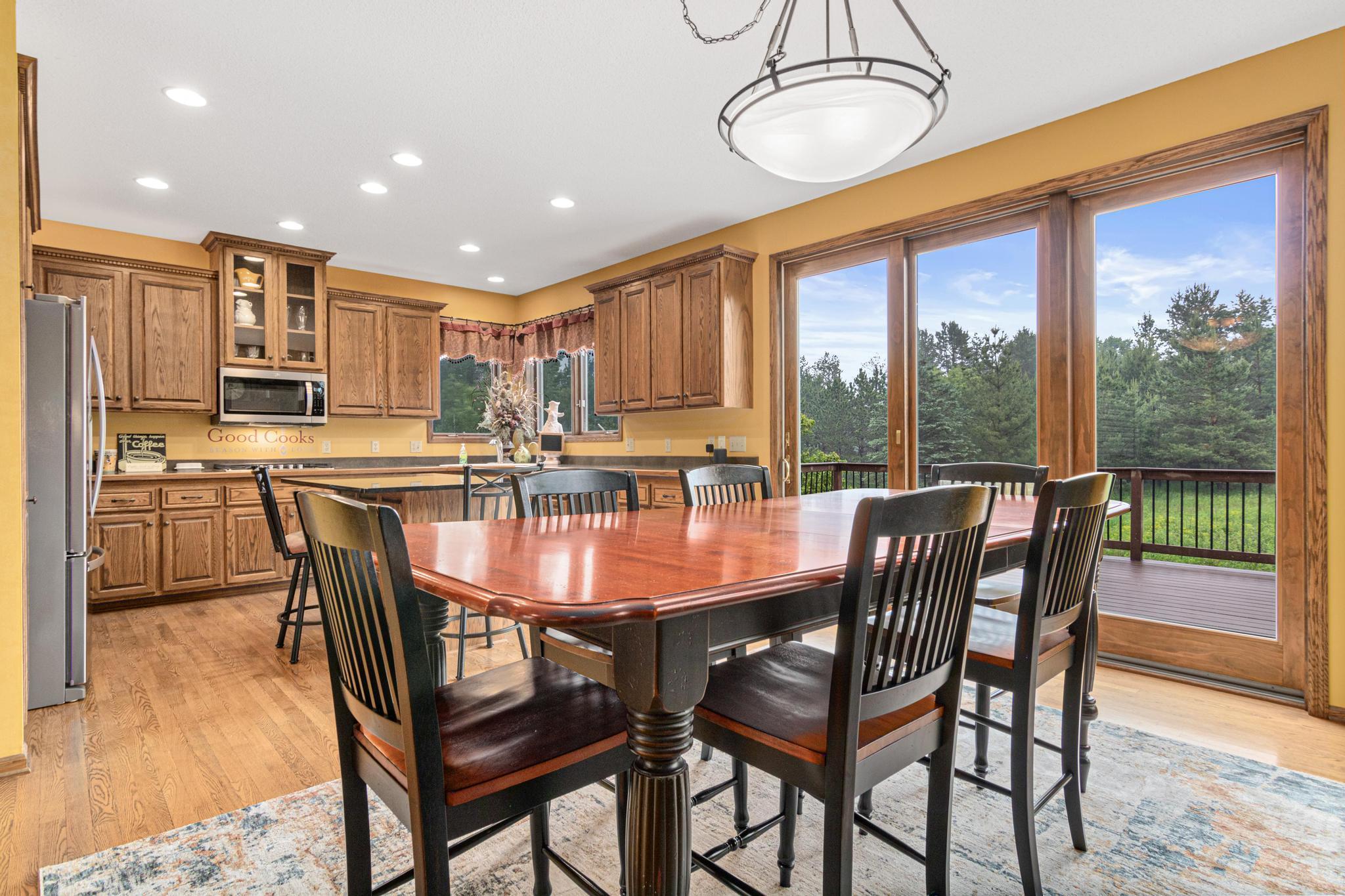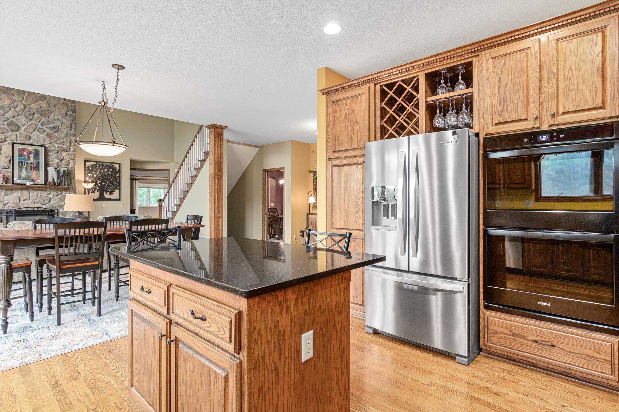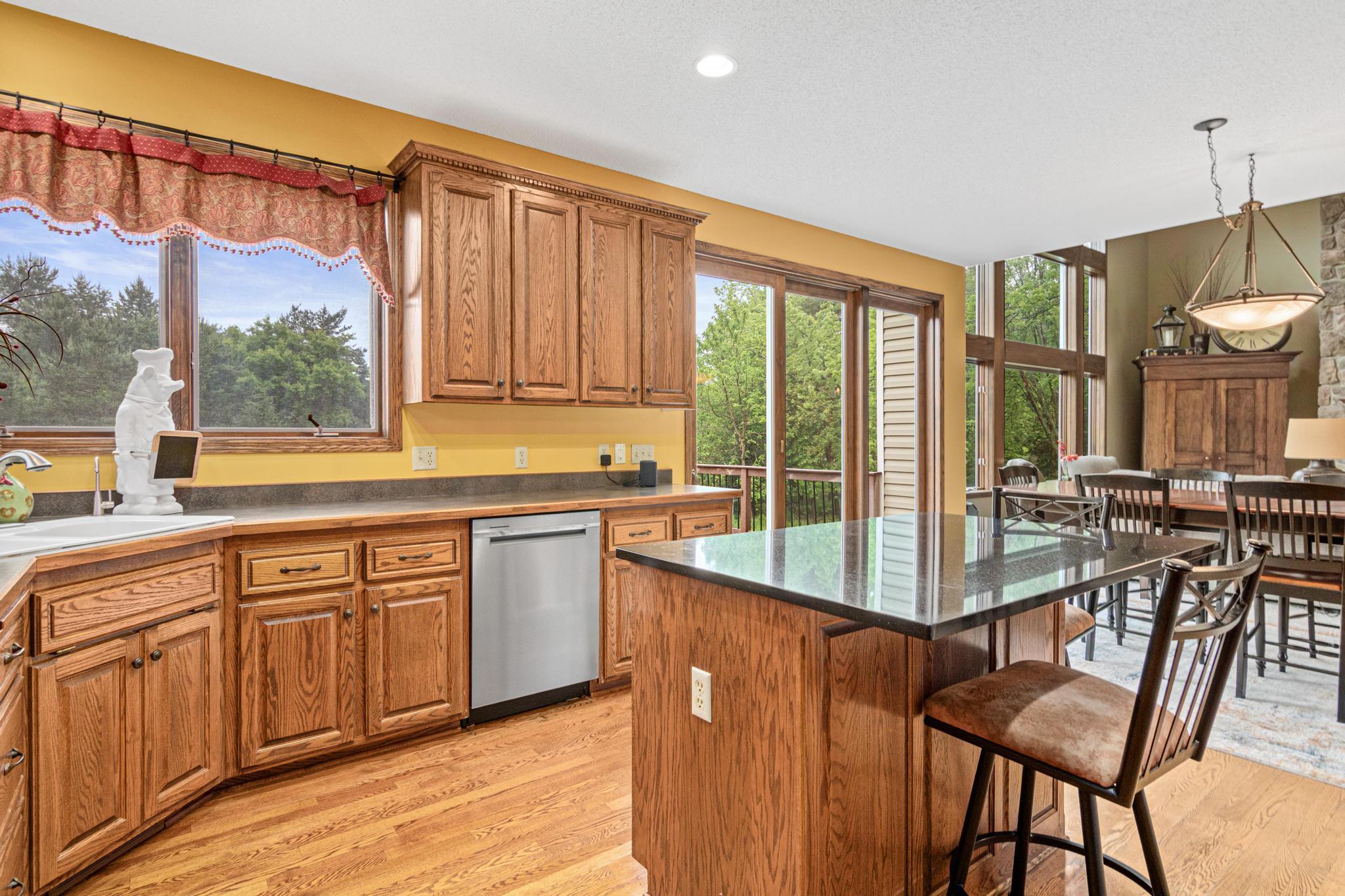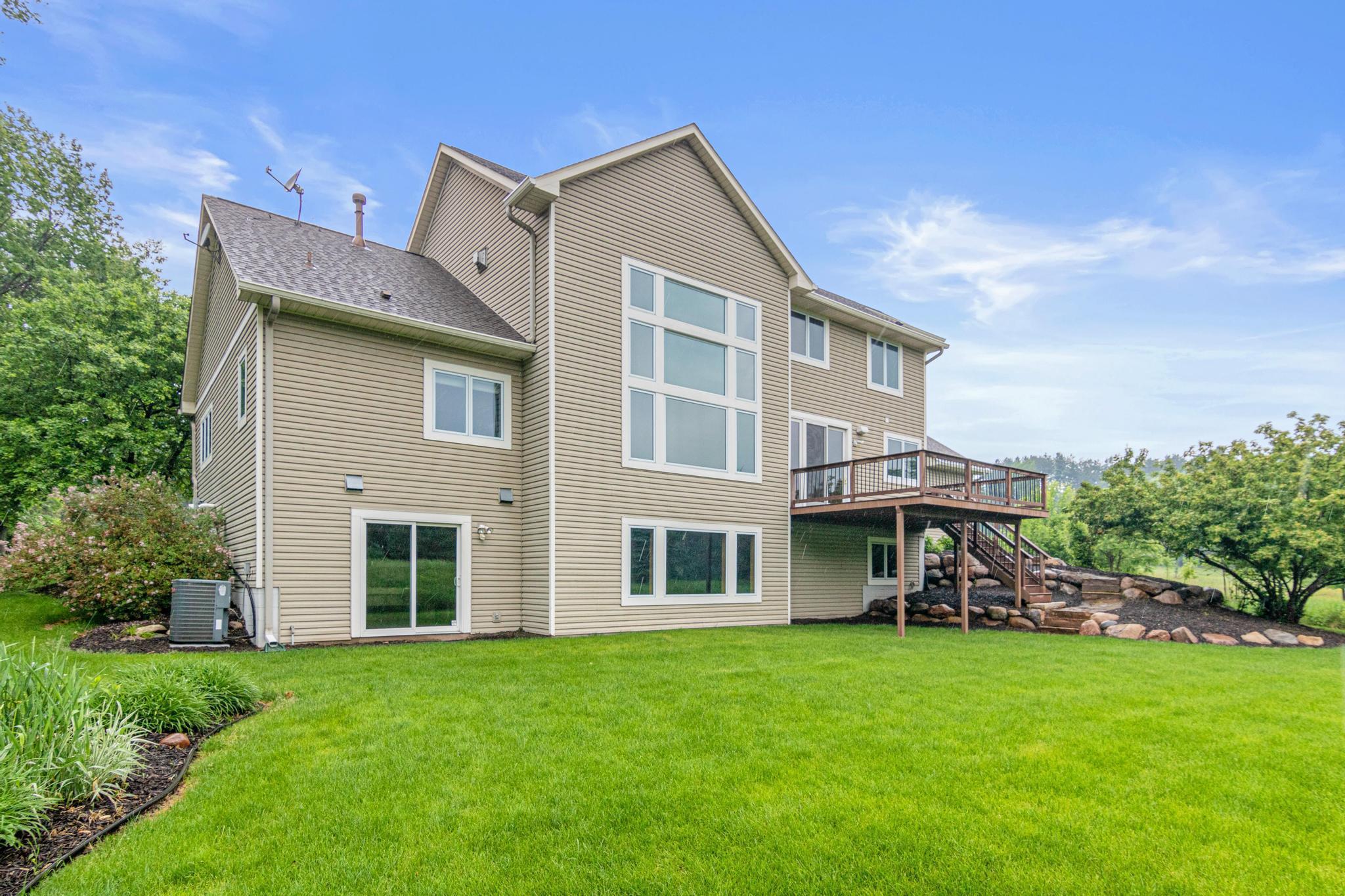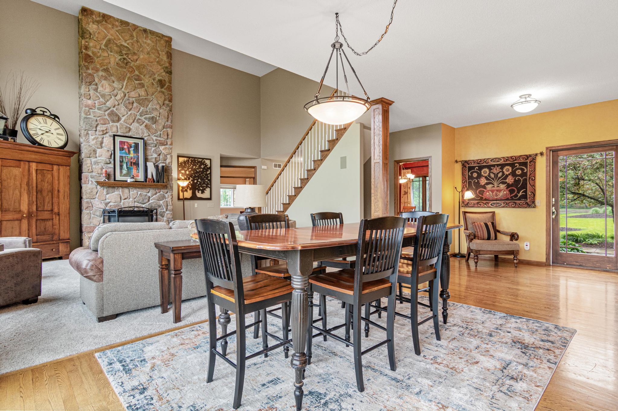Welcome to 5177 Muir Avenue – A private retreat just minutes from downtown Stillwater! Discover the perfect blend of serene privacy and stylish living with this impressive two-story home, beautifully nestled on a picturesque 3.5 acre lot. From the moment you arrive, the professionally landscaped exterior, charming front porch, and vibrant flowering trees set the tone for what’s to come. Step inside to an expansive and thoughtfully designed main level featuring a spacious primary suite, soaring ceilings, and large windows that flood the home with natural light and capture sweeping views of the lush surroundings. The open-concept living and dining areas seamlessly connect to the heart of the home—an inviting kitchen adorned with warm wood cabinetry, granite counters, and a center island ideal for gatherings. Upstairs, you'll find a versatile loft space and three additional bedrooms—perfect for family, guests, or a home office setup. The walk-out lower level is a true entertainer’s dream, complete with a billiards room, a custom walk-up bar with hickory and alder cabinetry, and a cozy family room anchored by a striking stone fireplace. Outdoors, nature lovers will be in paradise—enjoy peaceful mornings watching deer, turkey, pheasants, and songbirds from your covered front porch or backyard. Whether you're hosting, relaxing, or exploring the nearby trails and conveniences of Stillwater just five minutes away, this property truly has it all. Don't miss this rare opportunity to enjoy the best of both worlds—natural tranquility with easy access to schools, shops, restaurants, and the charm of historic Stillwater. Note that home is located on a cul-de-sac which offers limited traffic.