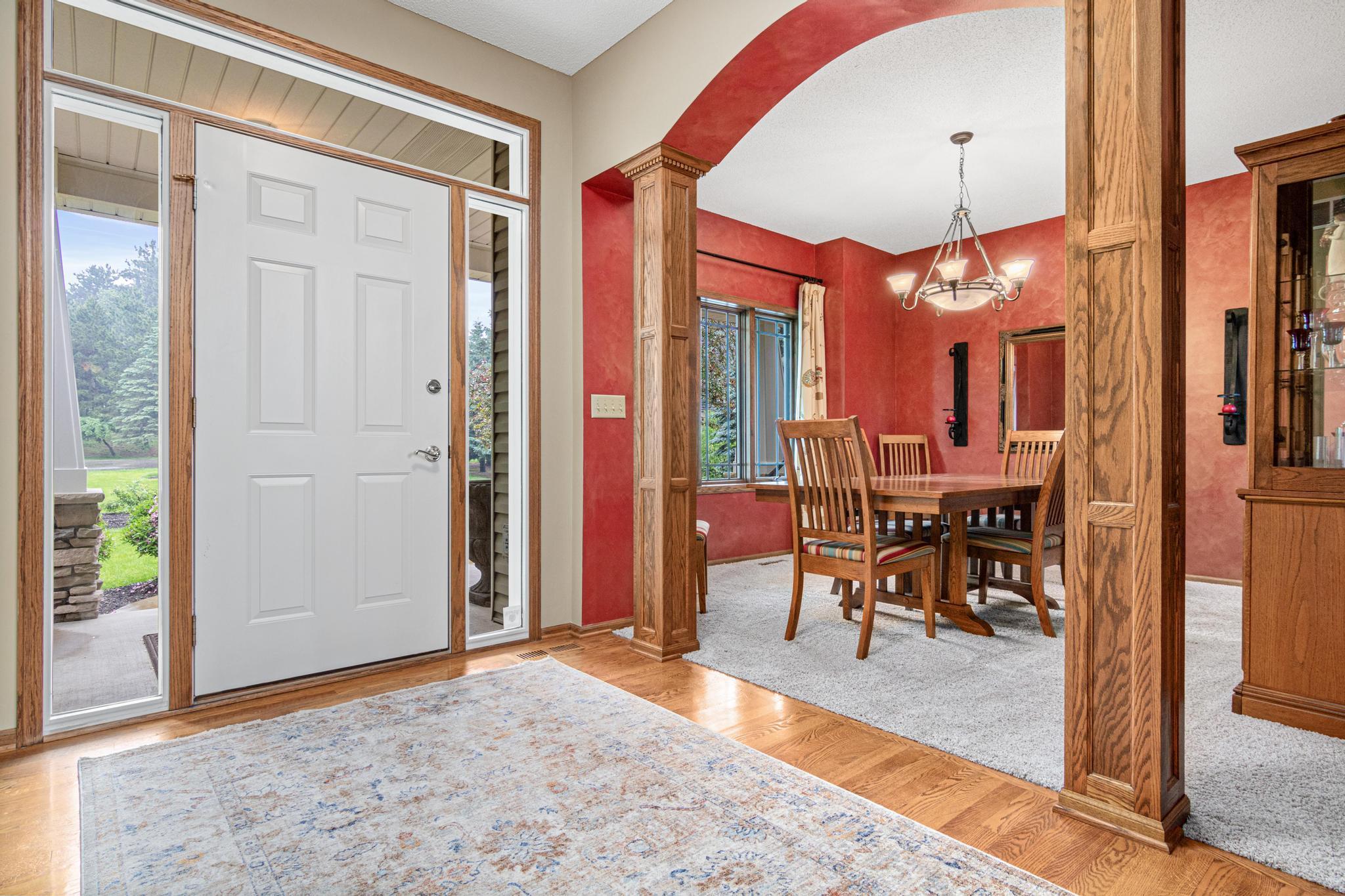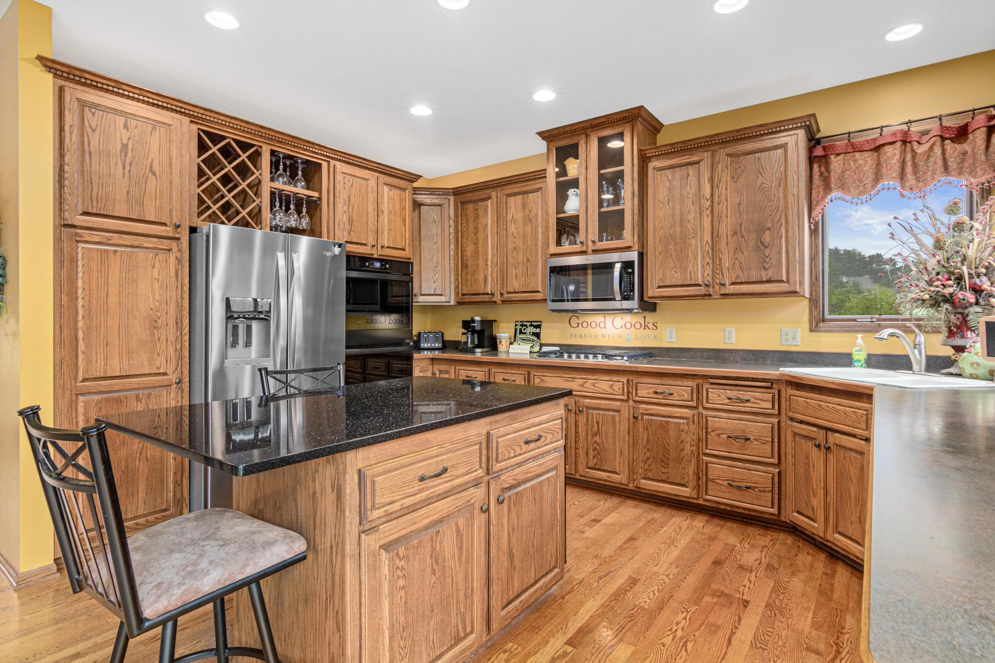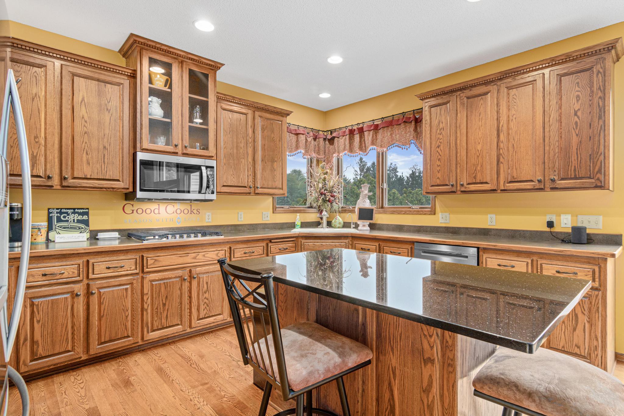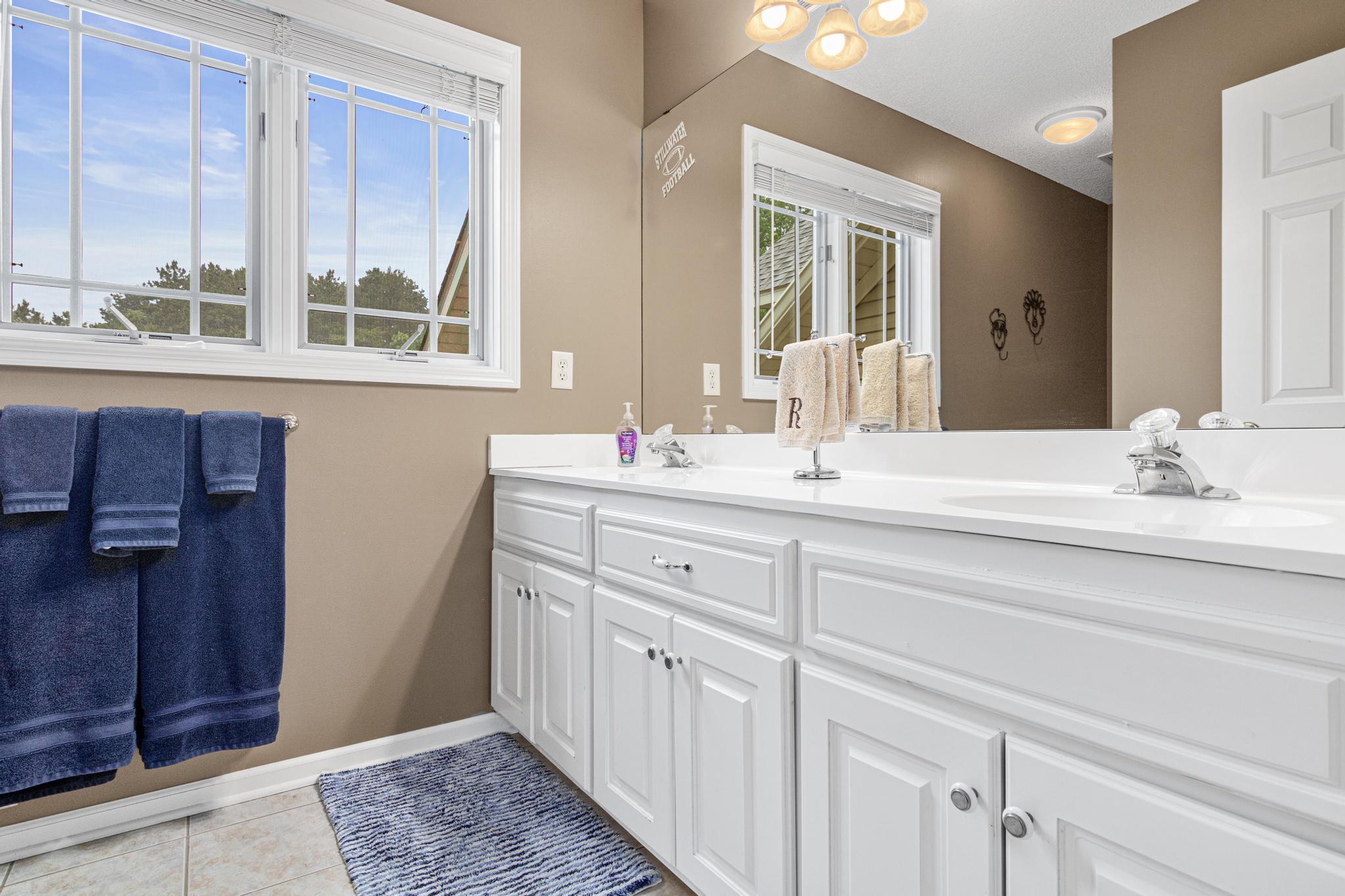 Welcome to 5177 Muir Avenue – A private retreat just minutes from downtown Stillwater! Discover the perfect blend of serene privacy and stylish living with this impressive two-story home, beautifully nestled on a picturesque 3.5 acre lot. From the moment you arrive, the professionally landscaped exterior, charming front porch, and vibrant flowering trees set the tone for what’s to come. Step inside to an expansive and thoughtfully designed main level featuring a spacious primary suite, soaring ceilings, and large windows that flood the home with natural light and capture sweeping views of the lush surroundings. The open-concept living and dining areas seamlessly connect to the heart of the home—an inviting kitchen adorned with warm wood cabinetry, granite counters, and a center island ideal for gatherings. Upstairs, you'll find a versatile loft space and three additional bedrooms—perfect for family, guests, or a home office setup. The walk-out lower level is a true entertainer’s dream, complete with a billiards room, a custom walk-up bar with hickory and alder cabinetry, and a cozy family room anchored by a striking stone fireplace. Outdoors, nature lovers will be in paradise—enjoy peaceful mornings watching deer, turkey, pheasants, and songbirds from your covered front porch or backyard. Whether you're hosting, relaxing, or exploring the nearby trails and conveniences of Stillwater just five minutes away, this property truly has it all. Don't miss this rare opportunity to enjoy the best of both worlds—natural tranquility with easy access to schools, shops, restaurants, and the charm of historic Stillwater. Note that home is located on a cul-de-sac which offers limited traffic.