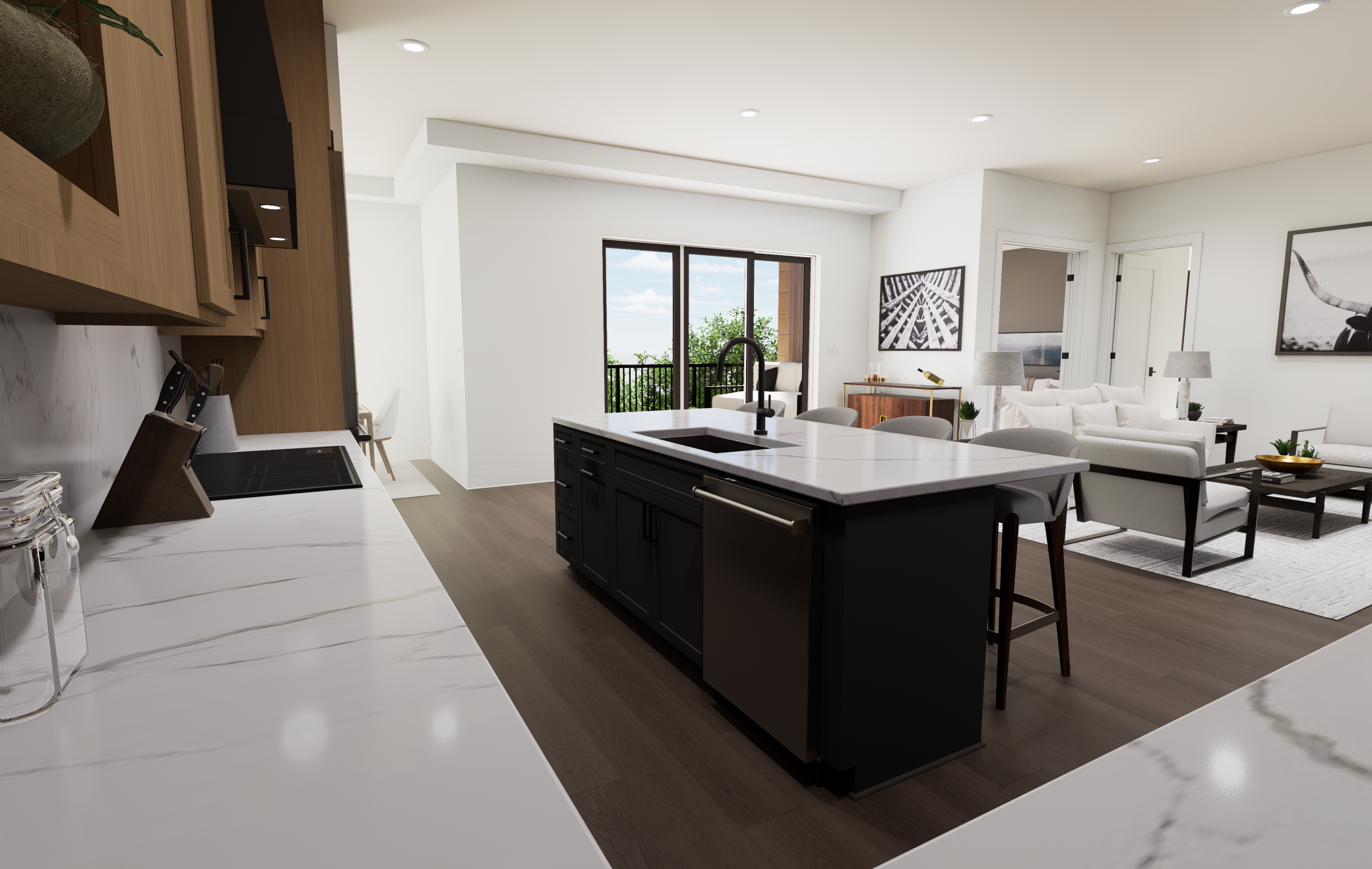 Welcome to The Fletcher Condominiums in Linden Hills, where modern living meets community charm. Discover The Fletcher Condominiums, an exclusive collection of 15 boutique residences coming soon to the heart of the storied Linden Hills neighborhood. These exceptional homes will offer spacious, single-level living, ranging from 1,600 to 2,400 square feet. Every residence will be a corner unit, boasting two or three walls of windows that provide stunning views, natural light, and cross-ventilation through operable windows. With floor-to-ceiling windows and soaring 10-foot ceilings, each home will be filled with light, creating a bright, airy ambiance. Quality craftsmanship and meticulous attention to detail will be evident throughout. Residences will feature premium finishes, including red oak hardwood floors, chef-inspired kitchens equipped with professional-grade Sub-Zero and Wolf appliances, elegant quartz countertops, and custom cabinetry. Buyers will be able to personalize their homes by selecting from three professionally curated interior design packages. Private outdoor spaces are designed as extensions of each home, offering a seamless connection between indoor and open-air living. Select first and fourth floor units will include expansive private terraces, with some spanning up to 1,340 square feet. Every residence will also include two dedicated, secure underground parking spaces. Residence 8 is one of the larger floor plans at The Fletcher and is bathed in daylight through expansive, full-height windows lining the north, west and south sides with the primary window exposure being west. A spacious and secluded 160-square-foot outdoor terrace, with a direct gas hookup, flows seamlessly into the wide-open living area. This home features the largest Kitchen plan with Wolf/Subzero appliances, quartz countertops and custom cabinetry. The living room is anchored by a gas fireplace and integrated with the dining and kitchen area. The den offers versatile space for an office, sitting room, or 3rd bedroom with both south and west exposures. The oversized primary suite includes a cozy sitting nook with corner windows, two walk-in closets, and a large en-suite bathroom. The second bedroom also features a thoughtful en-suite bathroom. Laundry services are thoughtfully integrated, with dedicated room plus an in unit storage room.