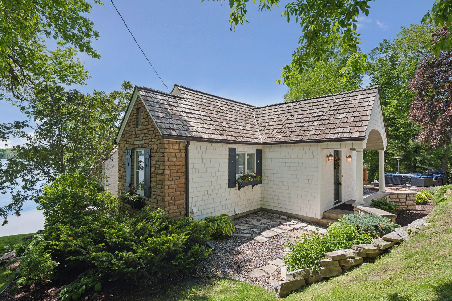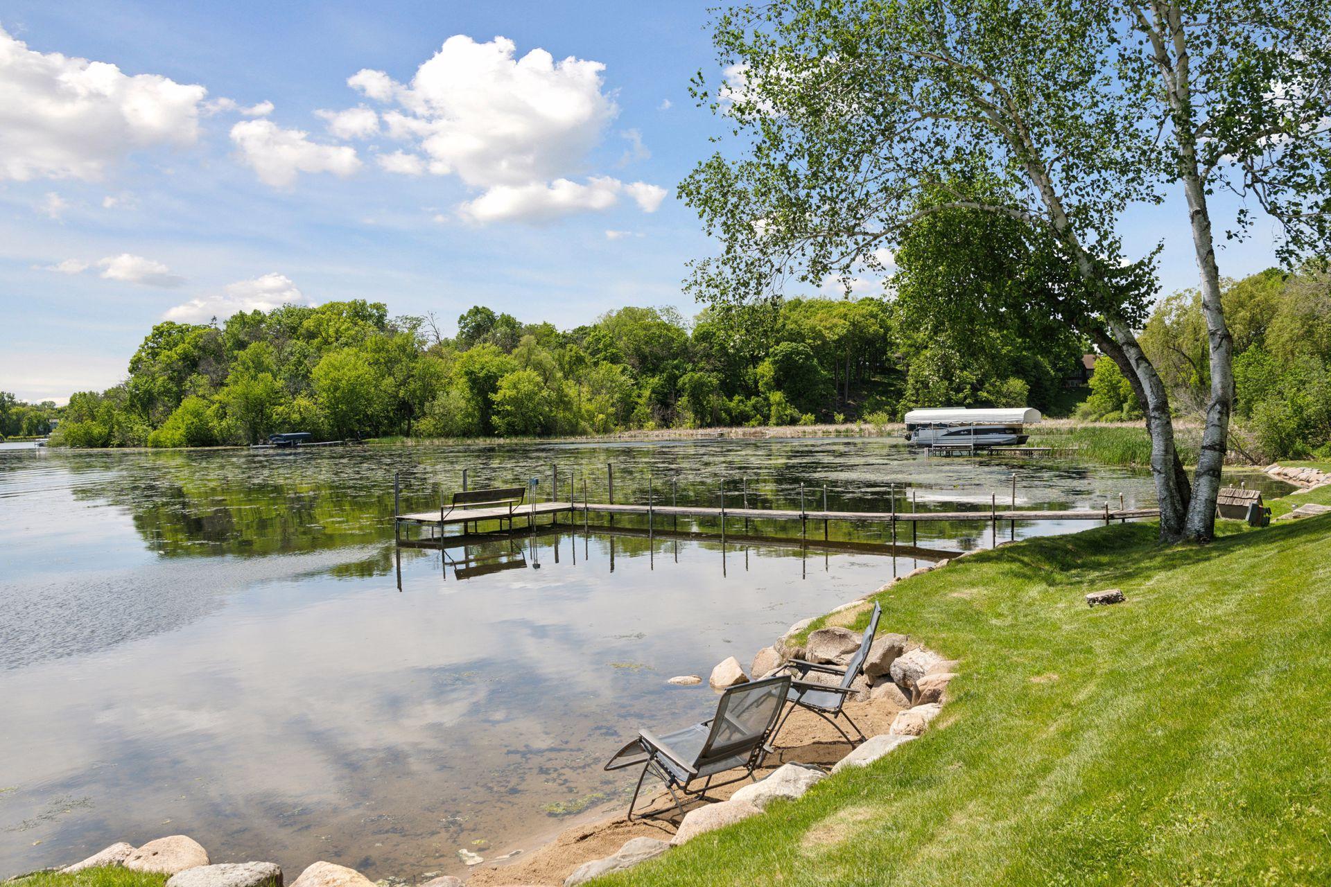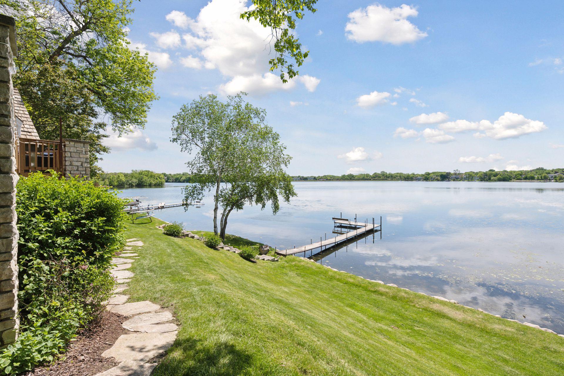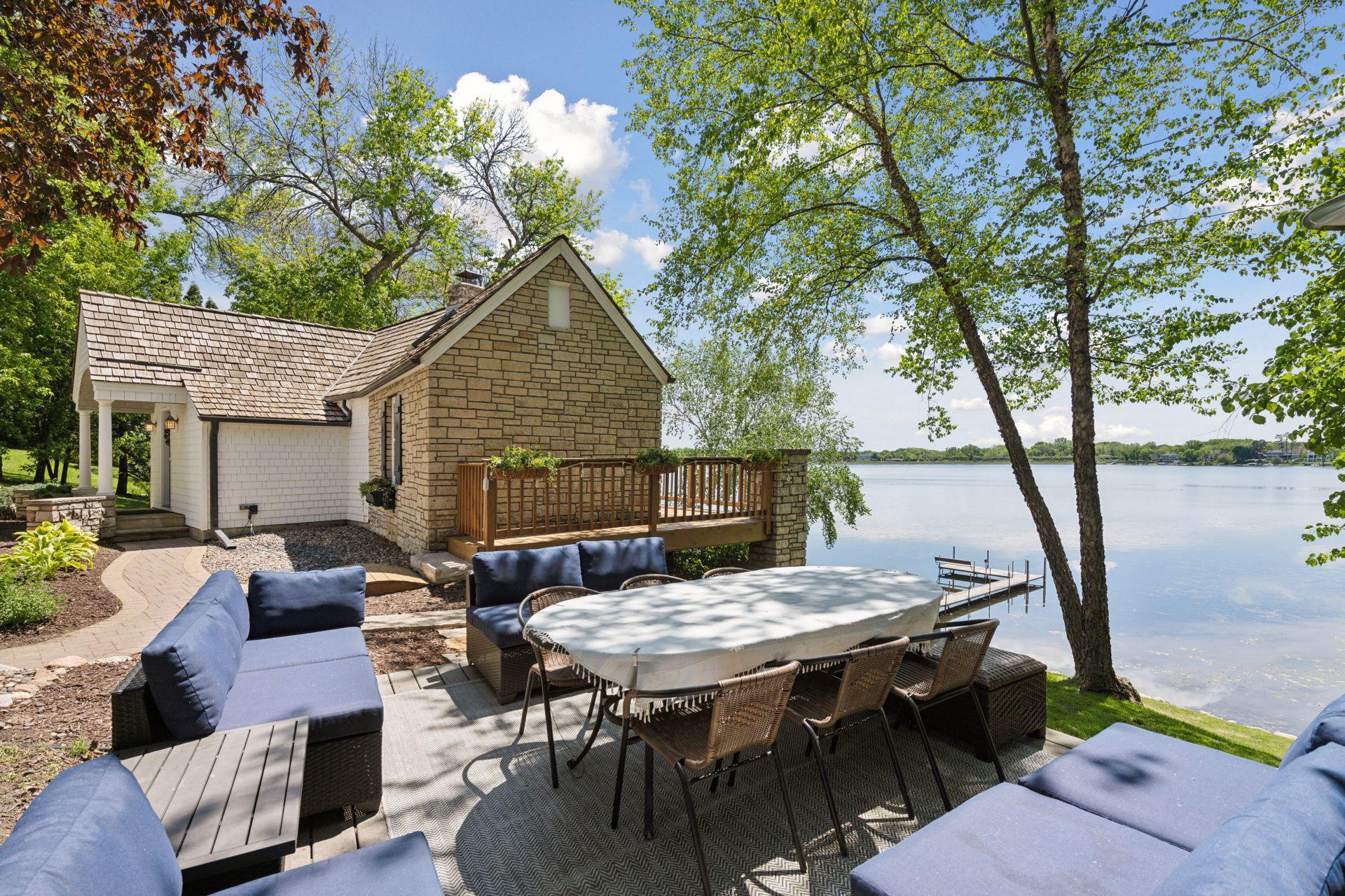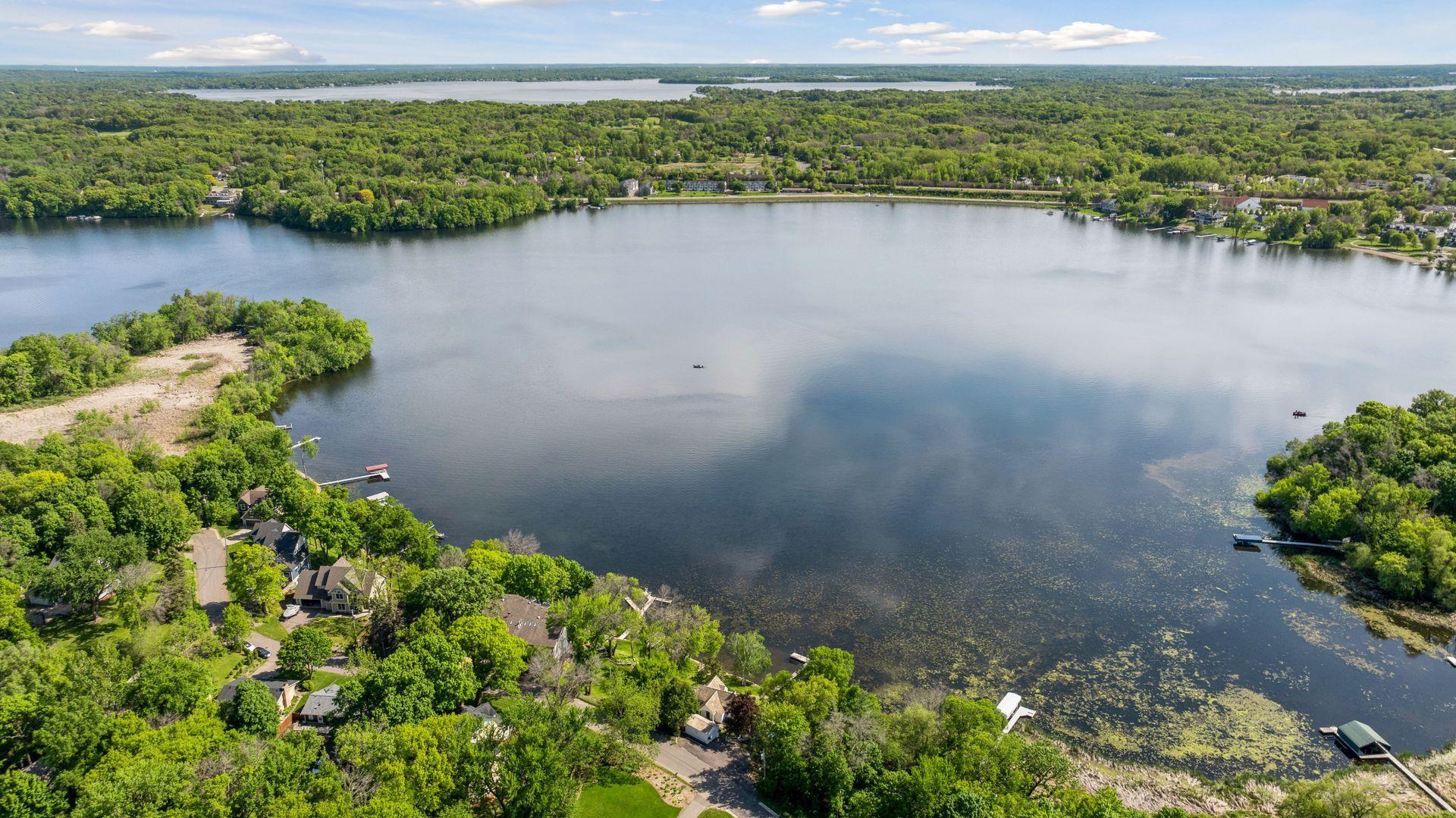 1575 Long Lake Blvd was the first cabin built in the neighborhood you see today. The “Albee Addition” was an Apple Orchard long before lake cabins were built in the late 1930s. Edna Albee, the original owner, was from Norway. Many of the original Norwegian details remain intact in the fireplace mantle, main level bathroom mirror/bath tile work and dining room chandelier. The approach to the house is a step back in time to those original lake cottage days. This home has been meticulously maintained and improved over the years and there is potential to make further improvements and additions. Even with these changes over the years, the charm remains. From the moment you step inside and see the bright spaces with all the right details, you feel the care that all the stewards of this wonderful property have given this home. The additions are tasteful and right sized; the quality and finishes are consistent, complimenting the original character but improving the structure with a new foundation and walkout lower level making for level floors and no old house creaks. What it may lack in modern layout convenience, it more than makes up for with its charm and setting. This property is truly unique and is as much about the setting and outdoor space as it is about the indoor spaces. It feels up north but then you remember, you are 7 minutes from Wayzata and 22 minutes from downtown Minneapolis. The property width, elevation and mature trees work together to create supreme lakeside privacy, and privacy between neighbors. With 250 feet of south facing shoreline on .6 acres, the expansive and unobstructed lake view captures spectacular sunrises and sunsets from inside the house - or from any of the numerous outdoor leisure areas. How many outdoor areas?? Well ... six distinct outdoor areas give you options for any mood or occasion. The back deck and dining deck are two very different feelings, one offering full sun, the other gives shade. The sandy beach is surrounded by rip rap and is a great spot to relax with your feet in the water or go for a swim. The lower patio offers a similar view to the upper deck, but the saltwater hot tub is a different option for relaxation. The secluded fire pit is tucked away from the house near the forested lowlands, surrounded by a flat stone patio with large stone benches and a peaceful view of the lake. The recessed fire pit includes built in drainage and a nearby hose attachment for safety. And finally, relaxing on the dock is the quintessential lakeside decompression zone. Of course, the lake side does offer a fairly flat area for yard games such, making that seven distinct outdoor areas! While you are outside, keep an eye out for Bald Eagles, turtles, hummingbirds, swans and loons. Mulberries, rhubarb and onion grass grows on the hill, next to the garage.