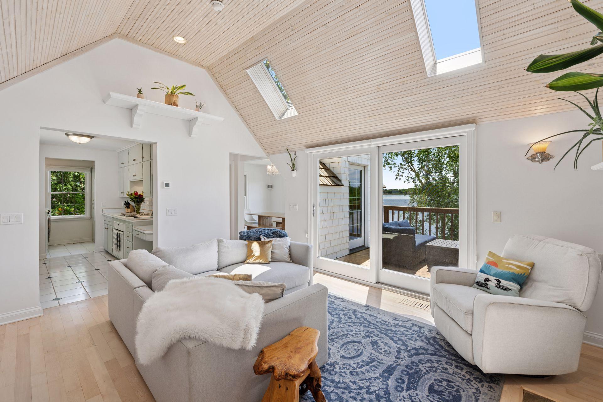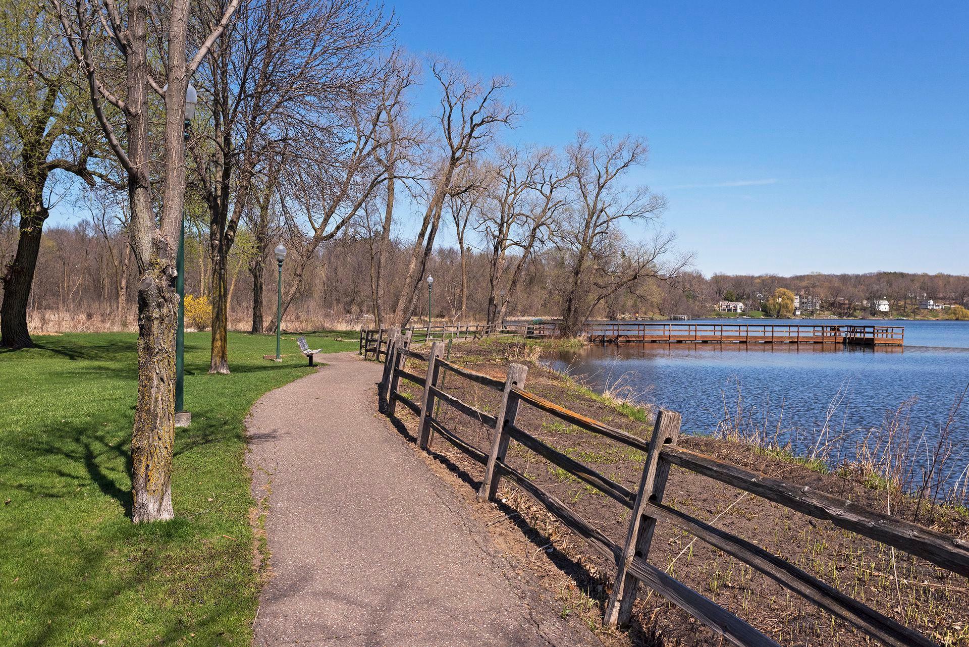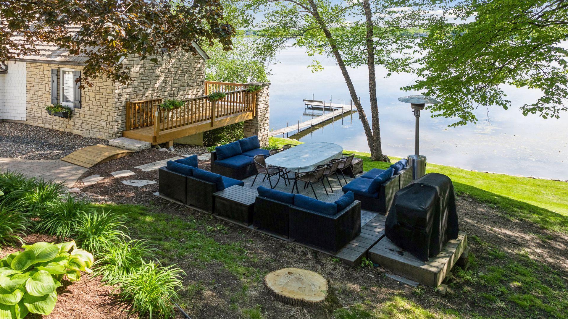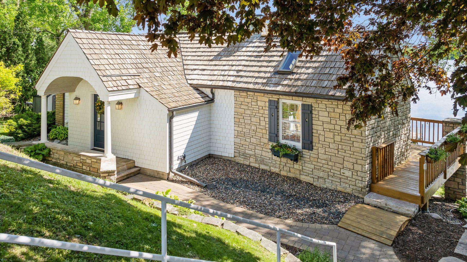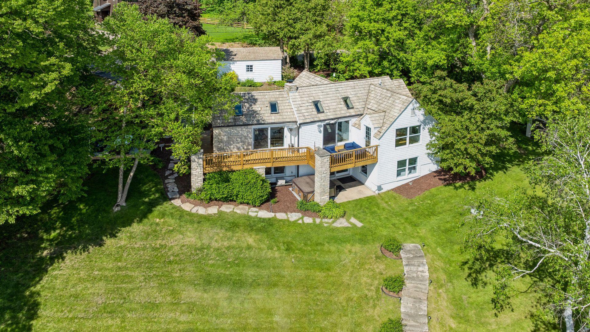 1575 Long Lake Blvd was the first cabin built in the neighborhood you see today. The “Albee Addition” was an Apple Orchard long before lake cabins were built in the late 1930s. Edna Albee, the original owner, was from Norway. Many of the original Norwegian details remain intact in the fireplace mantle, main level bathroom mirror/bath tile work and dining room chandelier. The approach to the house is a step back in time to those original lake cottage days. This home has been meticulously maintained and improved over the years and there is potential to make further improvements and additions. Even with these changes over the years, the charm remains. From the moment you step inside and see the bright spaces with all the right details, you feel the care that all the stewards of this wonderful property have given this home. The additions are tasteful and right sized; the quality and finishes are consistent, complimenting the original character but improving the structure with a new foundation and walkout lower level making for level floors and no old house creaks. What it may lack in modern layout convenience, it more than makes up for with its charm and setting. This property is truly unique and is as much about the setting and outdoor space as it is about the indoor spaces. It feels up north but then you remember, you are 7 minutes from Wayzata and 22 minutes from downtown Minneapolis. The property width, elevation and mature trees work together to create supreme lakeside privacy, and privacy between neighbors. With 250 feet of south facing shoreline on .6 acres, the expansive and unobstructed lake view captures spectacular sunrises and sunsets from inside the house - or from any of the numerous outdoor leisure areas. How many outdoor areas?? Well ... six distinct outdoor areas give you options for any mood or occasion. The back deck and dining deck are two very different feelings, one offering full sun, the other gives shade. The sandy beach is surrounded by rip rap and is a great spot to relax with your feet in the water or go for a swim. The lower patio offers a similar view to the upper deck, but the saltwater hot tub is a different option for relaxation. The secluded fire pit is tucked away from the house near the forested lowlands, surrounded by a flat stone patio with large stone benches and a peaceful view of the lake. The recessed fire pit includes built in drainage and a nearby hose attachment for safety. And finally, relaxing on the dock is the quintessential lakeside decompression zone. Of course, the lake side does offer a fairly flat area for yard games such, making that seven distinct outdoor areas! While you are outside, keep an eye out for Bald Eagles, turtles, hummingbirds, swans and loons. Mulberries, rhubarb and onion grass grows on the hill, next to the garage.