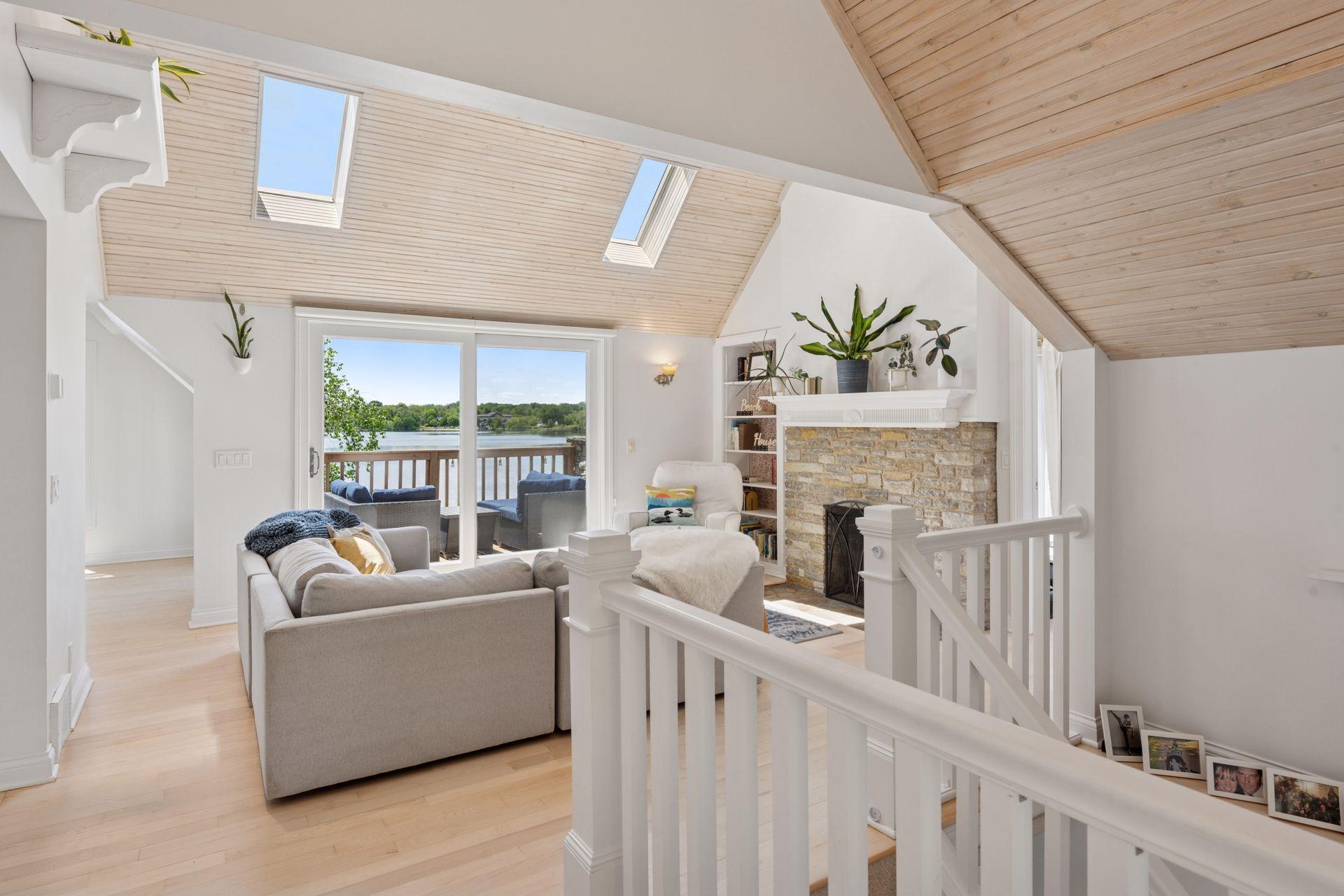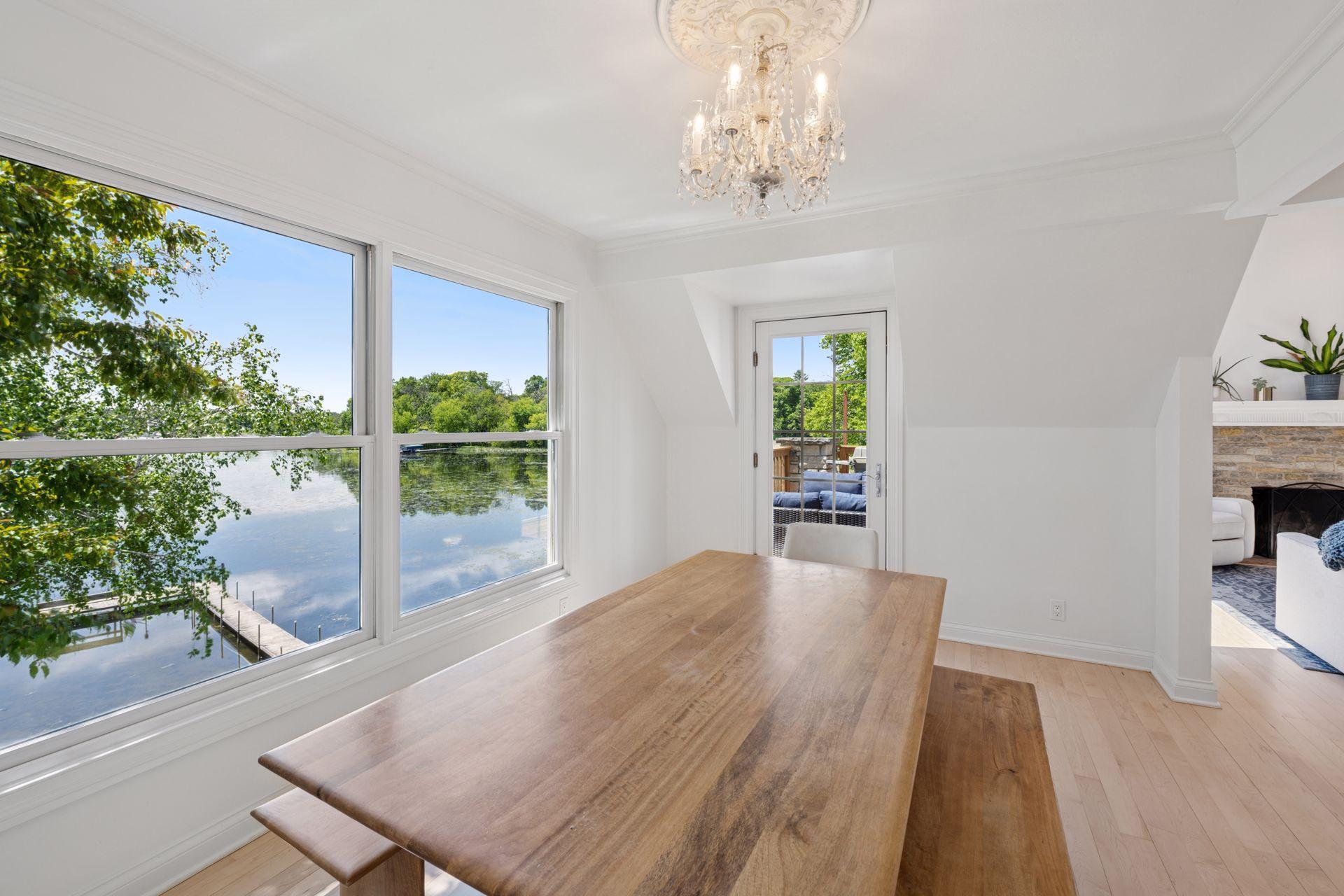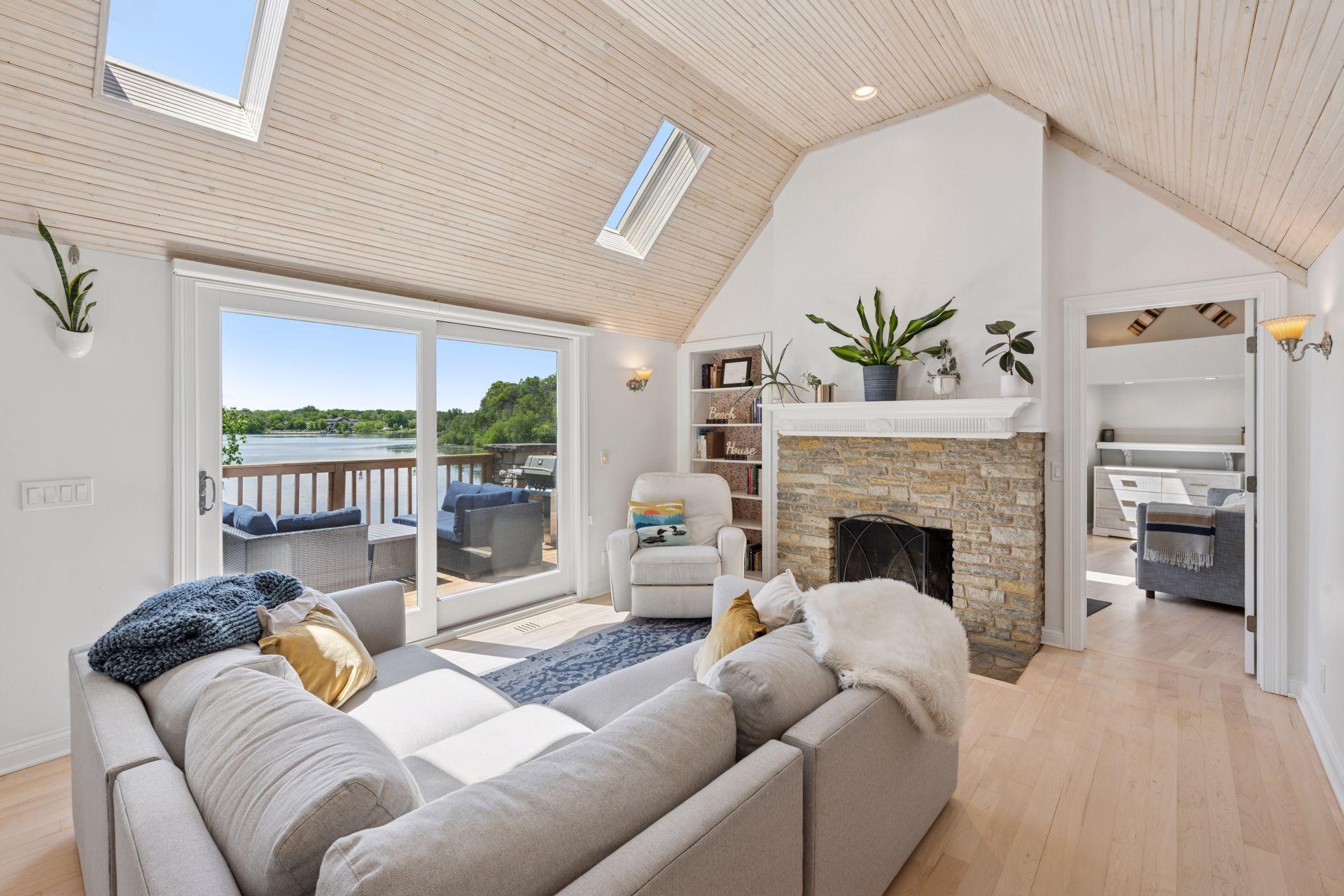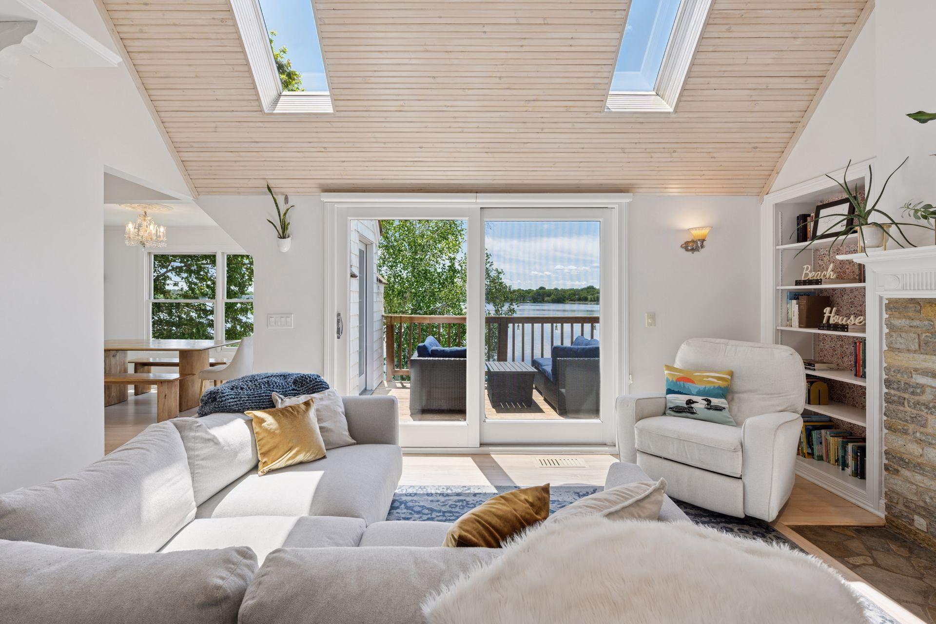 1575 Long Lake Blvd was the first cabin built in the neighborhood you see today. The “Albee Addition” was an Apple Orchard long before lake cabins were built in the late 1930s. Edna Albee, the original owner, was from Norway. Many of the original Norwegian details remain intact in the fireplace mantle, main level bathroom mirror/bath tile work and dining room chandelier. The approach to the house is a step back in time to those original lake cottage days. This home has been meticulously maintained and improved over the years and there is potential to make further improvements and additions. Even with these changes over the years, the charm remains. From the moment you step inside and see the bright spaces with all the right details, you feel the care that all the stewards of this wonderful property have given this home. The additions are tasteful and right sized; the quality and finishes are consistent, complimenting the original character but improving the structure with a new foundation and walkout lower level making for level floors and no old house creaks. What it may lack in modern layout convenience, it more than makes up for with its charm and setting. This property is truly unique and is as much about the setting and outdoor space as it is about the indoor spaces. It feels up north but then you remember, you are 7 minutes from Wayzata and 22 minutes from downtown Minneapolis. The property width, elevation and mature trees work together to create supreme lakeside privacy, and privacy between neighbors. With 250 feet of south facing shoreline on .6 acres, the expansive and unobstructed lake view captures spectacular sunrises and sunsets from inside the house - or from any of the numerous outdoor leisure areas. How many outdoor areas?? Well ... six distinct outdoor areas give you options for any mood or occasion. The back deck and dining deck are two very different feelings, one offering full sun, the other gives shade. The sandy beach is surrounded by rip rap and is a great spot to relax with your feet in the water or go for a swim. The lower patio offers a similar view to the upper deck, but the saltwater hot tub is a different option for relaxation. The secluded fire pit is tucked away from the house near the forested lowlands, surrounded by a flat stone patio with large stone benches and a peaceful view of the lake. The recessed fire pit includes built in drainage and a nearby hose attachment for safety. And finally, relaxing on the dock is the quintessential lakeside decompression zone. Of course, the lake side does offer a fairly flat area for yard games such, making that seven distinct outdoor areas! While you are outside, keep an eye out for Bald Eagles, turtles, hummingbirds, swans and loons. Mulberries, rhubarb and onion grass grows on the hill, next to the garage.