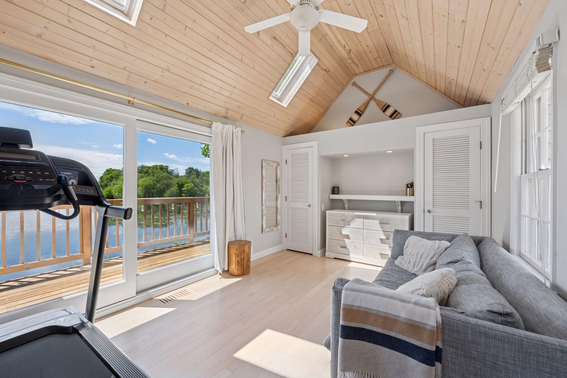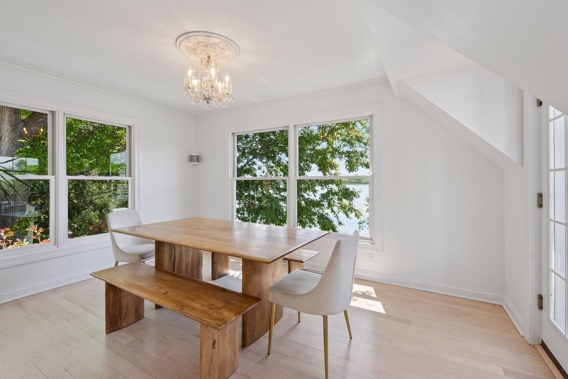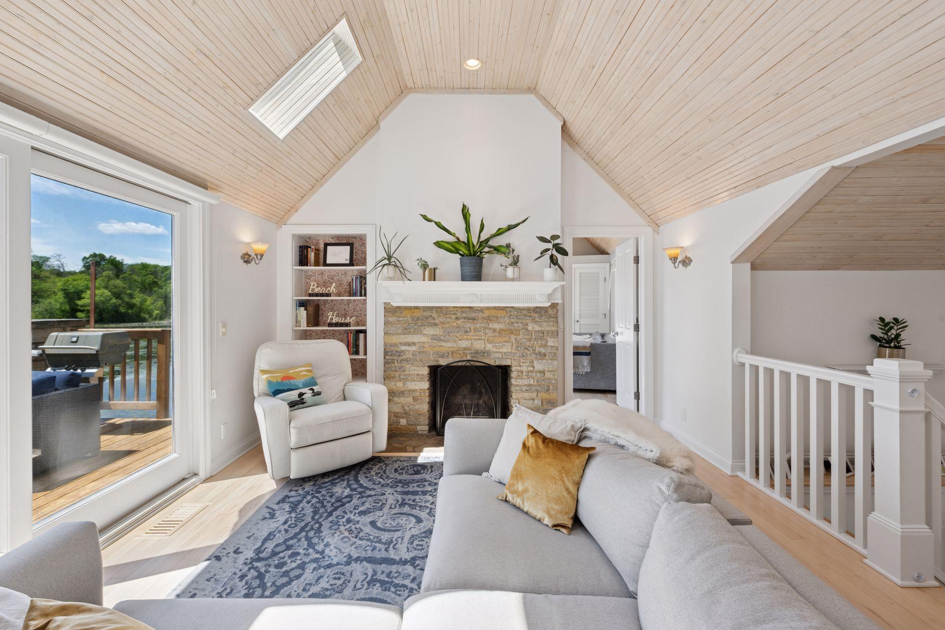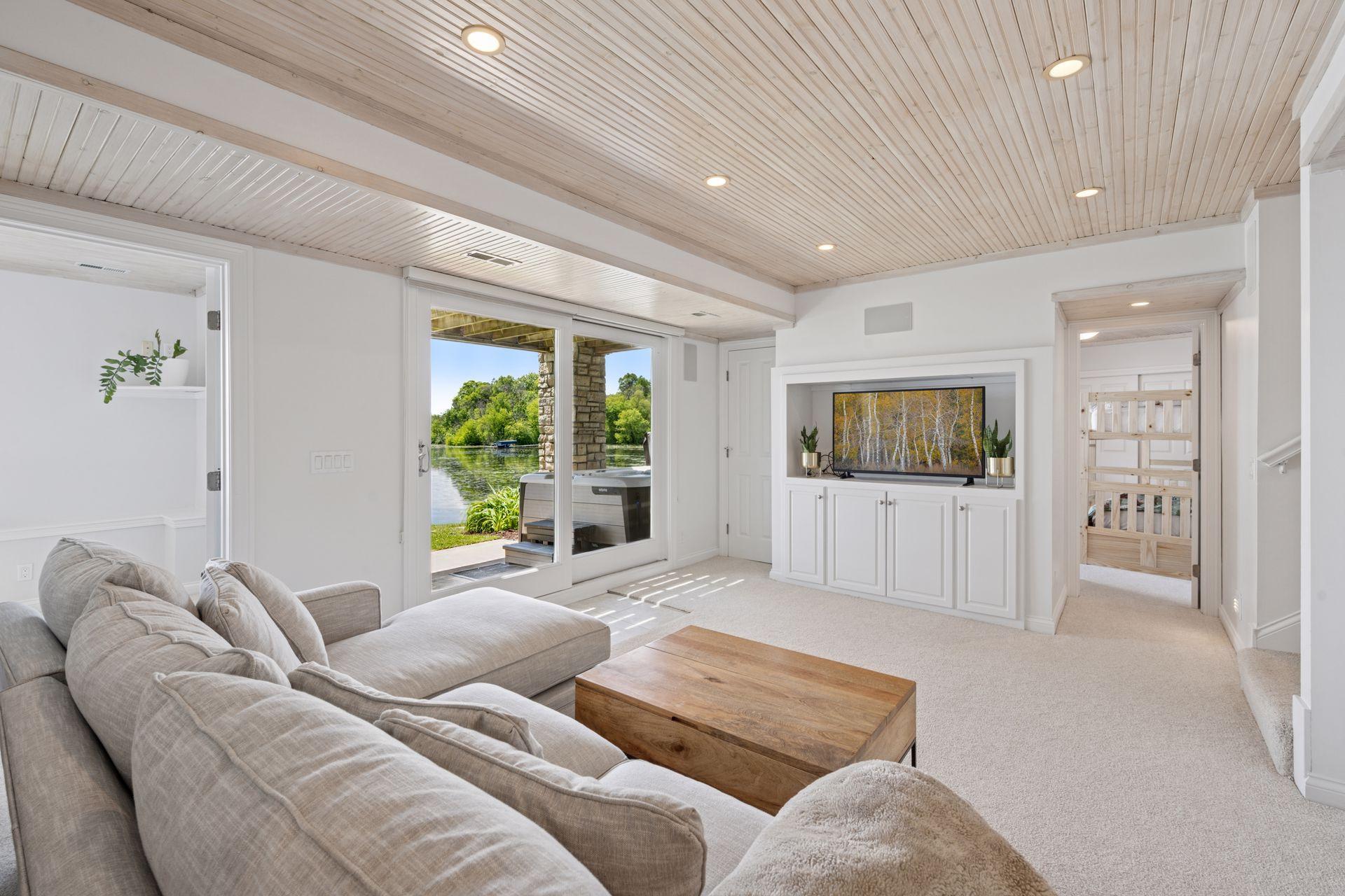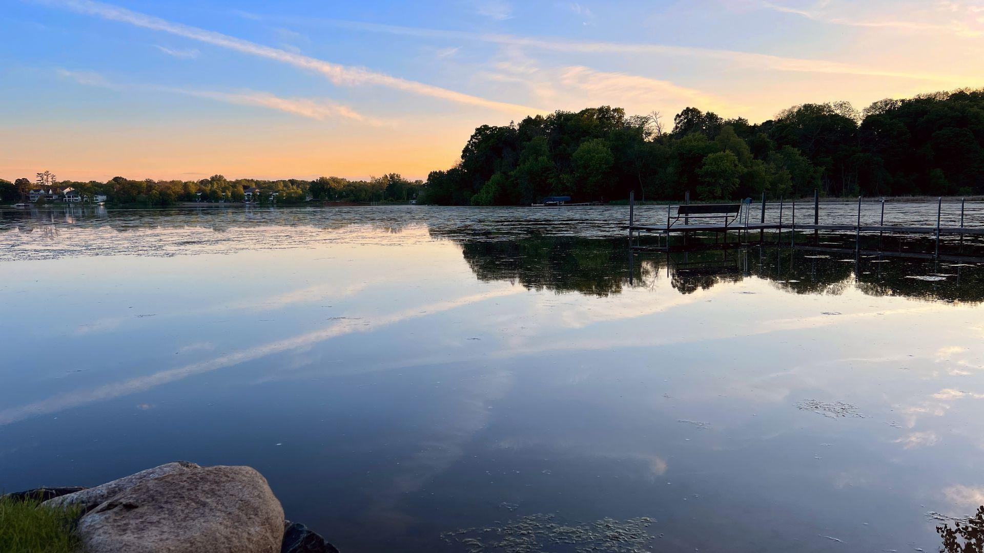 1575 Long Lake Blvd was the first cabin built in the neighborhood you see today. The “Albee Addition” was an Apple Orchard long before lake cabins were built in the late 1930s. Edna Albee, the original owner, was from Norway. Many of the original Norwegian details remain intact in the fireplace mantle, main level bathroom mirror/bath tile work and dining room chandelier. The approach to the house is a step back in time to those original lake cottage days. This home has been meticulously maintained and improved over the years and there is potential to make further improvements and additions. Even with these changes over the years, the charm remains. From the moment you step inside and see the bright spaces with all the right details, you feel the care that all the stewards of this wonderful property have given this home. The additions are tasteful and right sized; the quality and finishes are consistent, complimenting the original character but improving the structure with a new foundation and walkout lower level making for level floors and no old house creaks. What it may lack in modern layout convenience, it more than makes up for with its charm and setting. This property is truly unique and is as much about the setting and outdoor space as it is about the indoor spaces. It feels up north but then you remember, you are 7 minutes from Wayzata and 22 minutes from downtown Minneapolis. The property width, elevation and mature trees work together to create supreme lakeside privacy, and privacy between neighbors. With 250 feet of south facing shoreline on .6 acres, the expansive and unobstructed lake view captures spectacular sunrises and sunsets from inside the house - or from any of the numerous outdoor leisure areas. How many outdoor areas?? Well ... six distinct outdoor areas give you options for any mood or occasion. The back deck and dining deck are two very different feelings, one offering full sun, the other gives shade. The sandy beach is surrounded by rip rap and is a great spot to relax with your feet in the water or go for a swim. The lower patio offers a similar view to the upper deck, but the saltwater hot tub is a different option for relaxation. The secluded fire pit is tucked away from the house near the forested lowlands, surrounded by a flat stone patio with large stone benches and a peaceful view of the lake. The recessed fire pit includes built in drainage and a nearby hose attachment for safety. And finally, relaxing on the dock is the quintessential lakeside decompression zone. Of course, the lake side does offer a fairly flat area for yard games such, making that seven distinct outdoor areas! While you are outside, keep an eye out for Bald Eagles, turtles, hummingbirds, swans and loons. Mulberries, rhubarb and onion grass grows on the hill, next to the garage.