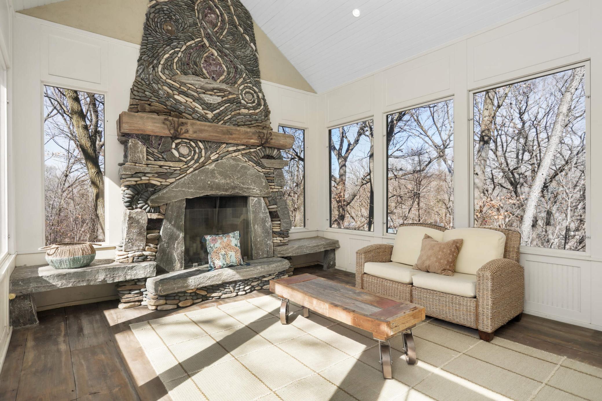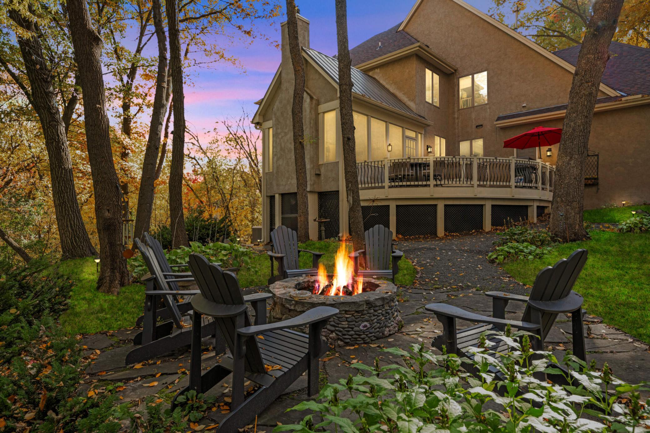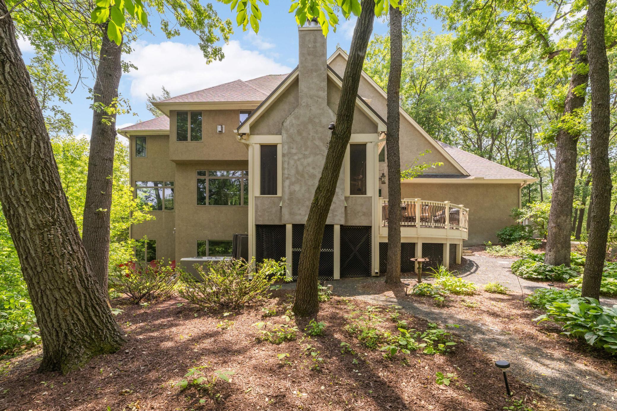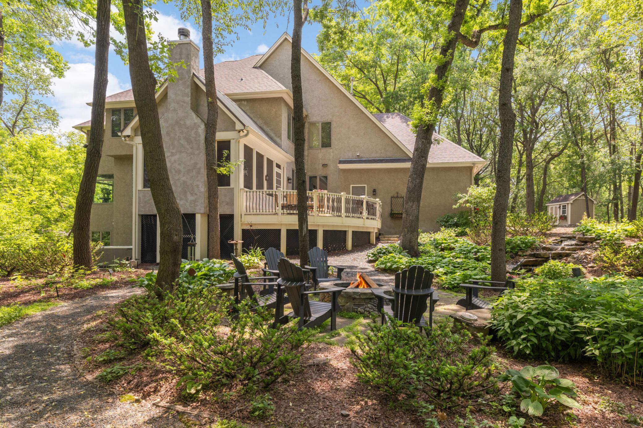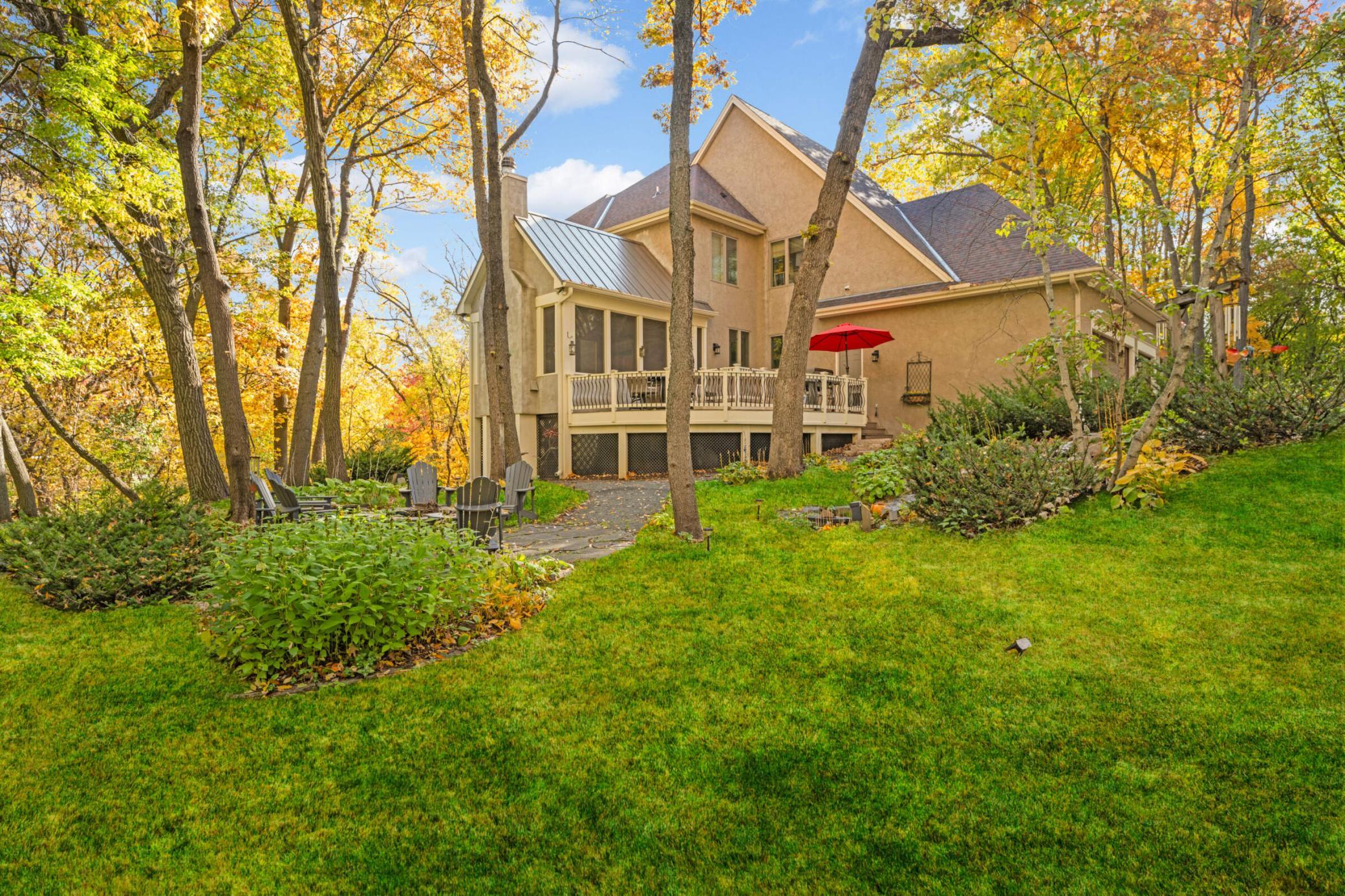 Tucked away at the end of a quiet private drive and surrounded by trees, this stunning Minnetonka home feels like a peaceful retreat—seamlessly blending high-end finishes with timeless character and peaceful seclusion. Thoughtfully crafted for both everyday comfort and effortless entertaining, every detail invites you to relax, unwind, and feel at home. Meticulously maintained and thoughtfully designed, this 5-bedroom, 5-bathroom home offers a spacious and functional layout. Set on a tranquil, wooded 0.51-acre lot, it blends quality construction and comfortable elegance, all brought together with careful attention to detail. Upon entering, you're welcomed by an open floor plan bathed in natural light, with expansive windows framing picturesque treetop views. The gourmet kitchen is a culinary masterpiece, outfitted with top-of-the-line Wolf and KitchenAid appliances, a spacious center island, and a custom wine bar. Just off the kitchen, the stunning screened porch features an artisan-crafted stone fireplace—a true conversation piece—hand-built with rocks sourced from every continent. Embedded with ancient fossils, over two dozen backlit trilobites, a genuine shark tooth, and striking amethysts, this space offers a cozy, one-of-a-kind retreat year-round. The main level also includes a private office with built-in cabinetry, ideal for working from home in style. Upstairs, four bedrooms are thoughtfully situated on the same level. The luxurious primary suite features its own fireplace, a spa-inspired bathroom renovation with heated floors, and a generous walk-in closet. Two additional bedrooms share a Jack-and-Jill bath, while a fourth bedroom enjoys a private en-suite—perfect for accommodating family or guests with ease. The walk-out lower level is made for entertaining, complete with a theater room, gaming area, fifth bedroom, and full bath, plus direct access to the home’s serene outdoor spaces. The backyard is a nature lover’s dream—nestled among mature trees and lush landscaping. Featuring a spacious deck perfect for entertaining or relaxing, the outdoor living area extends into a serene patio with a built-in fire pit. A beautifully landscaped path winds through hostas, and perennial flowering plants, leading to a charming water feature with cascading rocks that adds both visual and audible tranquility. Whether hosting gatherings or enjoying peaceful evenings, this natural retreat offers the perfect blend of comfort, beauty, and seclusion. Additional highlights include a heated 3-car garage with an electric car charger, all-new carpeting and paint, refinished Brazilian cherry floors, and a newly expanded asphalt driveway. Located within the esteemed Minnetonka School District (276), this home offers convenient access to a wealth of local amenities. Explore nearby parks and trails. Easy access to highways, stores, and restaurants. Experience the rare opportunity to enjoy the perfect harmony of refined living and natural beauty in this exceptional Minnetonka residence.