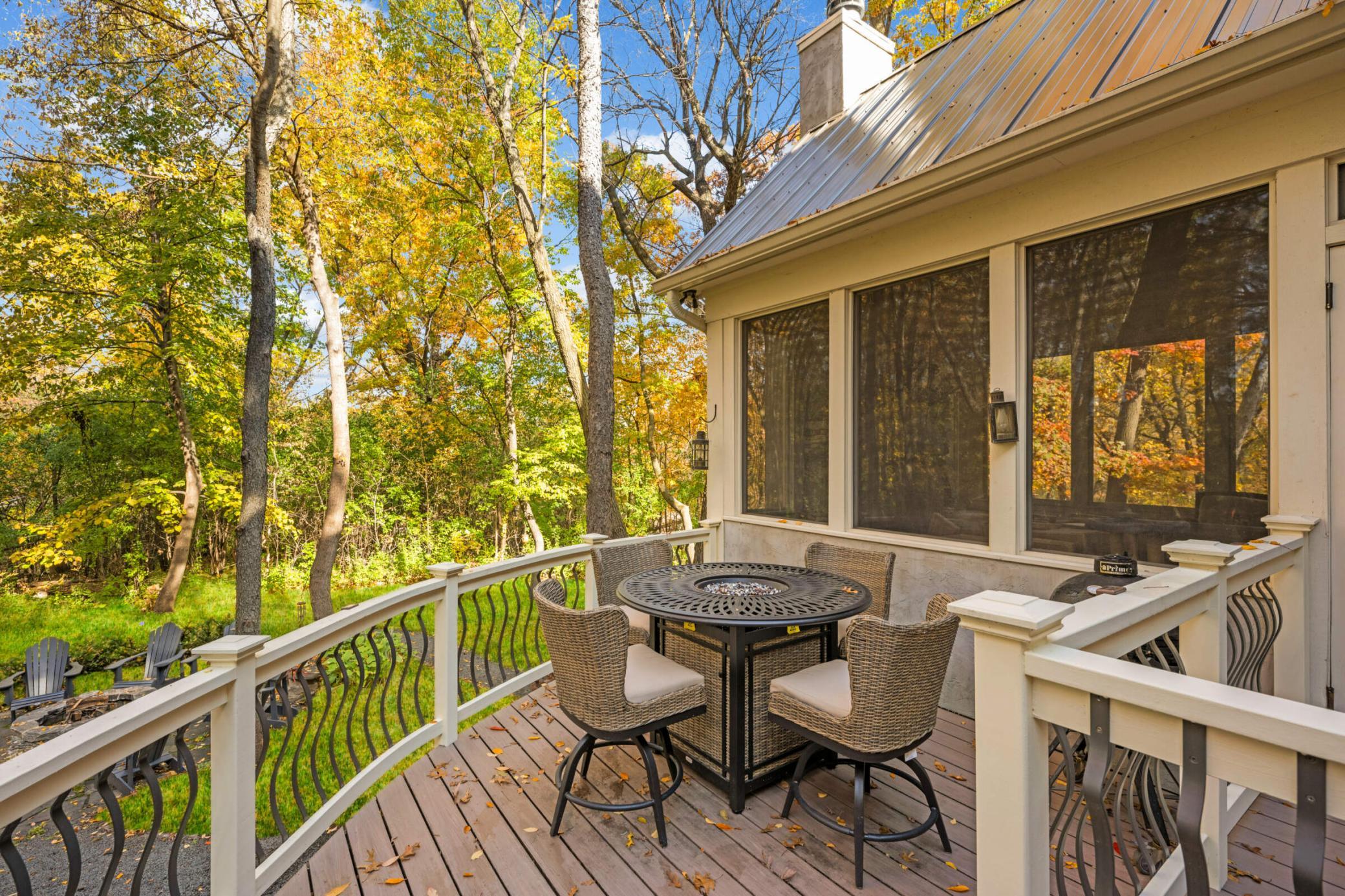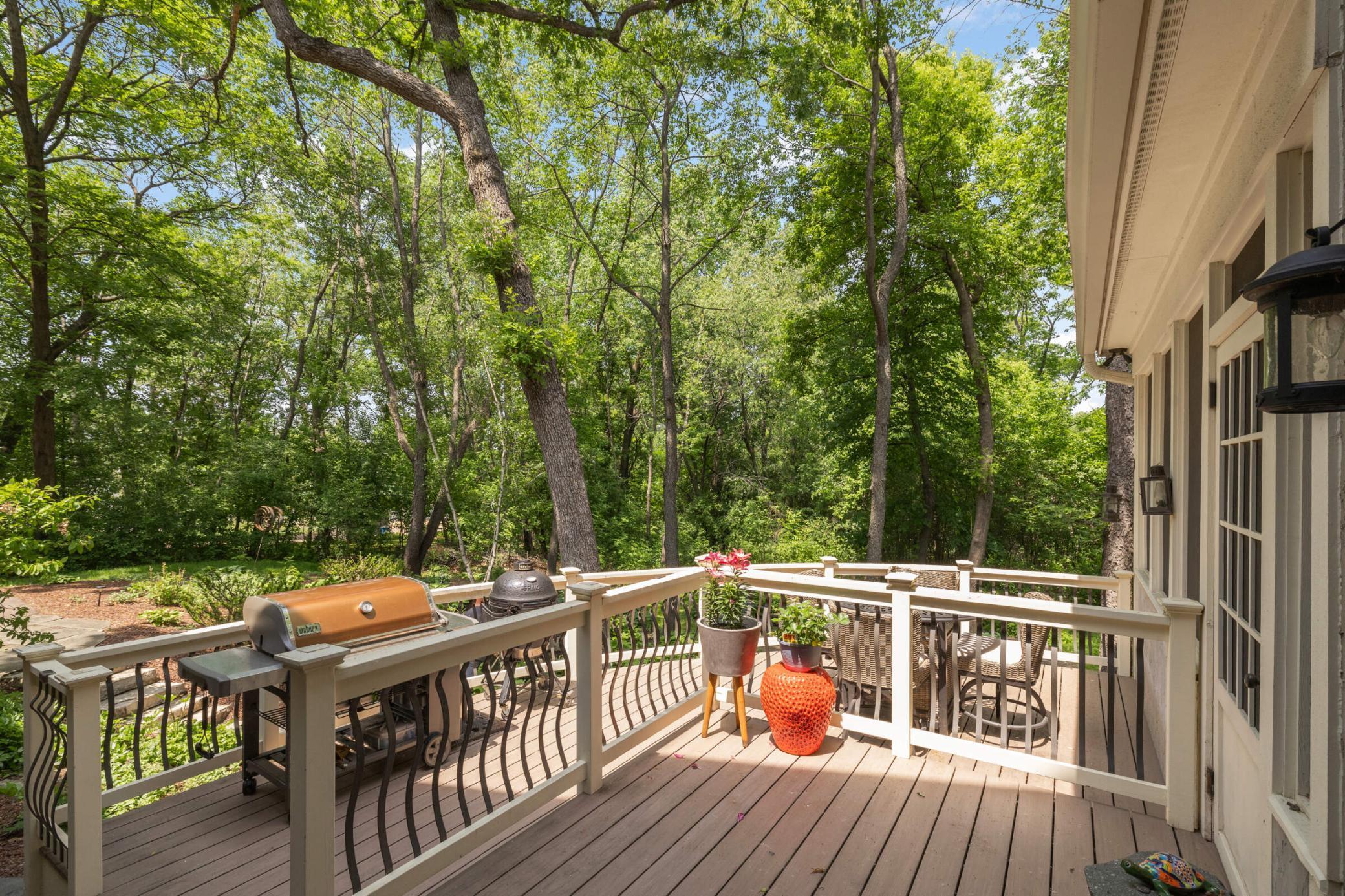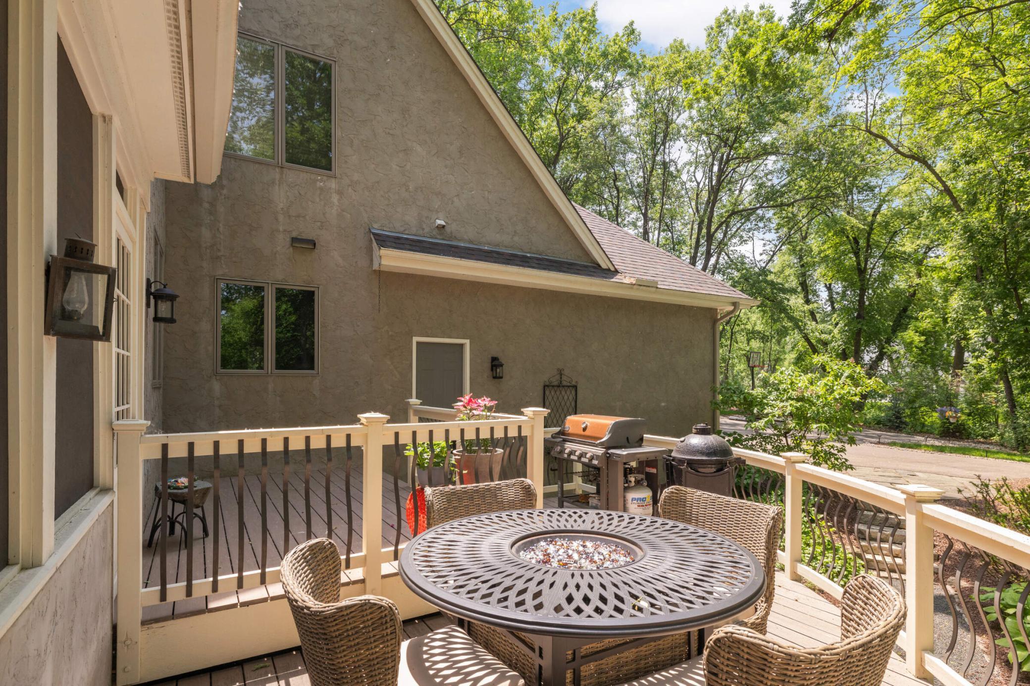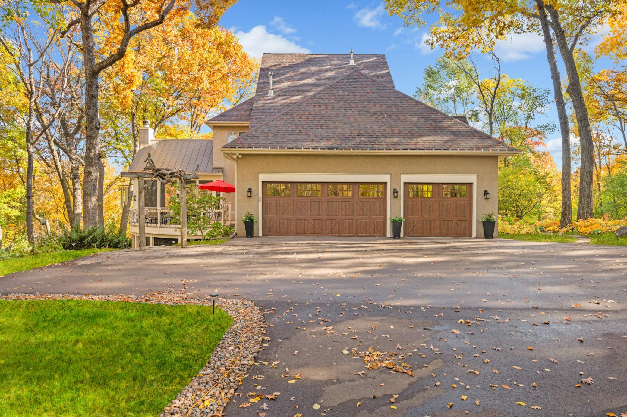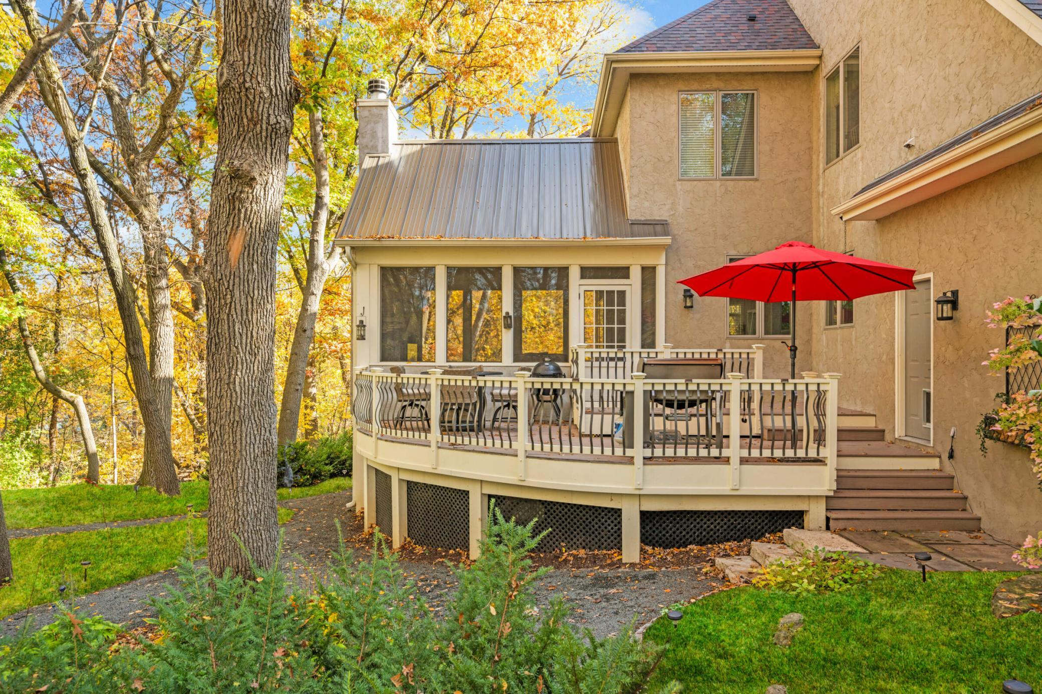 Tucked away at the end of a quiet private drive and surrounded by trees, this stunning Minnetonka home feels like a peaceful retreat—seamlessly blending high-end finishes with timeless character and peaceful seclusion. Thoughtfully crafted for both everyday comfort and effortless entertaining, every detail invites you to relax, unwind, and feel at home. Meticulously maintained and thoughtfully designed, this 5-bedroom, 5-bathroom home offers a spacious and functional layout. Set on a tranquil, wooded 0.51-acre lot, it blends quality construction and comfortable elegance, all brought together with careful attention to detail. Upon entering, you're welcomed by an open floor plan bathed in natural light, with expansive windows framing picturesque treetop views. The gourmet kitchen is a culinary masterpiece, outfitted with top-of-the-line Wolf and KitchenAid appliances, a spacious center island, and a custom wine bar. Just off the kitchen, the stunning screened porch features an artisan-crafted stone fireplace—a true conversation piece—hand-built with rocks sourced from every continent. Embedded with ancient fossils, over two dozen backlit trilobites, a genuine shark tooth, and striking amethysts, this space offers a cozy, one-of-a-kind retreat year-round. The main level also includes a private office with built-in cabinetry, ideal for working from home in style. Upstairs, four bedrooms are thoughtfully situated on the same level. The luxurious primary suite features its own fireplace, a spa-inspired bathroom renovation with heated floors, and a generous walk-in closet. Two additional bedrooms share a Jack-and-Jill bath, while a fourth bedroom enjoys a private en-suite—perfect for accommodating family or guests with ease. The walk-out lower level is made for entertaining, complete with a theater room, gaming area, fifth bedroom, and full bath, plus direct access to the home’s serene outdoor spaces. The backyard is a nature lover’s dream—nestled among mature trees and lush landscaping. Featuring a spacious deck perfect for entertaining or relaxing, the outdoor living area extends into a serene patio with a built-in fire pit. A beautifully landscaped path winds through hostas, and perennial flowering plants, leading to a charming water feature with cascading rocks that adds both visual and audible tranquility. Whether hosting gatherings or enjoying peaceful evenings, this natural retreat offers the perfect blend of comfort, beauty, and seclusion. Additional highlights include a heated 3-car garage with an electric car charger, all-new carpeting and paint, refinished Brazilian cherry floors, and a newly expanded asphalt driveway. Located within the esteemed Minnetonka School District (276), this home offers convenient access to a wealth of local amenities. Explore nearby parks and trails. Easy access to highways, stores, and restaurants. Experience the rare opportunity to enjoy the perfect harmony of refined living and natural beauty in this exceptional Minnetonka residence.