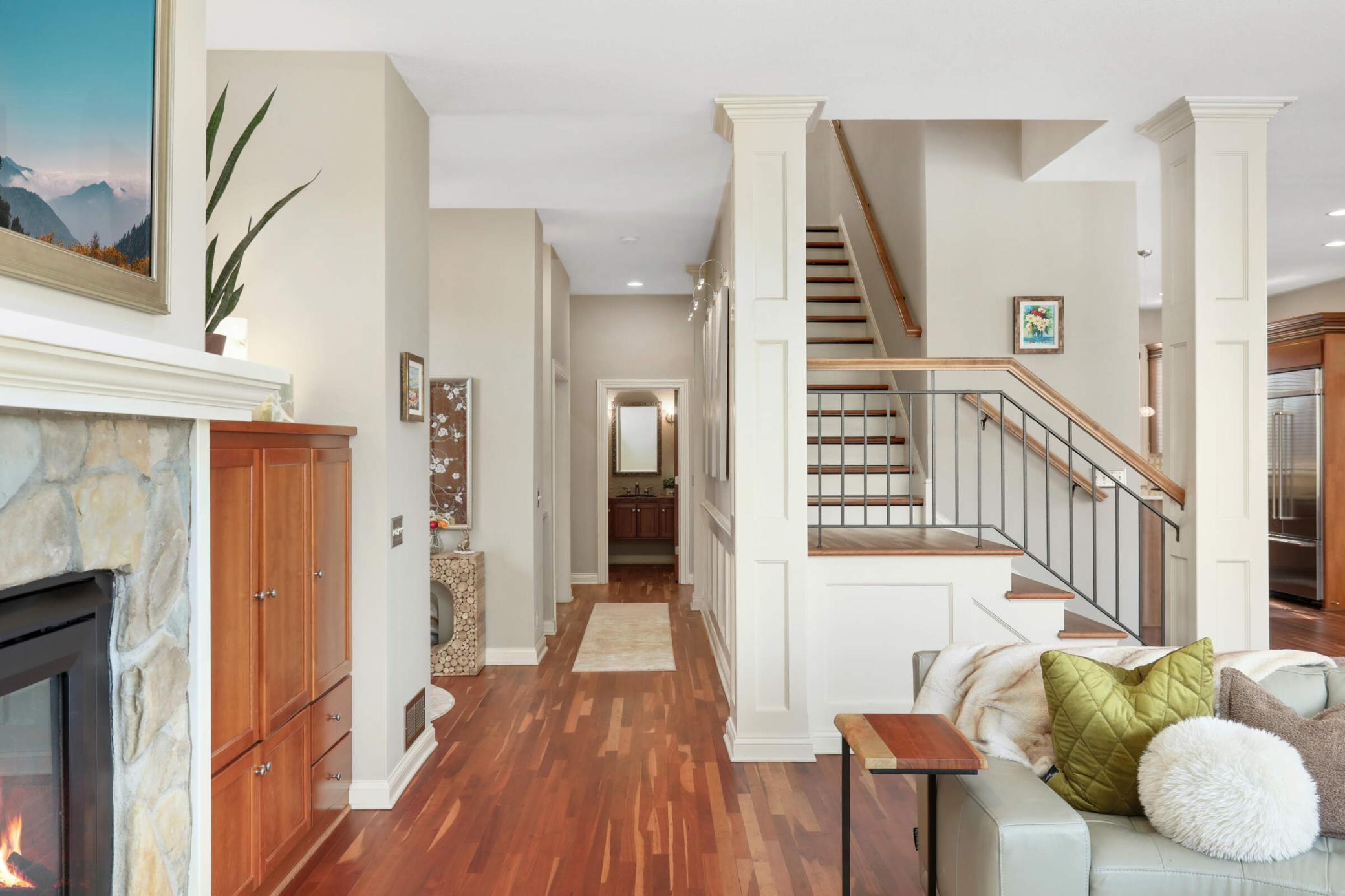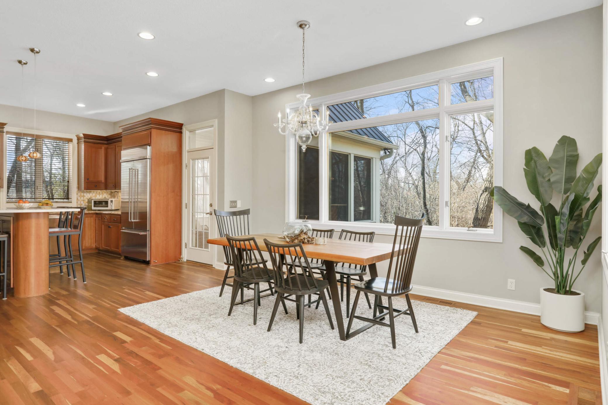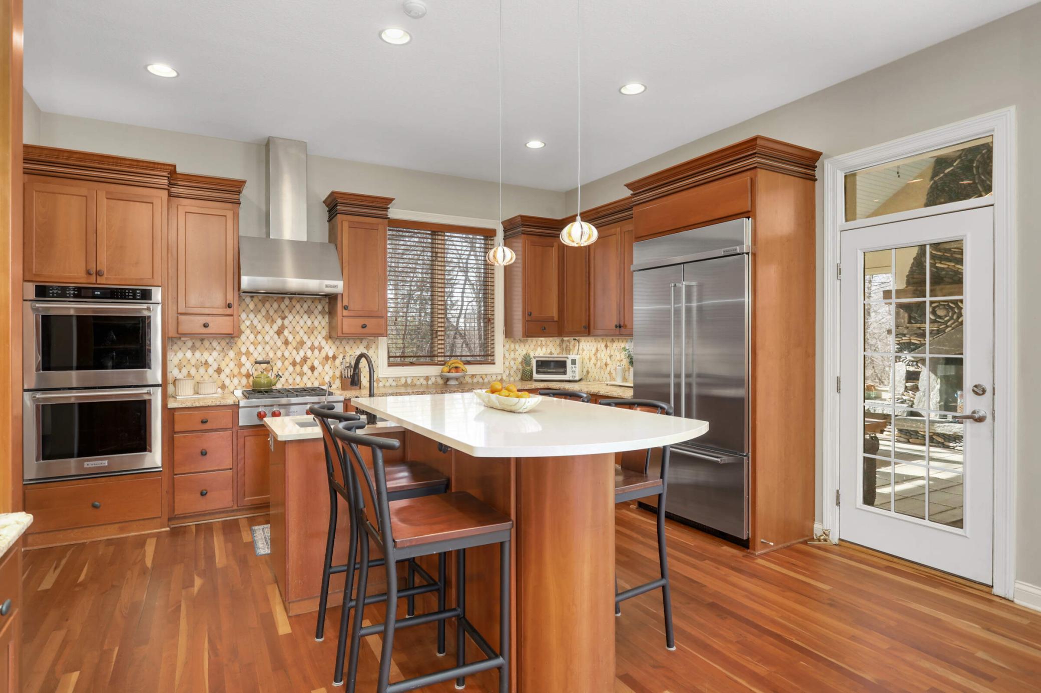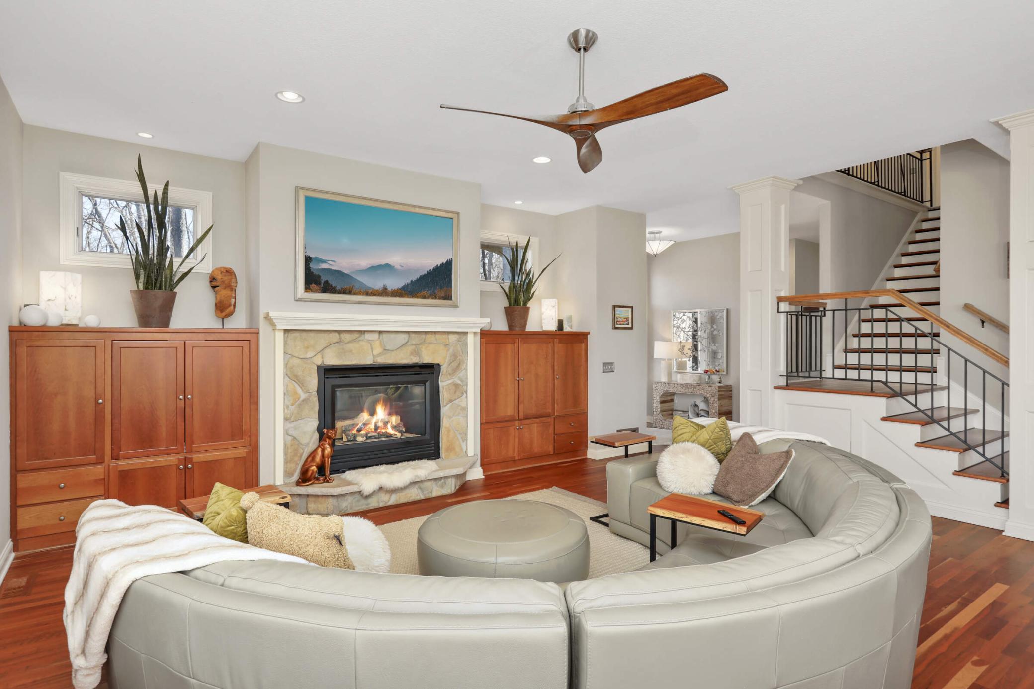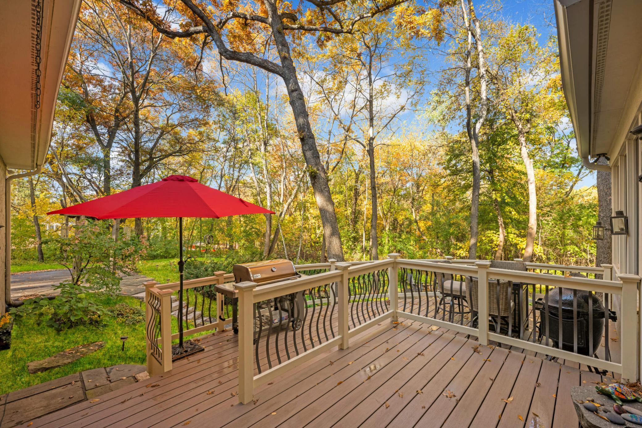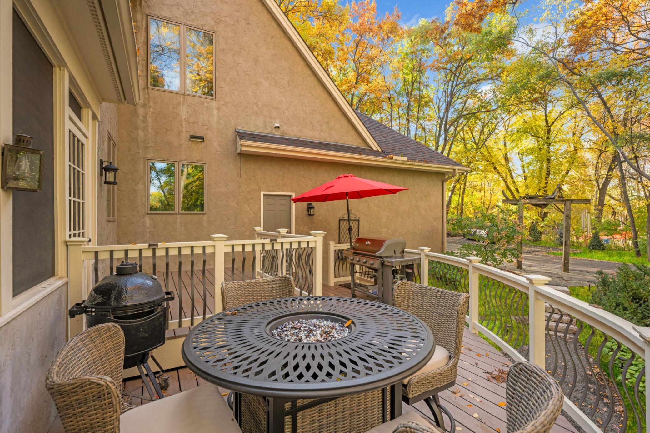 Tucked away at the end of a quiet private drive and surrounded by trees, this stunning Minnetonka home feels like a peaceful retreat—seamlessly blending high-end finishes with timeless character and peaceful seclusion. Thoughtfully crafted for both everyday comfort and effortless entertaining, every detail invites you to relax, unwind, and feel at home. Meticulously maintained and thoughtfully designed, this 5-bedroom, 5-bathroom home offers a spacious and functional layout. Set on a tranquil, wooded 0.51-acre lot, it blends quality construction and comfortable elegance, all brought together with careful attention to detail. Upon entering, you're welcomed by an open floor plan bathed in natural light, with expansive windows framing picturesque treetop views. The gourmet kitchen is a culinary masterpiece, outfitted with top-of-the-line Wolf and KitchenAid appliances, a spacious center island, and a custom wine bar. Just off the kitchen, the stunning screened porch features an artisan-crafted stone fireplace—a true conversation piece—hand-built with rocks sourced from every continent. Embedded with ancient fossils, over two dozen backlit trilobites, a genuine shark tooth, and striking amethysts, this space offers a cozy, one-of-a-kind retreat year-round. The main level also includes a private office with built-in cabinetry, ideal for working from home in style. Upstairs, four bedrooms are thoughtfully situated on the same level. The luxurious primary suite features its own fireplace, a spa-inspired bathroom renovation with heated floors, and a generous walk-in closet. Two additional bedrooms share a Jack-and-Jill bath, while a fourth bedroom enjoys a private en-suite—perfect for accommodating family or guests with ease. The walk-out lower level is made for entertaining, complete with a theater room, gaming area, fifth bedroom, and full bath, plus direct access to the home’s serene outdoor spaces. The backyard is a nature lover’s dream—nestled among mature trees and lush landscaping. Featuring a spacious deck perfect for entertaining or relaxing, the outdoor living area extends into a serene patio with a built-in fire pit. A beautifully landscaped path winds through hostas, and perennial flowering plants, leading to a charming water feature with cascading rocks that adds both visual and audible tranquility. Whether hosting gatherings or enjoying peaceful evenings, this natural retreat offers the perfect blend of comfort, beauty, and seclusion. Additional highlights include a heated 3-car garage with an electric car charger, all-new carpeting and paint, refinished Brazilian cherry floors, and a newly expanded asphalt driveway. Located within the esteemed Minnetonka School District (276), this home offers convenient access to a wealth of local amenities. Explore nearby parks and trails. Easy access to highways, stores, and restaurants. Experience the rare opportunity to enjoy the perfect harmony of refined living and natural beauty in this exceptional Minnetonka residence.