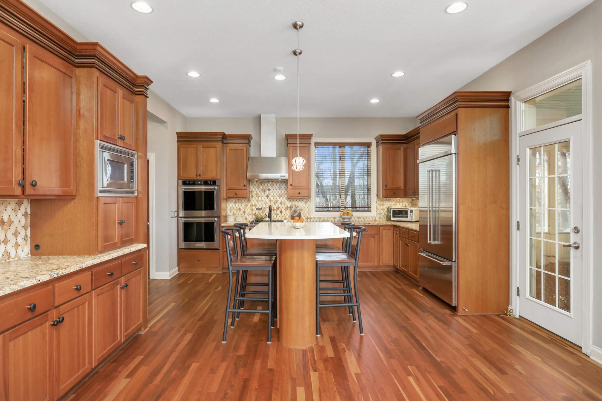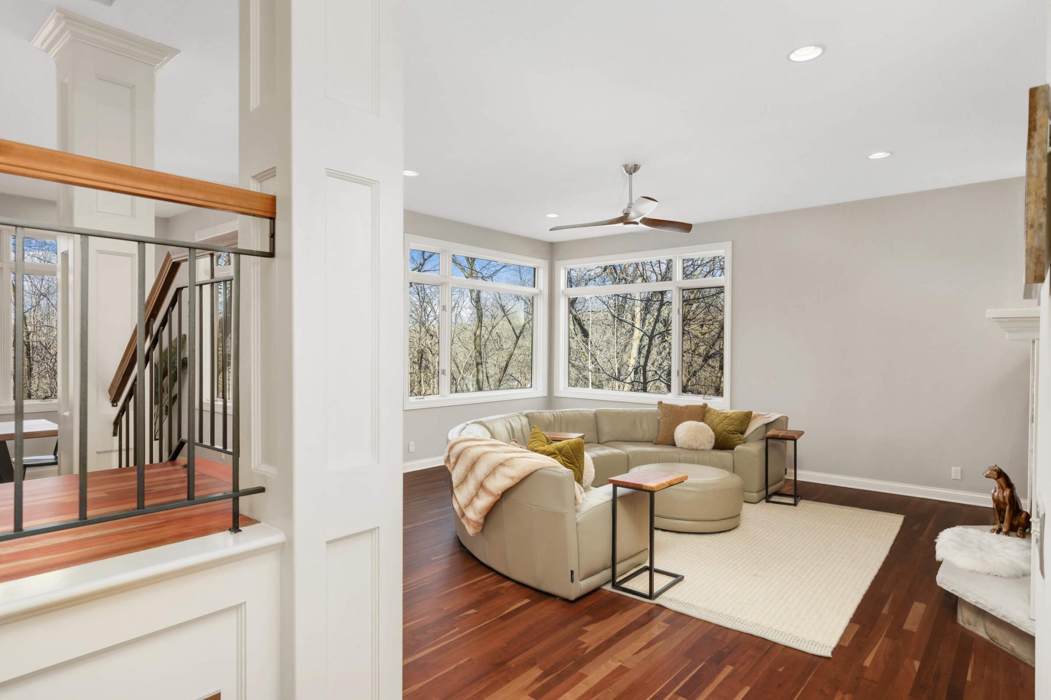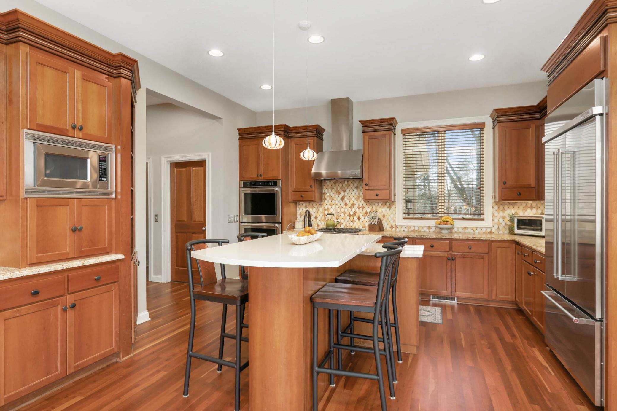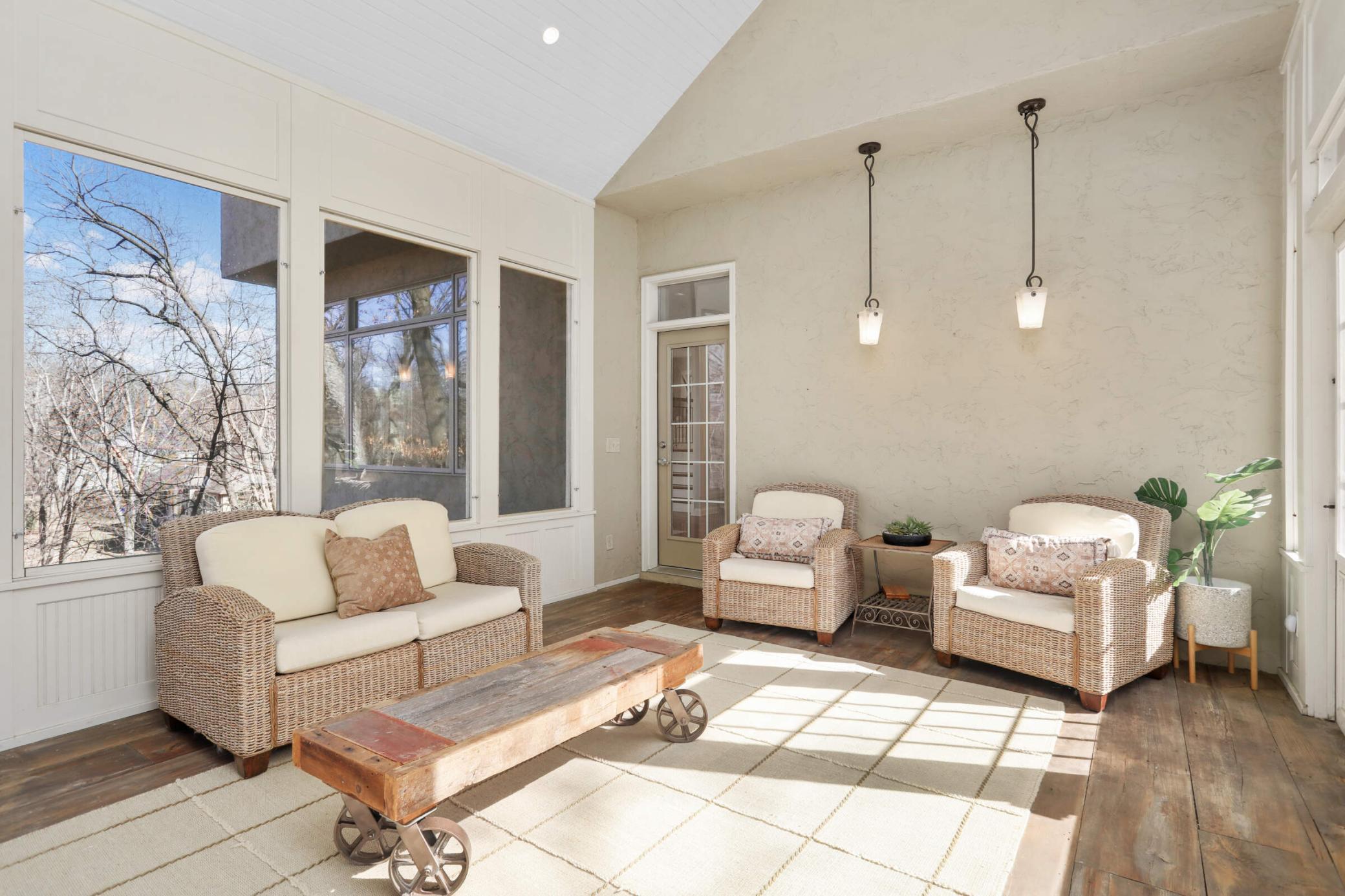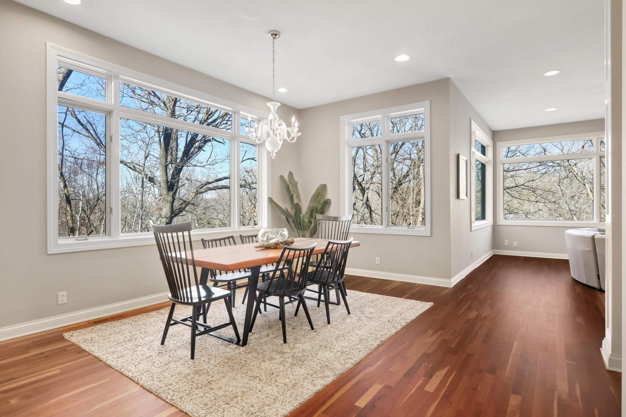 Tucked away at the end of a quiet private drive and surrounded by trees, this stunning Minnetonka home feels like a peaceful retreat—seamlessly blending high-end finishes with timeless character and peaceful seclusion. Thoughtfully crafted for both everyday comfort and effortless entertaining, every detail invites you to relax, unwind, and feel at home. Meticulously maintained and thoughtfully designed, this 5-bedroom, 5-bathroom home offers a spacious and functional layout. Set on a tranquil, wooded 0.51-acre lot, it blends quality construction and comfortable elegance, all brought together with careful attention to detail. Upon entering, you're welcomed by an open floor plan bathed in natural light, with expansive windows framing picturesque treetop views. The gourmet kitchen is a culinary masterpiece, outfitted with top-of-the-line Wolf and KitchenAid appliances, a spacious center island, and a custom wine bar. Just off the kitchen, the stunning screened porch features an artisan-crafted stone fireplace—a true conversation piece—hand-built with rocks sourced from every continent. Embedded with ancient fossils, over two dozen backlit trilobites, a genuine shark tooth, and striking amethysts, this space offers a cozy, one-of-a-kind retreat year-round. The main level also includes a private office with built-in cabinetry, ideal for working from home in style. Upstairs, four bedrooms are thoughtfully situated on the same level. The luxurious primary suite features its own fireplace, a spa-inspired bathroom renovation with heated floors, and a generous walk-in closet. Two additional bedrooms share a Jack-and-Jill bath, while a fourth bedroom enjoys a private en-suite—perfect for accommodating family or guests with ease. The walk-out lower level is made for entertaining, complete with a theater room, gaming area, fifth bedroom, and full bath, plus direct access to the home’s serene outdoor spaces. The backyard is a nature lover’s dream—nestled among mature trees and lush landscaping. Featuring a spacious deck perfect for entertaining or relaxing, the outdoor living area extends into a serene patio with a built-in fire pit. A beautifully landscaped path winds through hostas, and perennial flowering plants, leading to a charming water feature with cascading rocks that adds both visual and audible tranquility. Whether hosting gatherings or enjoying peaceful evenings, this natural retreat offers the perfect blend of comfort, beauty, and seclusion. Additional highlights include a heated 3-car garage with an electric car charger, all-new carpeting and paint, refinished Brazilian cherry floors, and a newly expanded asphalt driveway. Located within the esteemed Minnetonka School District (276), this home offers convenient access to a wealth of local amenities. Explore nearby parks and trails. Easy access to highways, stores, and restaurants. Experience the rare opportunity to enjoy the perfect harmony of refined living and natural beauty in this exceptional Minnetonka residence.