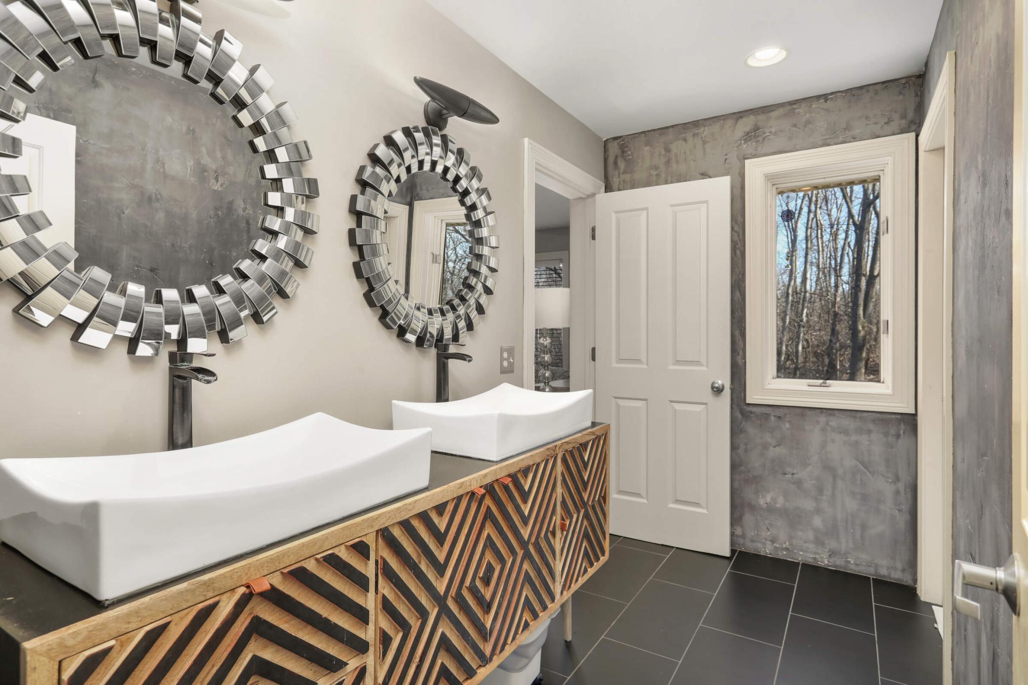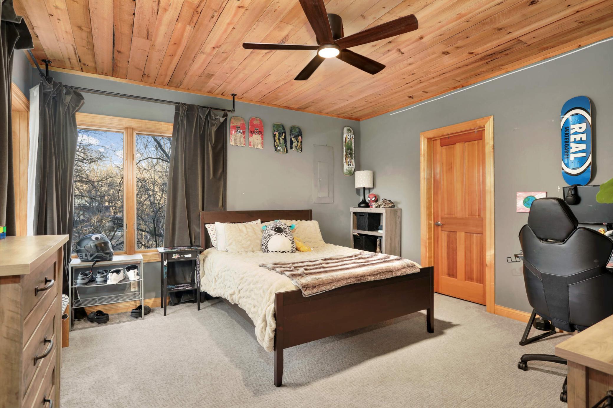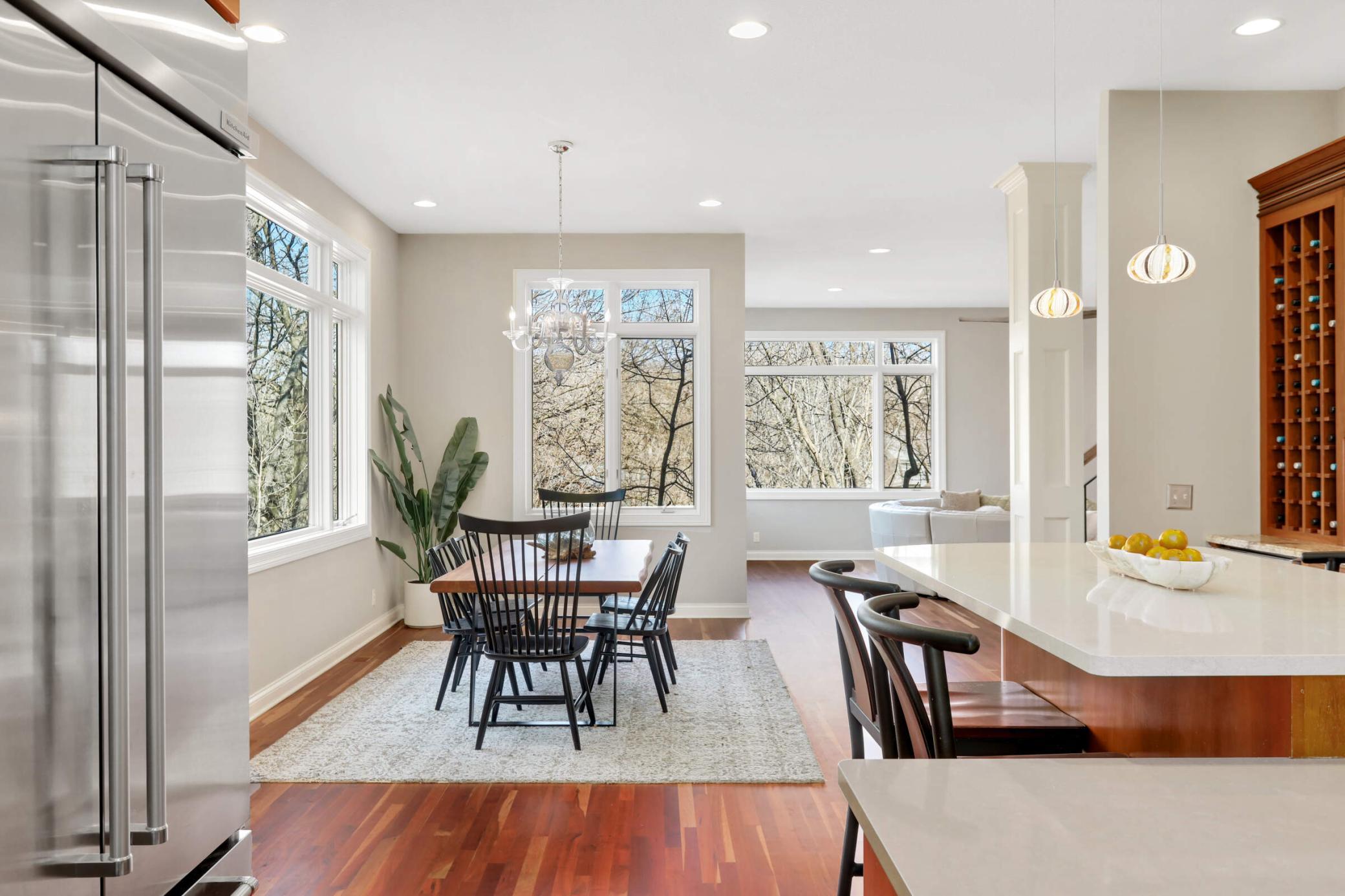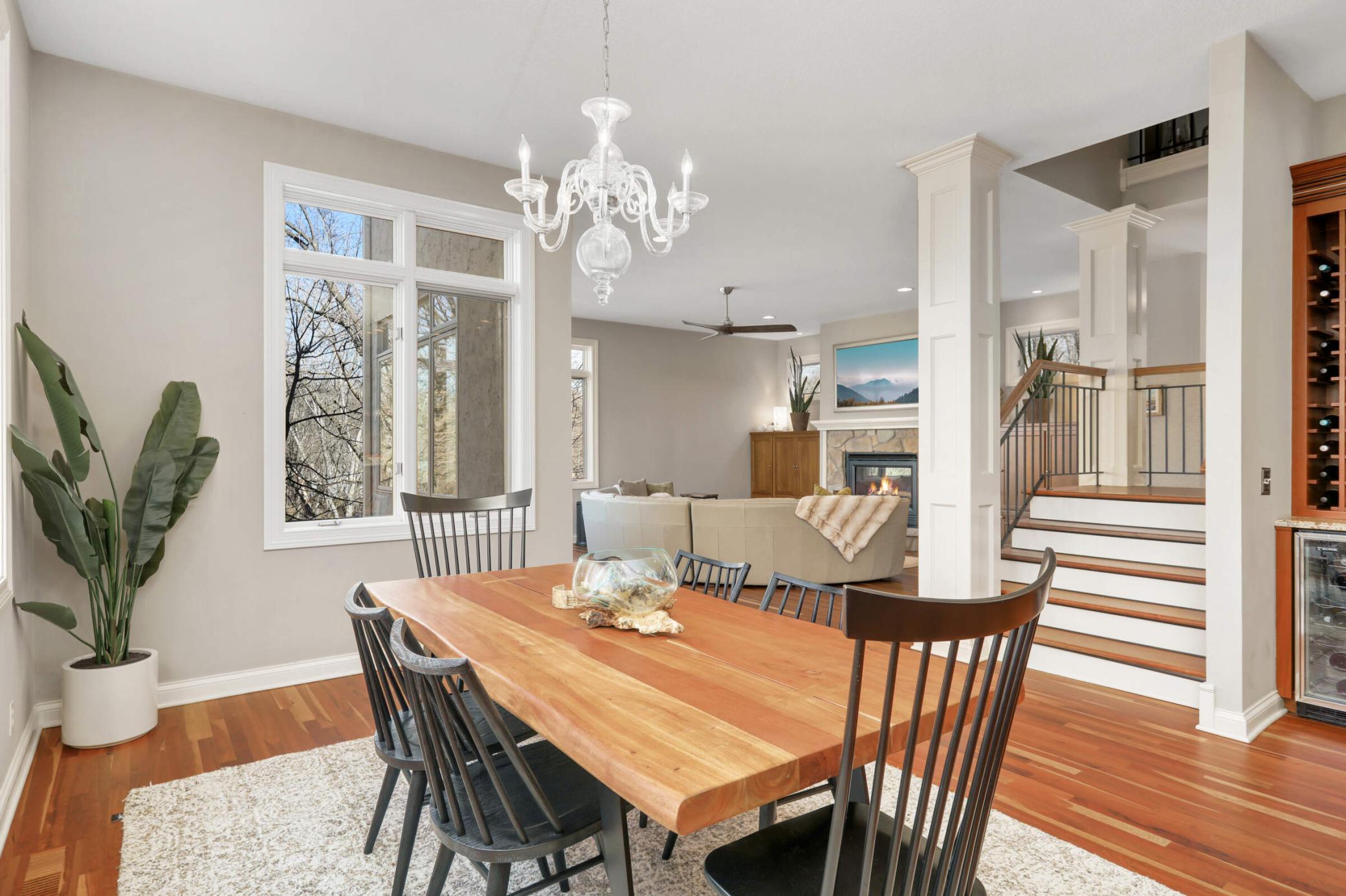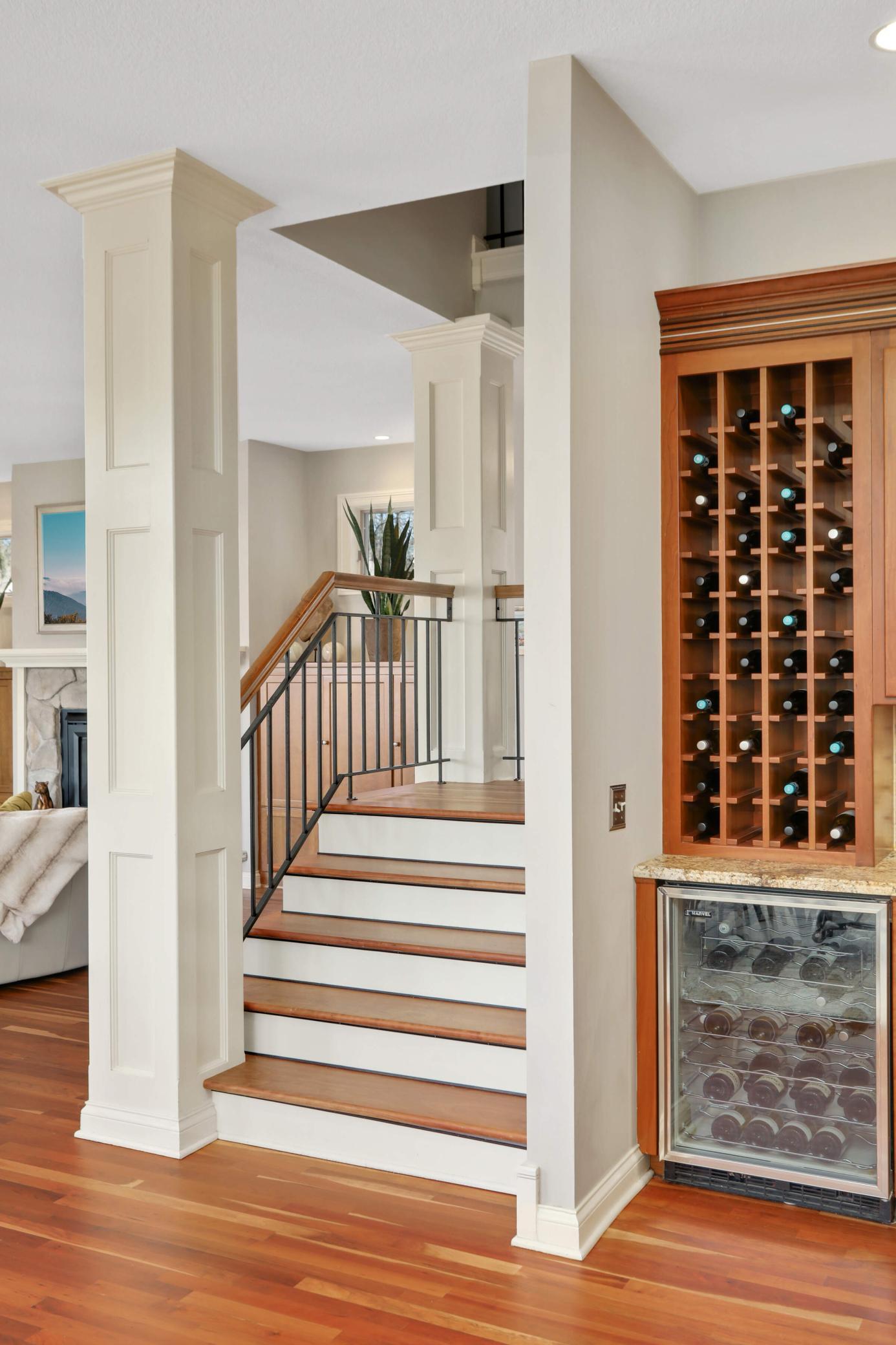 Tucked away at the end of a quiet private drive and surrounded by trees, this stunning Minnetonka home feels like a peaceful retreat—seamlessly blending high-end finishes with timeless character and peaceful seclusion. Thoughtfully crafted for both everyday comfort and effortless entertaining, every detail invites you to relax, unwind, and feel at home. Meticulously maintained and thoughtfully designed, this 5-bedroom, 5-bathroom home offers a spacious and functional layout. Set on a tranquil, wooded 0.51-acre lot, it blends quality construction and comfortable elegance, all brought together with careful attention to detail. Upon entering, you're welcomed by an open floor plan bathed in natural light, with expansive windows framing picturesque treetop views. The gourmet kitchen is a culinary masterpiece, outfitted with top-of-the-line Wolf and KitchenAid appliances, a spacious center island, and a custom wine bar. Just off the kitchen, the stunning screened porch features an artisan-crafted stone fireplace—a true conversation piece—hand-built with rocks sourced from every continent. Embedded with ancient fossils, over two dozen backlit trilobites, a genuine shark tooth, and striking amethysts, this space offers a cozy, one-of-a-kind retreat year-round. The main level also includes a private office with built-in cabinetry, ideal for working from home in style. Upstairs, four bedrooms are thoughtfully situated on the same level. The luxurious primary suite features its own fireplace, a spa-inspired bathroom renovation with heated floors, and a generous walk-in closet. Two additional bedrooms share a Jack-and-Jill bath, while a fourth bedroom enjoys a private en-suite—perfect for accommodating family or guests with ease. The walk-out lower level is made for entertaining, complete with a theater room, gaming area, fifth bedroom, and full bath, plus direct access to the home’s serene outdoor spaces. The backyard is a nature lover’s dream—nestled among mature trees and lush landscaping. Featuring a spacious deck perfect for entertaining or relaxing, the outdoor living area extends into a serene patio with a built-in fire pit. A beautifully landscaped path winds through hostas, and perennial flowering plants, leading to a charming water feature with cascading rocks that adds both visual and audible tranquility. Whether hosting gatherings or enjoying peaceful evenings, this natural retreat offers the perfect blend of comfort, beauty, and seclusion. Additional highlights include a heated 3-car garage with an electric car charger, all-new carpeting and paint, refinished Brazilian cherry floors, and a newly expanded asphalt driveway. Located within the esteemed Minnetonka School District (276), this home offers convenient access to a wealth of local amenities. Explore nearby parks and trails. Easy access to highways, stores, and restaurants. Experience the rare opportunity to enjoy the perfect harmony of refined living and natural beauty in this exceptional Minnetonka residence.