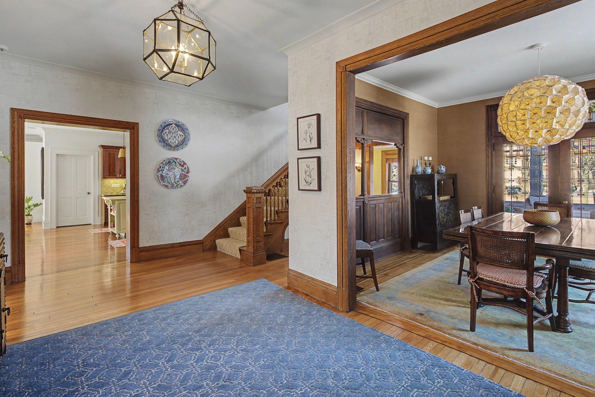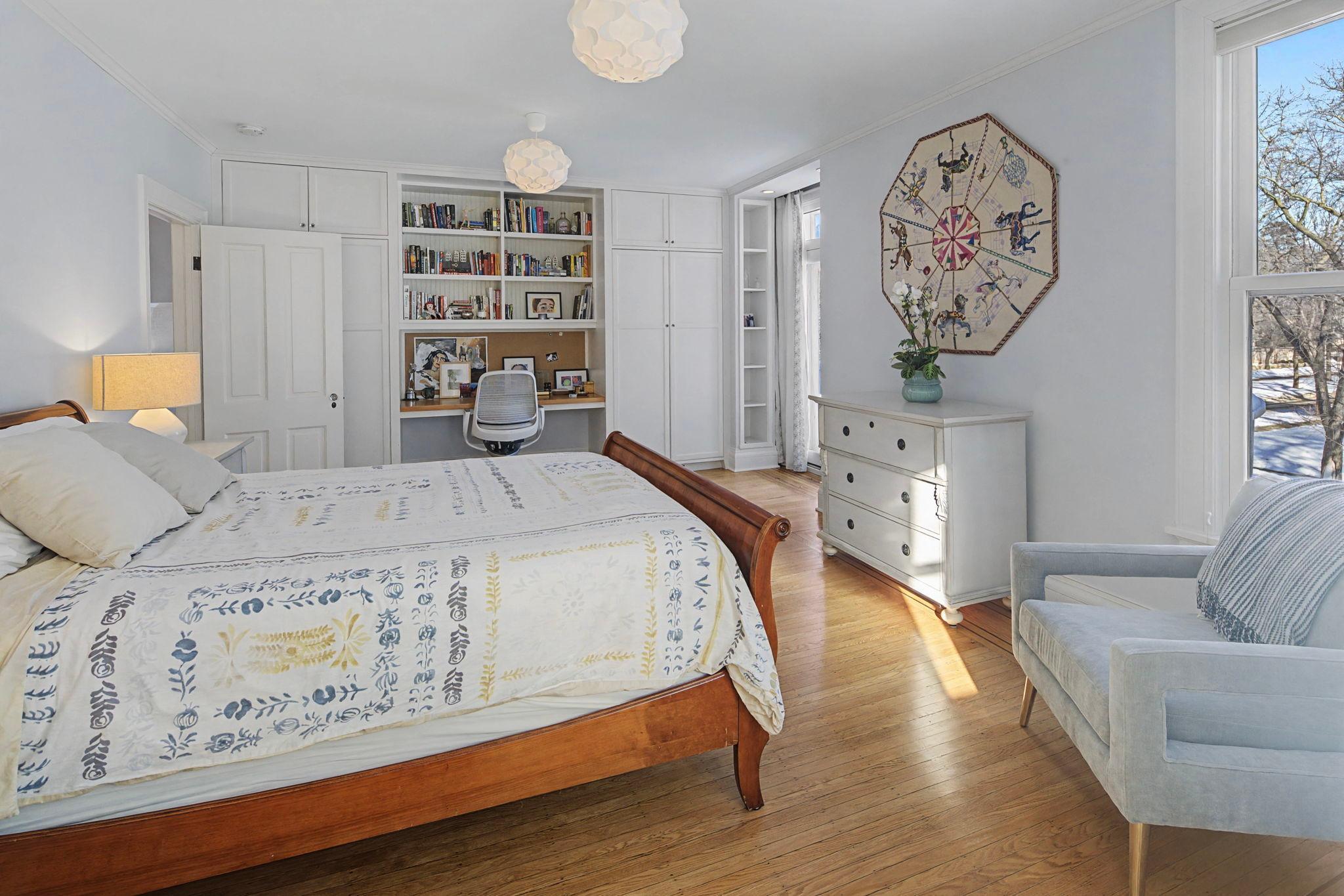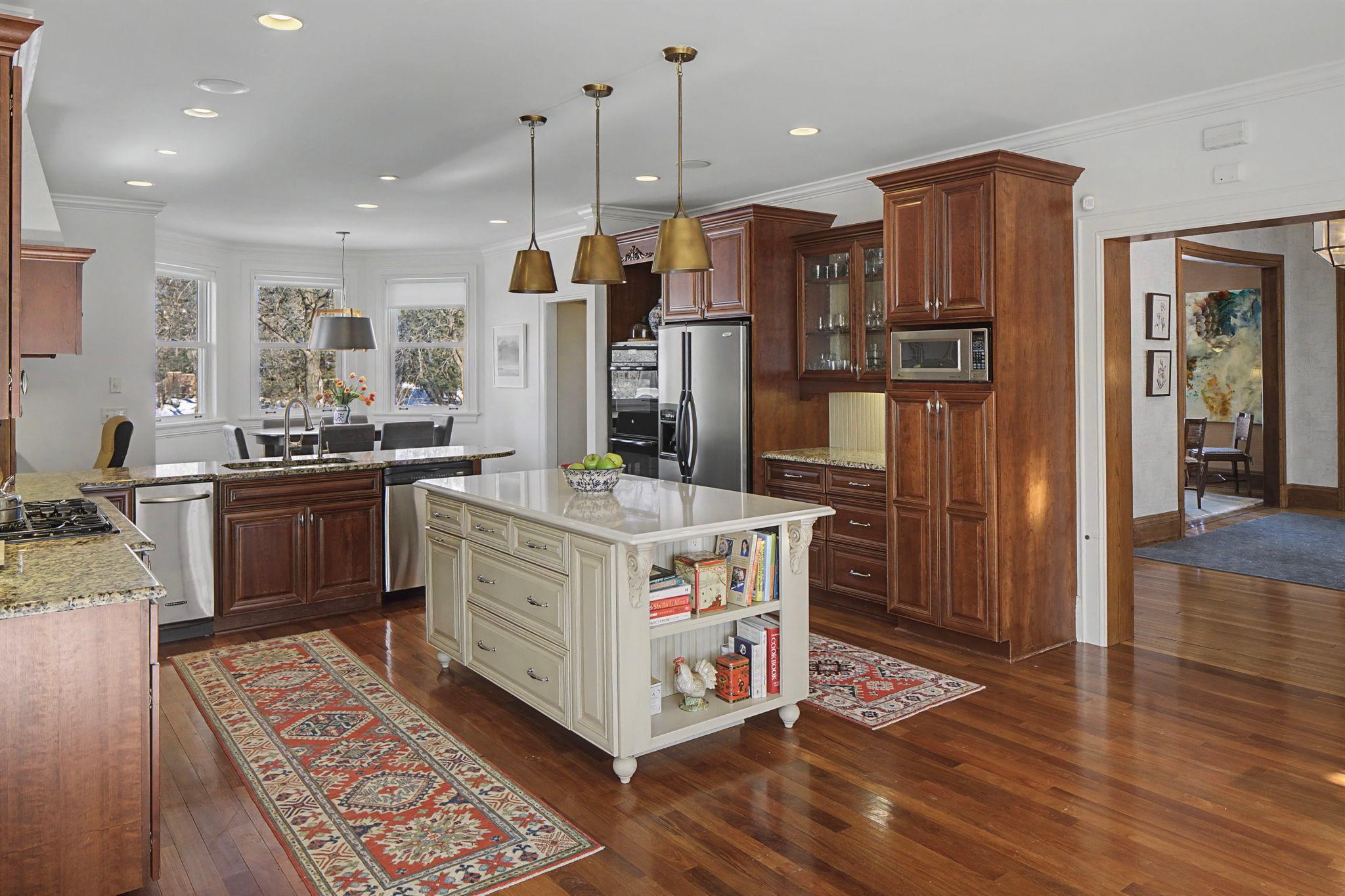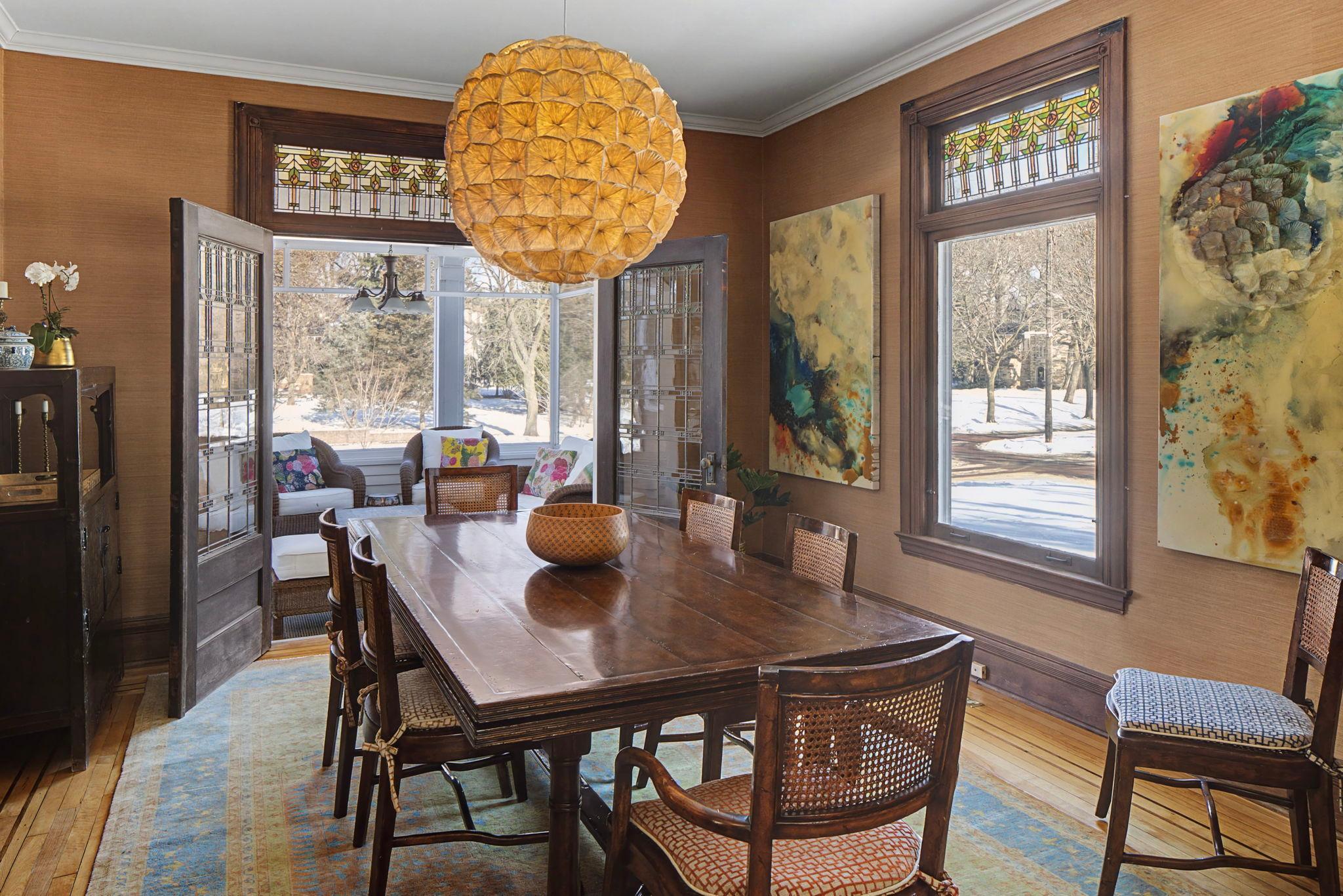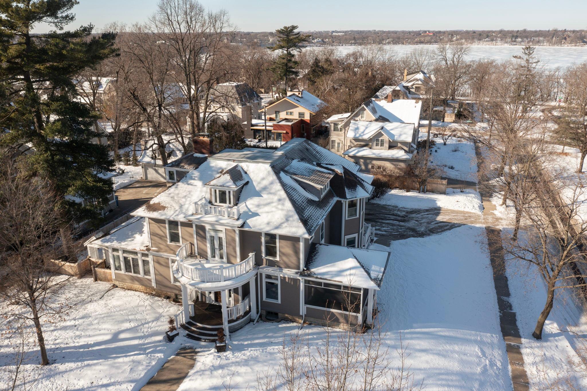 Experience refined historic character and modern living updates in this extraordinary 5 bedroom, 5 bath residence offering 5,940 finished square feet on a rare, fenced triple lot at the prominent corner of Fremont and King's Highway. A stunning 2005 addition creates a bright, open concept kitchen/family room. Walls of south and west facing windows capture daylight and views to the large fenced yard. Cozy up to the gas fireplace, or gather around the kitchen's center island. The rare attached 3 car garage connects to a spacious mudroom and laundry, with a convenient main level half bath. Built in 1893, this classic home showcases exquisite inlaid hardwood floors, stained glass, and exceptional original woodwork in the foyer, living room and dining rooms. A charming screened porch provides a cool respite, and seasonal views of Lake Harriet. Upstairs, four bedrooms include an ensuite primary and a junior suite, complemented by three beautifully updated baths. The impressive third floor renovation (2019) features a flexible family space, office area, fifth bedroom with ¾ bath, built ins, and a coffee bar. The lower level offers a generous, well lit amusement and exercise area with egress windows. A true signature home in a storied neighborhood steps from Lake Harriet.