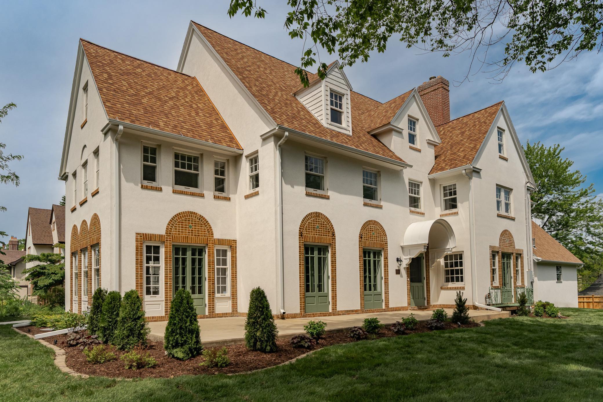 Very rare opportunity to find a property in Historic Pill Hill that has just had the interior & exterior beautifully & vastly remodeled, carefully restored & updated throughout! Very charming Mediterranean Revival Style 3-story home designed by renowned Architect Harold Crawford in Pill Hill, on the National & Rochester Historic Registers. Walk to Downtown, Mayo Clinic Campus & Folwell School, across from park setting. Brand New: large concrete driveway, large 2 car heated garage added to existing 1.5 car garage, wonderful privacy fencing, beautiful landscaping with yard irrigation system, beautiful new retaining walls with lighting, all new interior paint, all wood flooring restored, all bathrooms updated, beautiful kitchen with quartz counters & marble backsplashes, large updated mudroom, second large laundry room added, now has 5th legal bedroom, 2 new gas fireplaces, all new light fixtures inside & outside. French doors, neutral decor, move-in condition, large patio. Original woodwork, beautiful ceilings & 2 metal work Juliet balconies. Main floor features: tall ceilings, large foyer, large living room with built-in book shelves, beautiful ceiling & new gas fireplace, large dining room with beautiful ceiling, large sunroom with beautiful original tile floor, cozy playroom/ home office/reading room, beautiful eat-in kitchen, large updated mudroom & 3-car heated attached garage with epoxy floors & floor drains. 2nd floor features: Large primary bedroom suite with large bedroom, office, large walk-in closet with built-in cabinetry, laundry & full bathroom with tub & shower, 3 additional bedrooms, a bonus room that can be used as 6th bedroom, new full bath, a 3/4 bath. Lower level features: tall ceilings, large family room with fireplace, new 5th bedroom, 3/4 bath, new large second laundry room with new washer, dryer, & laundry sink, large utility room/storage with stair access to outside, large walk-in storage closet. Full large unfinished third floor with tall ceilings.
