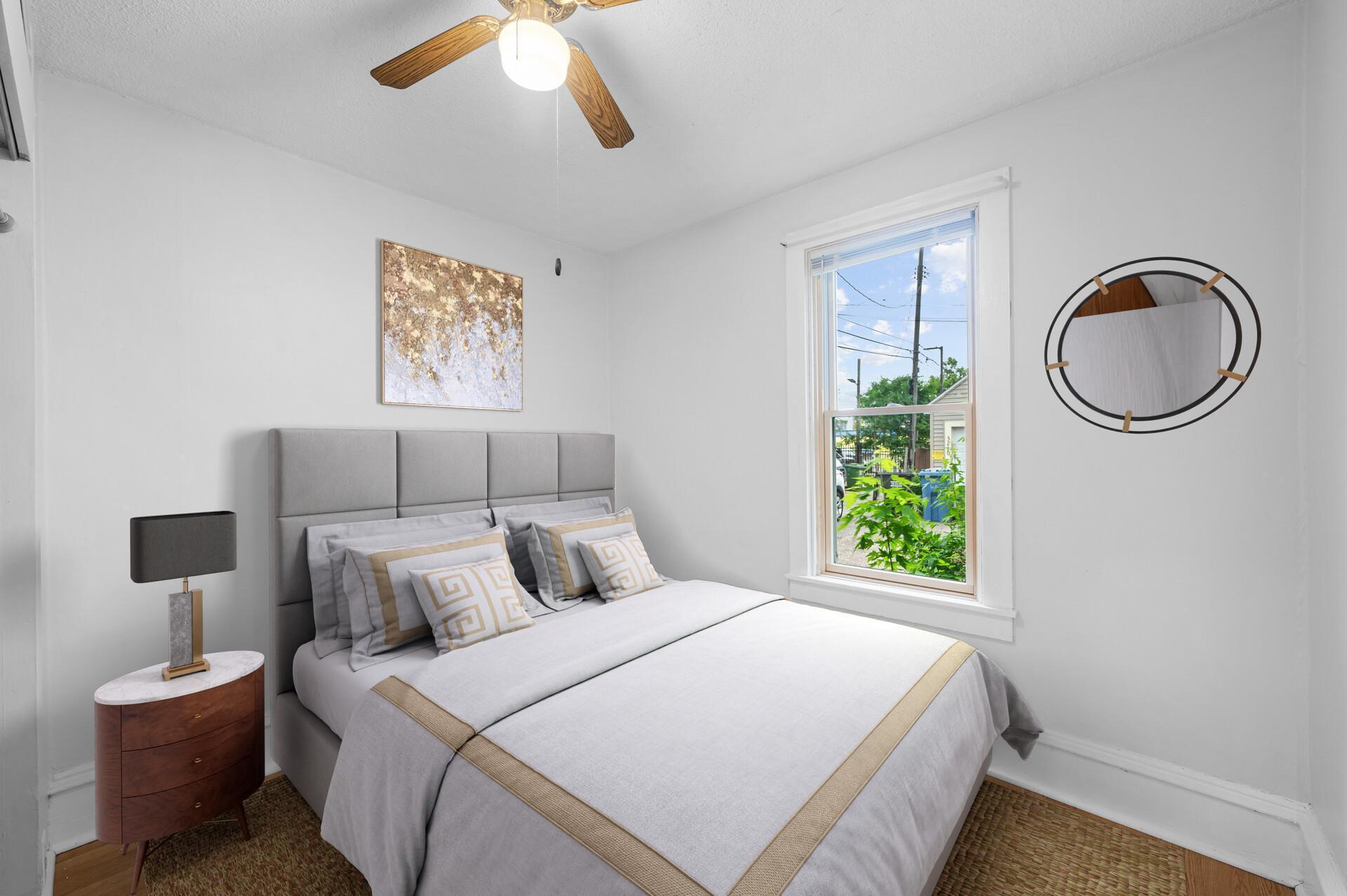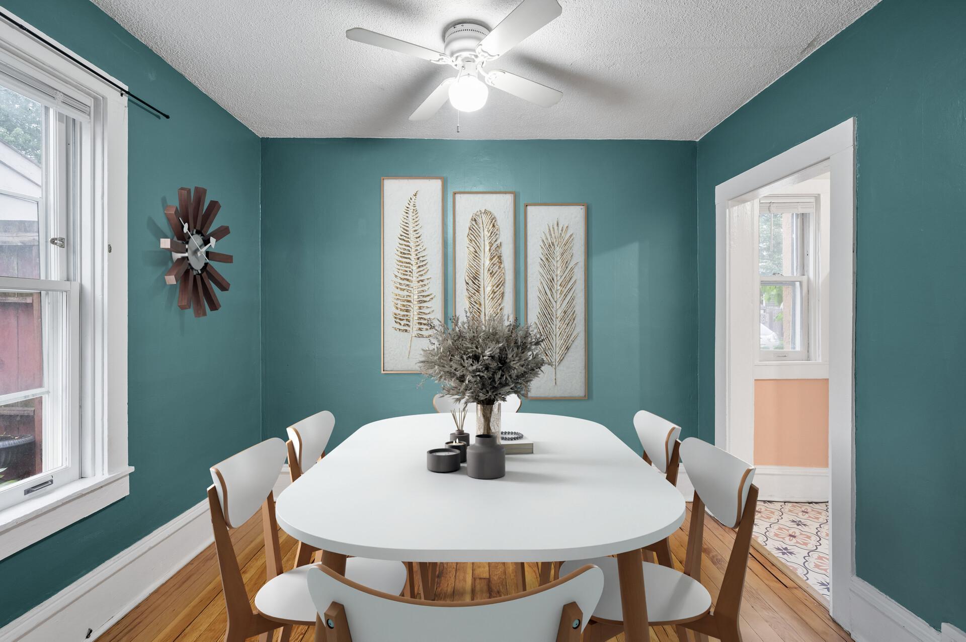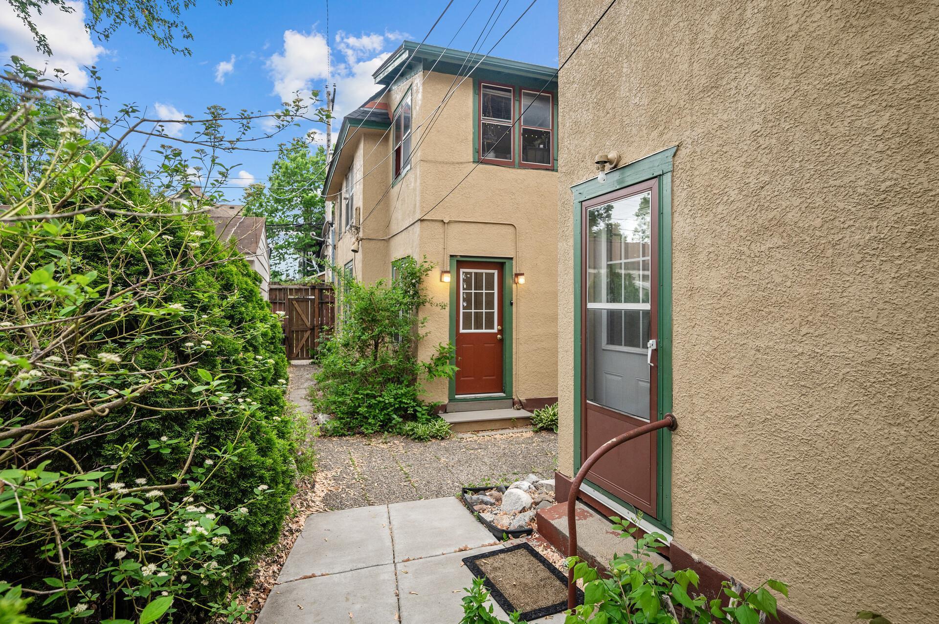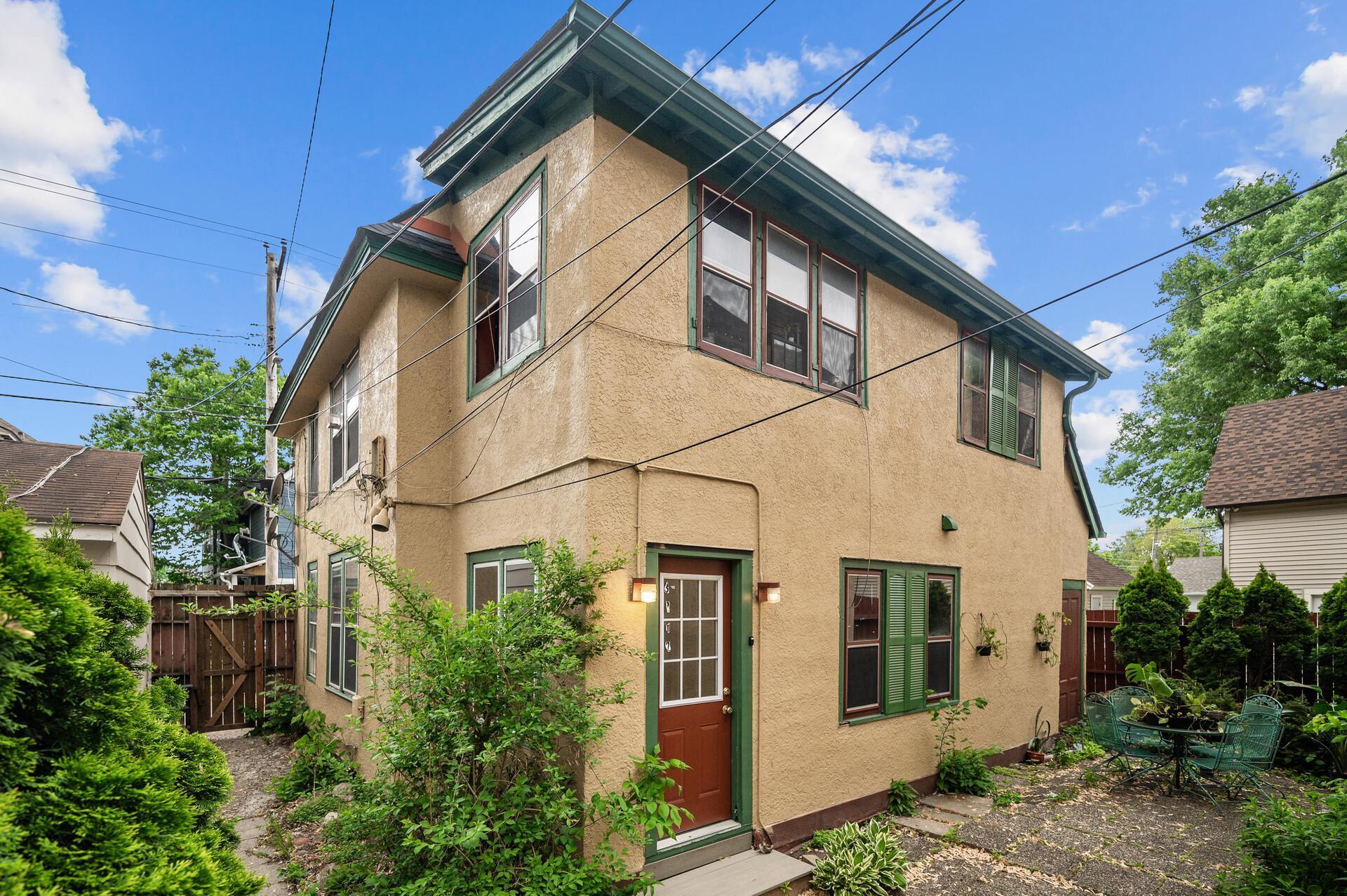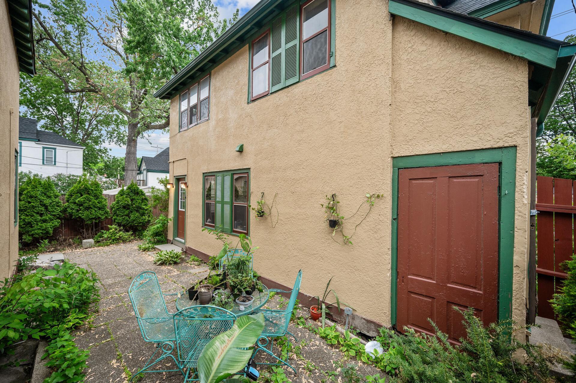 courtyard with patio set and beautiful landscaping. This home from 1889 is awaiting its new tenants -