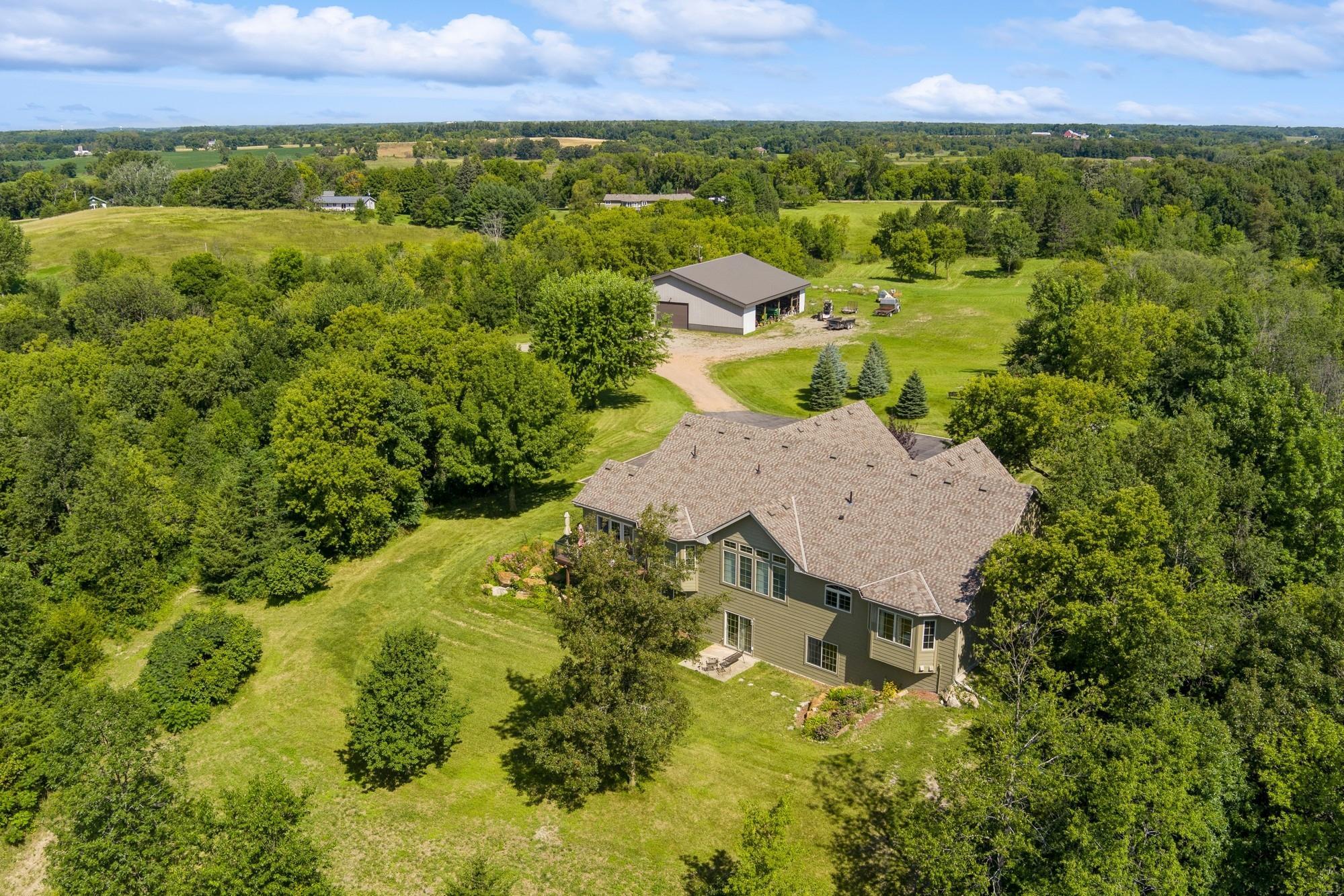 Discover your dream home! This extraordinary property features over 48 acres of private land, perfect for exploring. Step inside to experience soaring vaulted ceilings and incredibly spacious rooms. The main floor boasts cherry wood kitchen cabinets, doors, and trim, while the property is also equipped with a 50x72 shed/shop with in-floor heat, 14' ceilings, 12' overhead doors, 200 amp service, metal liner, and insulation. Don't miss out on this exceptional property - schedule a viewing now! Including insulated concrete form construction to trusses (except south wall) making it very economical to heat!!!