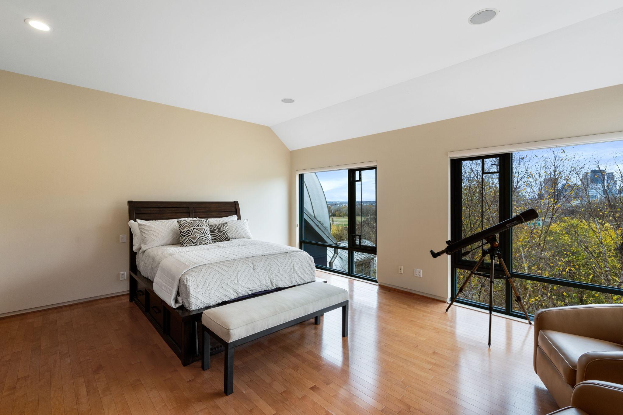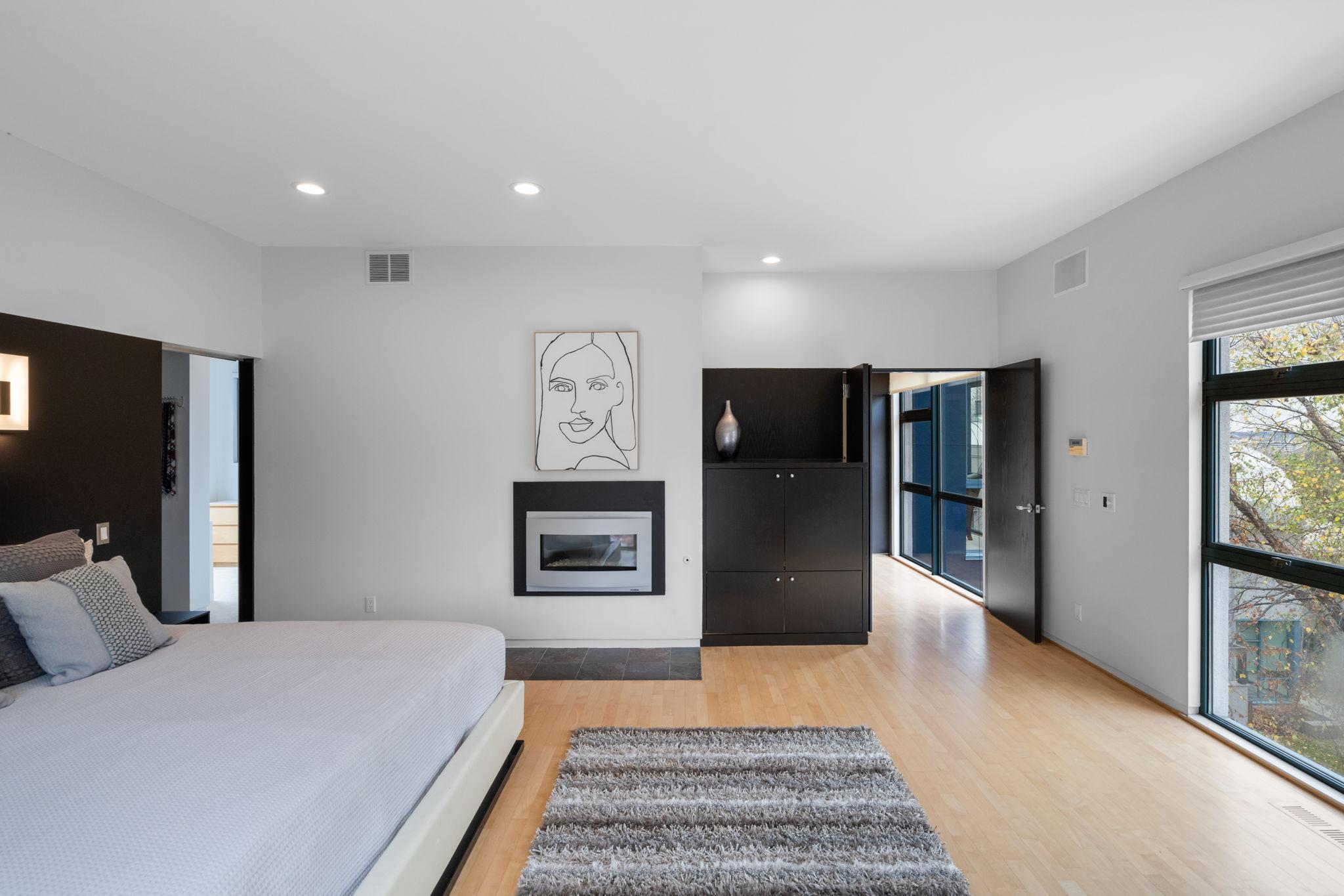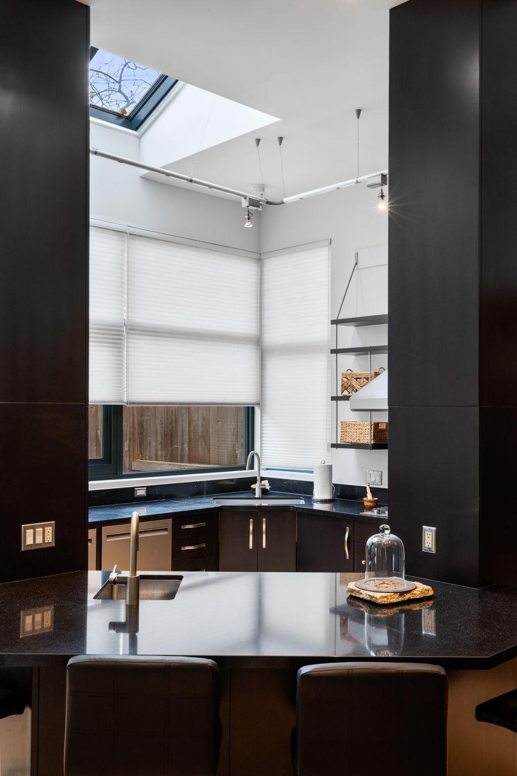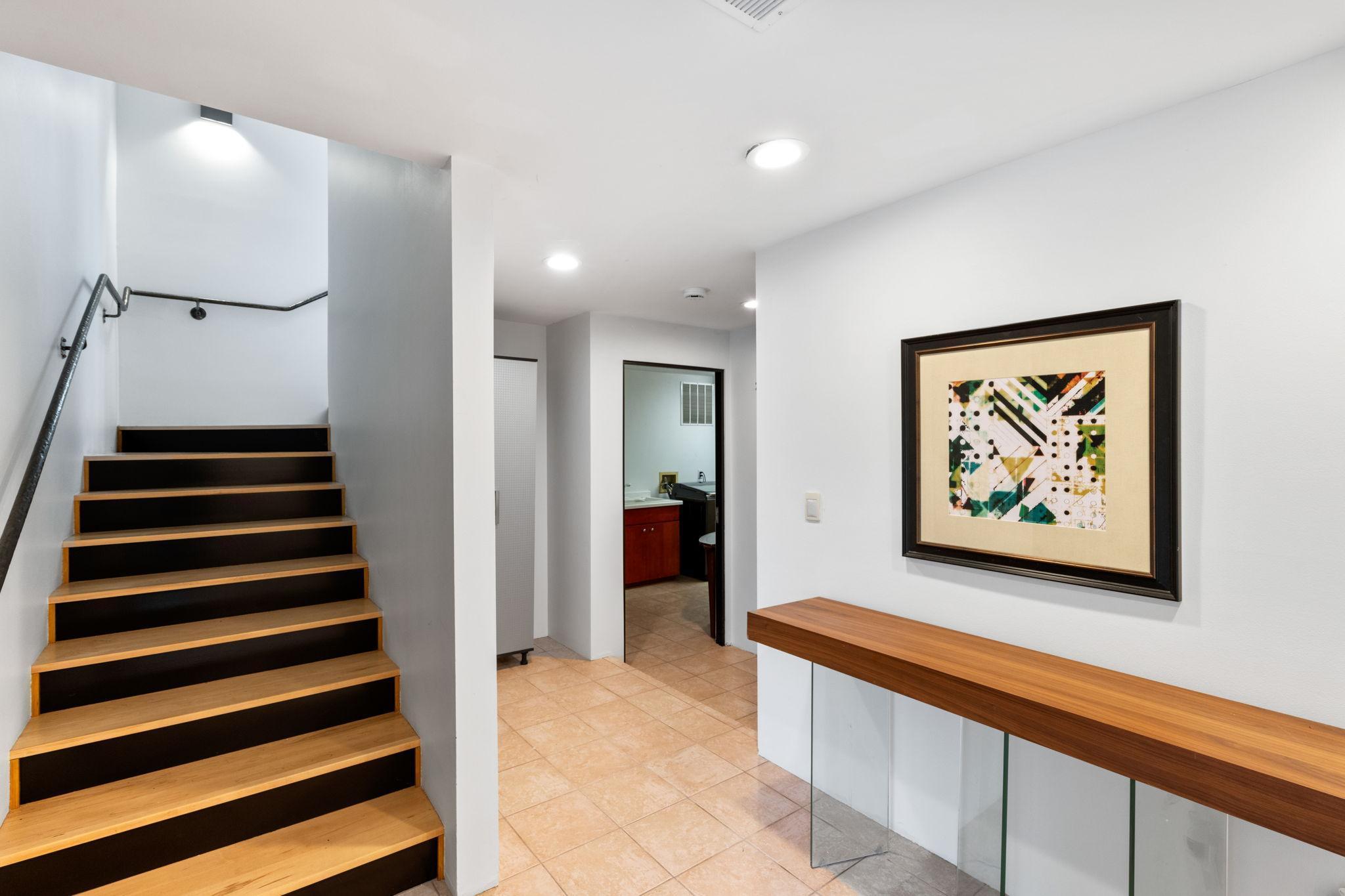 Discover unparalleled modern living in this extraordinary architectural townhome, designed by acclaimed California architect Mark Mack. Spanning four stories, this 4-bedroom, 5 bathroom residence is a showcase of innovative design, featuring soaring barrel-vaulted ceilings, expansive walls of glass, and breathtaking panoramic views of the downtown skyline. Every element of this home exudes sophistication, from the custom maple hardwood floors and sleek ceramic tiles to the radiant in-floor heating that ensures comfort throughout. Floor-to-ceiling windows bathe the home in natural light, while a custom fish tank serves as a striking centerpiece.