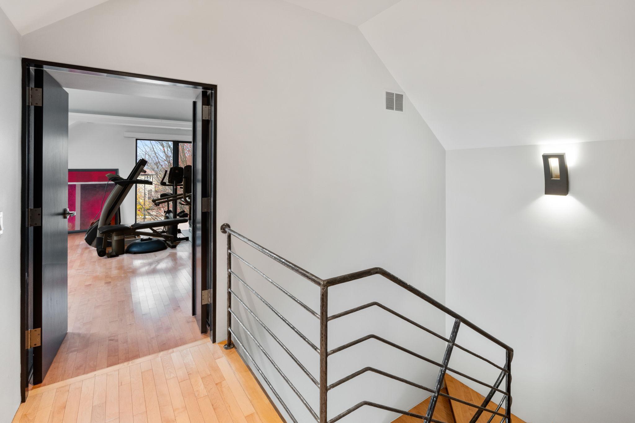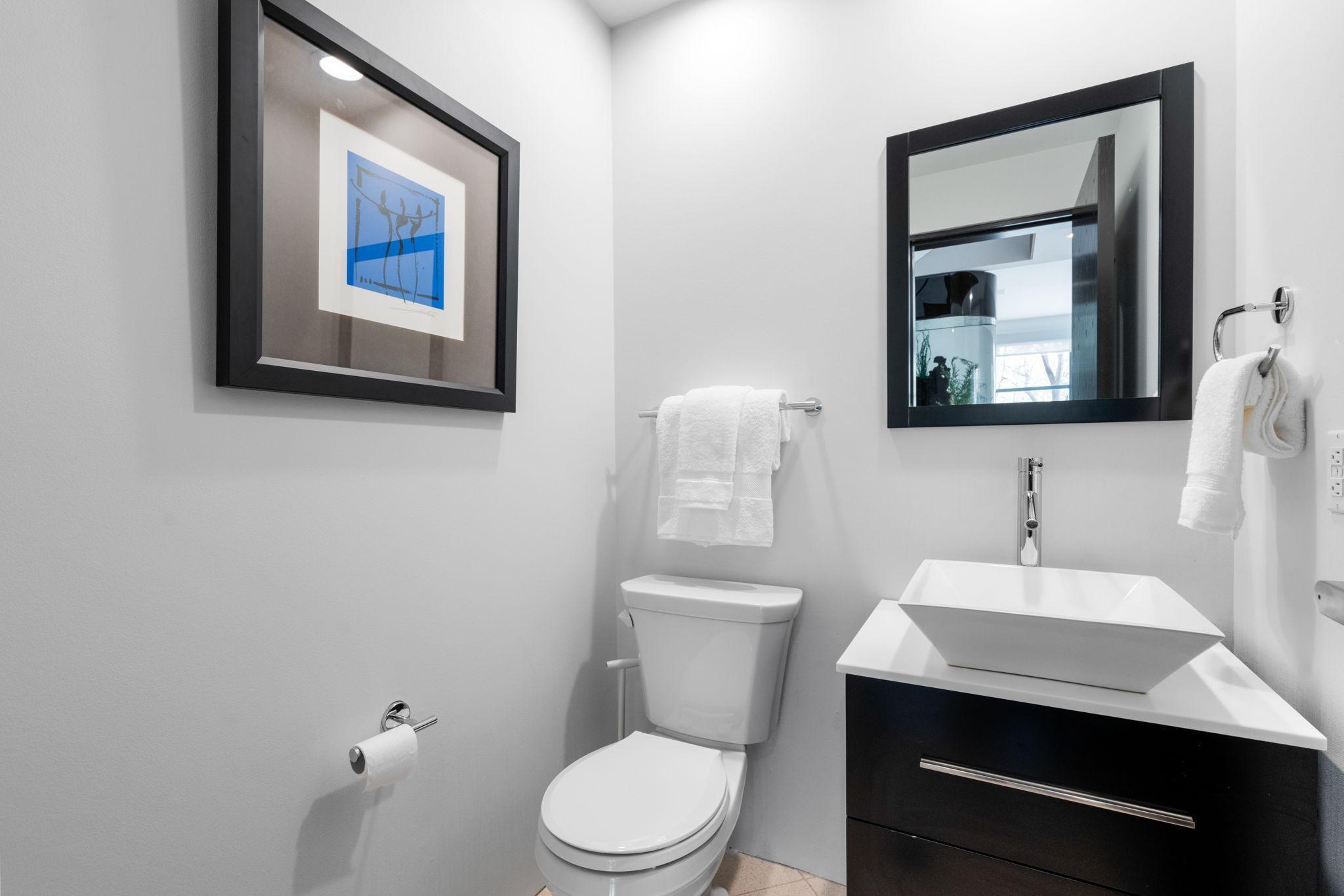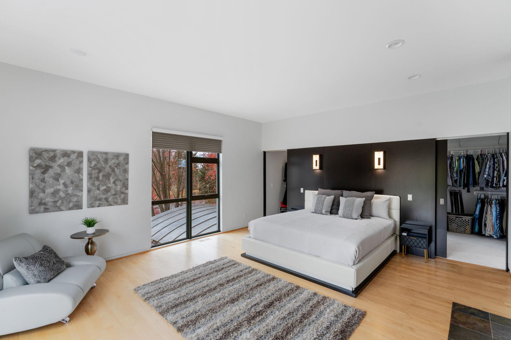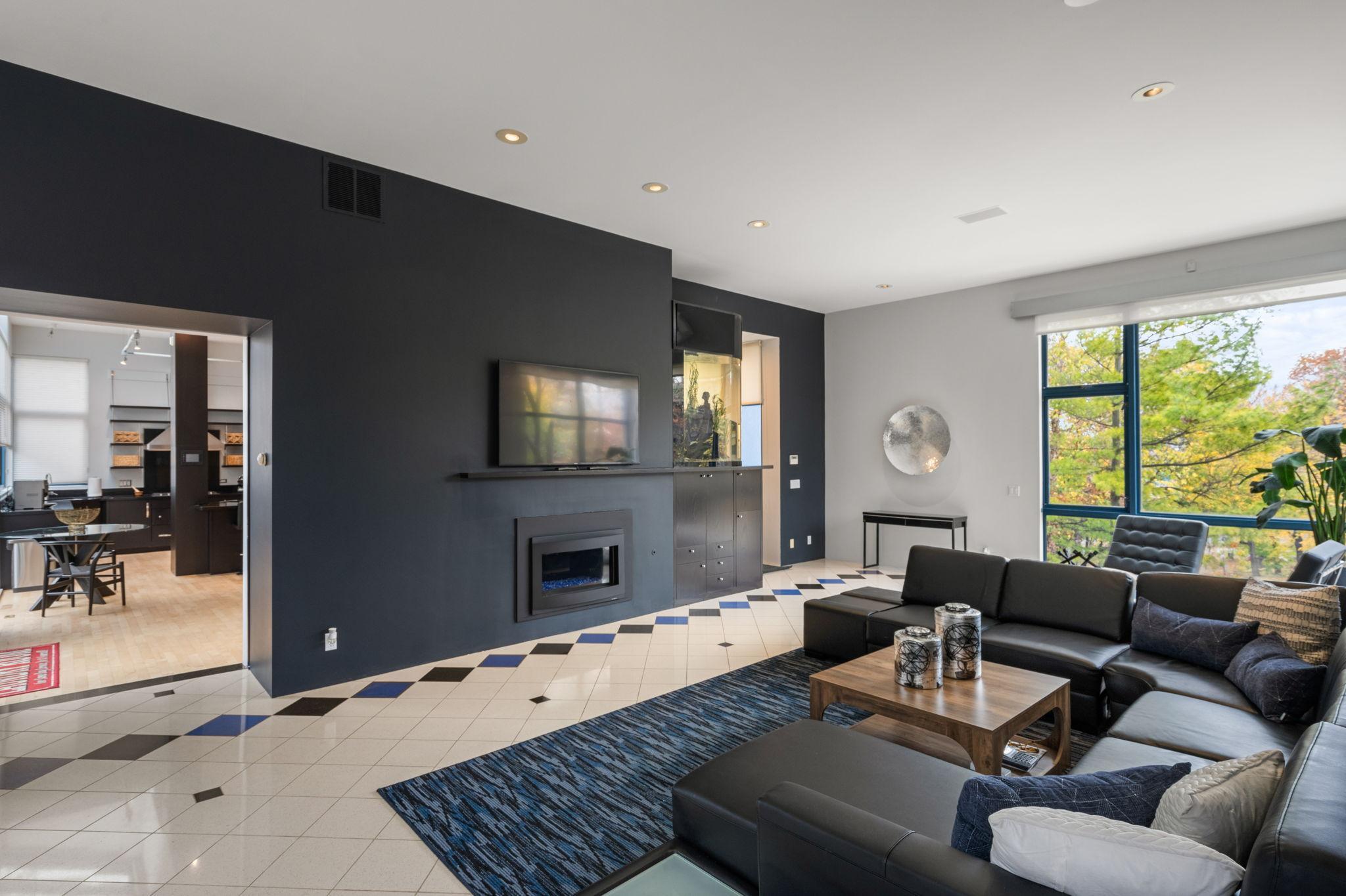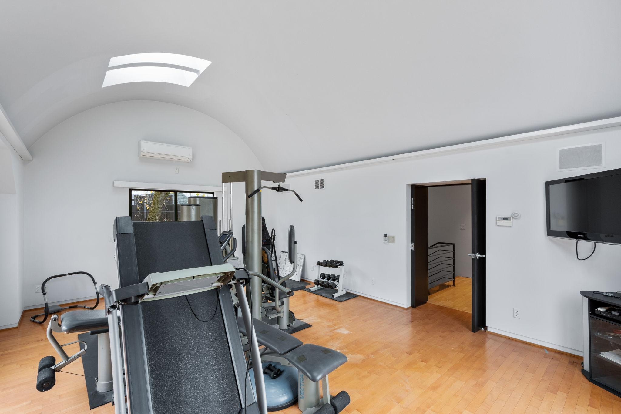 Discover unparalleled modern living in this extraordinary architectural townhome, designed by acclaimed California architect Mark Mack. Spanning four stories, this 4-bedroom, 5 bathroom residence is a showcase of innovative design, featuring soaring barrel-vaulted ceilings, expansive walls of glass, and breathtaking panoramic views of the downtown skyline. Every element of this home exudes sophistication, from the custom maple hardwood floors and sleek ceramic tiles to the radiant in-floor heating that ensures comfort throughout. Floor-to-ceiling windows bathe the home in natural light, while a custom fish tank serves as a striking centerpiece.