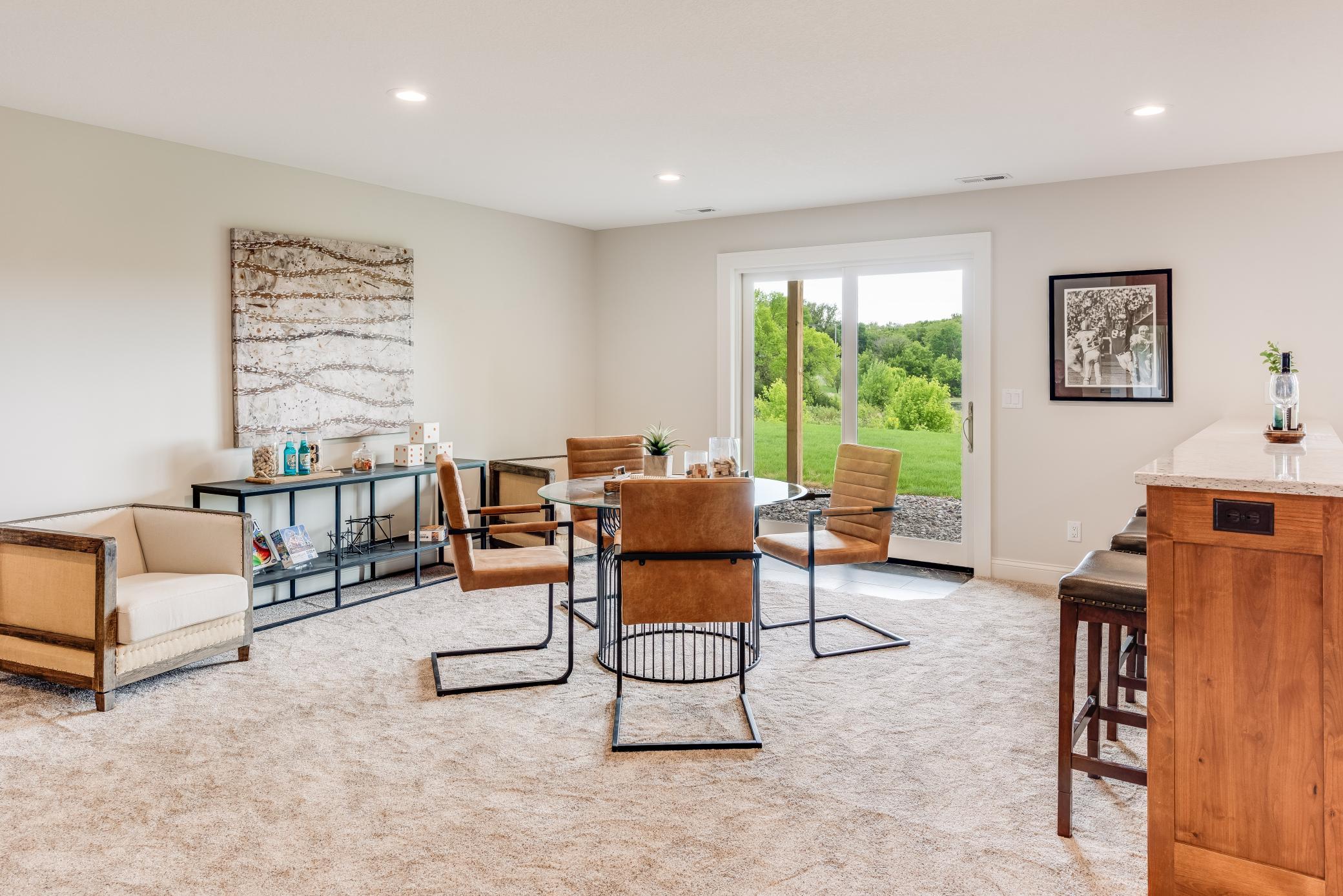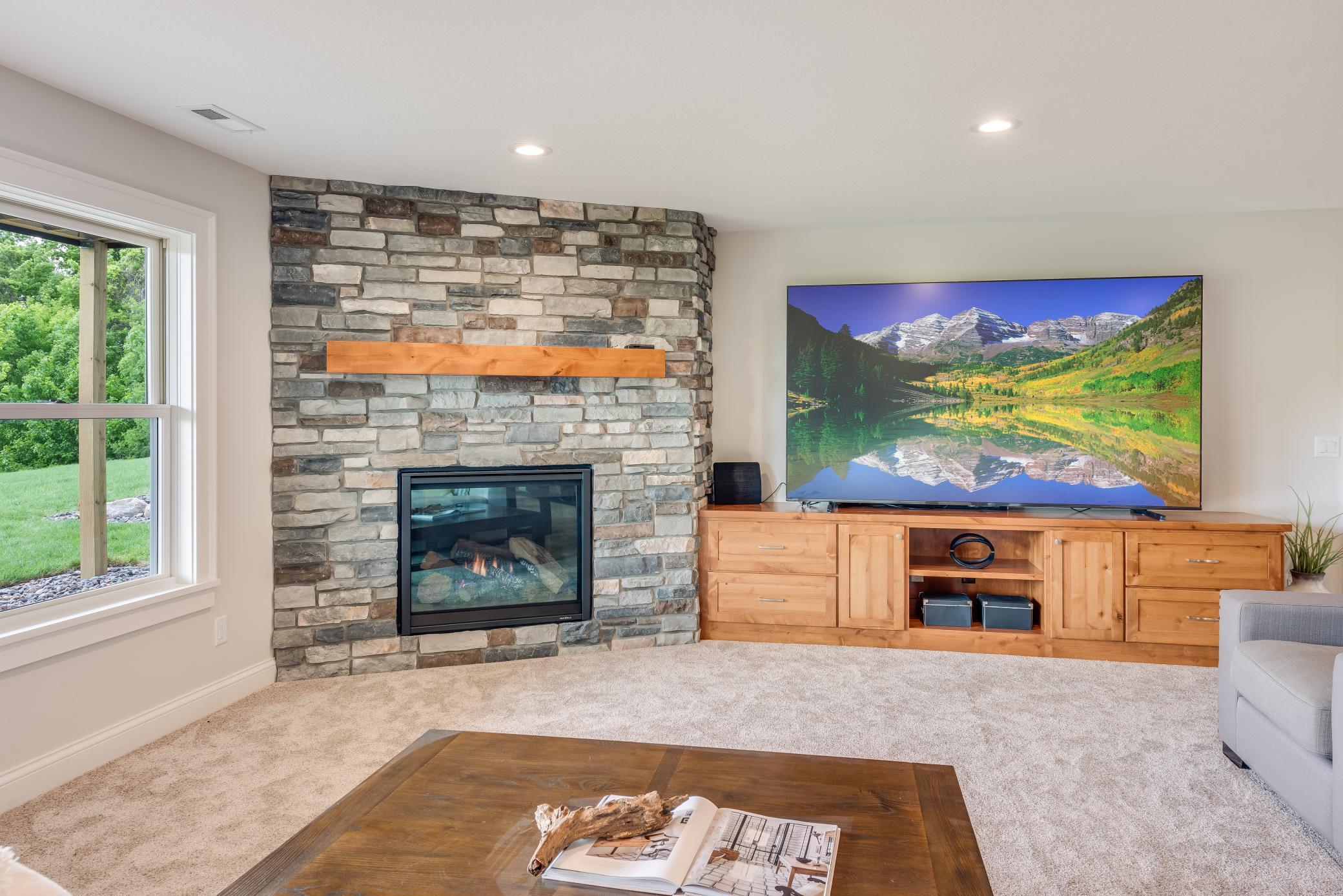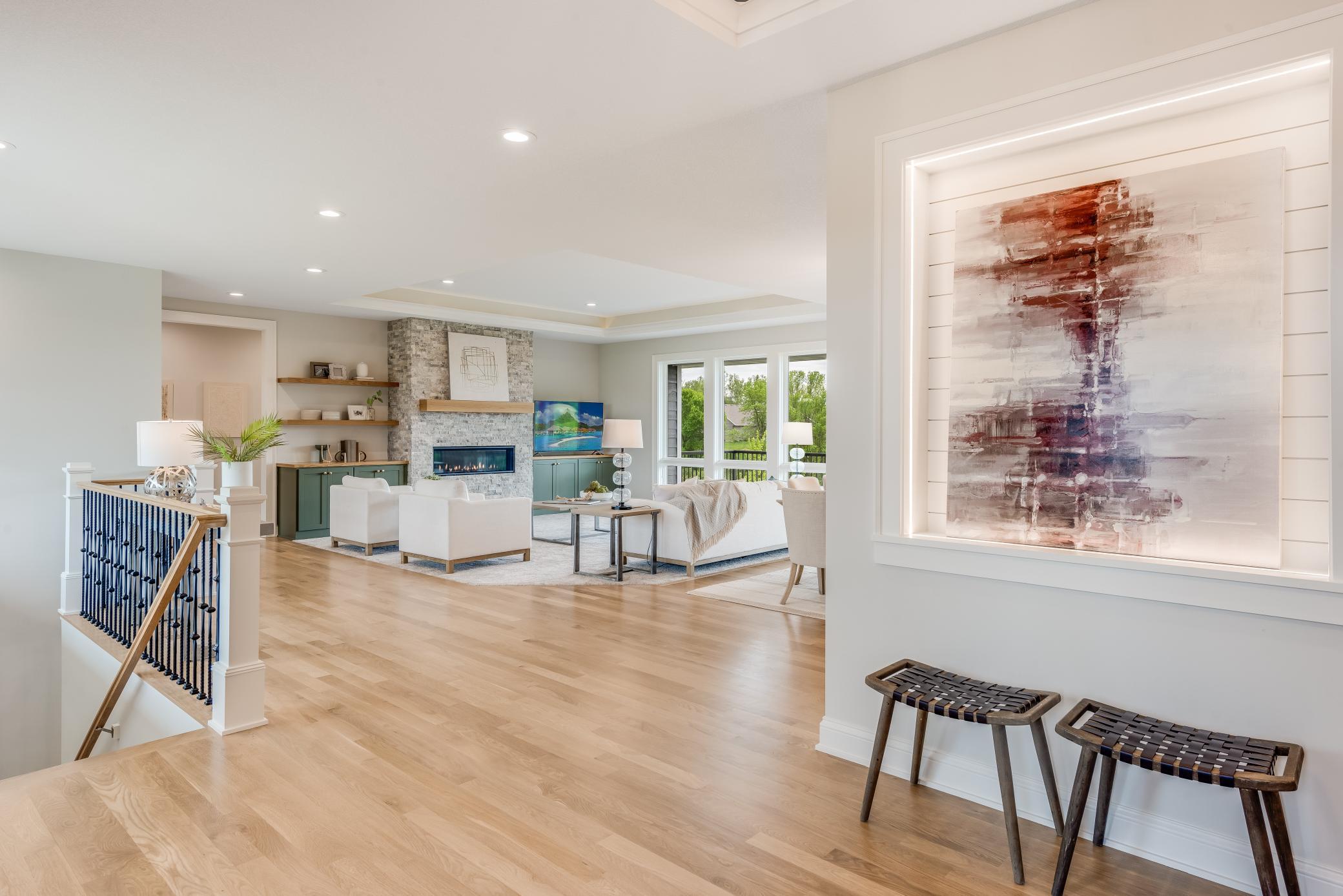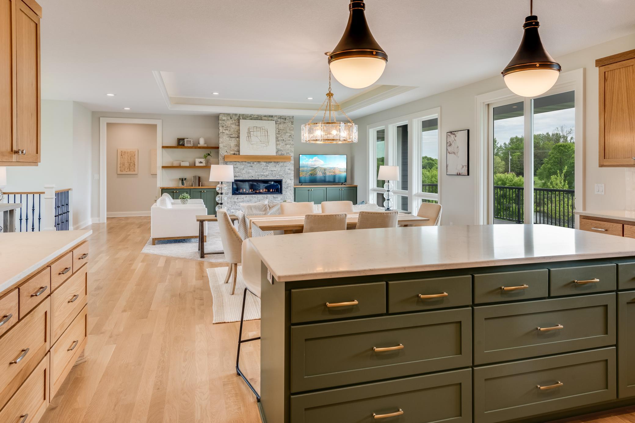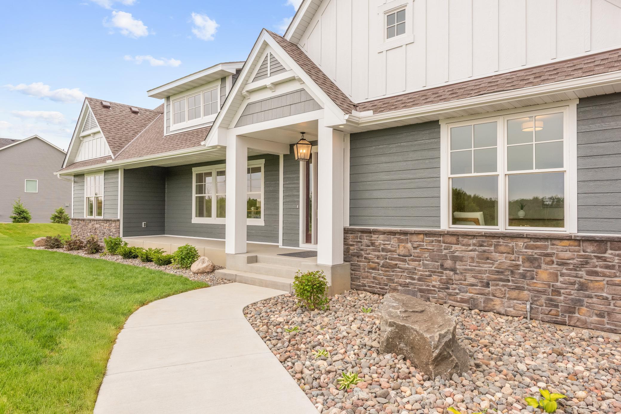 This breathtaking new construction home is perfectly positioned on a sprawling 6-acre lot on the border of Dayton & Rogers! This stunning rambler offers a thoughtfully designed open layout that exudes both comfort and elegance and is loaded with features throughout. From the beautiful white oak flooring to the tiled bathrooms showcasing gorgeous accent walls, this home is meant to impress everyone that sees it. The heart of the home is the dream kitchen, complete with an oversized walk-in pantry, a massive center island and naturally stained white oak cabinets. It is the ideal space for entertaining and daily living alike. The luxurious owner's suite includes stone-tiled flooring, a spa-like ensuite, and private access to a massive 40 x 12 covered porch—perfect for enjoying the serene pond water views year-round. The oversized family room in the lower level is a true showstopper, featuring a wet bar that makes it an entertainer’s paradise. With its blend of modern amenities and timeless style, this home is your opportunity to experience unparalleled craftsmanship in a peaceful, picturesque setting.