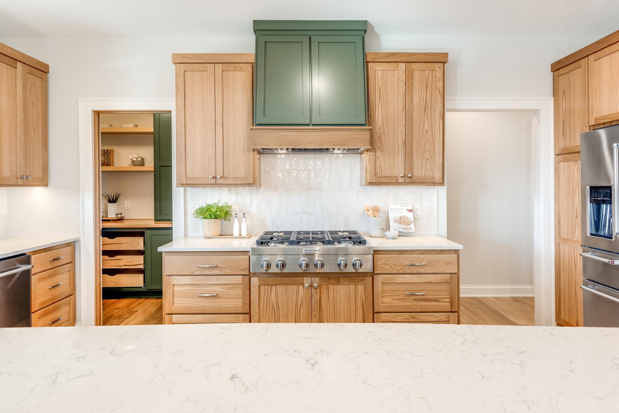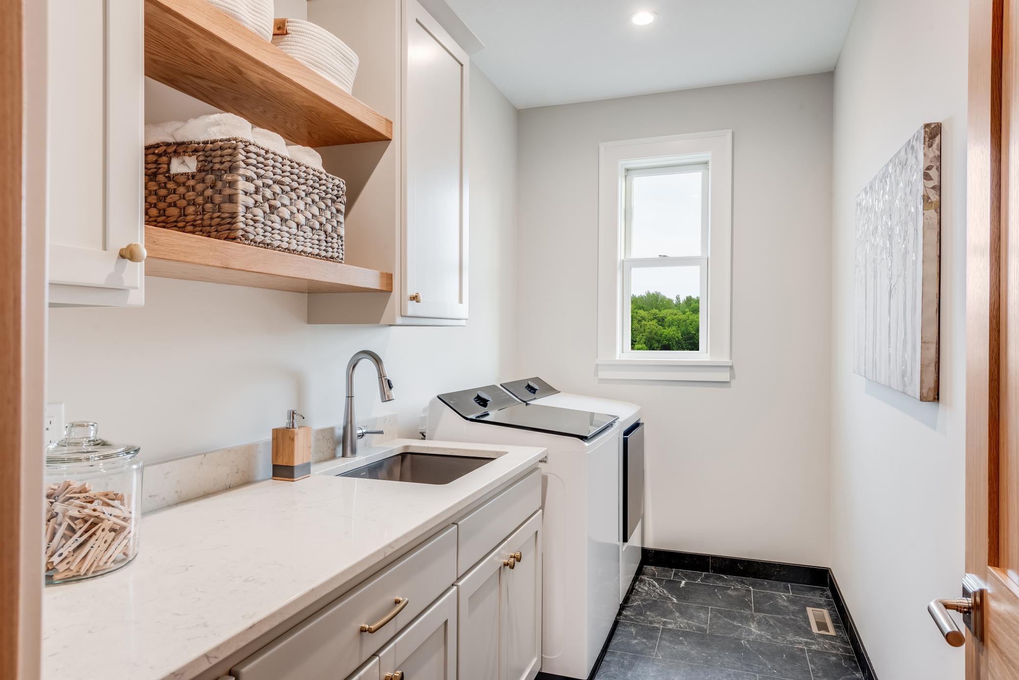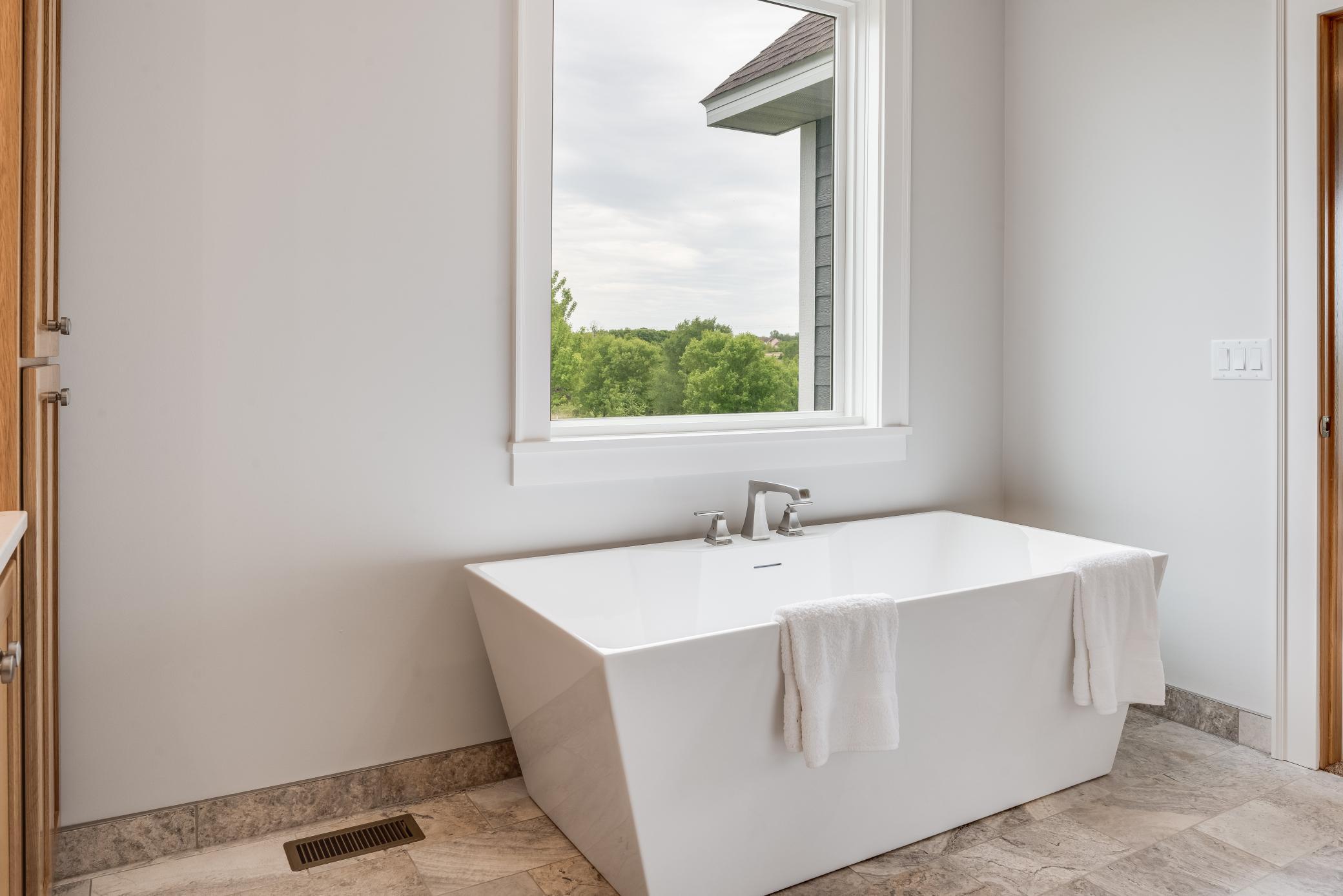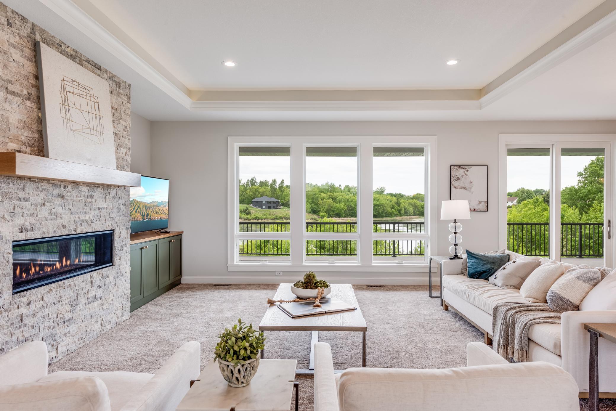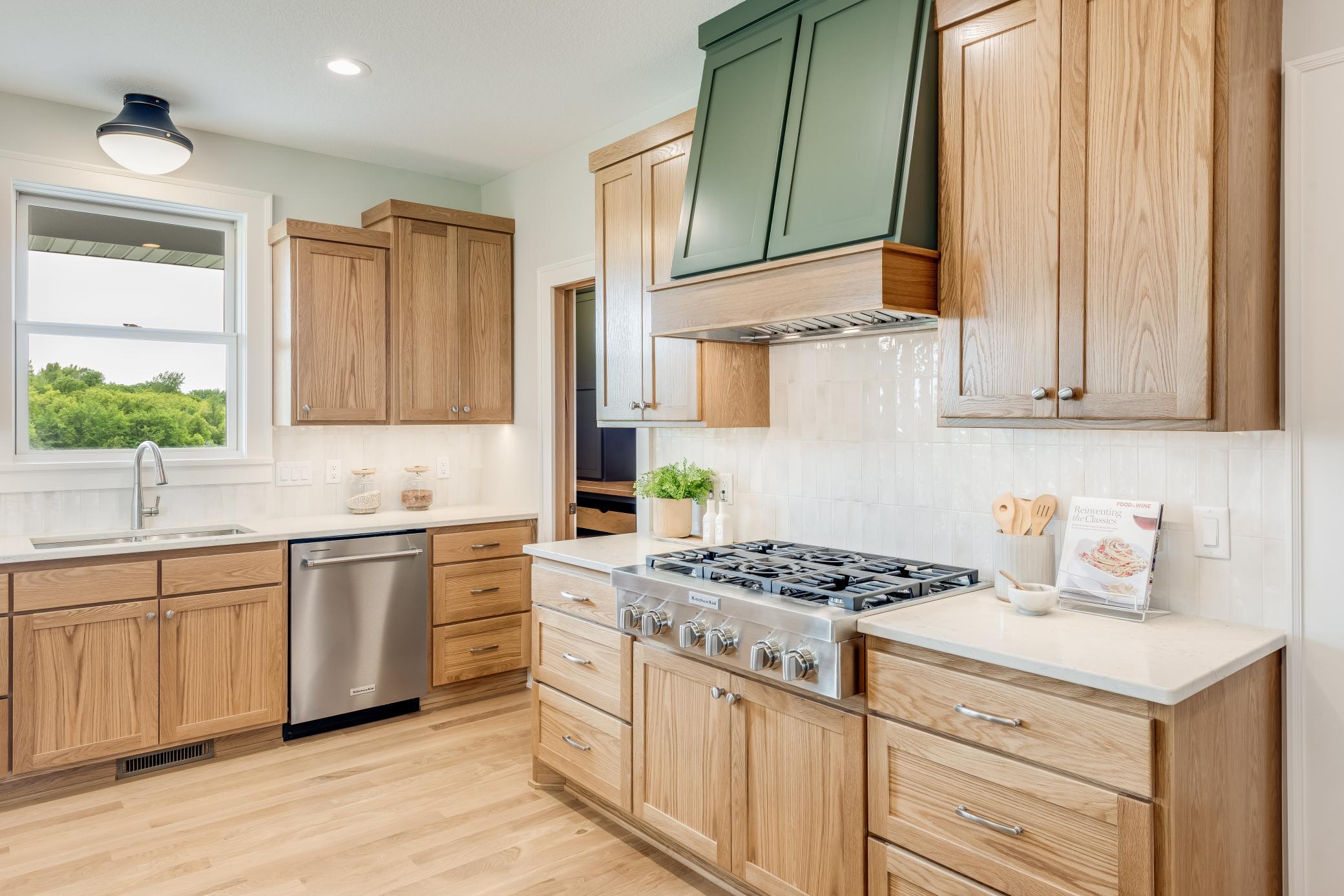 This breathtaking new construction home is perfectly positioned on a sprawling 6-acre lot on the border of Dayton & Rogers! This stunning rambler offers a thoughtfully designed open layout that exudes both comfort and elegance and is loaded with features throughout. From the beautiful white oak flooring to the tiled bathrooms showcasing gorgeous accent walls, this home is meant to impress everyone that sees it. The heart of the home is the dream kitchen, complete with an oversized walk-in pantry, a massive center island and naturally stained white oak cabinets. It is the ideal space for entertaining and daily living alike. The luxurious owner's suite includes stone-tiled flooring, a spa-like ensuite, and private access to a massive 40 x 12 covered porch—perfect for enjoying the serene pond water views year-round. The oversized family room in the lower level is a true showstopper, featuring a wet bar that makes it an entertainer’s paradise. With its blend of modern amenities and timeless style, this home is your opportunity to experience unparalleled craftsmanship in a peaceful, picturesque setting.