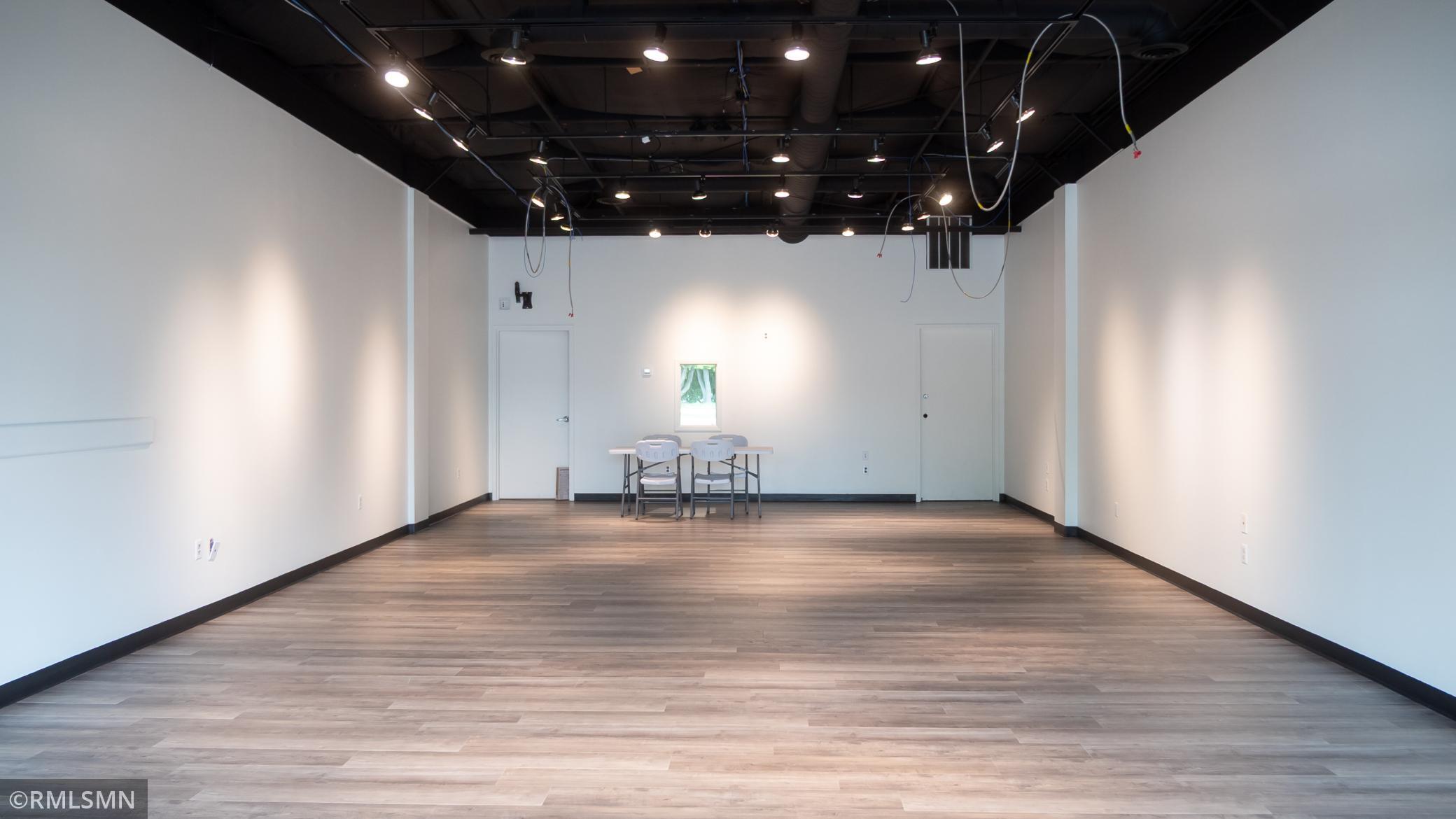 The suite features large storefront windows offering abundant natural light, durable LVP flooring, neutral interior paint, and an open ceiling—ideal for a variety of retail or service uses. Adequate on-site parking ensures easy access for both customers and staff.