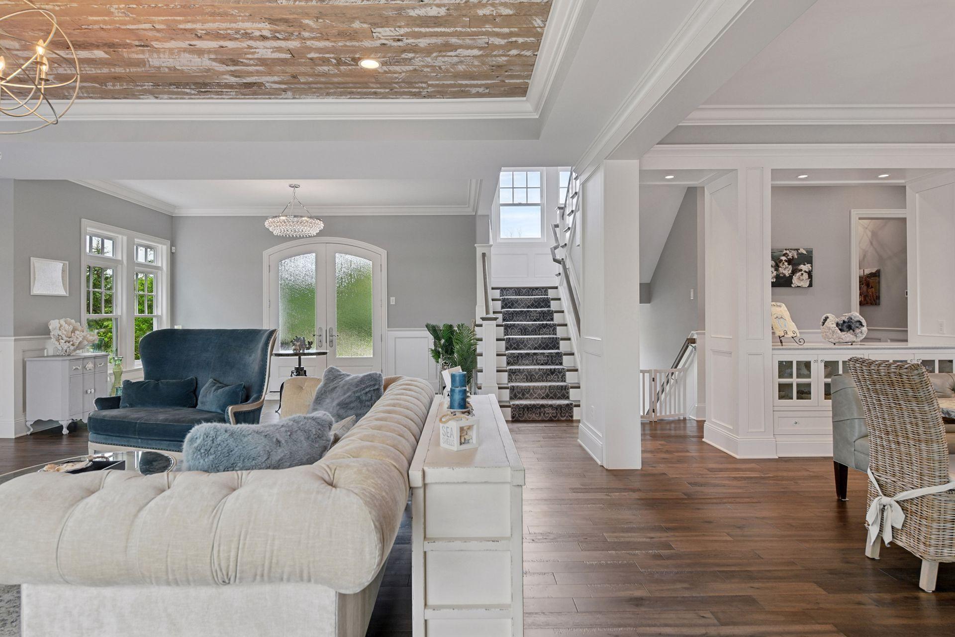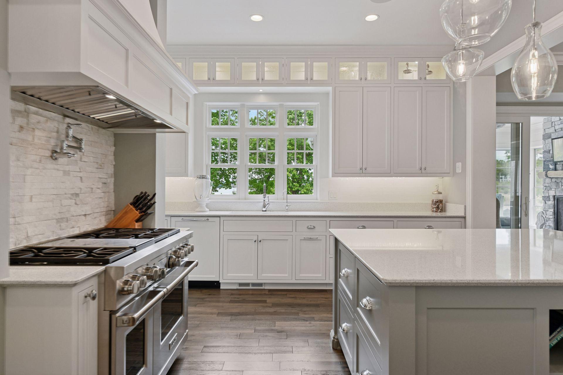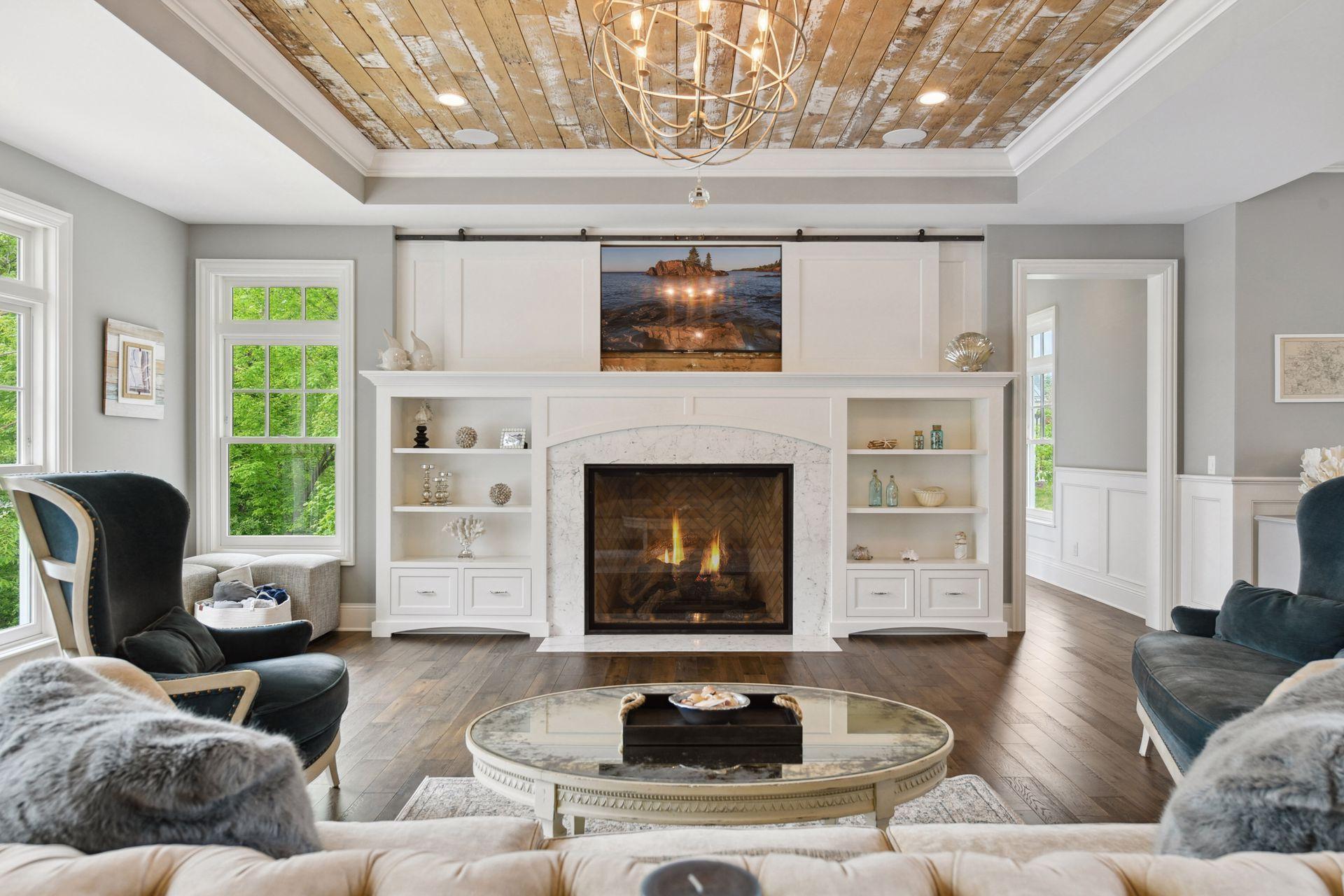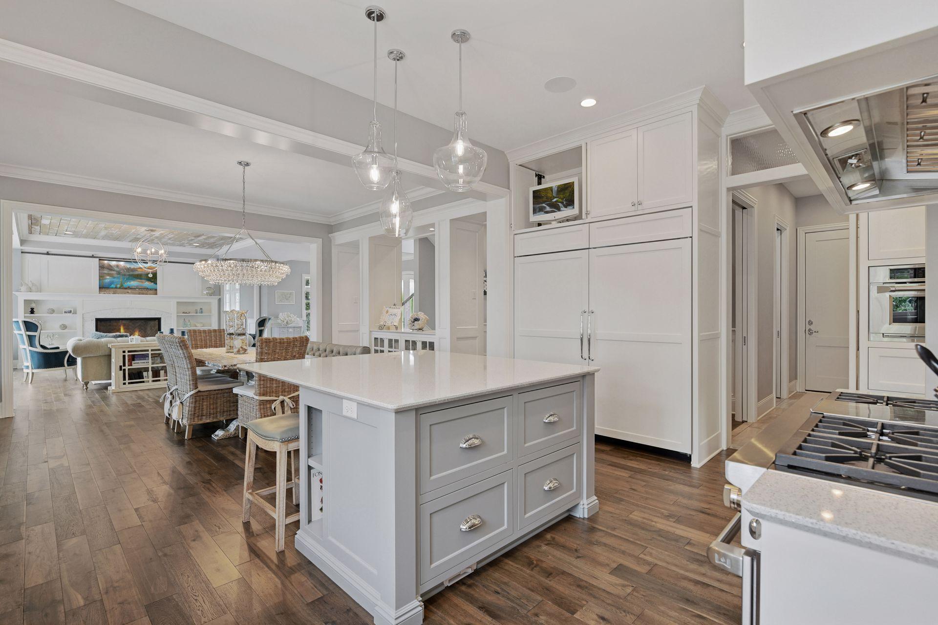Shingle-style Lake Minnetonka home set on over an acre with 156 feet of lakeshore and three private dock slips in The Cove community. Crisp white interior with enameled millwork and custom finishes throughout. Panoramic views from nearly every room. Main level features include open great room design, gourmet kitchen with separate support space, private study and lakeside three+ season porch with fireplace overlooking the resort-style pool. Upper level offers a luxurious primary suite with fireplace and spa-like bath, plus three additional ensuite bedrooms and separate lounge space. Walkout lower level includes a spacious family room with bar, additional bedroom and an oversized indoor multi-sport court. Entertain in style on the lakeside pool and patio with extensive outdoor kitchen, sun-filled gathering areas, beautiful landscaping and panoramic views of the water. Quiet neighborhood setting with amenities including a community clubhouse and pool, playgrounds, tennis/pickleball courts and miles of walking trails. Close to new grocery store and shopping.