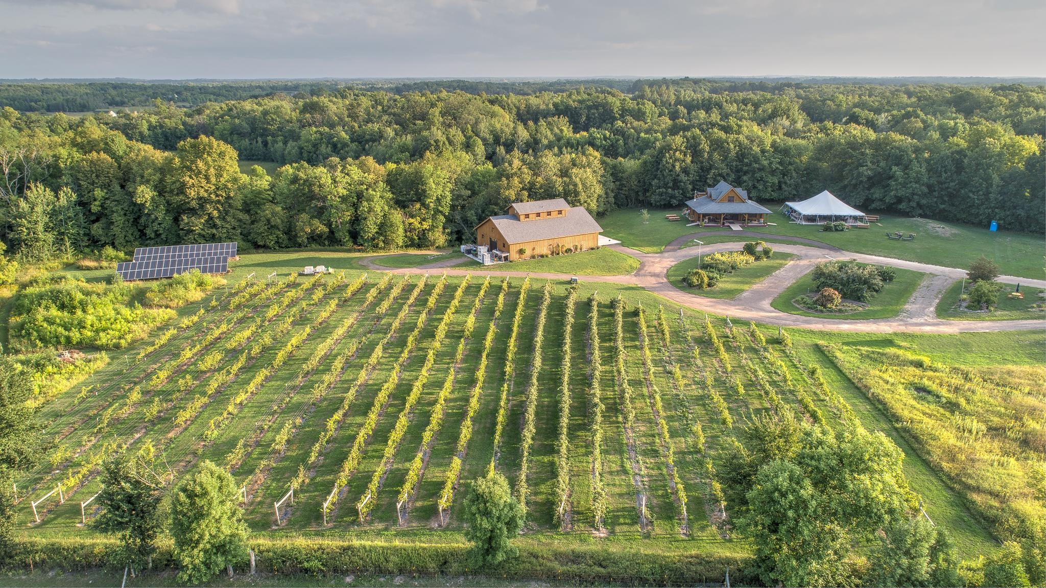 Exceptional Commercial Real Estate Opportunity: Set on 15.48 acres of scenic, gently rolling land, this unique property offers a high-quality commercial facility ideal for entrepreneurs seeking a versatile production space with room to grow. The property features a state-of-the-art production facility, originally designed for wine production, along with a stunning timber frame building that has served as a tasting room and event space. These facilities are well-suited for a variety of future uses, including beverage production, food processing, event hosting, or other commercial ventures. Outdoor amenities include a summer kitchen with a wood-fired pizza oven and a large tent pad area, ideal for open-air events, gatherings, or future expansion. The property also includes eco-conscious features such as solar panel stations and a Level 2 EV charging station—forward-thinking upgrades that offer sustainable infrastructure for future development.
