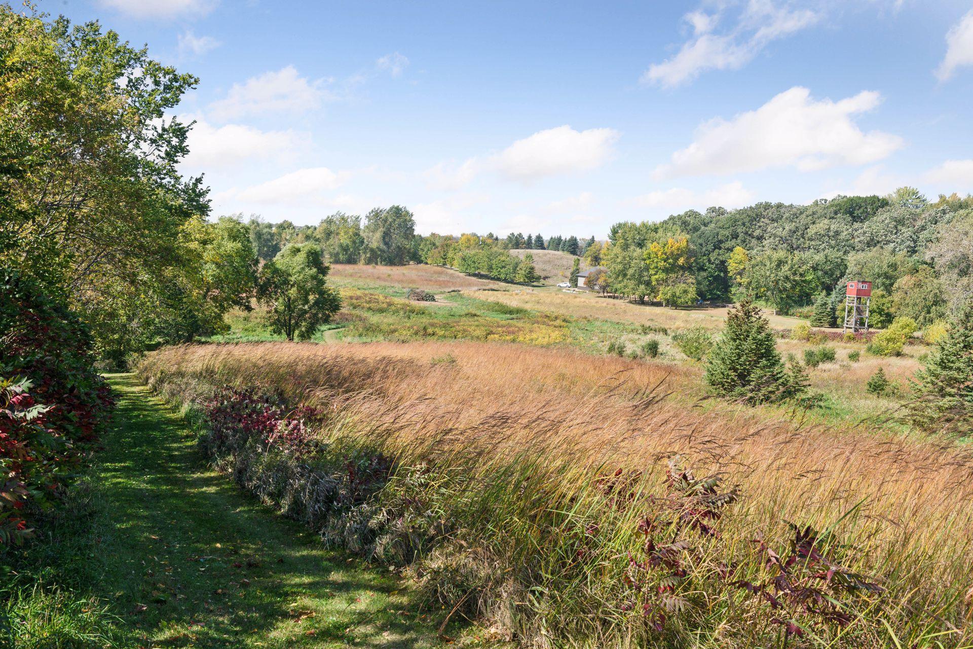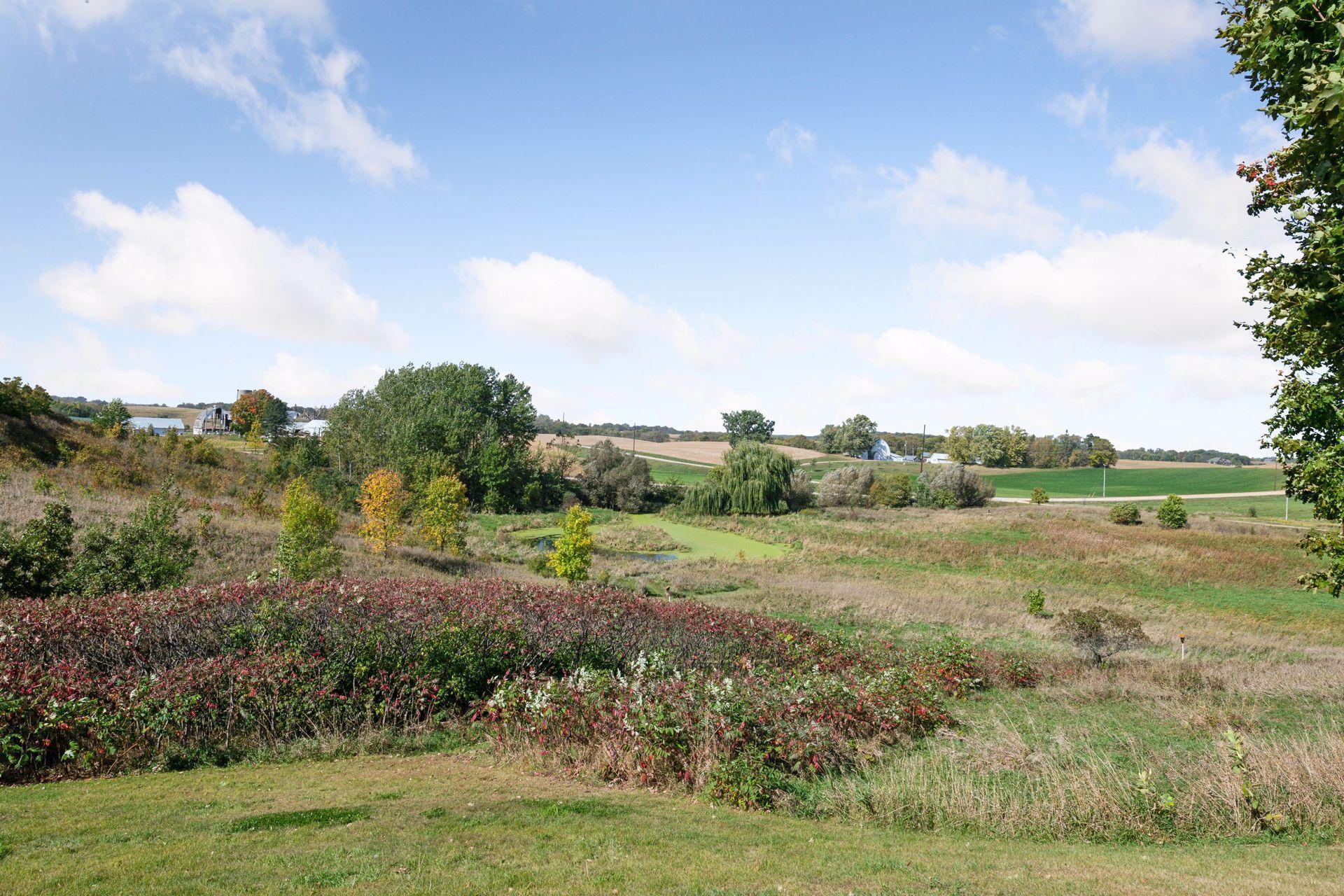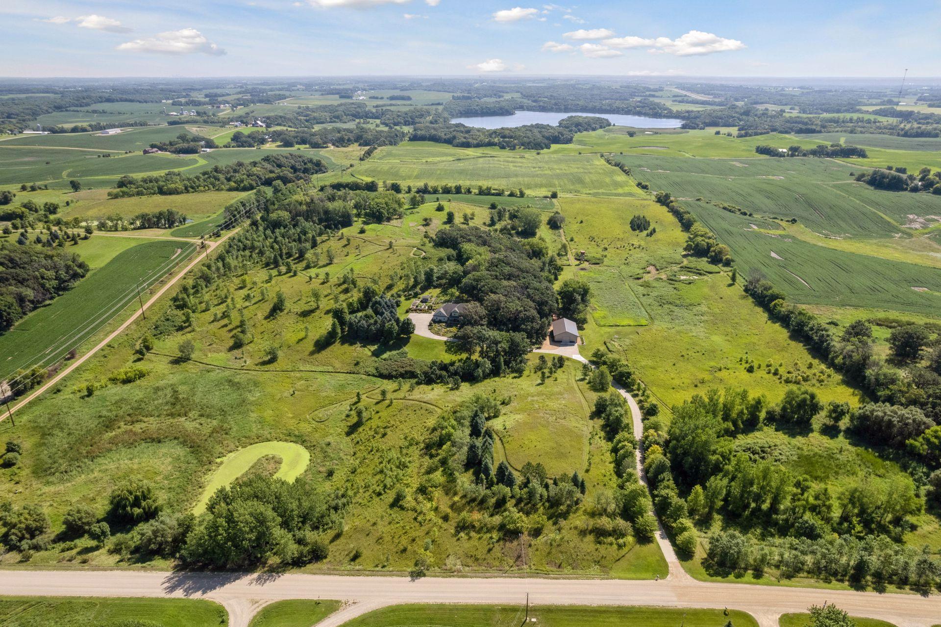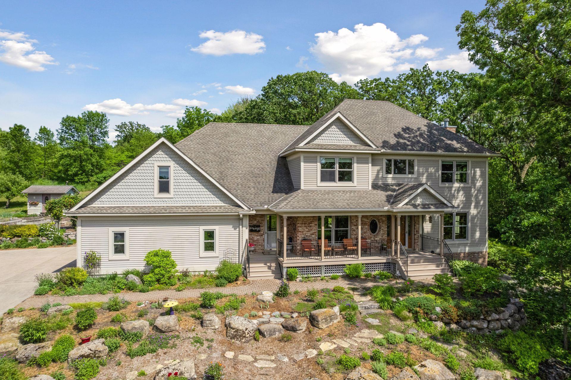 Now available for the first time… 11905 Market Avenue in Cologne. This remarkable 38-acre property impresses with three ponds, rolling hills and truly breathtaking landscape. It showcases masterful gardens with fragrant blooms of perennials and natives with vibrant color all-season long. A potting shed offers charm and caretaking convenience to the grounds next to the vegetable and herb garden. There is a sprawling patch of strawberries and raspberries, as well as apple, pear and plum trees. Enjoy tranquil sounds of the pondless waterfall from several outdoor spaces. Find sanctuary on the three-season porch, admire wildlife from the covered front porch and entertain on the patio or Trex deck. Step inside the home to reveal a gorgeous main level with a comfortable layout and quality craftmanship. Gleaming hardwood floors lead into a sun-filled kitchen with both formal and informal dining space. The adjoining mud room houses convenient laundry, a half bath and abundant storage in the pantry. A handsome gas fireplace is anchored in the family room offering lush views framed by many windows. The front sitting room offers versatile use and more views. Head upstairs to find three bedrooms and two bathrooms on this level, with the inclusion of the primary suite. You will love this private retreat and its spa-like bath with a double vanity, jetted tub and large walk-in closet & shower stall. There are two bonus rooms above the garage that welcome any use but have made for wonderful home offices. The lower level entertains with a cozy wood-burning fireplace, a beautiful custom bar and walkout access in the family room. There is another bedroom, flex room and ¾ bathroom on this level with in-floor heat throughout. Other notable upgrades include maintenance-free steel siding, a heated & insulated 3-stall garage with epoxy flooring, fiber optic internet, invisible fencing and a BRAND-NEW septic system and 40x60 Pole Barn installed in 2024. There are 16 acres currently enrolled in the CRP program with ability to be transferred to the new owner. Hunting enthusiasts will appreciate the custom deer stand and the panoramic views of these prairies. The peaceful life you’ve been searching for has FOUND YOU!