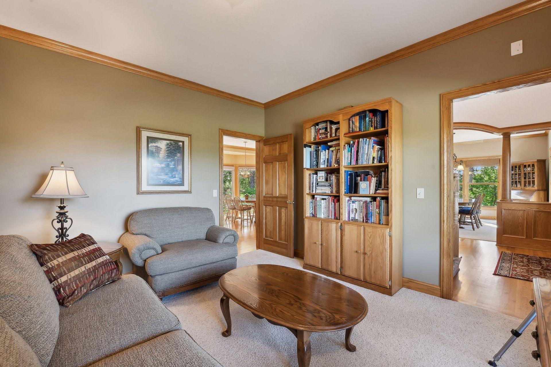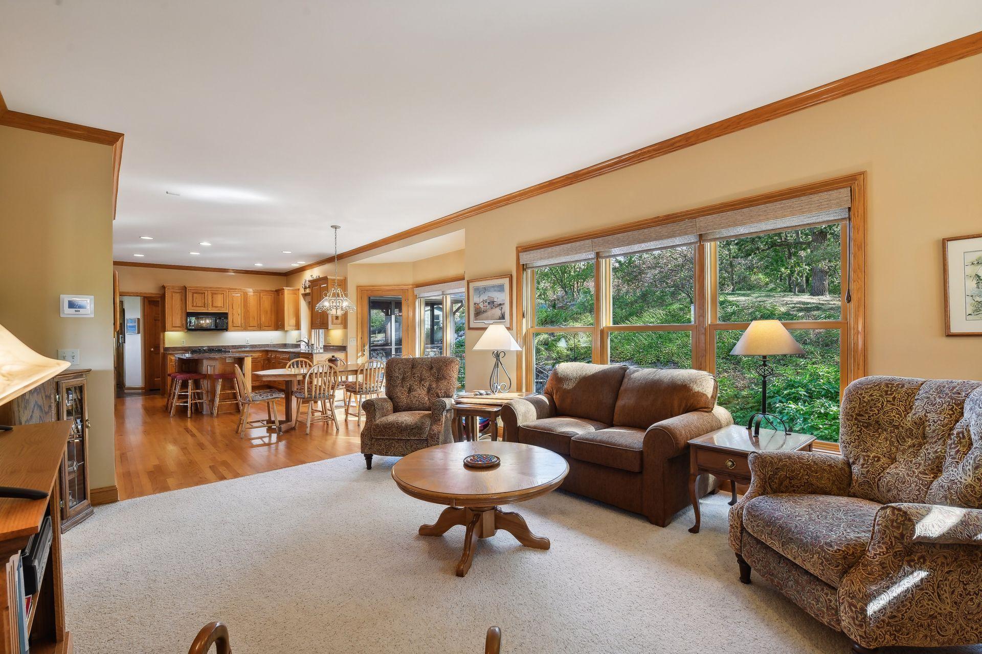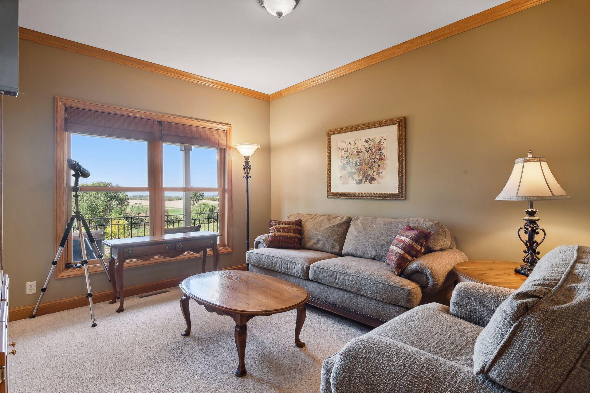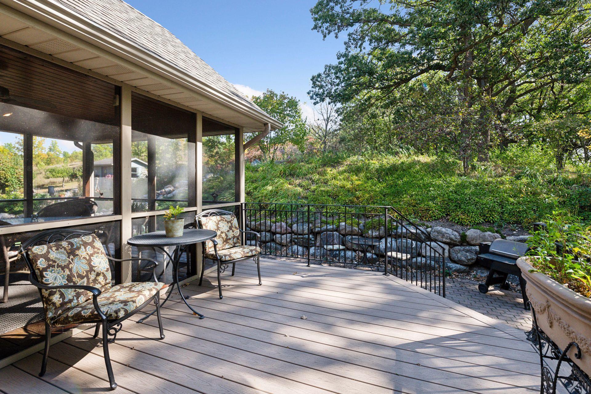 Now available for the first time… 11905 Market Avenue in Cologne. This remarkable 38-acre property impresses with three ponds, rolling hills and truly breathtaking landscape. It showcases masterful gardens with fragrant blooms of perennials and natives with vibrant color all-season long. A potting shed offers charm and caretaking convenience to the grounds next to the vegetable and herb garden. There is a sprawling patch of strawberries and raspberries, as well as apple, pear and plum trees. Enjoy tranquil sounds of the pondless waterfall from several outdoor spaces. Find sanctuary on the three-season porch, admire wildlife from the covered front porch and entertain on the patio or Trex deck. Step inside the home to reveal a gorgeous main level with a comfortable layout and quality craftmanship. Gleaming hardwood floors lead into a sun-filled kitchen with both formal and informal dining space. The adjoining mud room houses convenient laundry, a half bath and abundant storage in the pantry. A handsome gas fireplace is anchored in the family room offering lush views framed by many windows. The front sitting room offers versatile use and more views. Head upstairs to find three bedrooms and two bathrooms on this level, with the inclusion of the primary suite. You will love this private retreat and its spa-like bath with a double vanity, jetted tub and large walk-in closet & shower stall. There are two bonus rooms above the garage that welcome any use but have made for wonderful home offices. The lower level entertains with a cozy wood-burning fireplace, a beautiful custom bar and walkout access in the family room. There is another bedroom, flex room and ¾ bathroom on this level with in-floor heat throughout. Other notable upgrades include maintenance-free steel siding, a heated & insulated 3-stall garage with epoxy flooring, fiber optic internet, invisible fencing and a BRAND-NEW septic system and 40x60 Pole Barn installed in 2024. There are 16 acres currently enrolled in the CRP program with ability to be transferred to the new owner. Hunting enthusiasts will appreciate the custom deer stand and the panoramic views of these prairies. The peaceful life you’ve been searching for has FOUND YOU!