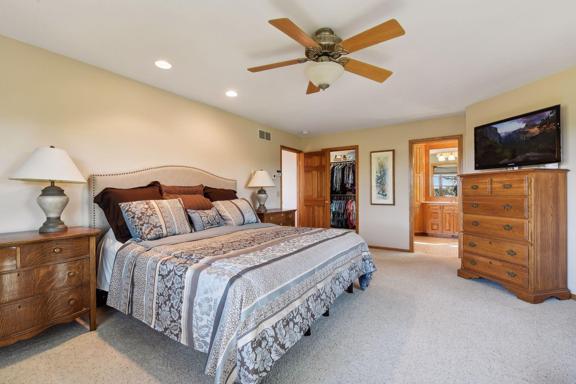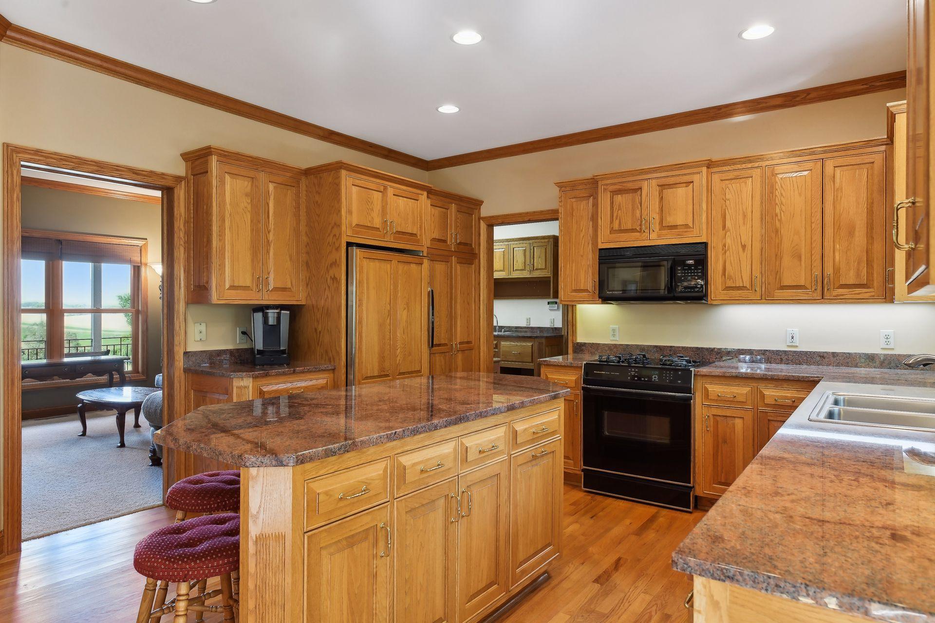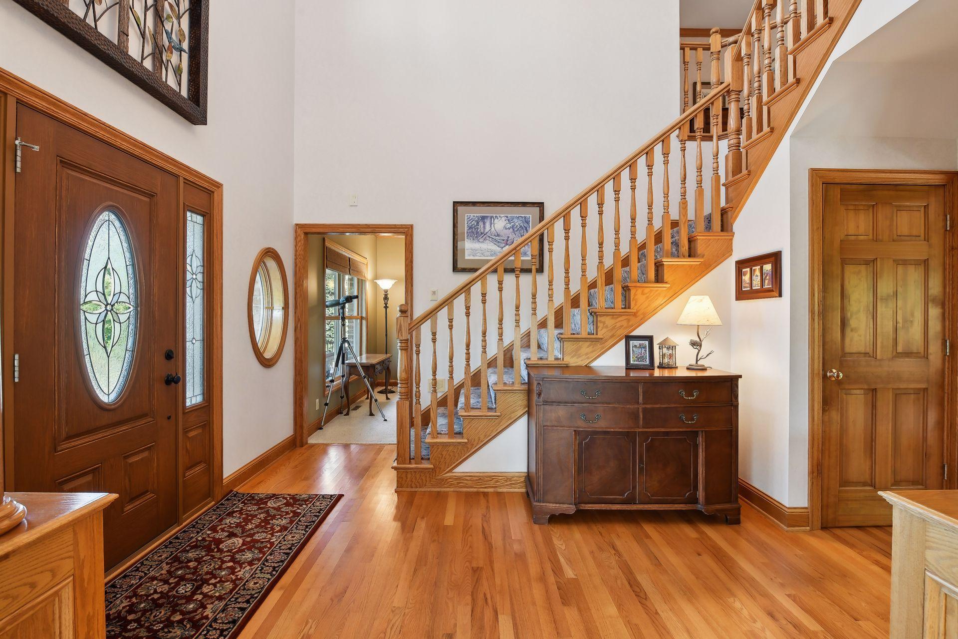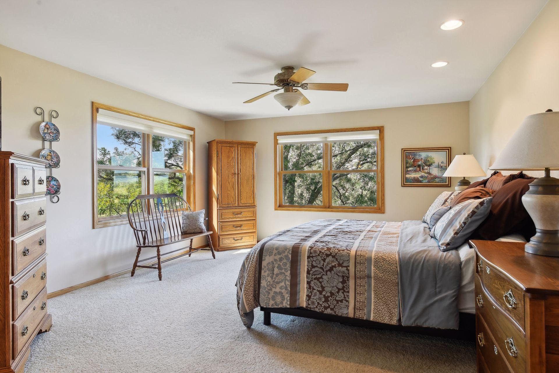 Now available for the first time… 11905 Market Avenue in Cologne. This remarkable 38-acre property impresses with three ponds, rolling hills and truly breathtaking landscape. It showcases masterful gardens with fragrant blooms of perennials and natives with vibrant color all-season long. A potting shed offers charm and caretaking convenience to the grounds next to the vegetable and herb garden. There is a sprawling patch of strawberries and raspberries, as well as apple, pear and plum trees. Enjoy tranquil sounds of the pondless waterfall from several outdoor spaces. Find sanctuary on the three-season porch, admire wildlife from the covered front porch and entertain on the patio or Trex deck. Step inside the home to reveal a gorgeous main level with a comfortable layout and quality craftmanship. Gleaming hardwood floors lead into a sun-filled kitchen with both formal and informal dining space. The adjoining mud room houses convenient laundry, a half bath and abundant storage in the pantry. A handsome gas fireplace is anchored in the family room offering lush views framed by many windows. The front sitting room offers versatile use and more views. Head upstairs to find three bedrooms and two bathrooms on this level, with the inclusion of the primary suite. You will love this private retreat and its spa-like bath with a double vanity, jetted tub and large walk-in closet & shower stall. There are two bonus rooms above the garage that welcome any use but have made for wonderful home offices. The lower level entertains with a cozy wood-burning fireplace, a beautiful custom bar and walkout access in the family room. There is another bedroom, flex room and ¾ bathroom on this level with in-floor heat throughout. Other notable upgrades include maintenance-free steel siding, a heated & insulated 3-stall garage with epoxy flooring, fiber optic internet, invisible fencing and a BRAND-NEW septic system and 40x60 Pole Barn installed in 2024. There are 16 acres currently enrolled in the CRP program with ability to be transferred to the new owner. Hunting enthusiasts will appreciate the custom deer stand and the panoramic views of these prairies. The peaceful life you’ve been searching for has FOUND YOU!