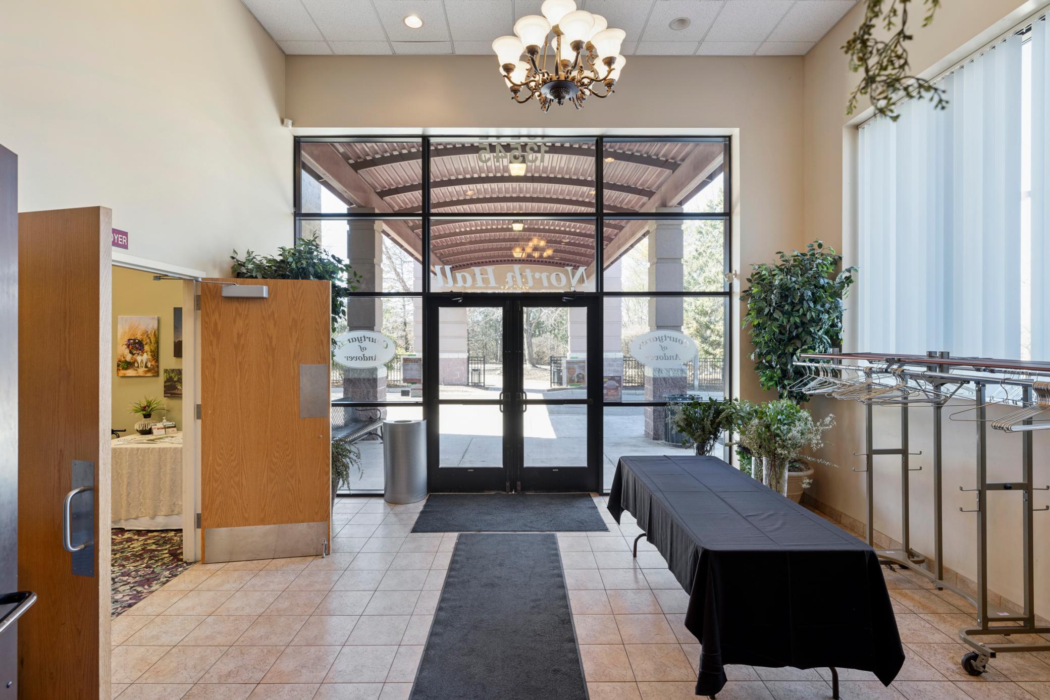 Event center building was also used as a Church until a few months ago on Sundays - CAN BE USED AS A CHURCH!! Amazing building and opportunity in the very heart of Andover's busy retail and community areas. High ceilings, FULL commercial restaurant and catering kitchen, large open congregate spaces, excellent footprint for opportunities. Existing tenancy or use for your business needs.