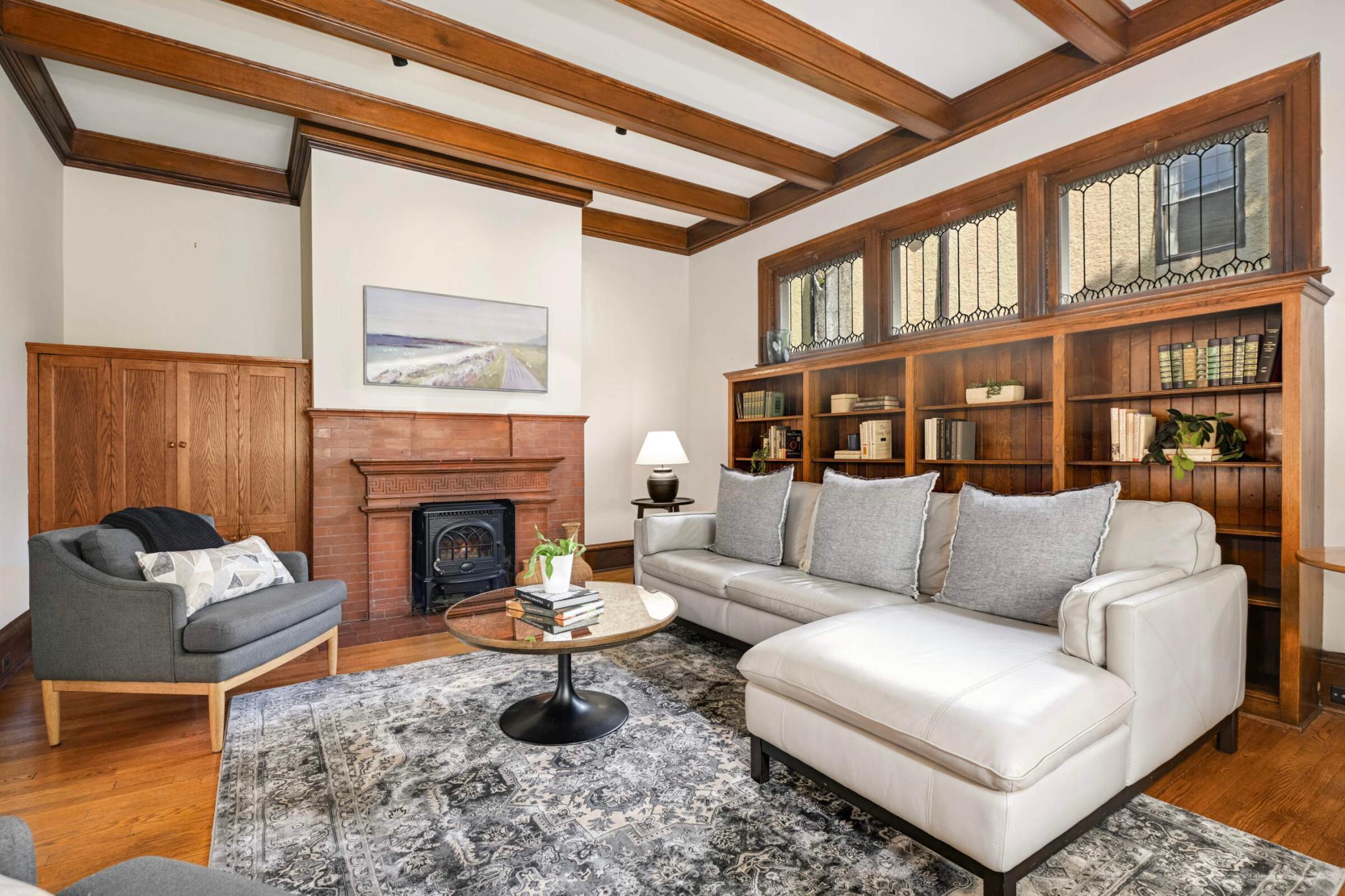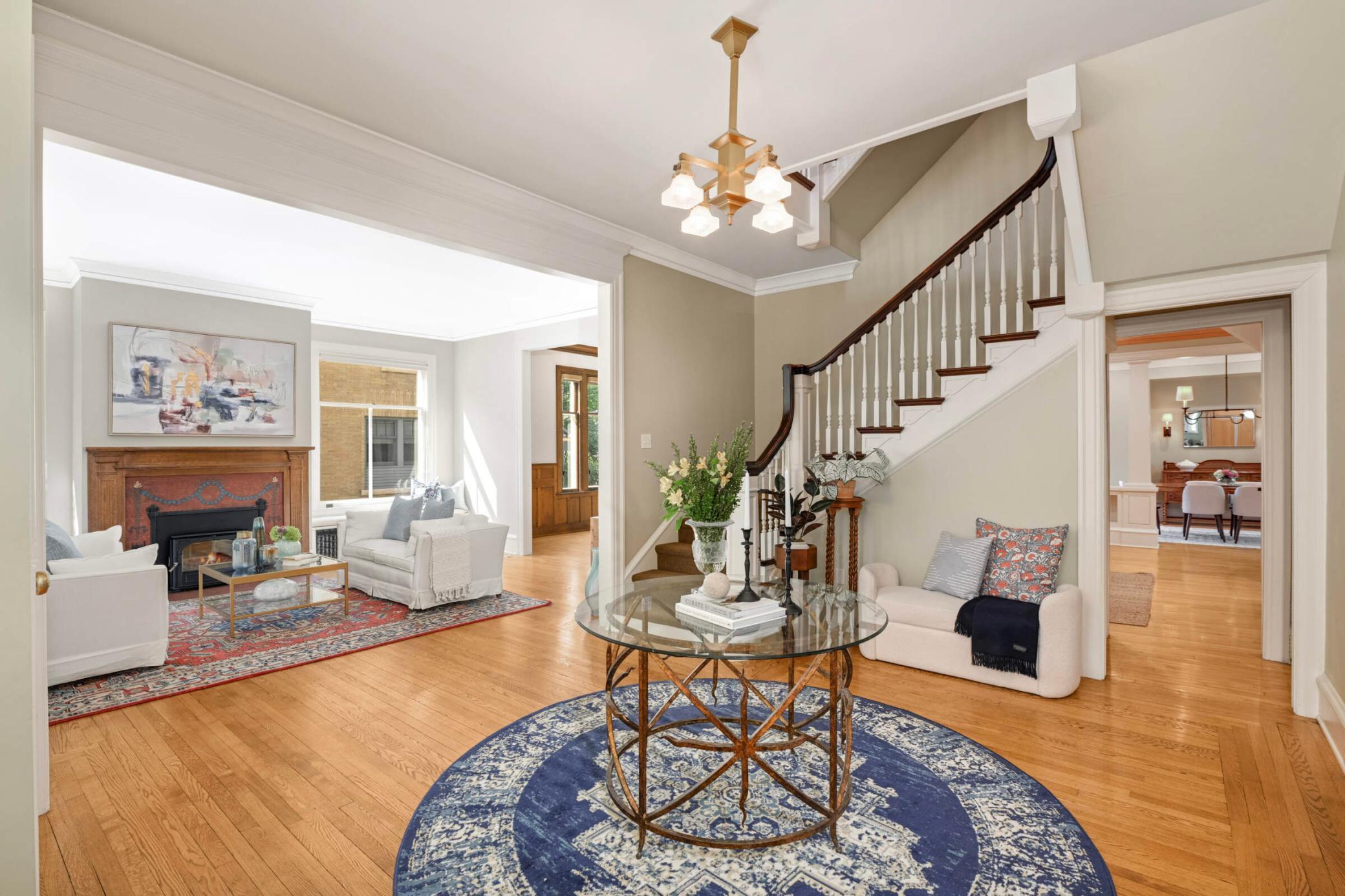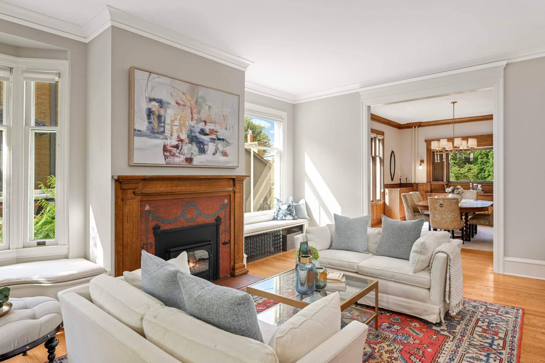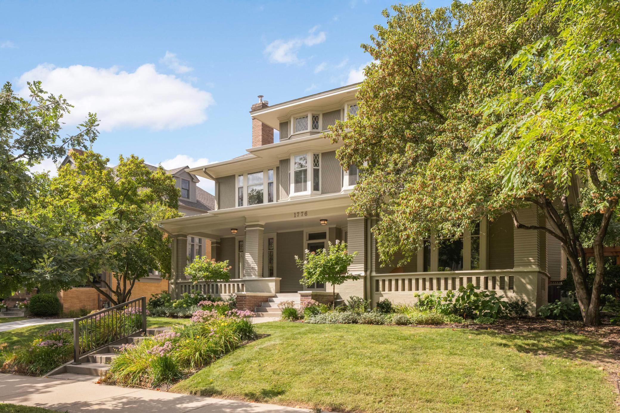 Situated on one of Lowry Hill's most coveted blocks, this remarkable turn-of-the-century home has been thoughtfully updated from top to bottom. From the hallmark front porch, to the award-winning kitchen, to the serene principal suite, this home checks all the boxes. Orig highlights include: diamond-paned, leaded & stained-glass windows, wainscotting, 4 refurbished fireplaces (w/amazing orig tilework), a stunning DR buffet, and numerous built-in bookshelves. *Note the handheld torch in the living room stained glass window & the fireplace tilework was the architect's nod to the house number - 1776 - our country's birth year. The torch represents liberty & freedom. Whether entertaining a crowd, relaxing with friends & family, or working from home, there is space for everyone. *Rounding off this fine home is the attached 3-car garage w/2nd story loft. The loft space is fully finished w/carpet, heat & separate electrical. Move-in and enjoy!
