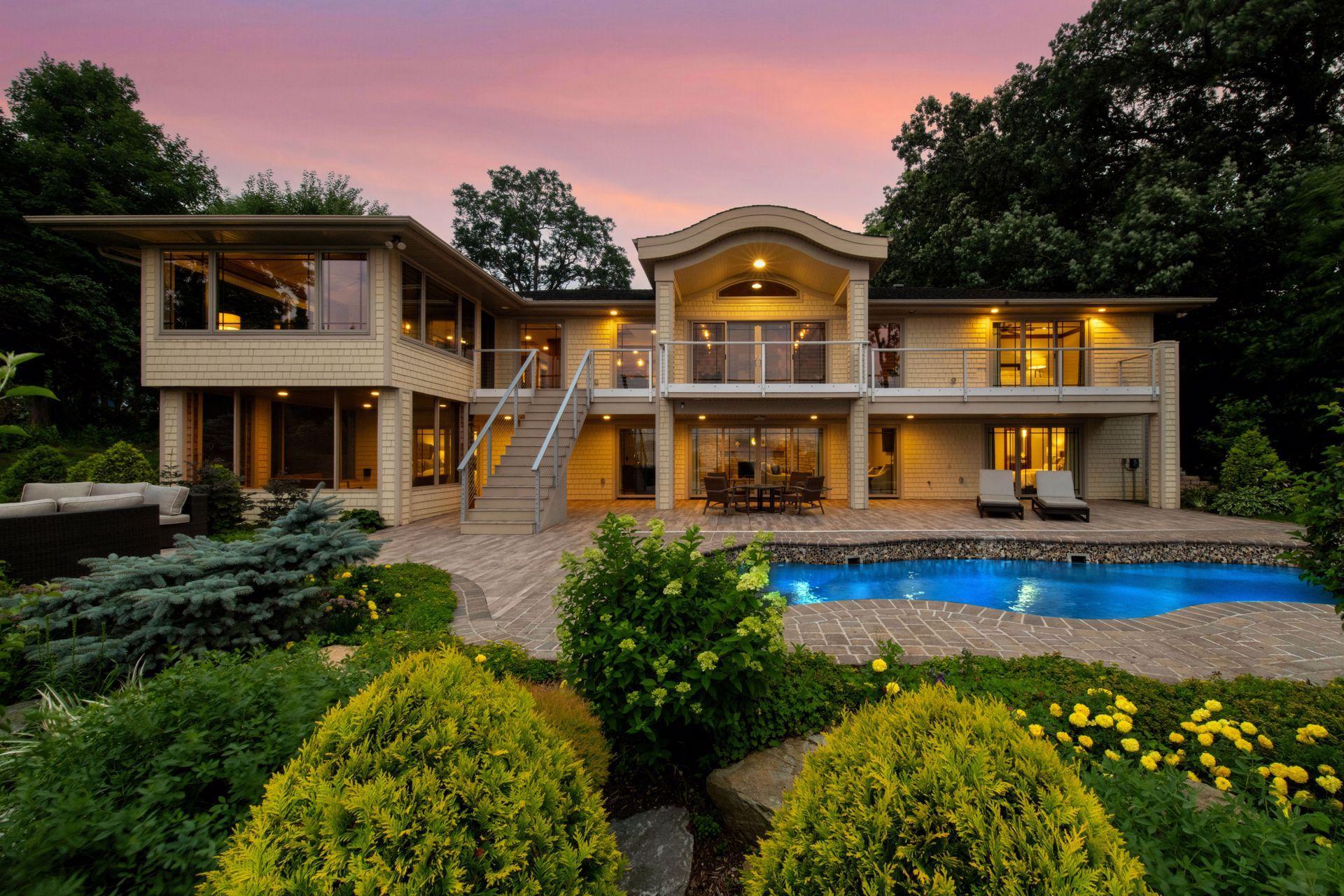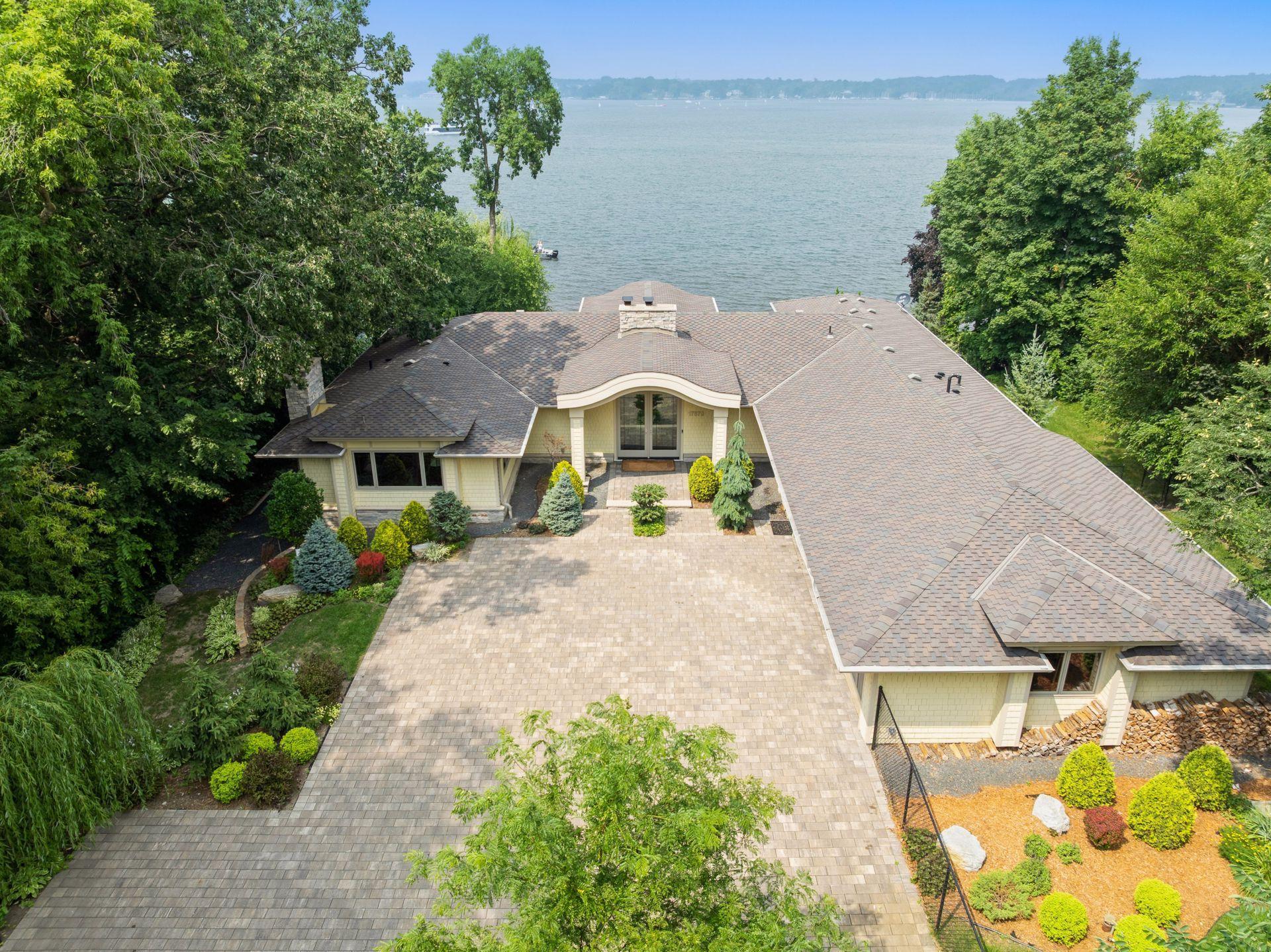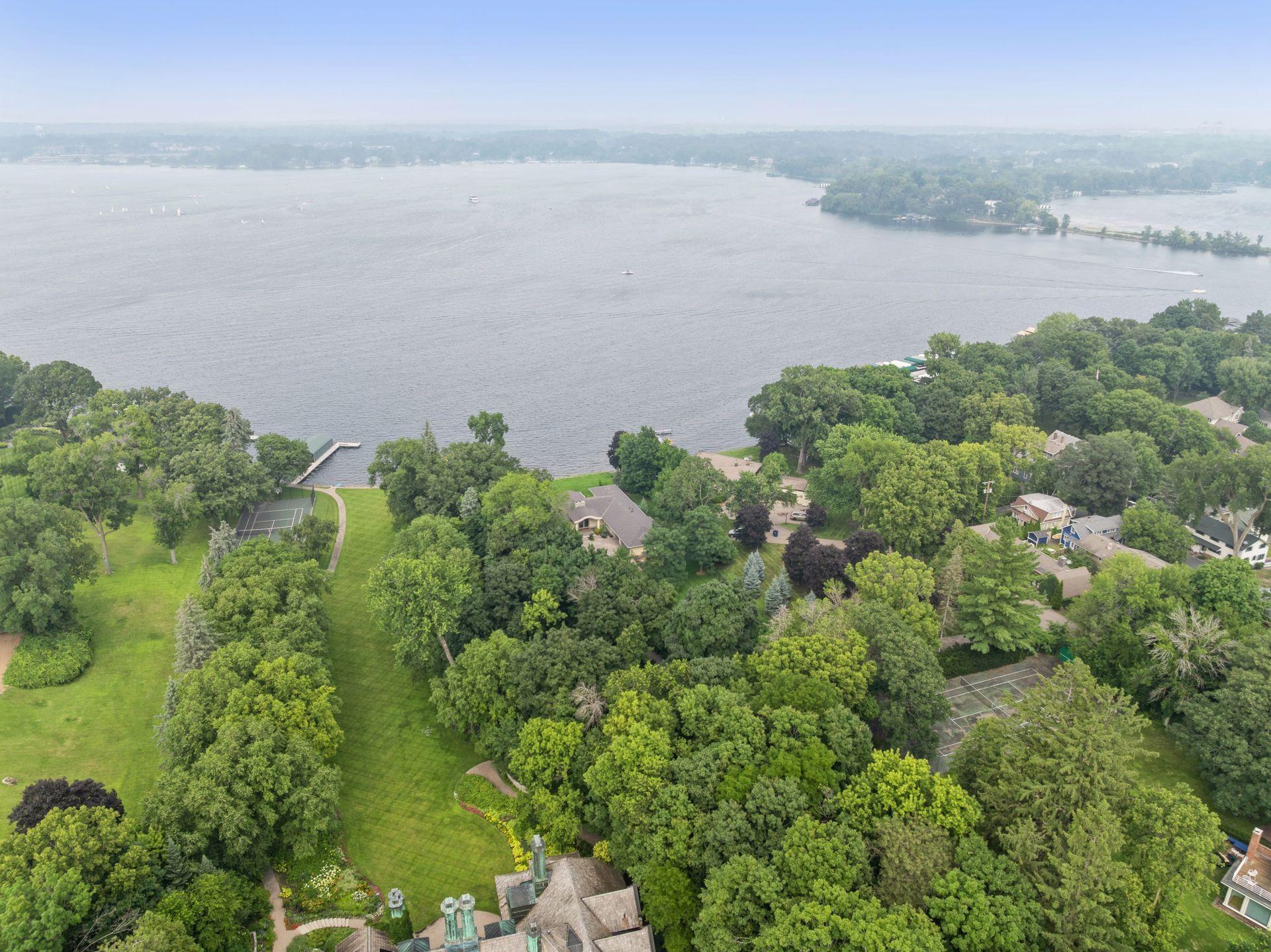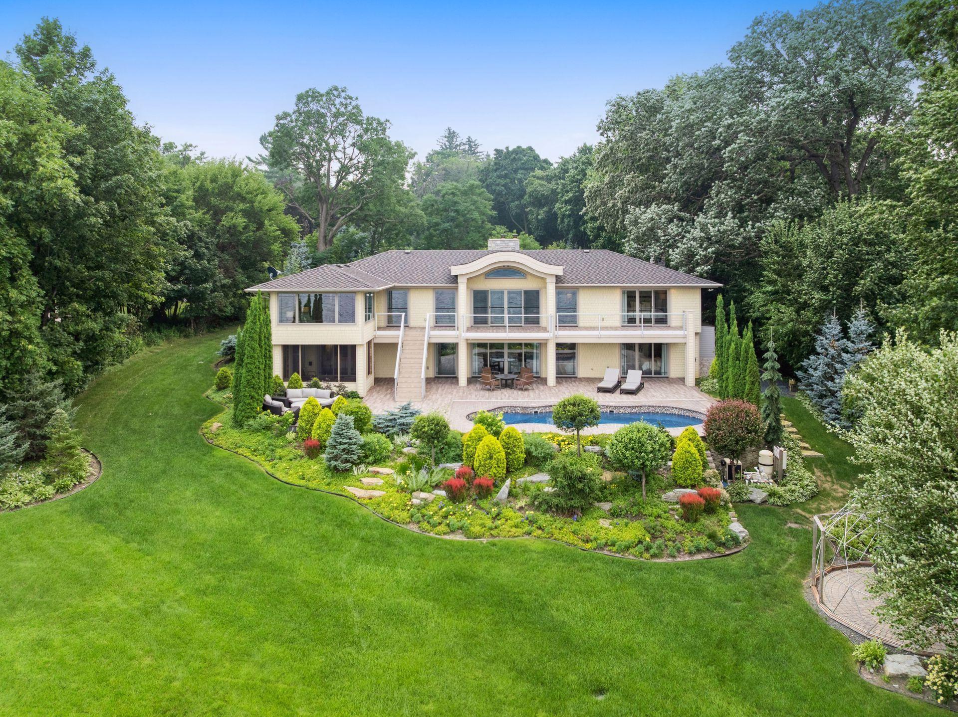 Discover the rare opportunity to live on one of Lake Minnetonka’s most coveted stretches of shoreline. Set on over an acre of historic grounds along coveted Wayzata Bay, this beautifully remodeled Woodland walkout rambler offers 105 feet of hard-bottom shoreline and sweeping water views from nearly every room. From quiet mornings on the balcony to evenings spent entertaining by the pool, the home is designed to elevate life at the lake. Expansive windows draw the outdoors in, creating a seamless connection to the water and bathing the interiors in natural light. Rich walnut accents, intricate ceiling details, and stonework throughout bring warmth and sophistication, while the open floor plan encourages effortless flow for everyday living and gatherings alike. At the heart of the home, the chef’s kitchen becomes the natural gathering place with its impressive 14-foot island, Viking appliances, and exceptional storage—ideal for hosting weekend brunches, intimate dinner parties, or casual lake-day lunches. Nearby, the great room offers a welcoming space to unwind by the stone fireplace while watching boats glide across Wayzata Bay. The primary suite is a true sanctuary, complete with a private balcony perfectly positioned for sunrise views and peaceful reflection. Its spa-inspired amenities and thoughtful design create a retreat you’ll look forward to returning to each evening. Entertaining continues on the walkout lower level, where a full wet bar, stone fireplace, and lounge spaces open directly to the pool terrace. A secondary laundry provides added convenience—especially when hosting guests for long summer weekends. The lakeside swimming pool is an extension of the home’s resort-style living, surrounded by mature landscaping that enhances privacy and frames panoramic lake vistas. A handsome stone paver driveway, 50-year roof, and the home’s full 2018 renovation ensure modern comfort and peace of mind. Whether you’re boating from your shoreline, savoring quiet moments by the water, or welcoming friends for lively evenings under the stars, this property offers a lifestyle defined by beauty, ease, and connection to the lake.